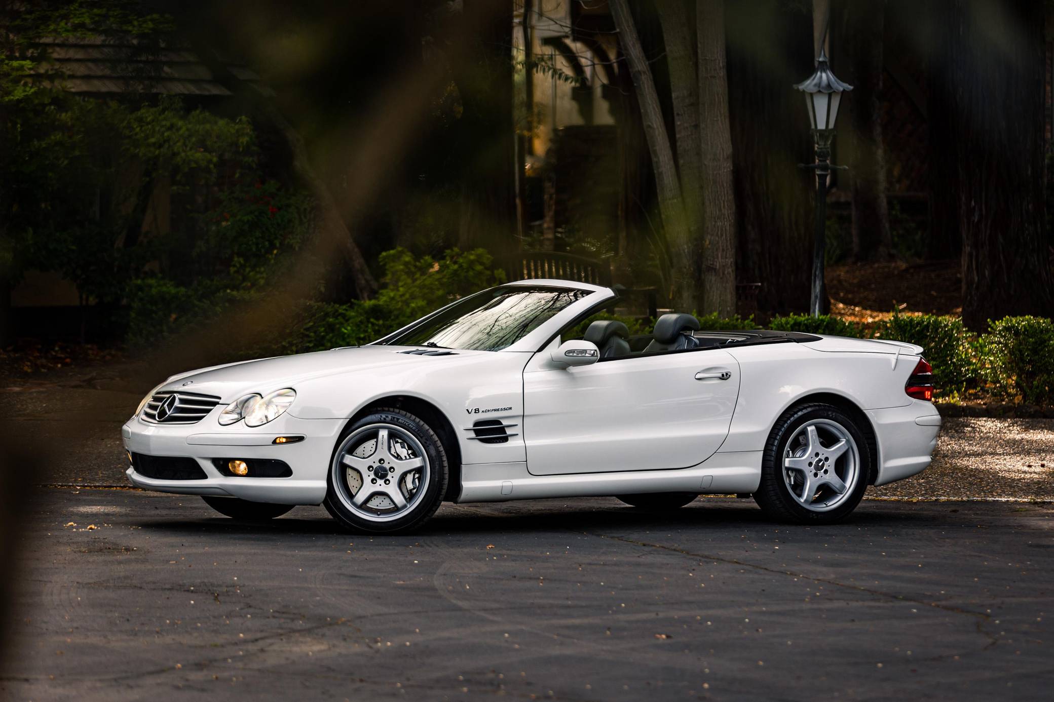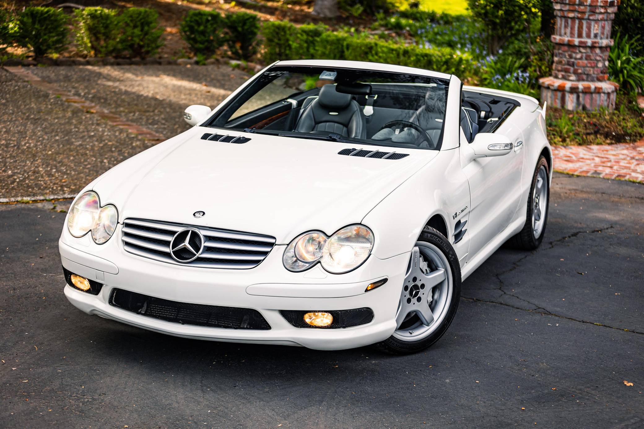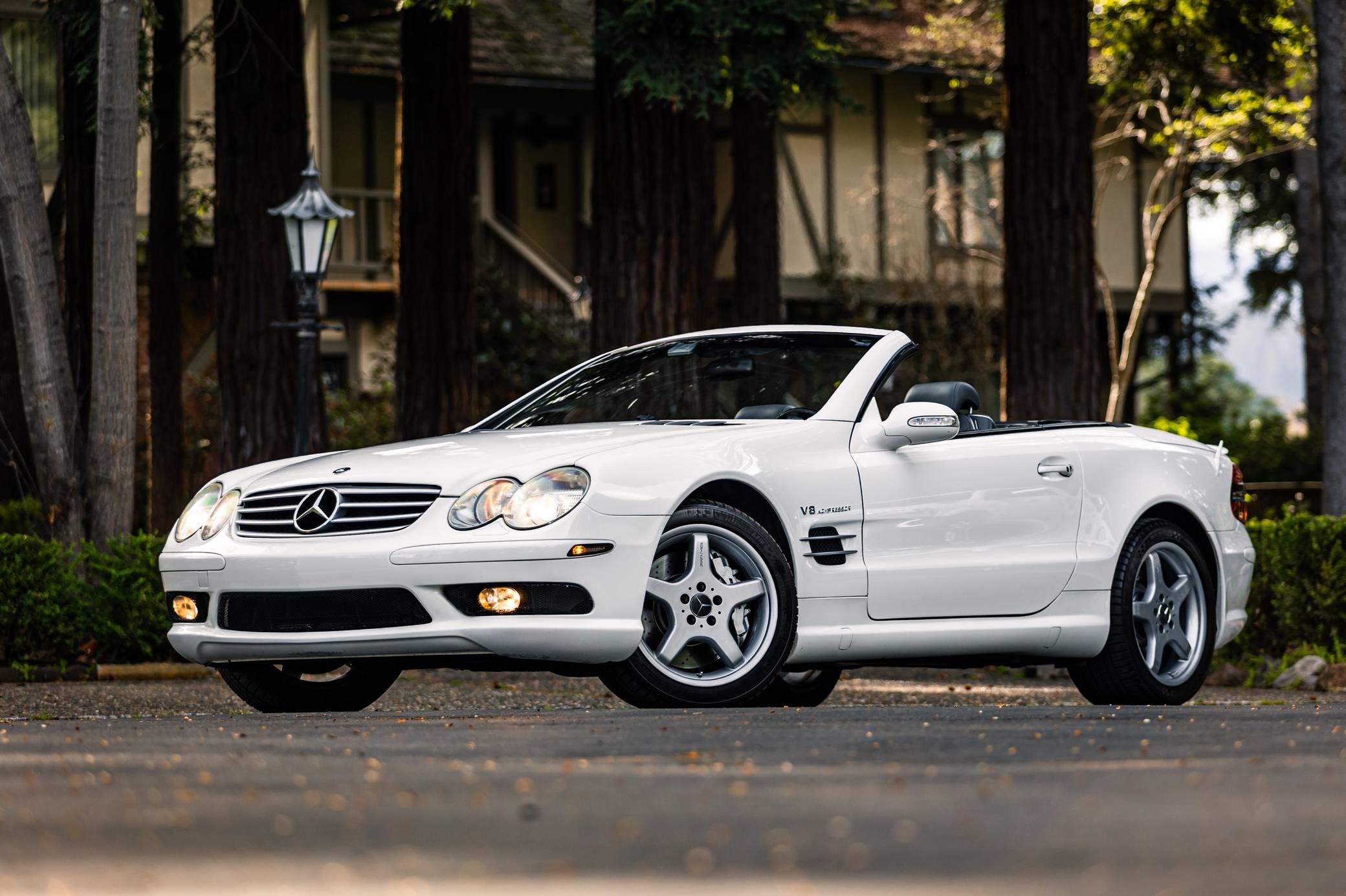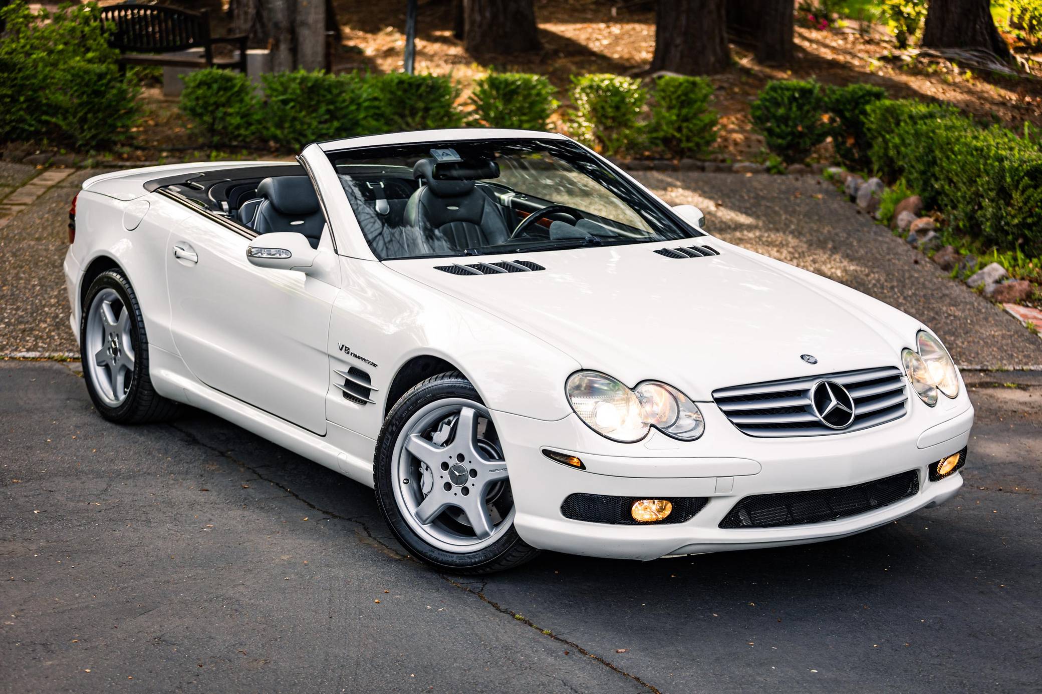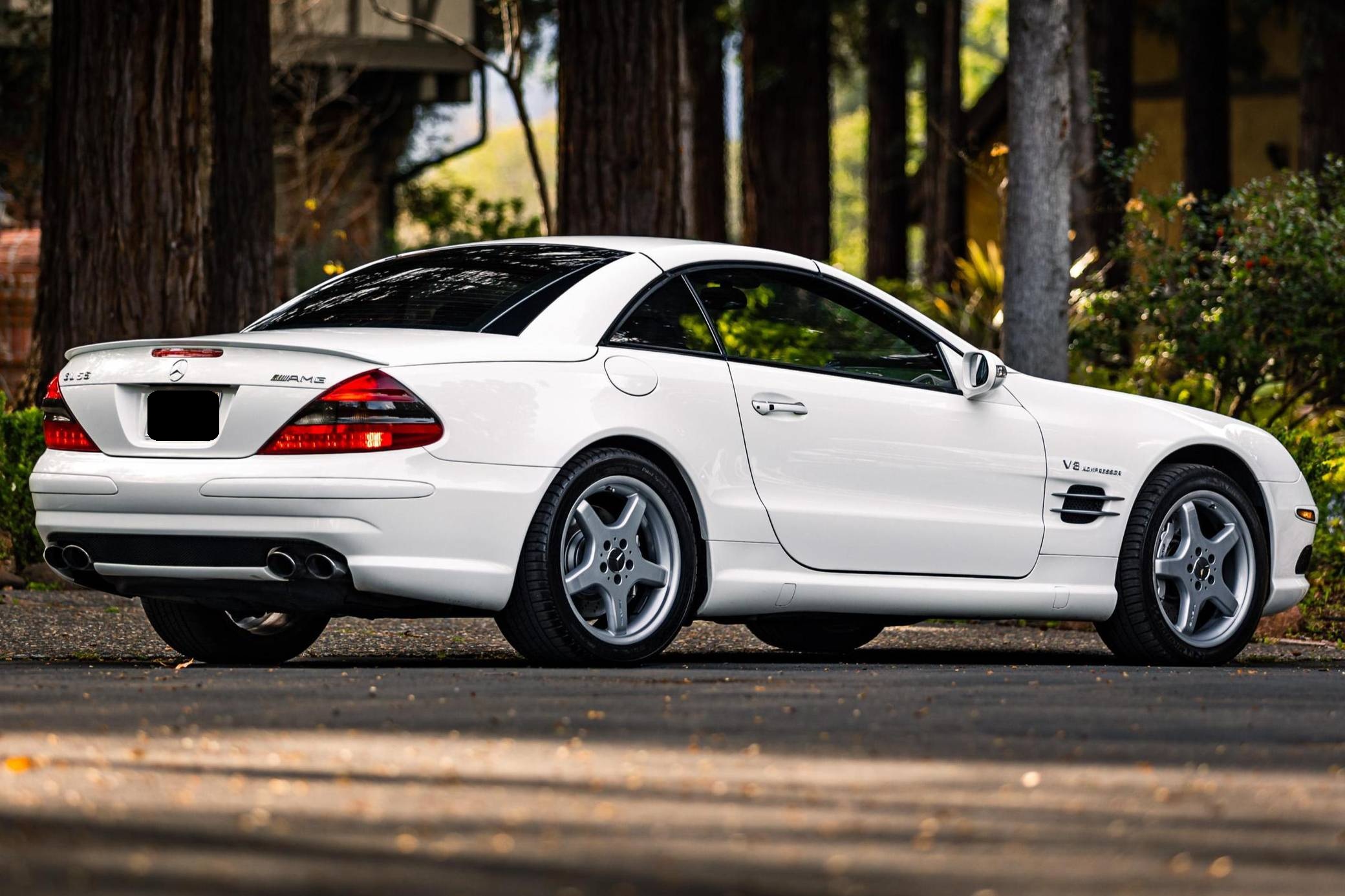 THIS. . . is a 2003 Mercedes-Benz SL55 AMG, finished in Alabaster White with a black interior. This roadster's odometer displays about 68,000 miles. Factory equipment includes 18-inch wheels, an Active Body Control (ABC) suspension system, an AMG-specific body kit, a power-folding hardtop, heated, ventilated, and power-adjustable multicontour seats, and a Bose sound system. This SL55's build sheet is shown in the gallery, and the only modifications reported by the seller are tinted side-marker lights and tinted windows. Called R230 internally, the first new SL of the 21st century made its debut for 2003 as a replacement for the venerable R129 model. It was appreciably quicker and far more advanced than its predecessor, it ditched the boxy lines for a sleeker and more rounded design that was aligned with the rest of the Mercedes-Benz range, and it came standard with a power-retractable hardtop. Production ended in 2011. Power comes from a 5. 4-liter supercharged V8, rated at 493 horsepower and 516 lb-ft of torque. Called "M113K" internally, it spins the rear wheels via a 5-speed automatic transmission.