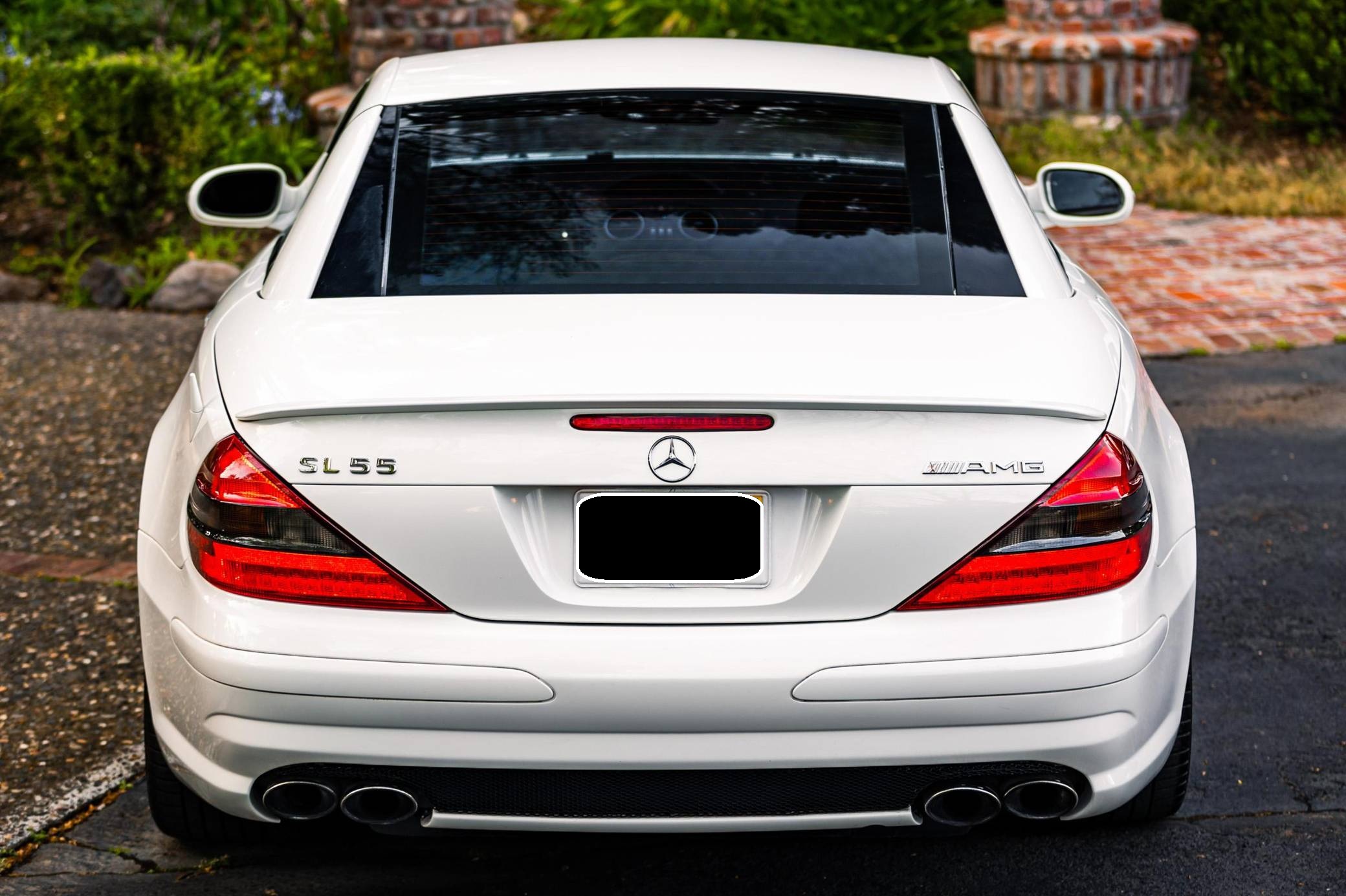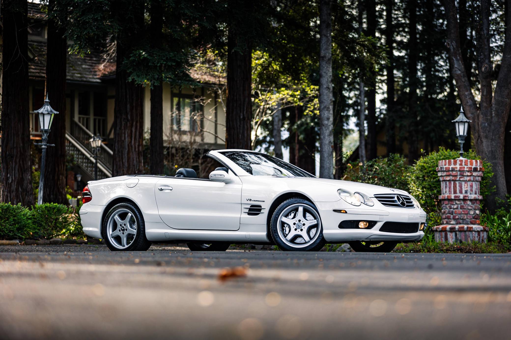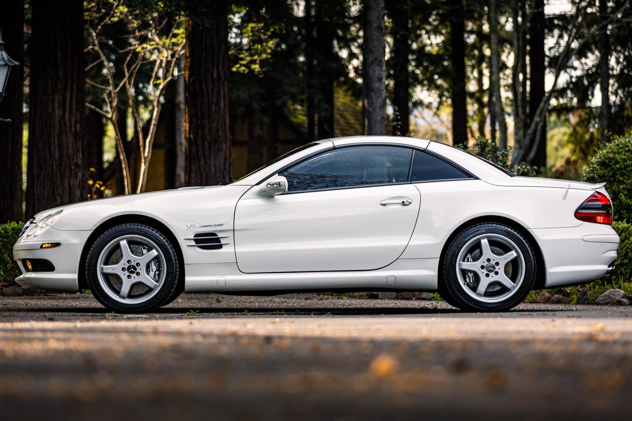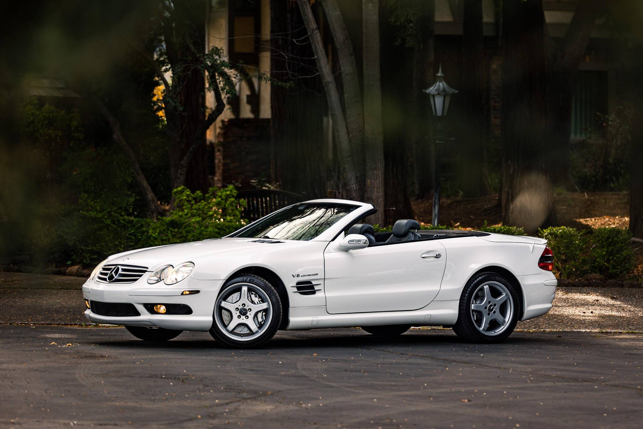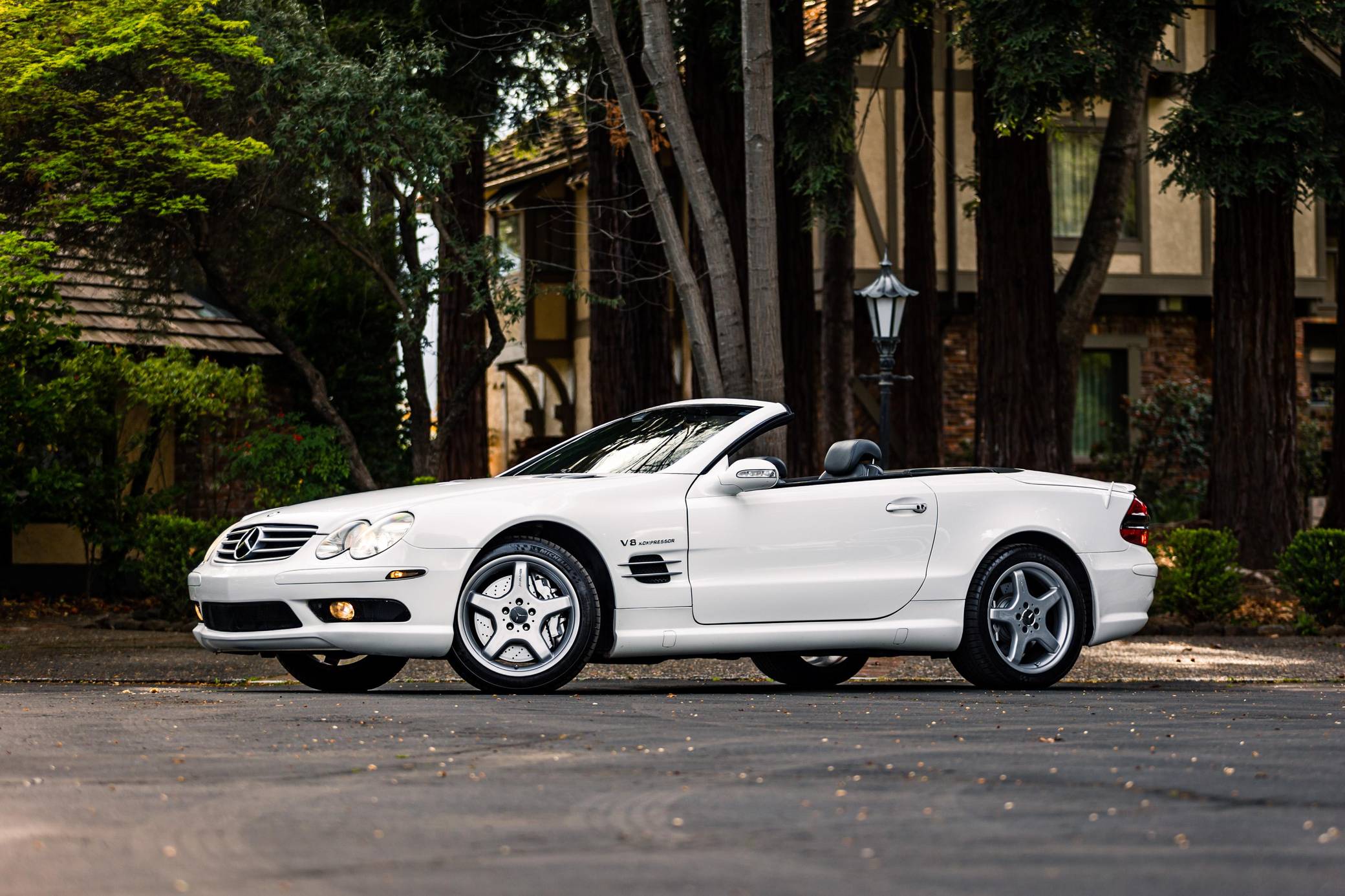 THIS. . . is a 2003 Mercedes-Benz SL55 AMG, finished in Alabaster White with a black interior. This roadster's odometer displays about 68,000 miles. Factory equipment includes 18-inch wheels, an Active Body Control (ABC) suspension system, an AMG-specific body kit, a power-folding hardtop, heated, ventilated, and power-adjustable multicontour seats, and a Bose sound system. This SL55's build sheet is shown in the gallery, and the only modifications reported by the seller are tinted side-marker lights and tinted windows. Called R230 internally, the first new SL of the 21st century made its debut for 2003 as a replacement for the venerable R129 model. It was appreciably quicker and far more advanced than its predecessor, it ditched the boxy lines for a sleeker and more rounded design that was aligned with the rest of the Mercedes-Benz range, and it came standard with a power-retractable hardtop. Production ended in 2011. Power comes from a 5. 4-liter supercharged V8, rated at 493 horsepower and 516 lb-ft of torque. Called "M113K" internally, it spins the rear wheels via a 5-speed automatic transmission.
