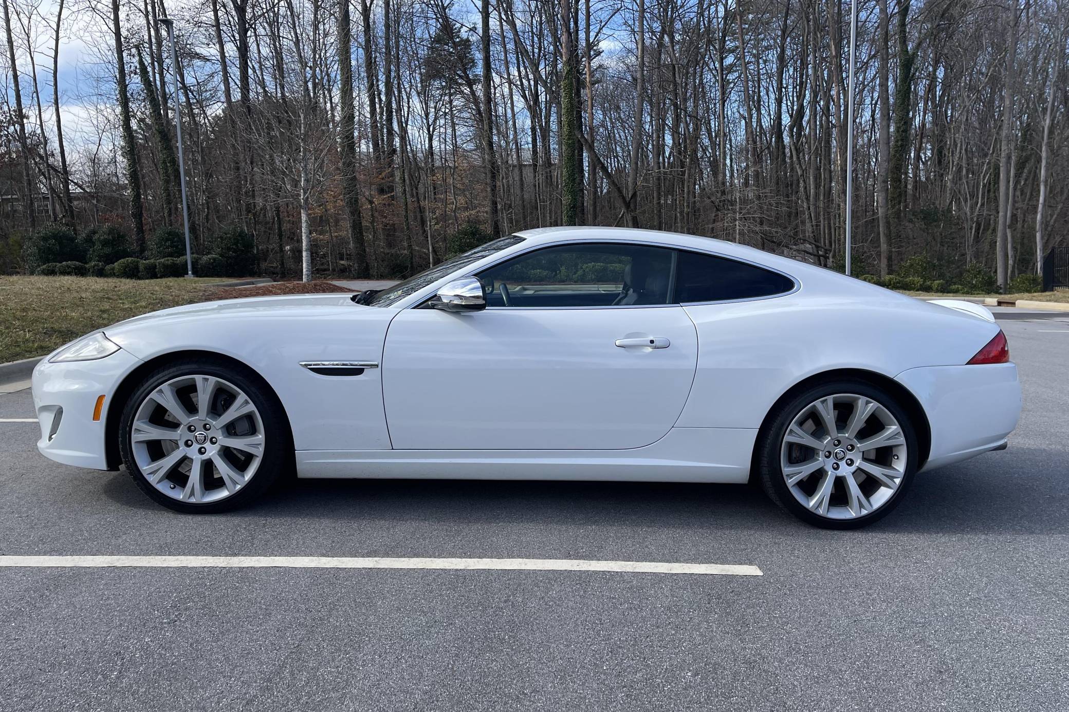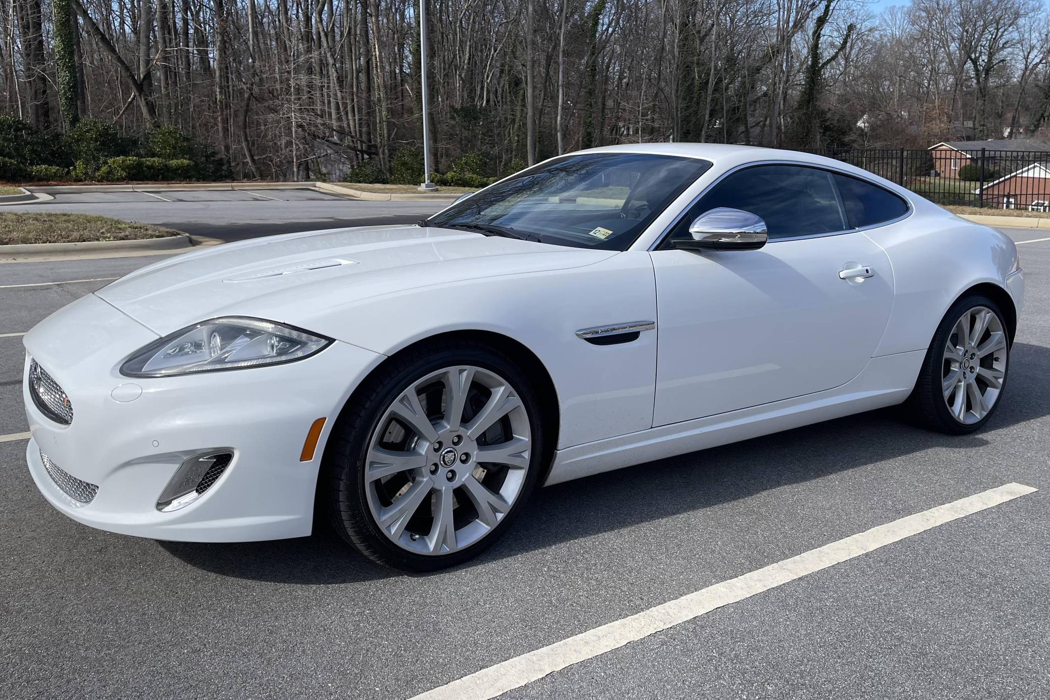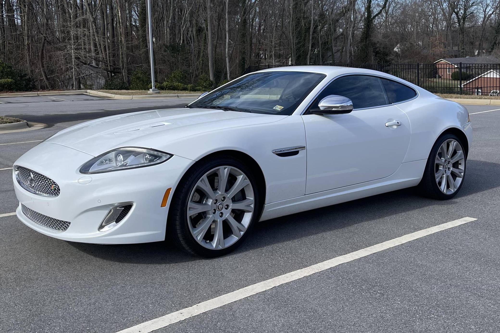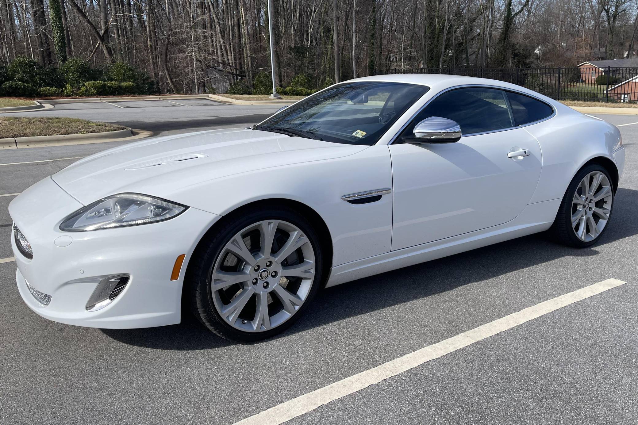 2013 Jaguar XKR Coupe, finished in Polaris White with a Navy Blue interior. Factory equipment on this XKR includes a Bowers & Wilkins audio system, Jaguar's Performance Active adjustable exhaust, and the Portfolio Package, which adds unique cosmetic details detailed below. The seller reports no modifications. Some additional services are detailed in the report. Jaguar's "X150" is the second and final generation of the XK GT car, notable for its all-aluminum construction and timeless styling penned by the legendary designer Ian Callum. In 2012, the model benefitted from several upgrades including new front and rear fascias, improved interior materials, and more standard equipment. Power comes from a 5. 0-liter supercharged V8, rated at 510 horsepower and 461 lb-feet of torque. Output is sent to the rear wheels via a 6-speed ZF automatic transmission.