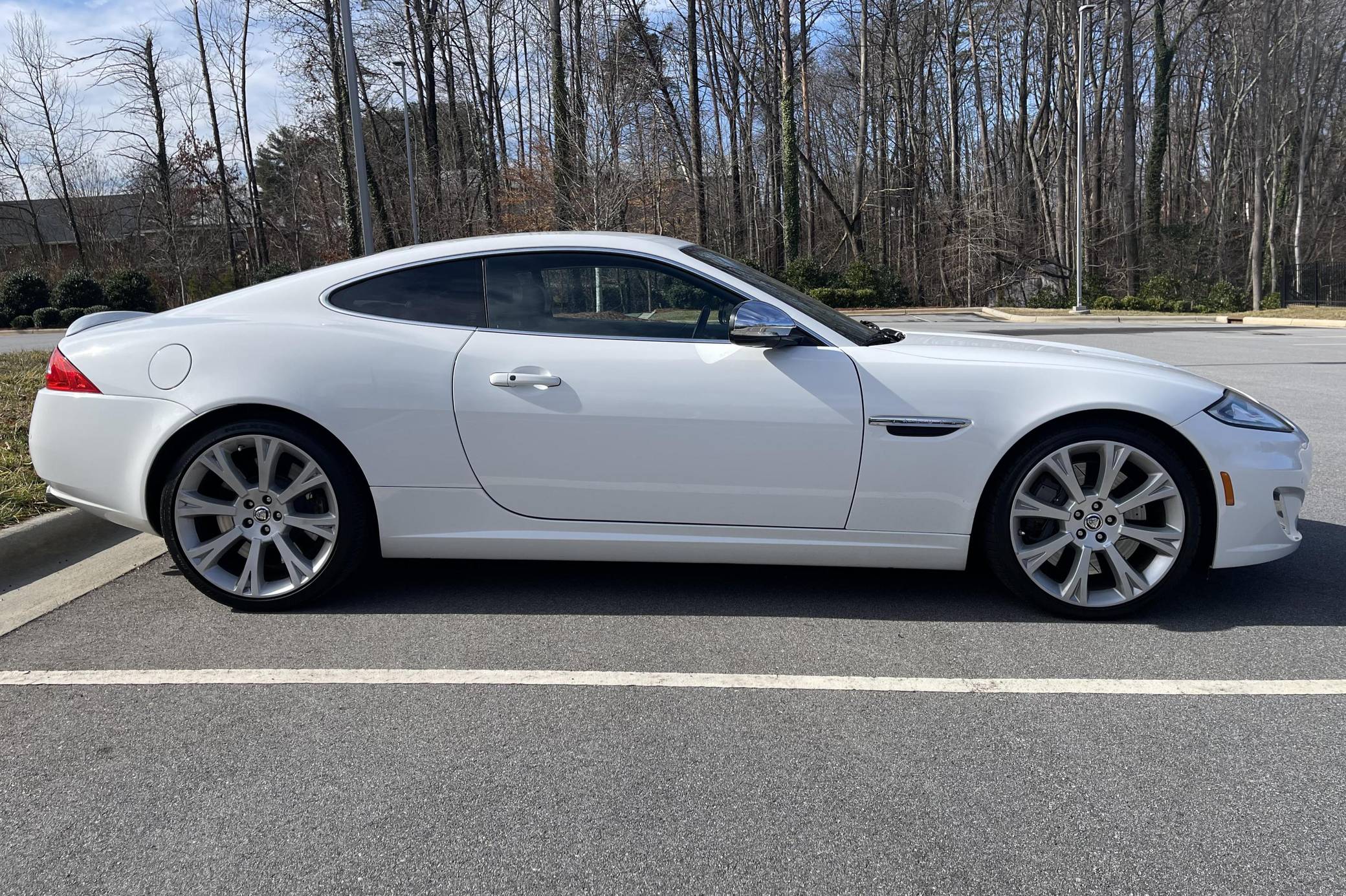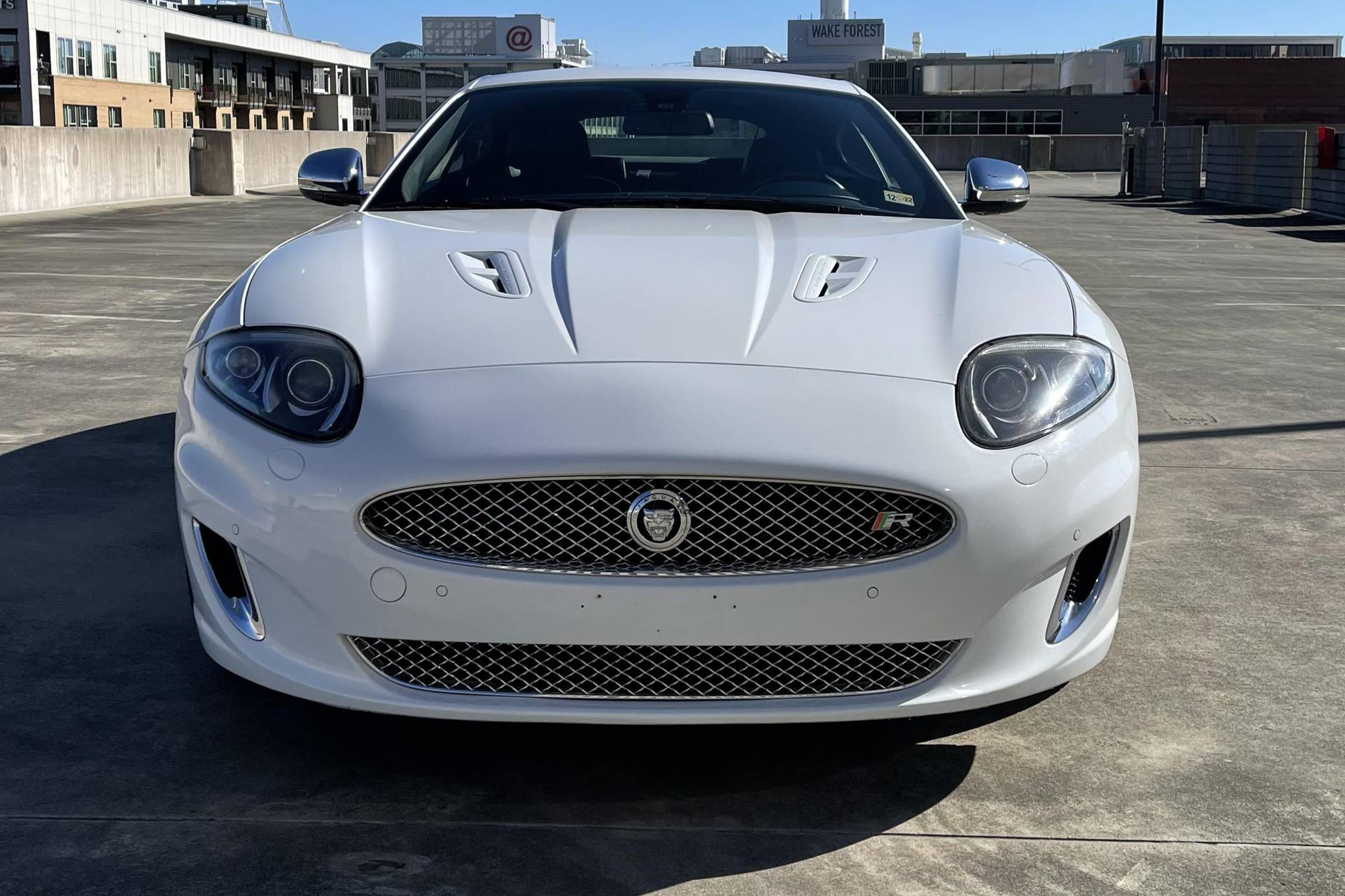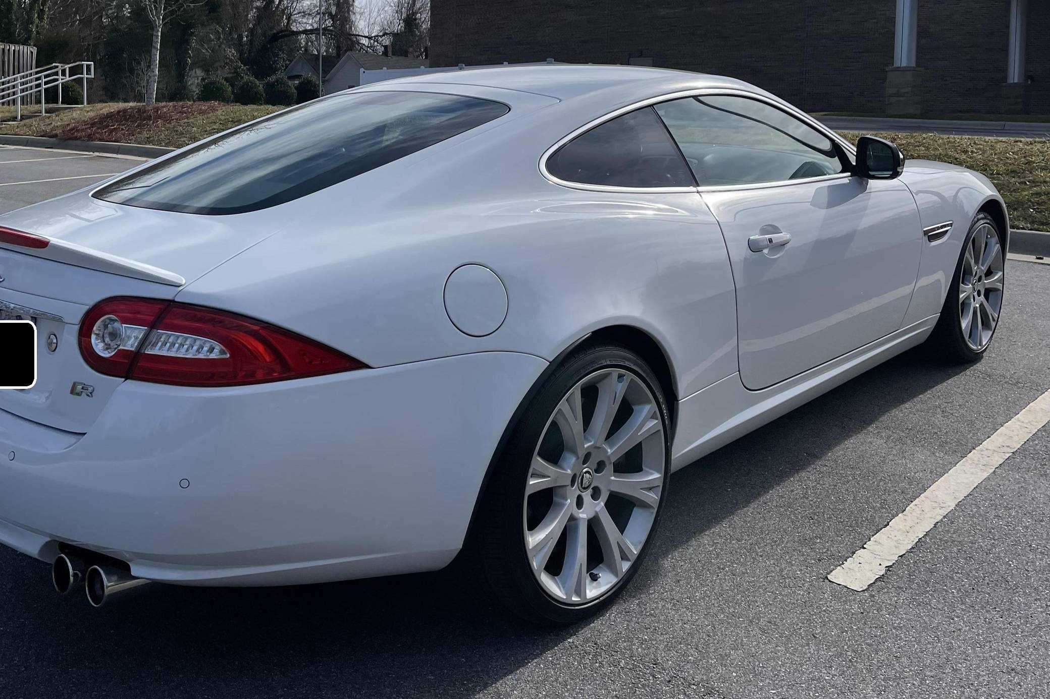2013 Jaguar XKR Coupe, finished in Polaris White with a Navy Blue interior. Factory equipment on this XKR includes a Bowers & Wilkins audio system, Jaguar's Performance Active adjustable exhaust, and the Portfolio Package, which adds unique cosmetic details detailed below. The seller reports no modifications. Some additional services are detailed in the report. Jaguar's "X150" is the second and final generation of the XK GT car, notable for its all-aluminum construction and timeless styling penned by the legendary designer Ian Callum. In 2012, the model benefitted from several upgrades including new front and rear fascias, improved interior materials, and more standard equipment. Power comes from a 5. 0-liter supercharged V8, rated at 510 horsepower and 461 lb-feet of torque. Output is sent to the rear wheels via a 6-speed ZF automatic transmission.
