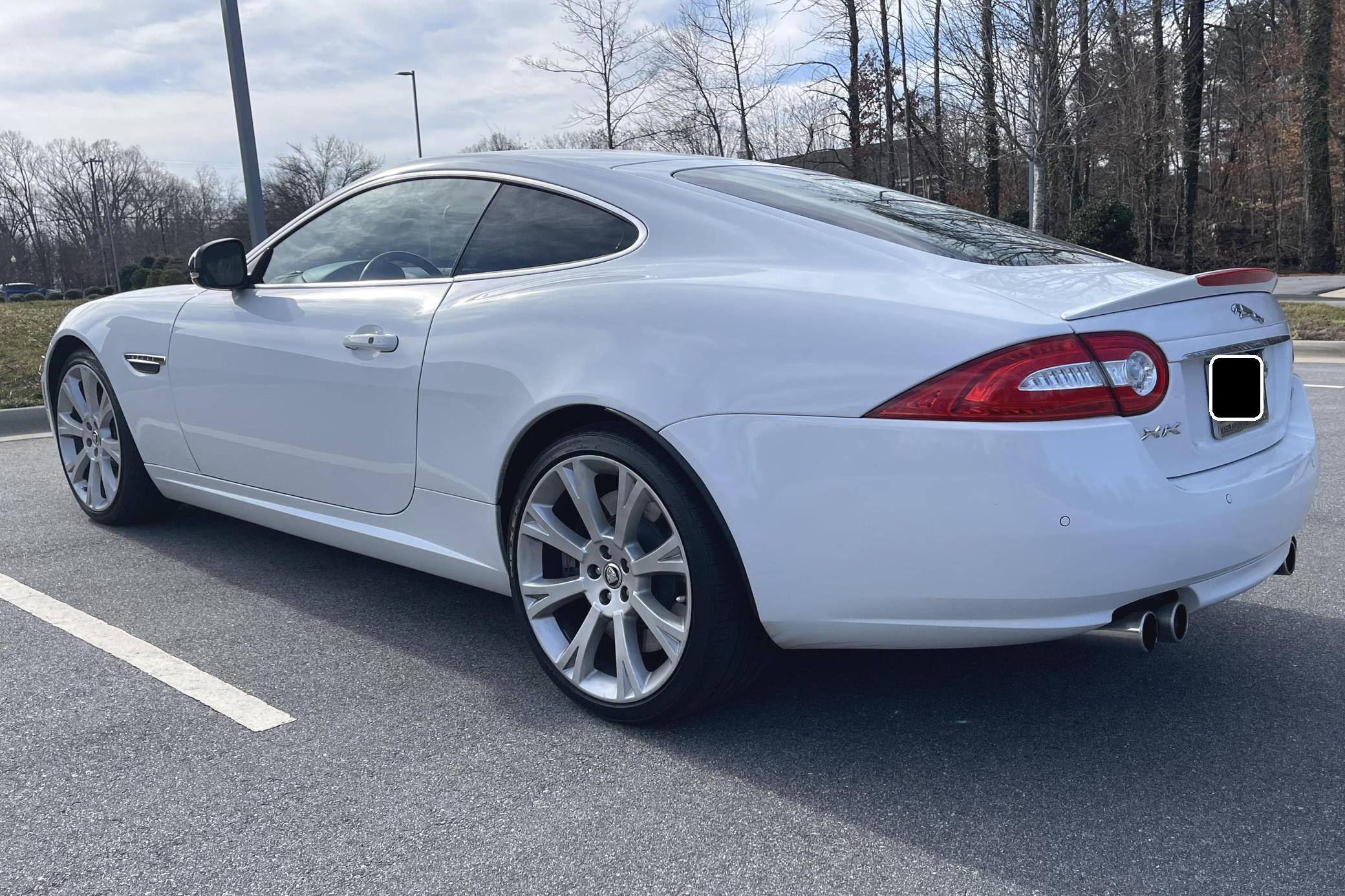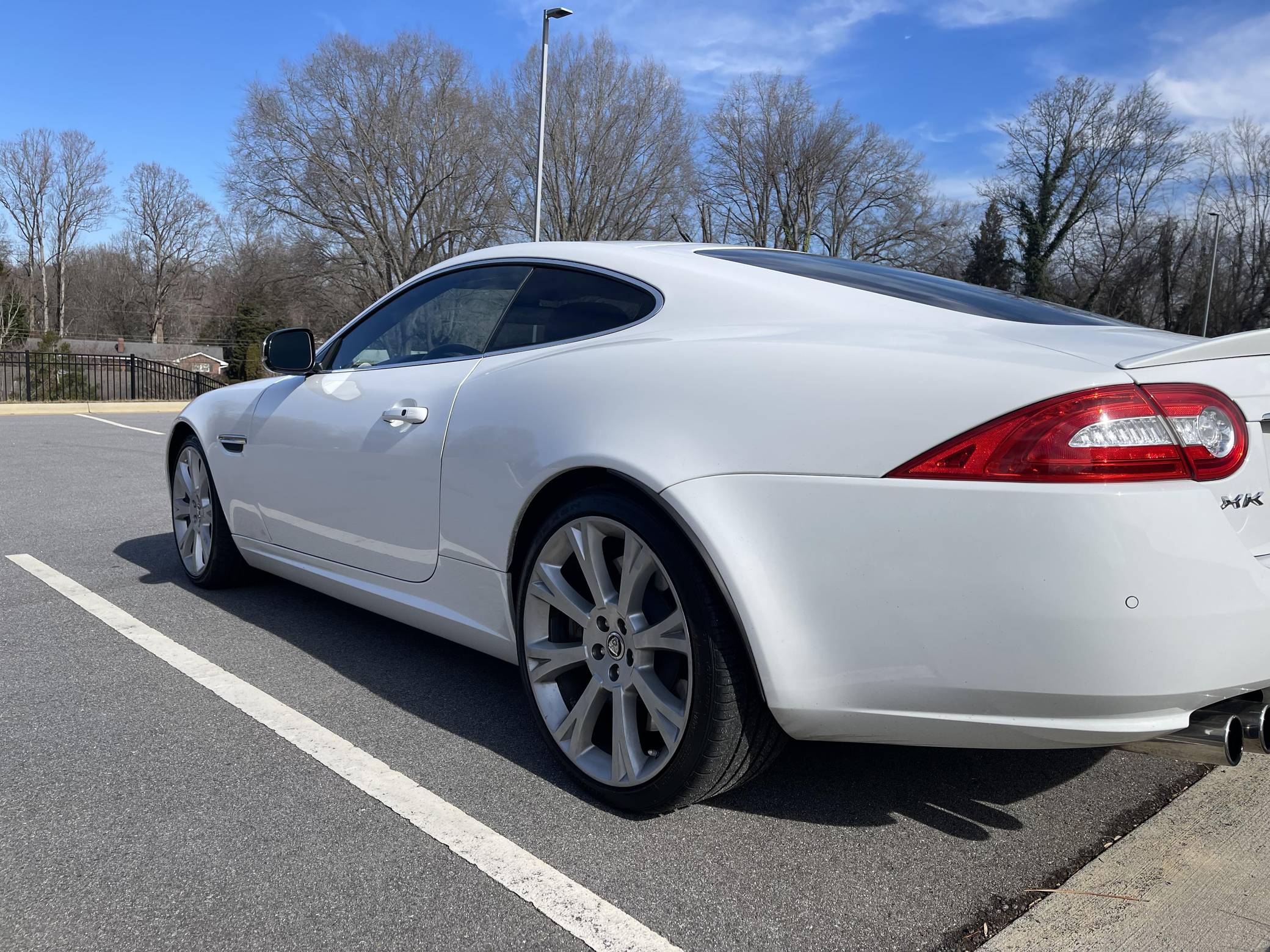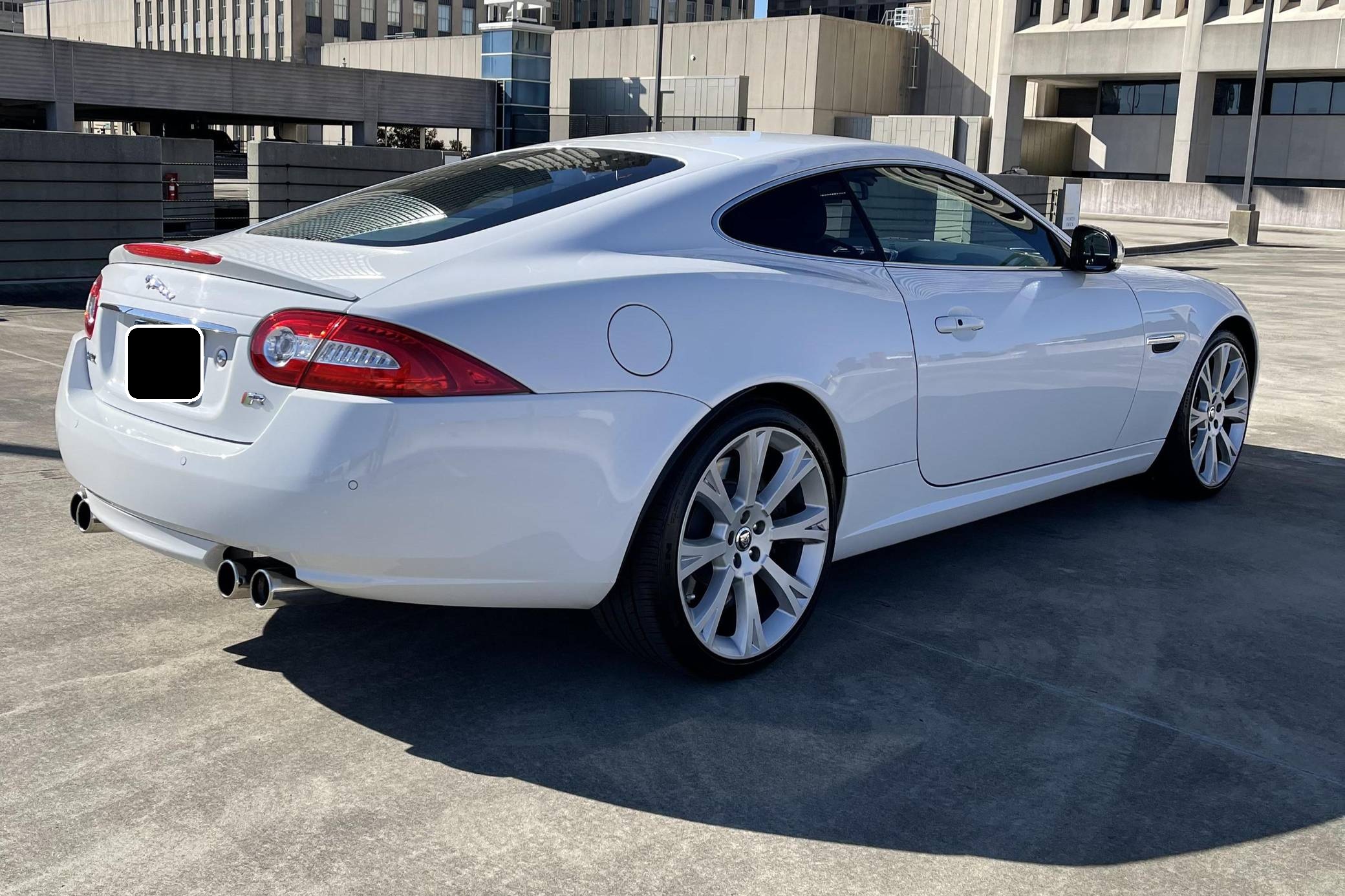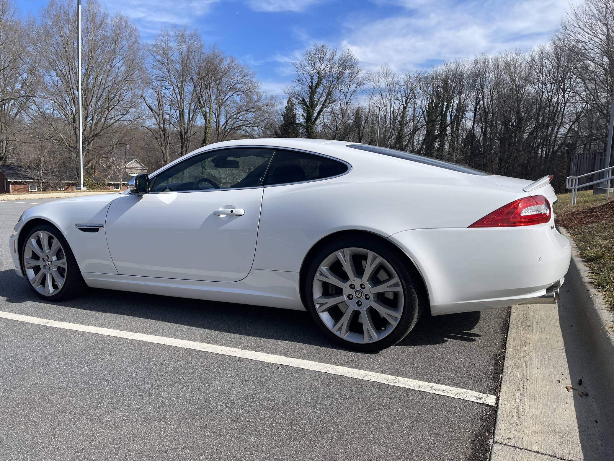 2013 Jaguar XKR Coupe, finished in Polaris White with a Navy Blue interior. Factory equipment on this XKR includes a Bowers & Wilkins audio system, Jaguar's Performance Active adjustable exhaust, and the Portfolio Package, which adds unique cosmetic details detailed below. The seller reports no modifications. Some additional services are detailed in the report. Jaguar's "X150" is the second and final generation of the XK GT car, notable for its all-aluminum construction and timeless styling penned by the legendary designer Ian Callum. In 2012, the model benefitted from several upgrades including new front and rear fascias, improved interior materials, and more standard equipment. Power comes from a 5. 0-liter supercharged V8, rated at 510 horsepower and 461 lb-feet of torque. Output is sent to the rear wheels via a 6-speed ZF automatic transmission.
