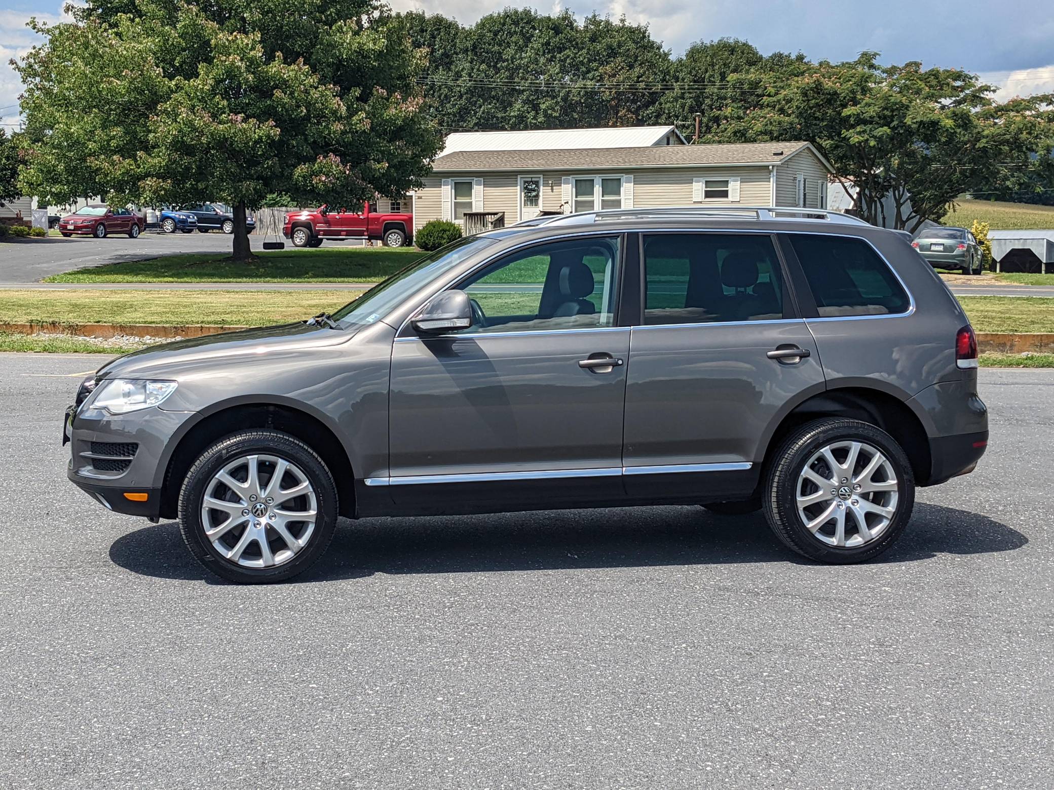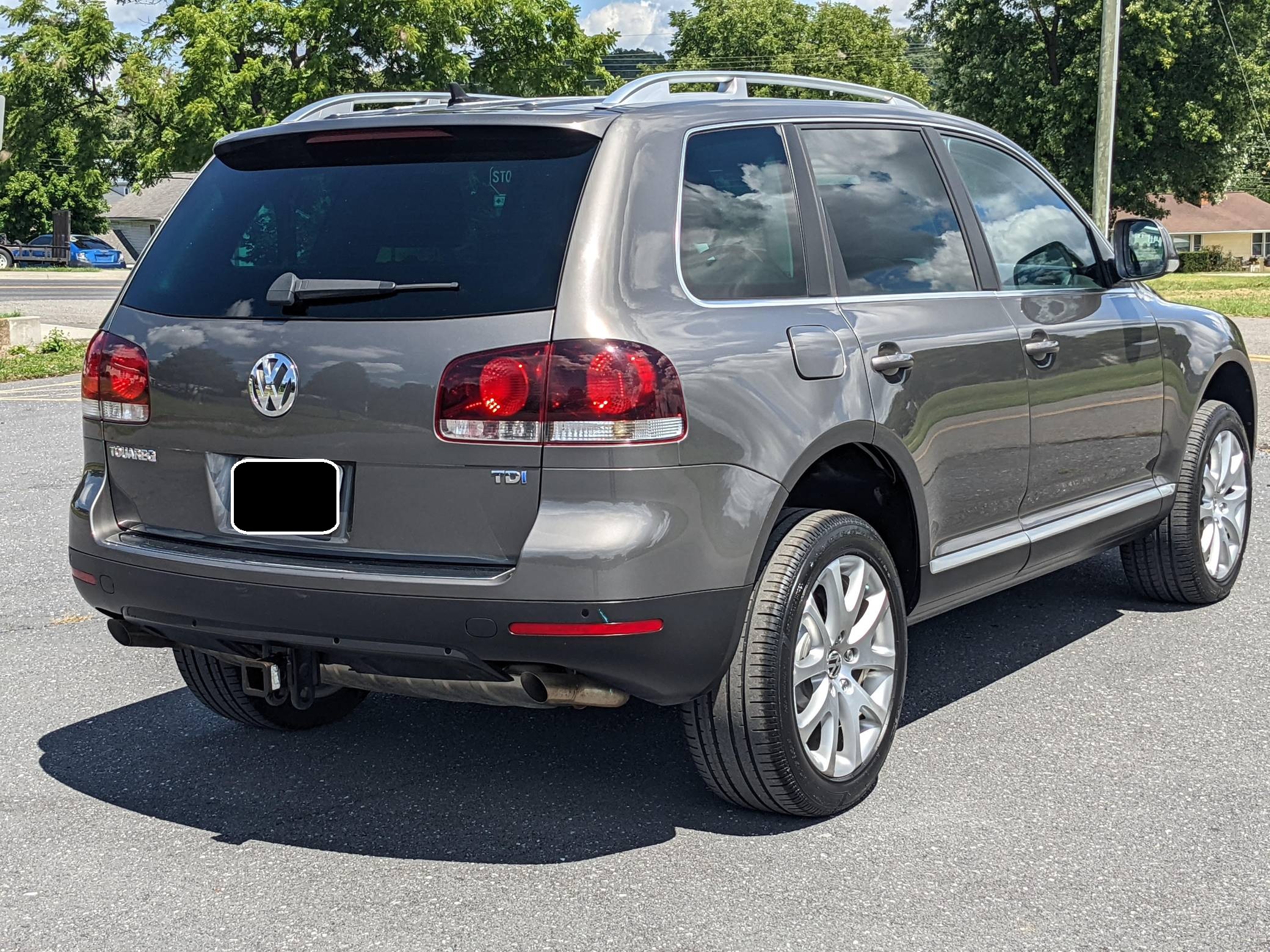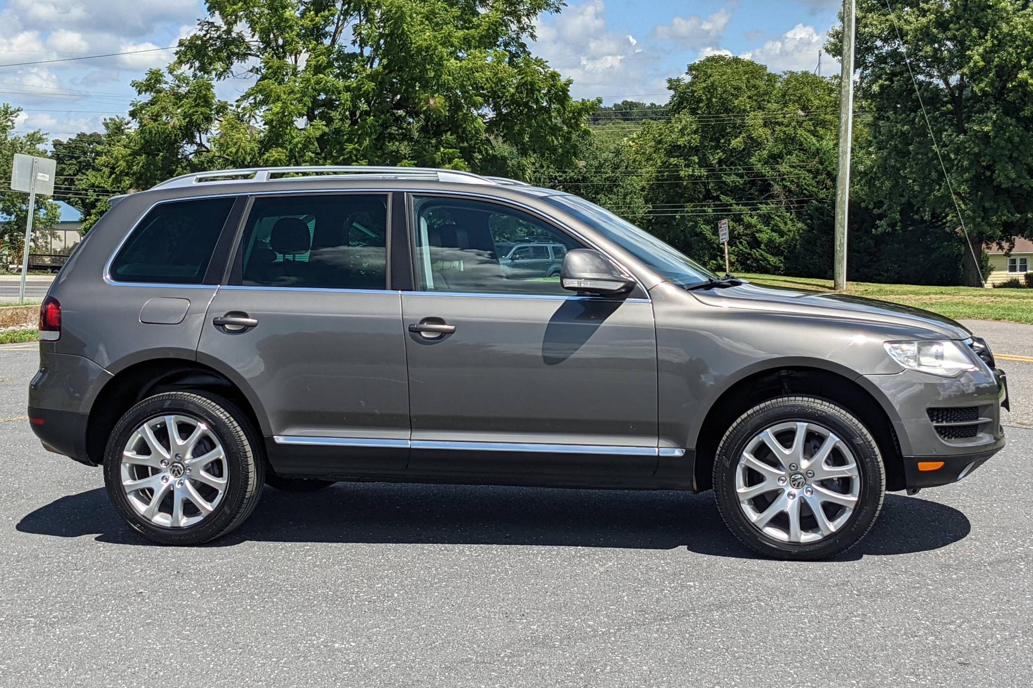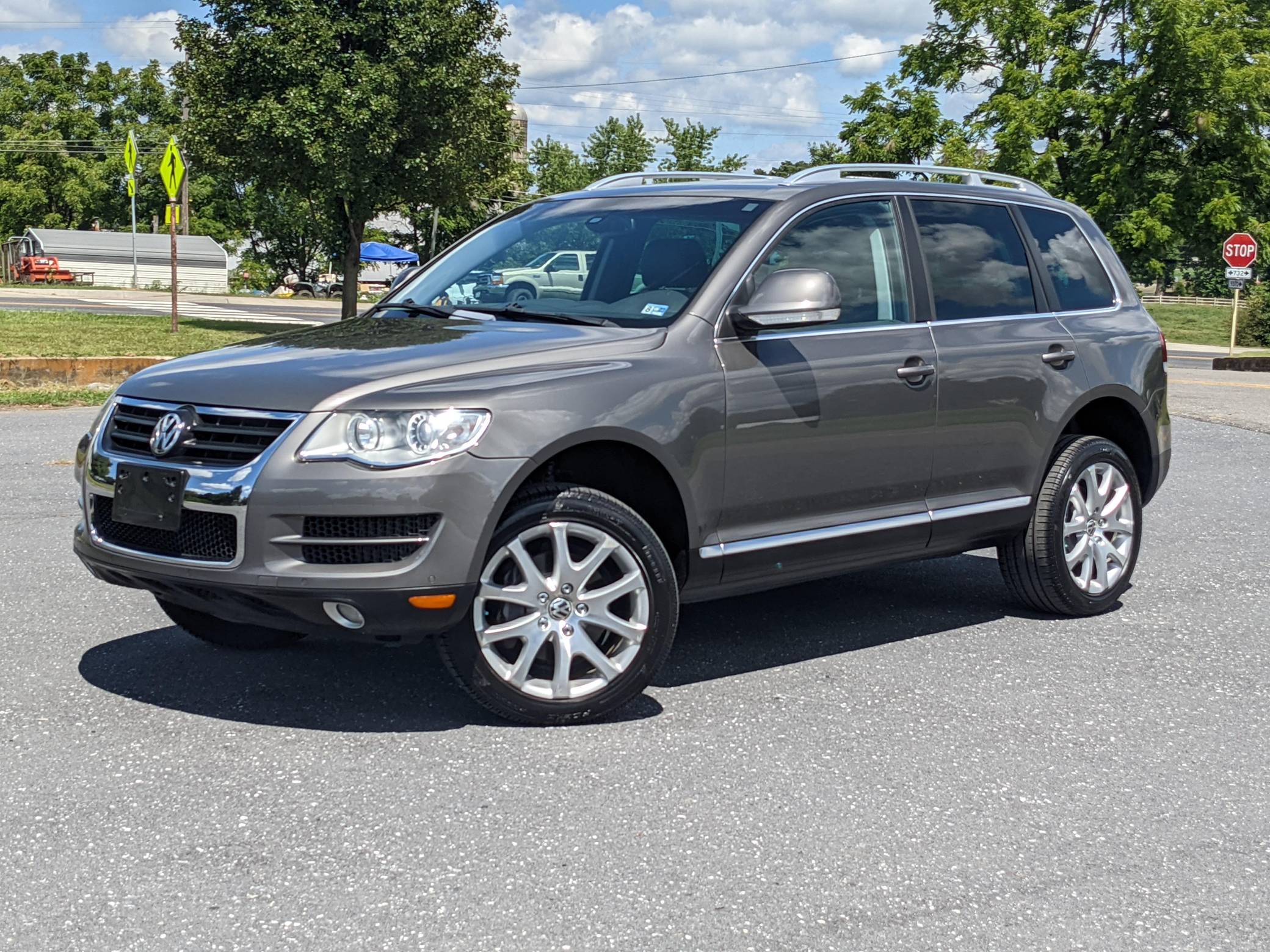 2010 Volkswagen Touareg TDI, finished in Atacama Gray Metallic with an Anthracite interior. This Touareg's odometer displays approximately 43,800 miles. Factory equipment includes the Luxury Package, which adds 19-inch Terra alloy wheels, leather upholstery, and 12-way power-adjustable comfort front seats, among other items. It's also equipped with a heated steering wheel, a trailer hitch receiver, a power sunroof, a dual-zone climate control system, a 10-speaker sound system, Park Distance Control, and more as described below. The seller reports no modifications. Volkswagen introduced the Touareg, its first modern SUV, for the 2004 model year. Part of the brand's upmarket push, it was related to the original Porsche Cayenne and it was marketed as a true off-roader packed with luxury features; many compared it to the Land Rover Range Rover. It could cross rivers, tow a boat, or cruise on the highway for hours on end. The Touareg was updated for 2008 with revised styling and more standard equipment. It was referred to as the Touareg 2 in North America from 2008 until 2010, when it reverted back to simply being dubbed "Touareg. "Power comes from a 3. 0-liter turbodiesel V6, rated at 225 horsepower and 406 lb-ft of torque. Output is sent to all four wheels via a 6-speed automatic transmission.