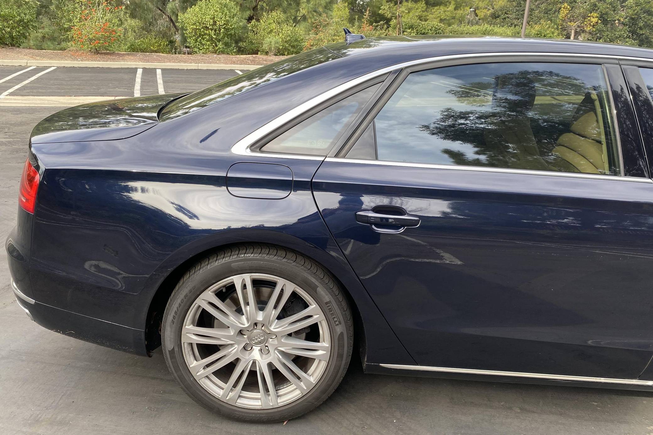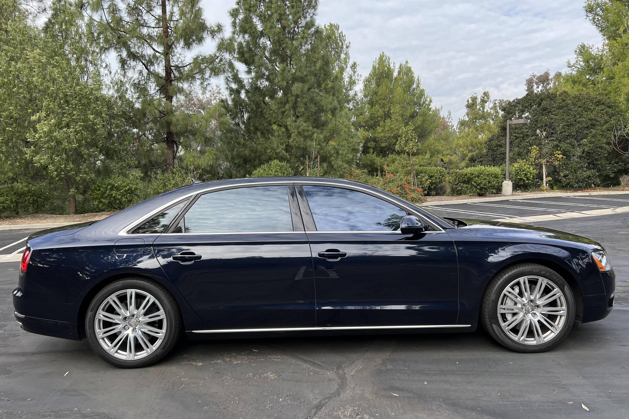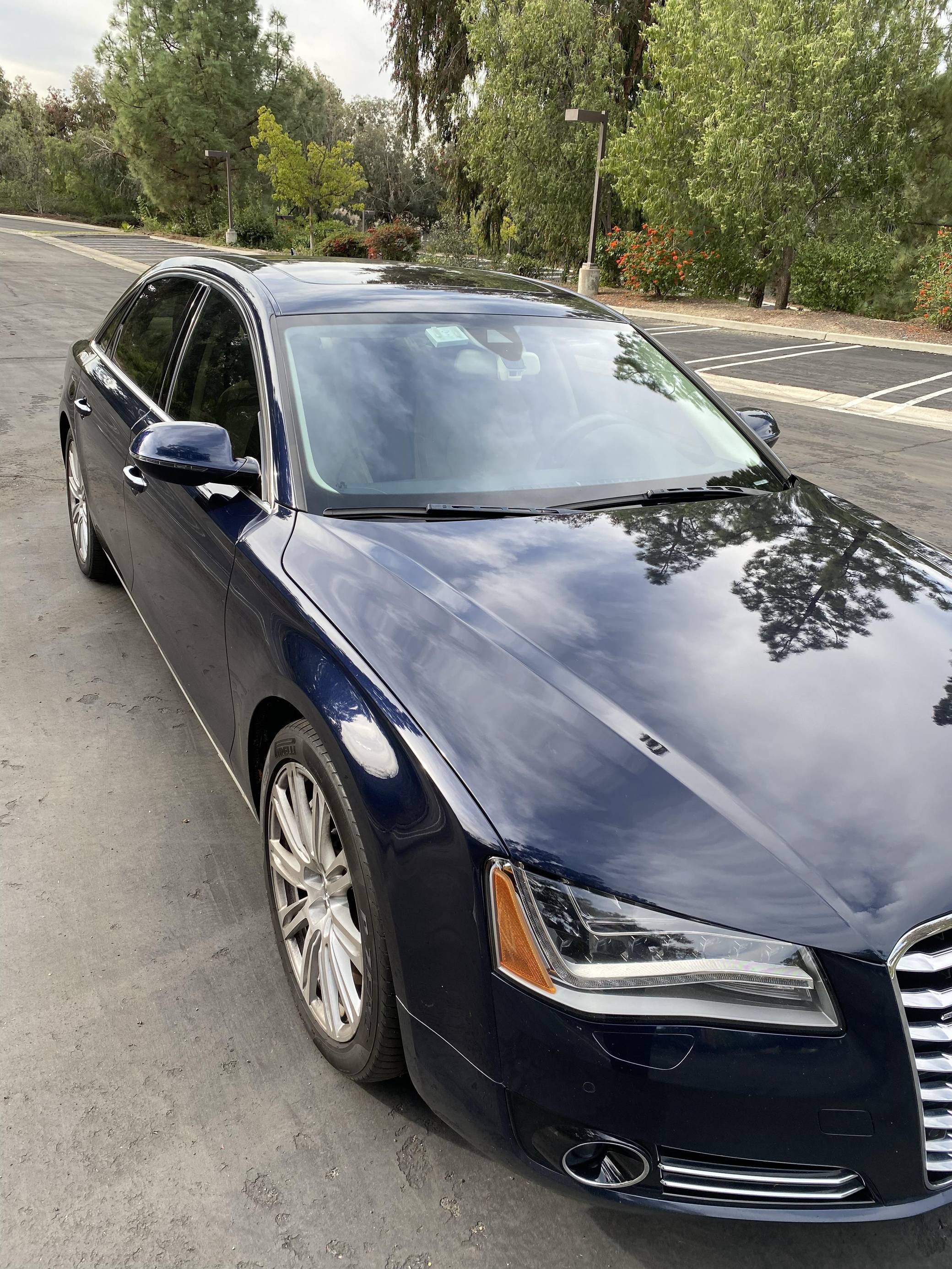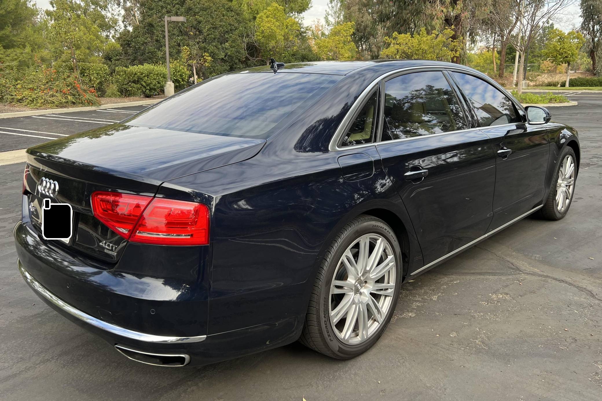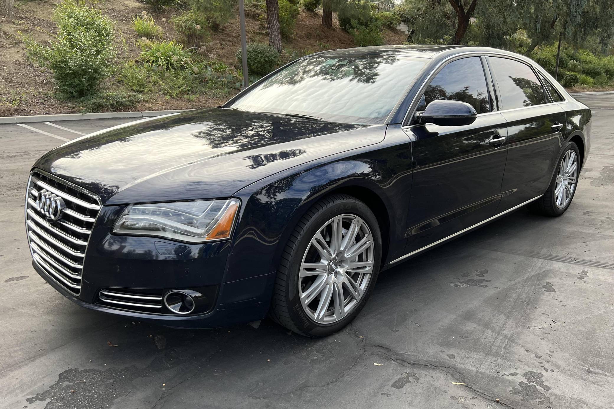 2013 Audi A8 L 4. 0T, finished in Night Blue Pearl with a Velvet Beige interior. Factory equipment includes the Driver Assistance Package, the Comfort Package, Camera Assistance Package, Cold Weather Package, dual pane glass, LED headlights, a panoramic sunroof, and more as detailed below. The seller mentions no modifications. The “D4” Audi A8 was produced from 2009 to 2017 as the German carmaker’s uber-luxury flagship sedan. It was offered with V6, V8, and W12 engines in North America, with the 4. 0-liter V8 capable of achieving 0-to-60 mph in 3. 9 seconds despite having a curb weight of over 4,400 pounds. Power comes from a 4. 0-liter turbocharged V8, rated at 420 horsepower and 444 lb-ft of torque. Output is sent to all four wheels via an 8-speed automatic transmission and Audi's Quattro permanent all-wheel-drive system.