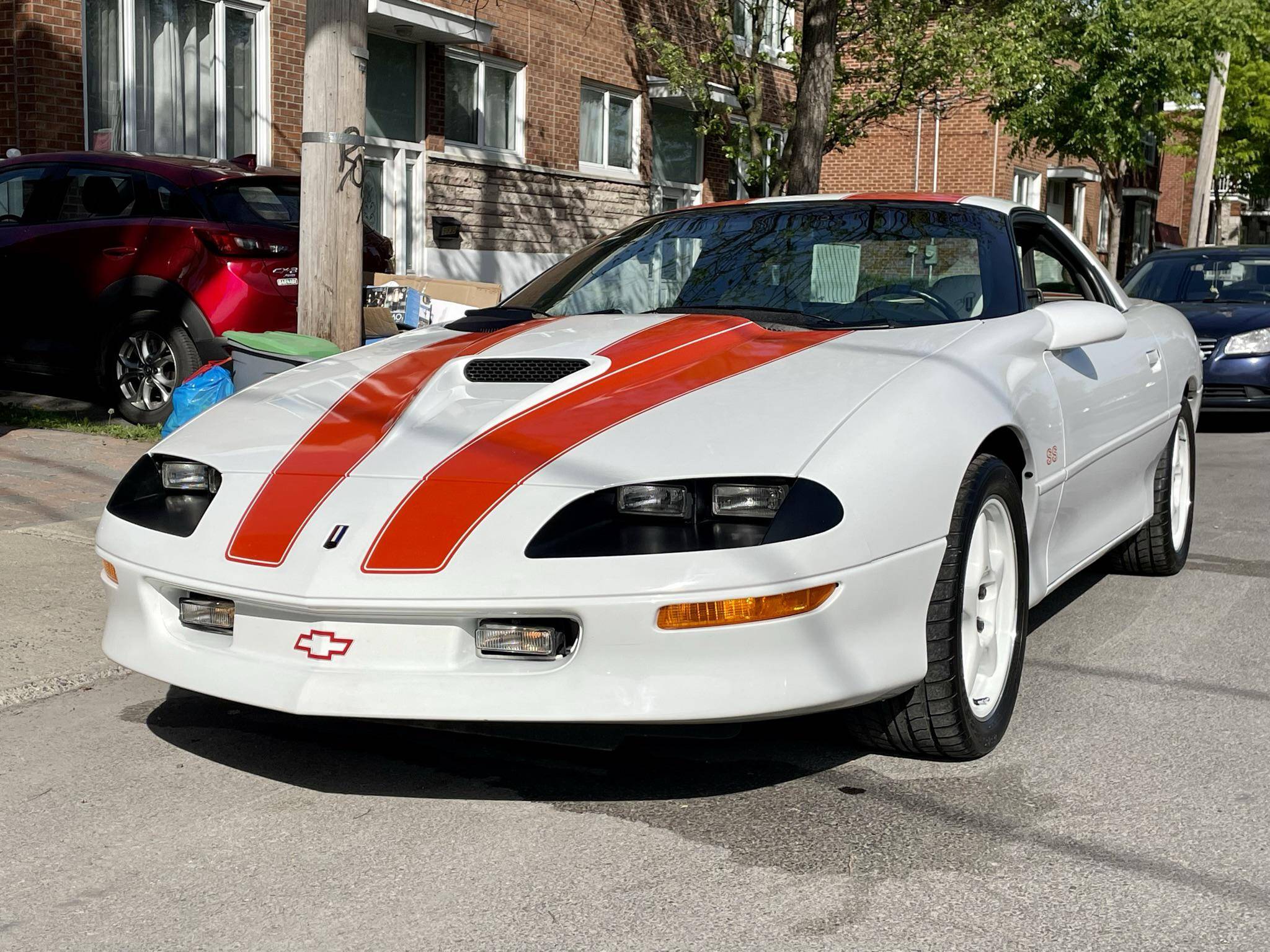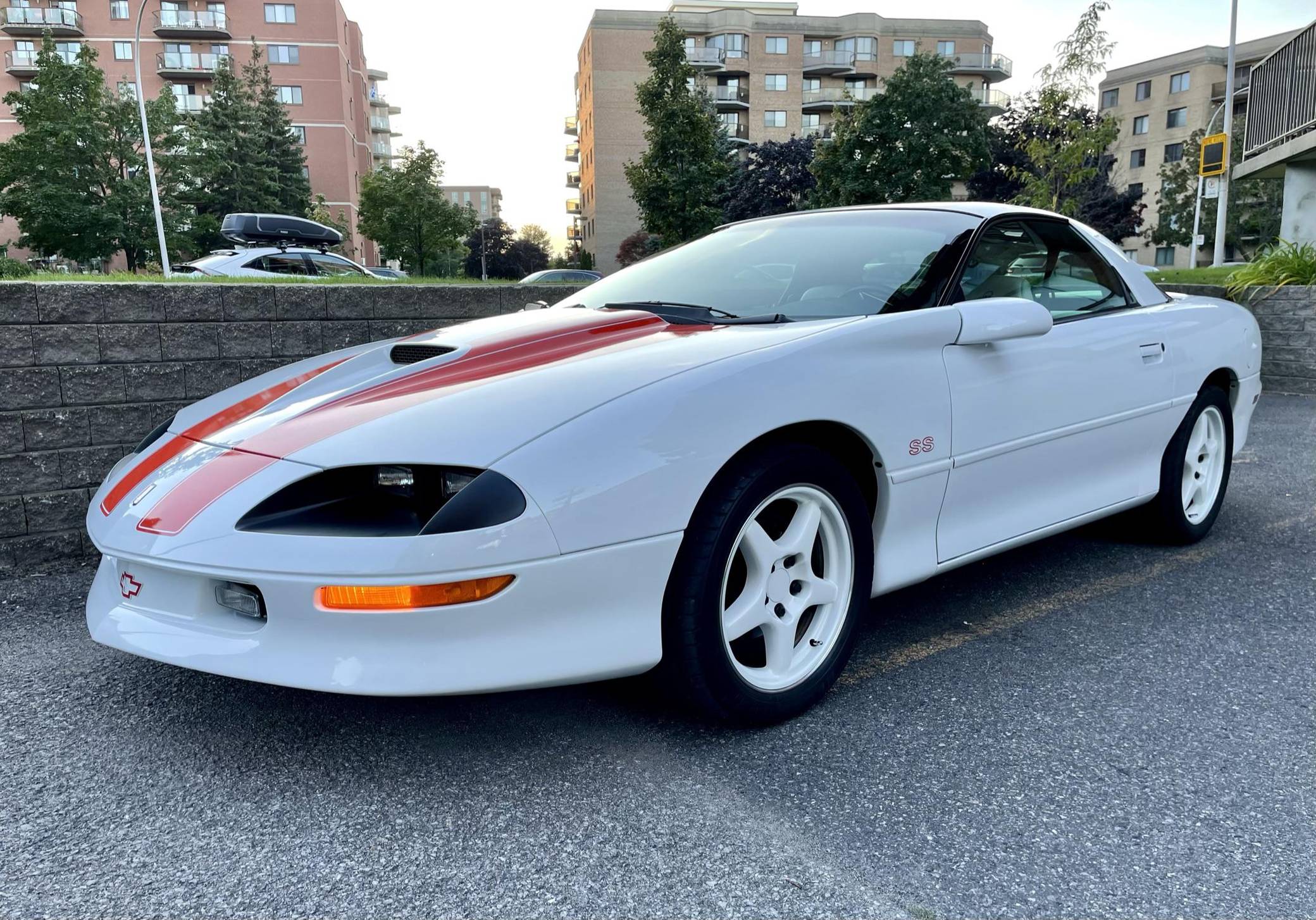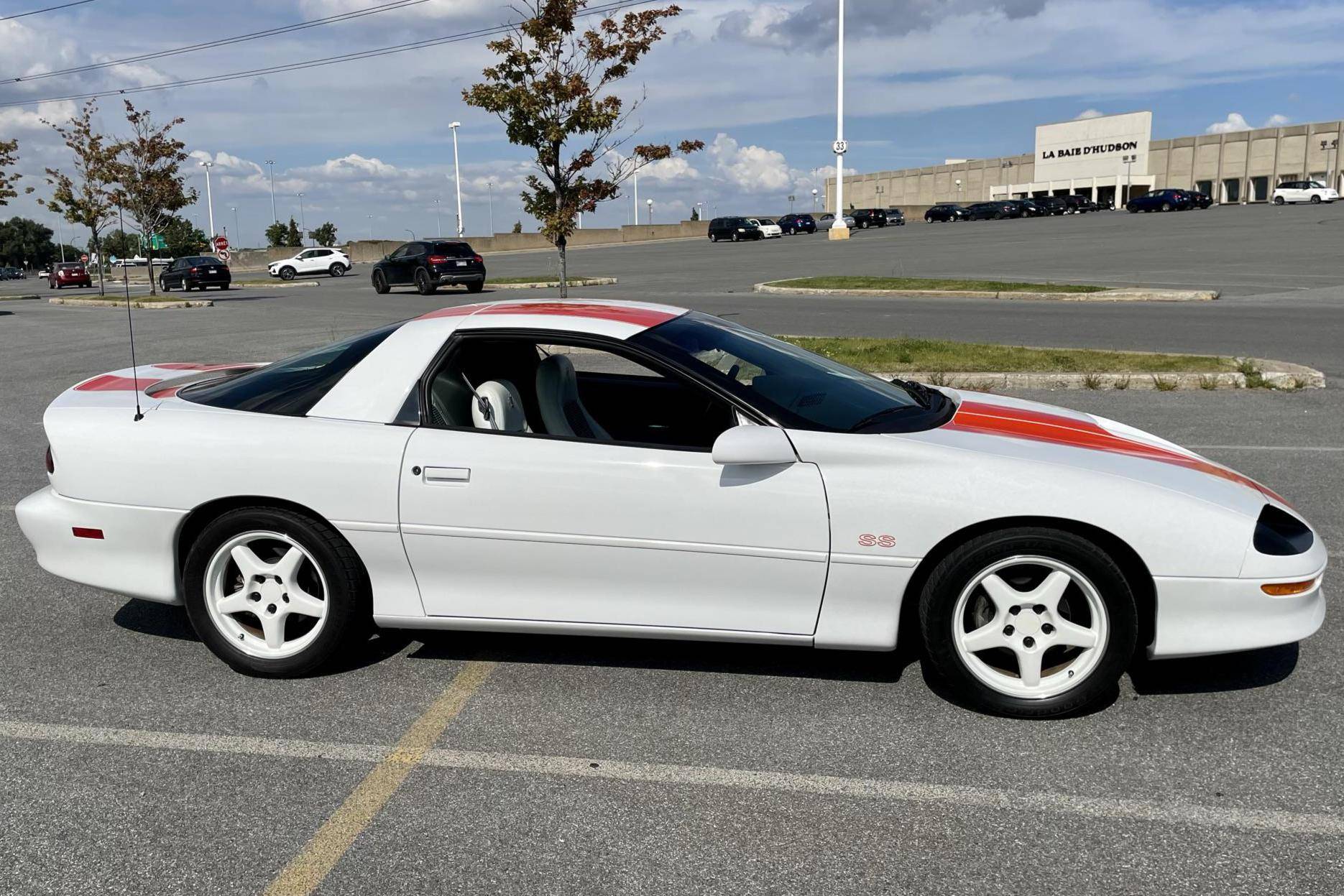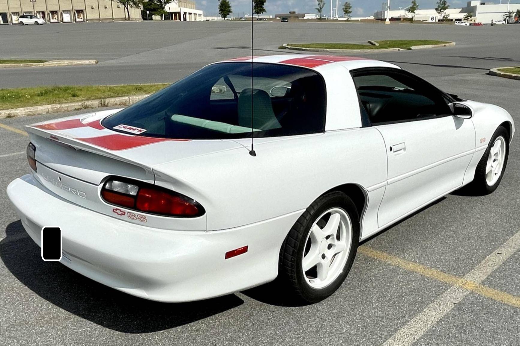 THIS. . . is a 1997 Chevrolet Camaro Z28 SS 30th Anniversary Edition, finished in Arctic White with a white and houndstooth interior. This Camaro is equipped with the desirable 6-speed manual transmission. This Camaro is a Canadian-spec example located in Quebec, and its metric odometer indicates about 12,600 kilometers, which is about 7,900 miles. A partial list of notable equipment includes 17-inch wheels, the 30th Anniversary Package, Hugger Orange stripes, leather upholstery with houndstooth cloth inserts, air conditioning, and a CD player. This Camaro received the LT4 alteration package from SLP Engineering when new. Upgrades include a balanced and blueprinted "LT4" V8 engine, an SLP dual exhaust, a Torsen limited-slip differential, an engine oil cooler, Bilstein shocks, and a Hurst short throw shifter. As shown in the documentation in the gallery, this 30th Anniversary SS is #001C, the first out of six LT4 models produced for the Canadian market. The fourth-generation Chevrolet Camaro modernized the iconic American sports car in terms of both styling and performance with a streamlined design and stronger, more modern engines than its predecessor. It was built from the 1993-2002 model years. Power comes from an "LT4" 5. 7-liter V8 engine, rated at 330 horsepower and 340 lb-ft of torque. Output is sent to the rear wheels via a 6-speed manual transmission.
