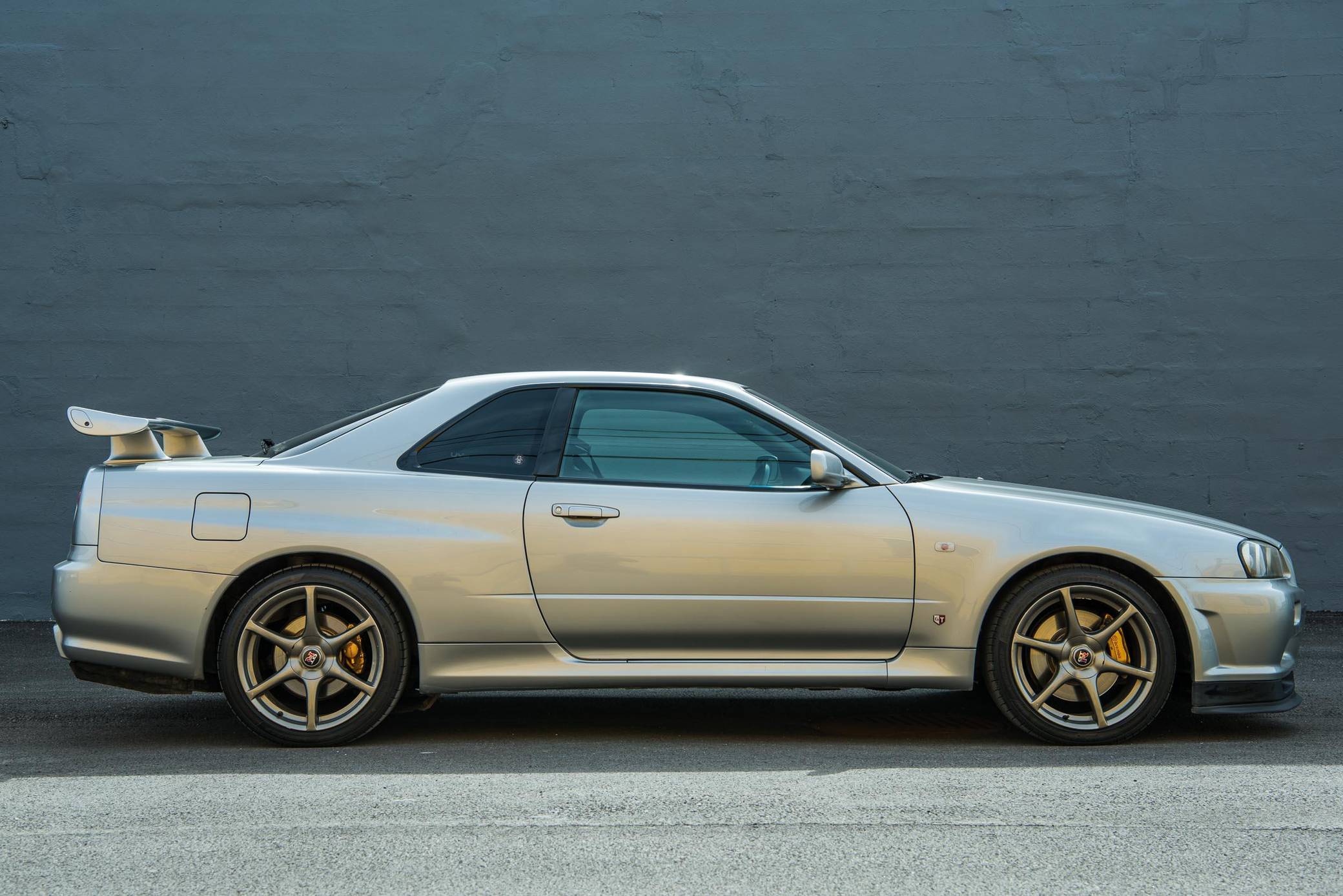 2000 Nissan Skyline GT-R, finished in Sonic Silver with a black and gray interior. This GT-R Series 1 is a Japanese-spec, originally right-hand-drive example. This Skyline GT-R comes equipped with a 6-speed manual transmission. Factory equipment includes 18-inch six-spoke wheels, Brembo brake calipers, HICAS rear-wheel-steering system, xenon headlights, fog lights, rear wiper, adjustable rear spoiler, rear diffuser, textured upholstery with Alcantara inserts, center digital screen with real-time information display gauges, automatic climate control, among others listed below. Modifications reported by the seller include a left-hand drive interior conversion, V-Spec asymmetrical-style front bumper, V-Spec-style rear diffuser, V-Spec rear badge, Pioneer head unit with navigation, Bluetooth connectivity, and remote control, Nismo white gauge cluster, ARC radiator, and an aftermarket cold air intake. The "R34" generation of the Skyline GT-R was introduced in January 1999 and was available exclusively in coupe configuration. It was slightly shorter than the "R33" and was seen by enthusiasts as a return to form for the Skyline. The GT-R models were equipped with the infamous "RB26DETT" 6-cylinder engine and an updated interior with a digital center dash screen that brought the Skyline into the 21st century. Production ended in 2002. Power comes from a 2. 6-liter twin-turbocharged straight-6, rated at 276 horsepower and 289 lb-ft of torque. It spins the four wheels via a 6-speed manual transmission.