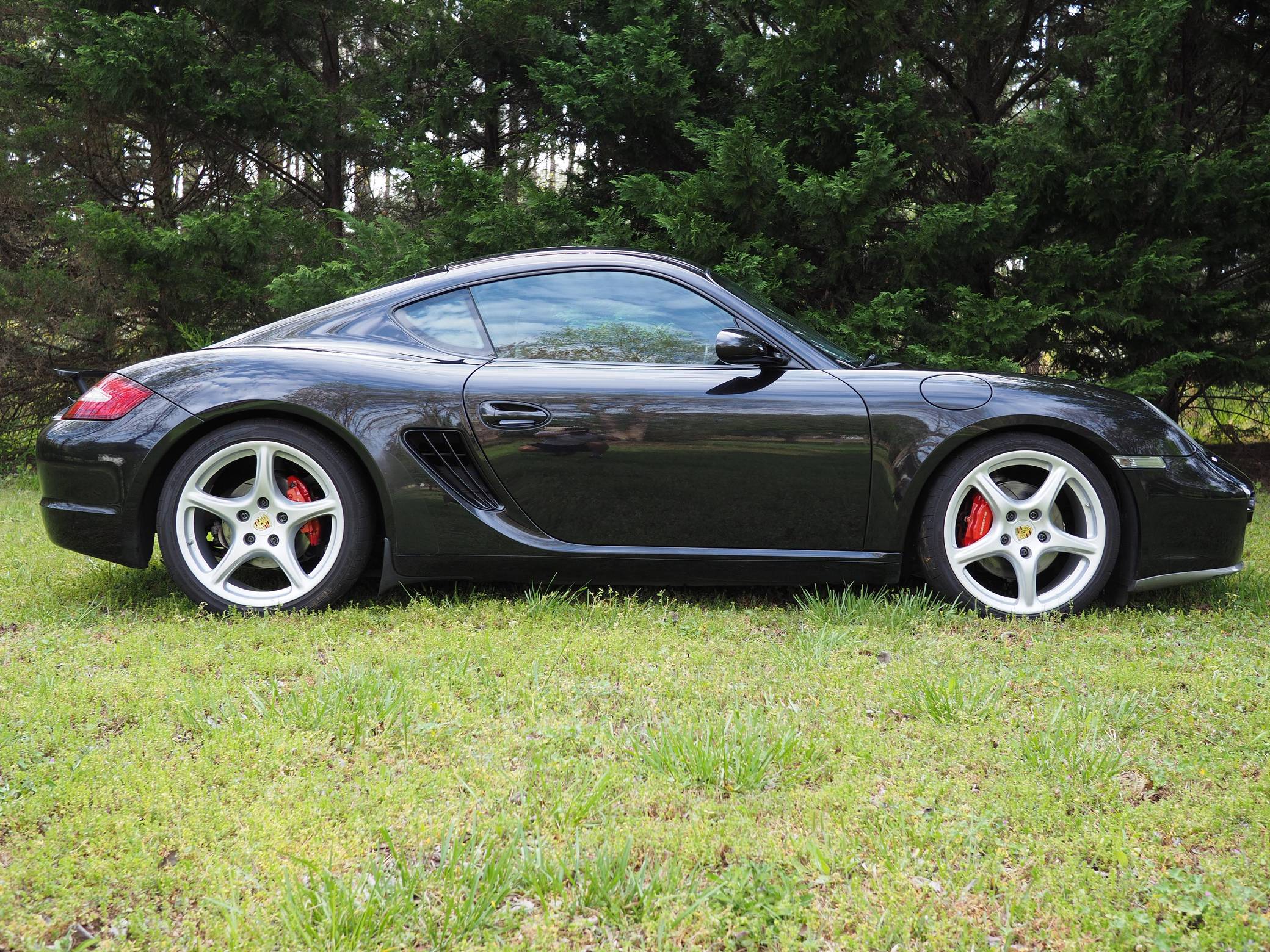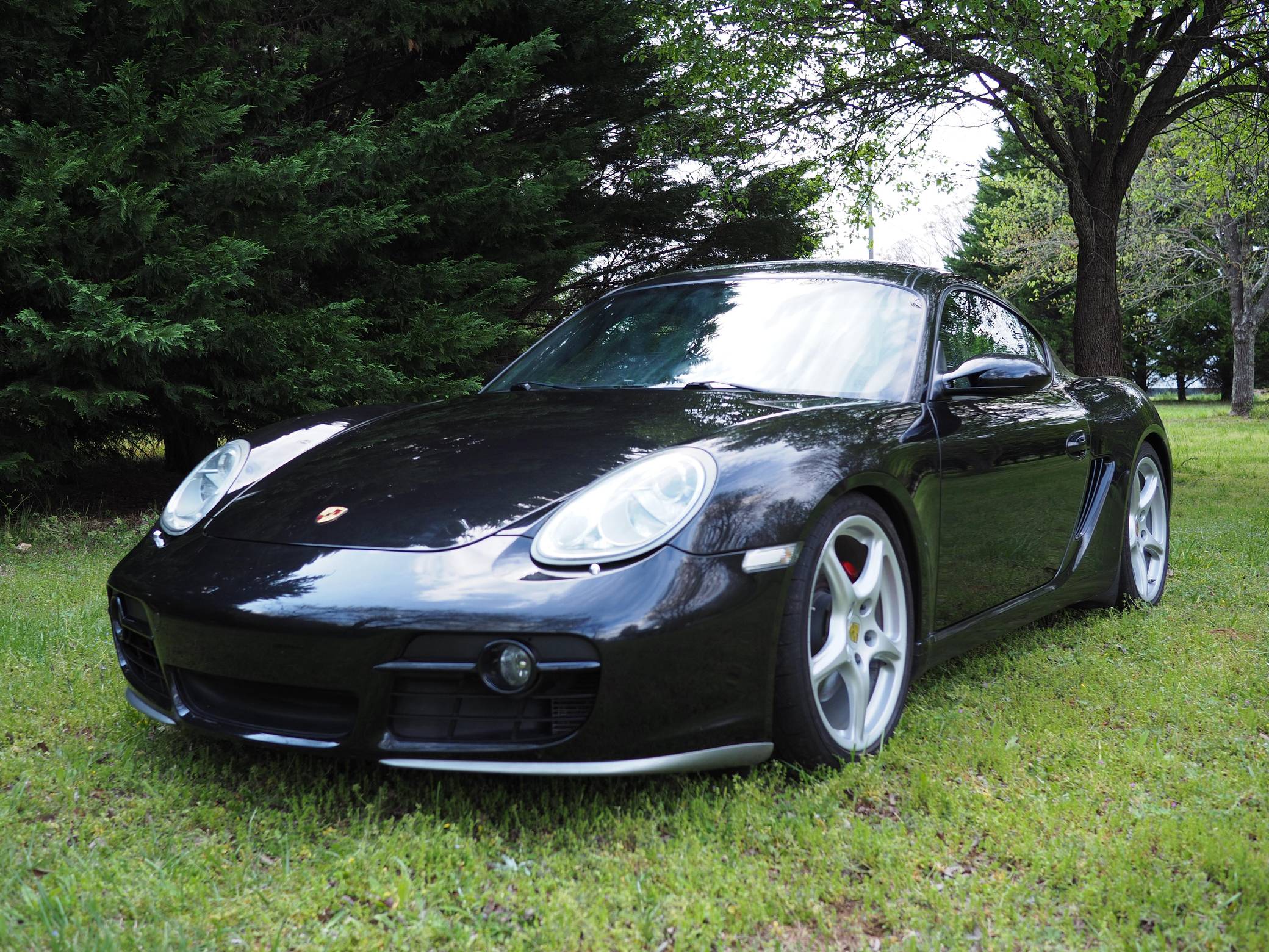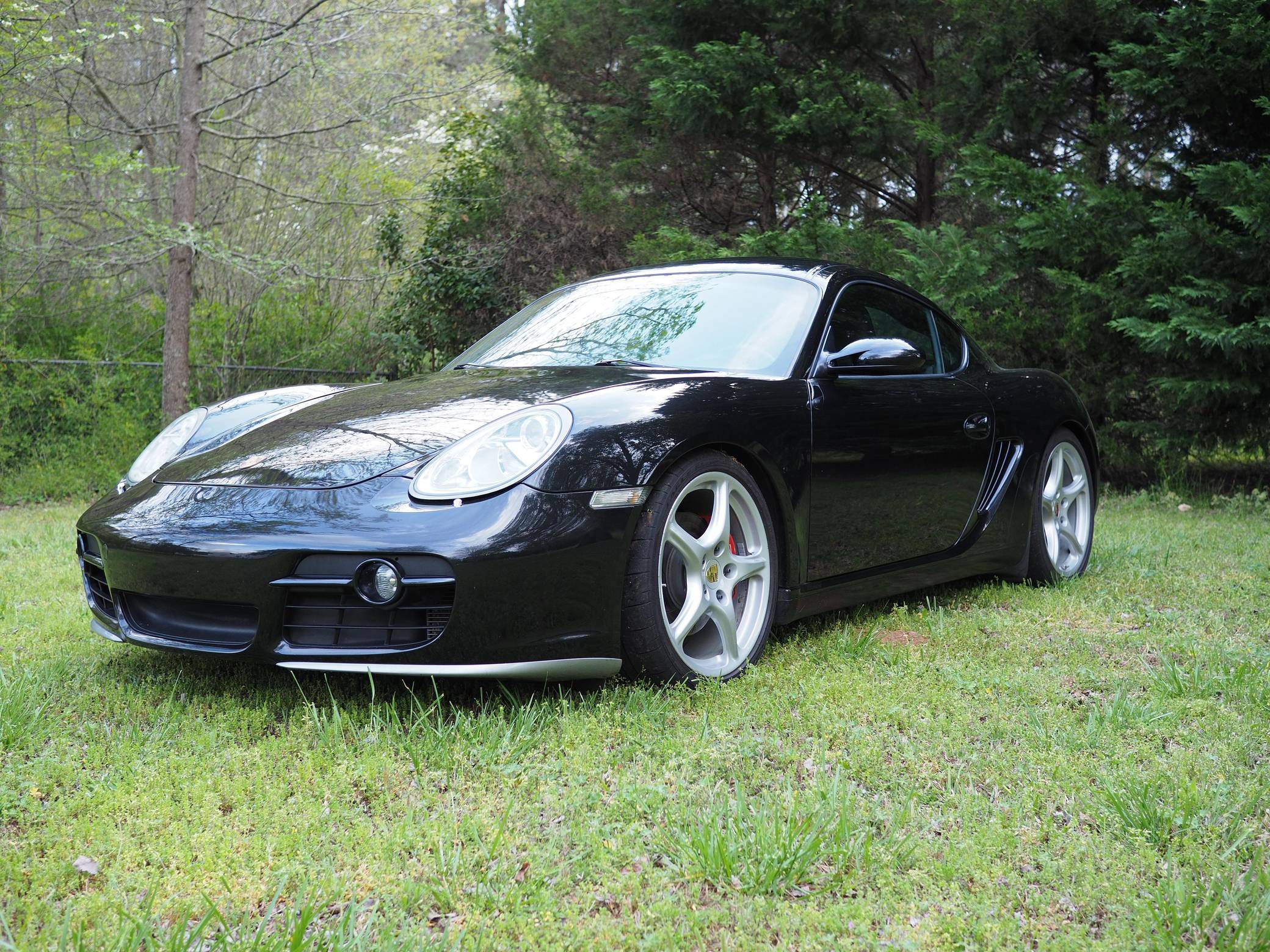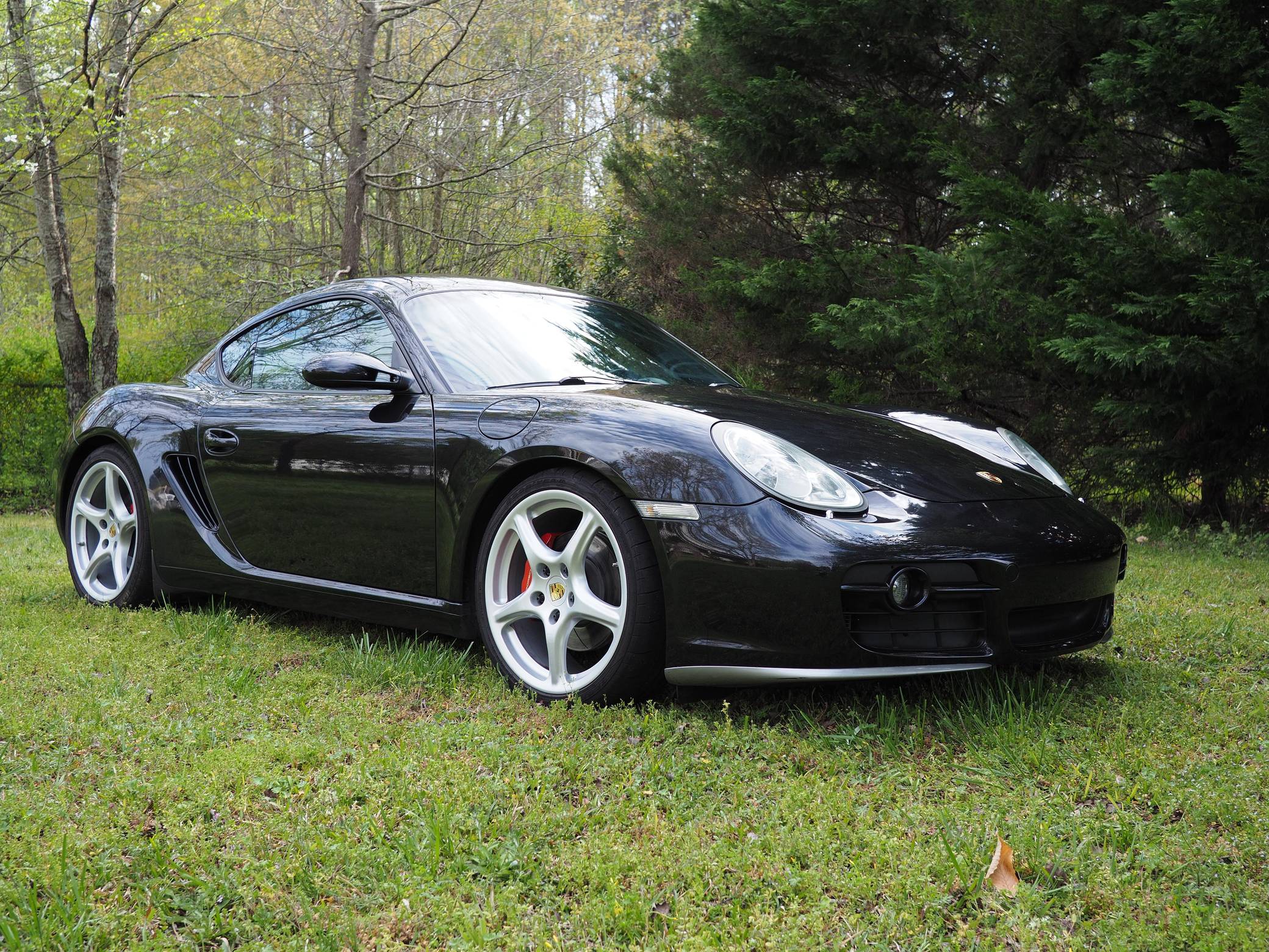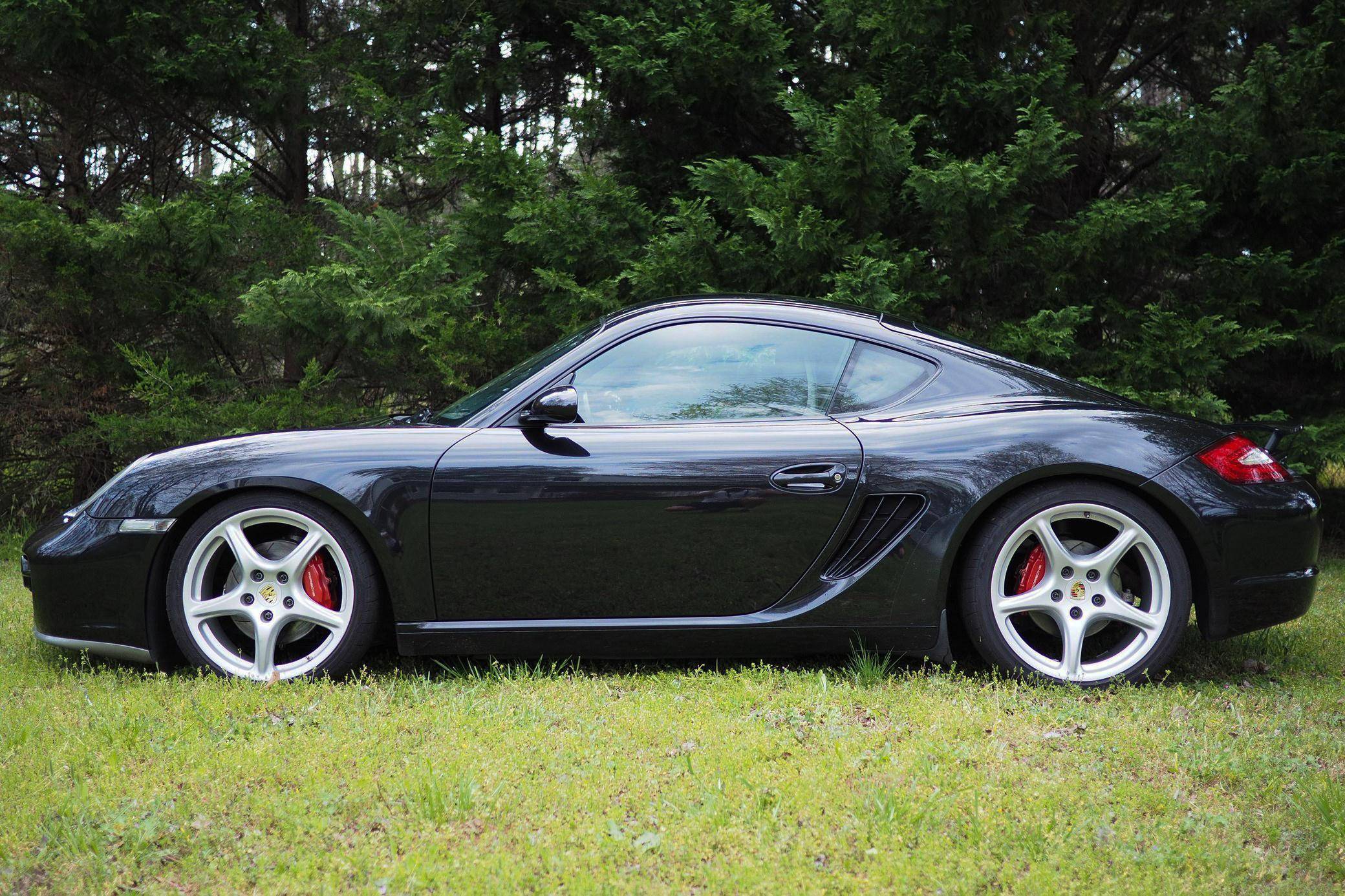 2006 Porsche Cayman S, finished in Basalt Black Metallic with a black interior. This Cayman is equipped with a 6-speed manual transmission. A partial list of notable equipment includes 19-inch Carrera Classic wheels, heated sport seats, a Bose surround sound system, bi-xenon headlamps, leather upholstery, and more listed below. Modifications reported by the seller include a Fabspeed performance package, which includes headers, an exhaust, and an ECU tune. Other modifications include an IPD intake plenum, Öhlins Road & Track coilover suspension, an X51-style baffle in the oil pan, an Android head unit, and more listed below. Porsche introduced the original Cayman as the Boxster's long-awaited coupe counterpart for the 2006 model year. Called 987 internally, it was more than merely a Boxster with a fixed top and a hatch, and about 20% of the parts used to build it were new. Some enthusiasts placed the Cayman's chassis above the 911 in the Porsche pecking order because it was nimble, quick, and extremely well-balanced. Power comes from a 3. 4-liter flat-6, rated at 295 horsepower and 251 lb-ft of torque in stock form. Due to the modifications, this Cayman may make more power, however, a dyno reading is not provided. It spins the rear wheels via a 6-speed manual transmission.