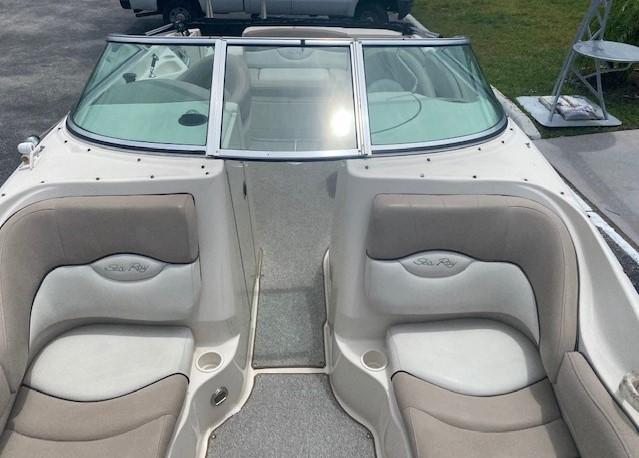 This 2004 220 Sundeck Sea Ray is in great working condition! It includes a starboard side entertainment center with sink and storage, a portside bucket seat that converts into a rear-facing sun lounger, a huge bow seating area for the whole family, and a fully enclosed head compartment with a lockable door. Other features included are navigation lights, a swim platform with a boarding ladder, cup holders, snap-in mat, a radio, baitwell, speakers, trim gauge, fuel gauge, bilge pump, and a bimini top.