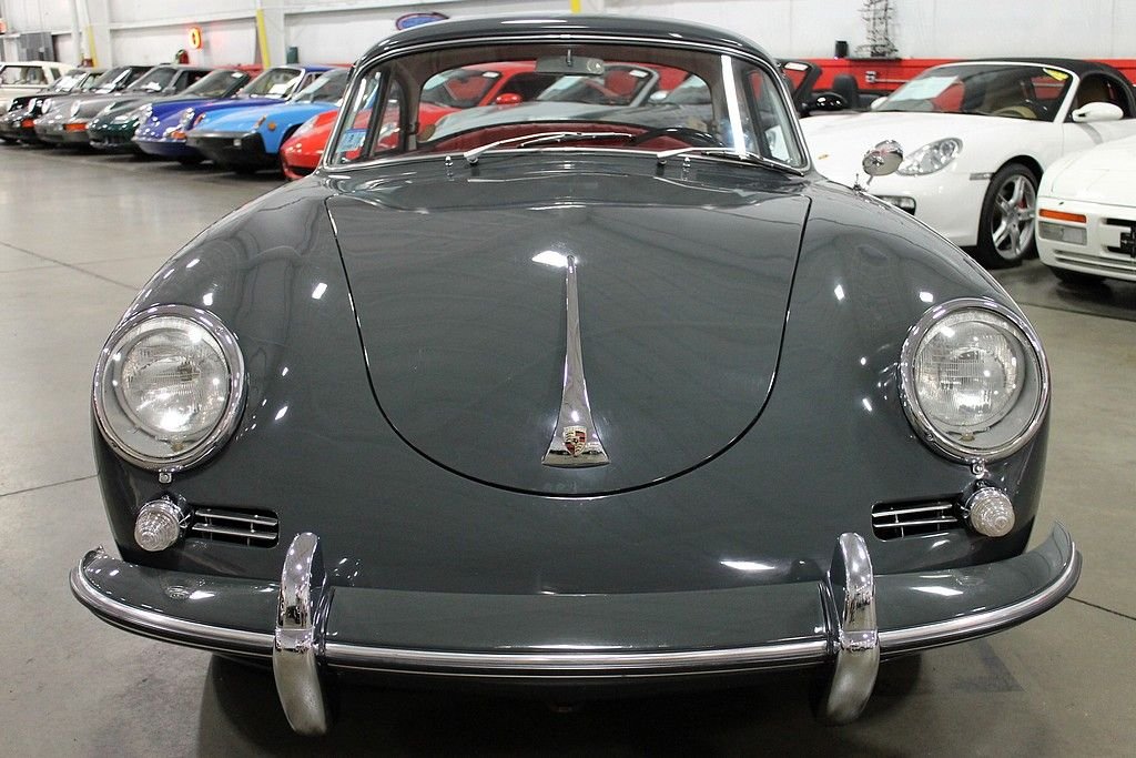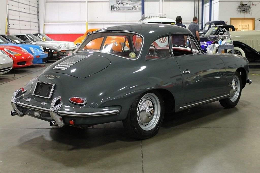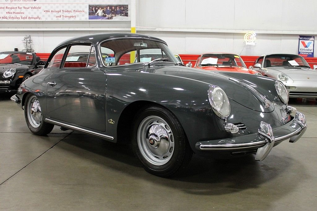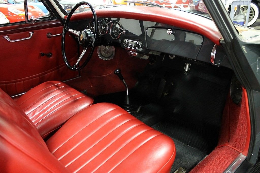 In 1961, Porsche farmed out the production of its 356 cars to the Karmann works in Onasbruck. At that time, they already made 356 Cabriolet bodies as well as regular 356 Coupes. In an attempt to broaden the product line and increase car sales, Porsche created a hardtop coupe from its Cabriolet line of cars. The first of these cars (1961 production called a T5 body style) was in fact a Cabriolet body with the addition of a hard top manufactured (welded) into place. Titled as a 1962, t he 1961 Porsche 356 Notchback Karmann Coupe offered here is a two owner car that was originally purchased new in Germany and brought here to the United States residing most of its life in California. A ground up style restoration was performed on this non problematic car in the early 90's and has been kept and cared for ever since. The car is finished in Slate Gray paint over red interior. At this point, the original 1600 engine was replaced with a 1600 SC engine from a 1965 model. According to the owner, the engine was freshly rebuilt and warmed over by TRE Motorsports in Van Nuys, CA. Today, the car runs and performs as good as any 356 Porsche that we have driven, and the car remains in excellent driver quality condition still retaining the original undercarriage. Due to the increasing popularity of convertibles over the years, and the seemingly rarity of available and affordable 356 cabriolets, many of the notchback cars went the way of the cutting torch to expose the hidden cabriolet treasure underneath. It is believed that of the 1650 total Karmann Coupes produced, there are approximately 125 that have survived. Many enthusiasts now see the notchback becoming more desirable as they have now become more scarce — some enjoy racing these models due to the little known fact that they are more aerodynamic and somewhat faster than their Coupe brothers; some for the sheer fact that their distinctive "helmet" shape is unique when seen at car shows. It is no secret, that Porsche has become a Premier Marque in the investment car arena, a car such as this, with its unique design, low production and ultra-low survival rate, this car will pay dividends.