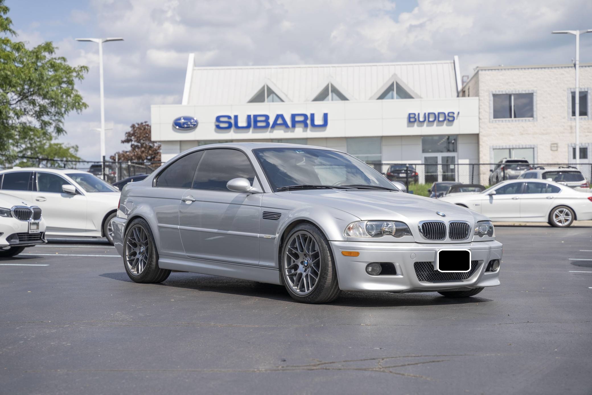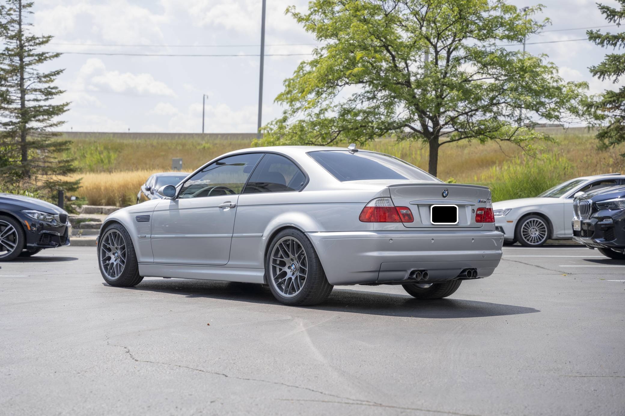 2004 BMW M3, finished in Titanium Silver Metallic with a black interior. This M3 is a U. S. -spec model that was imported to Canada in May 2019. The full list of modifications reported by the seller is detailed below. included a 6-speed manual transmission swap, a Dinan short shifter kit, 18-inch VMR VB3 CSL-style wheels, and Bilstein shocks and struts. The third-generation M3 was the final version to utilize a naturally aspirated straight-6 engine and was sold from 2000 to 2006. Power comes from a 3. 2-liter "S54" inline-6, rated at 333 horsepower and 262 lb-ft of torque. Output is sent to the rear wheels via a 6-speed manual transmission.