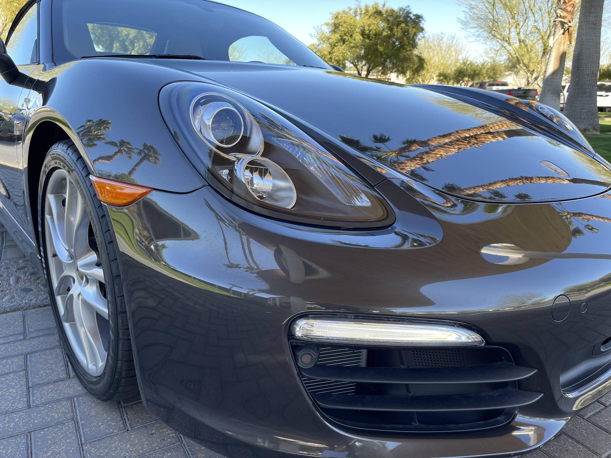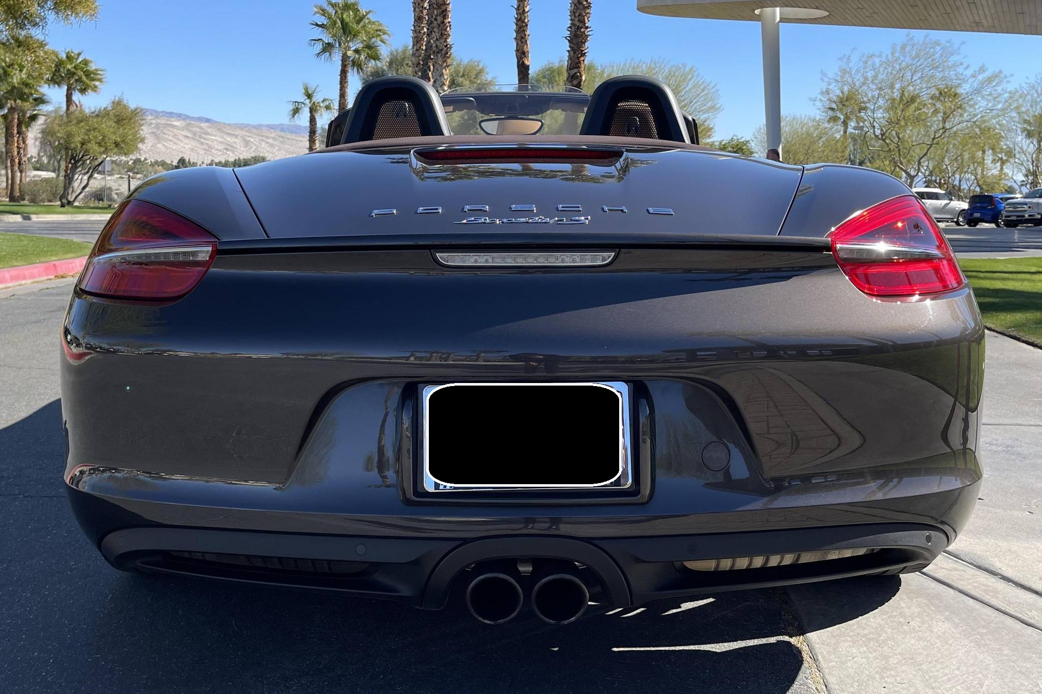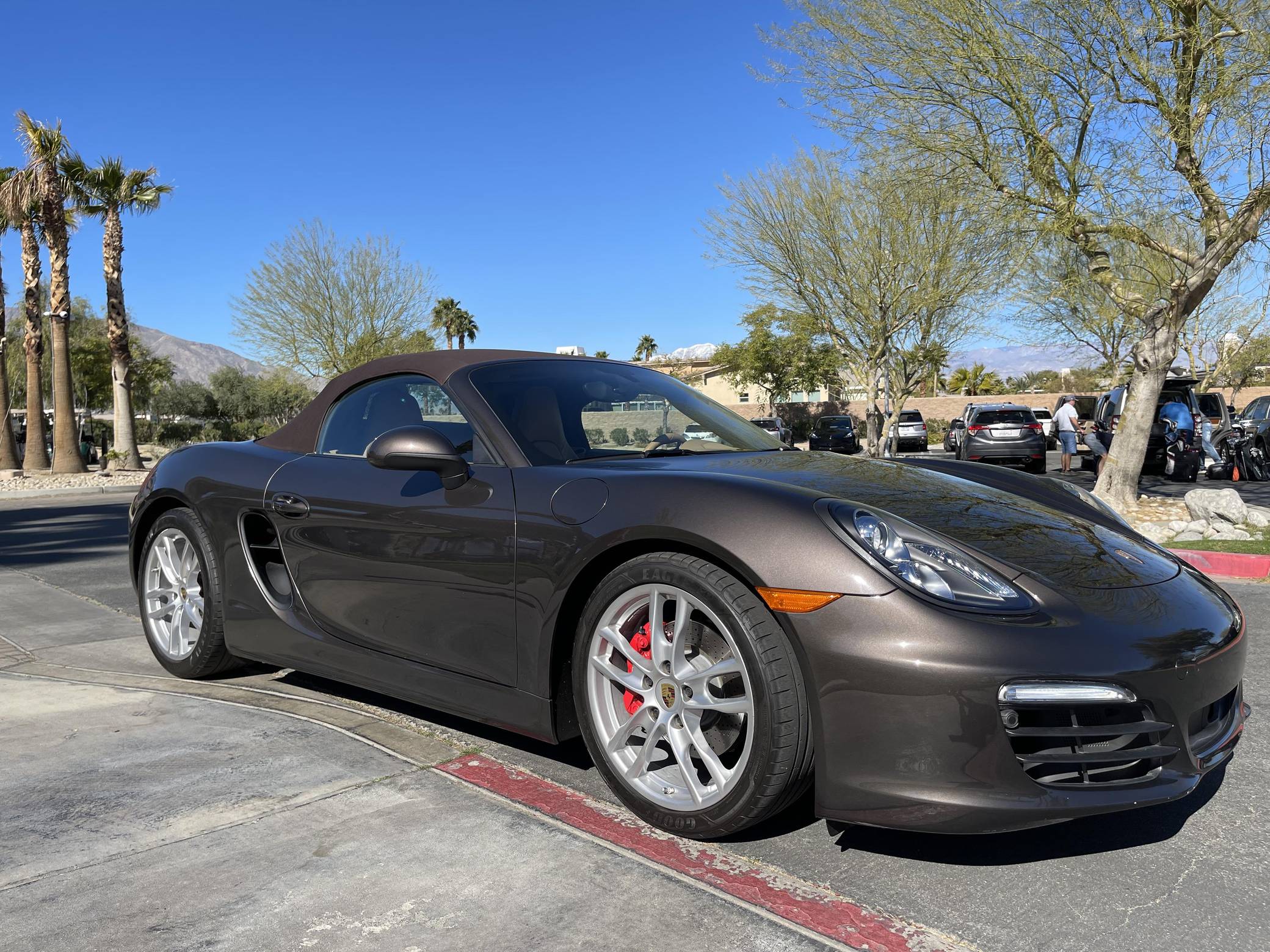 THIS… is a 2015 Porsche Boxster S, finished in Anthracite Brown Metallic with a brown soft top and a Luxor Beige interior. The odometer currently displays approximately 11,600 miles. It also confirms that this is a 2-owner car registered in California from new. According to the build sheet provided in the gallery, factory equipment includes 19-inch wheels, Porsche Active Suspension Management (PASM), a power-operated soft top, a speed-activated rear spoiler, leather upholstery, power-adjustable seats, and more as listed below. No modifications have been reported by the seller. The 981 Boxster was sold from 2013 through 2016 as Porsche's entry-level sports car, though this range-topping S model considerably shrinks the performance gap between itself and the base 911 Carrera. The S model sports a 77-pound weight reduction over the previous generation Boxster, and employs a slightly de-tuned (35 hp less) version of the same engine that powers its larger sibling. Power comes from a 3. 4-liter flat 6, rated at 315 horsepower and 266 lb-ft of torque. Output is sent to the rear wheels via a 7-speed PDK dual-clutch automatic transmission.