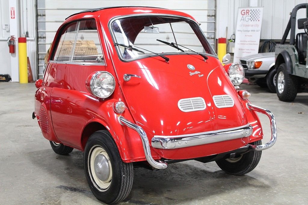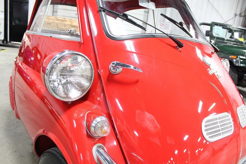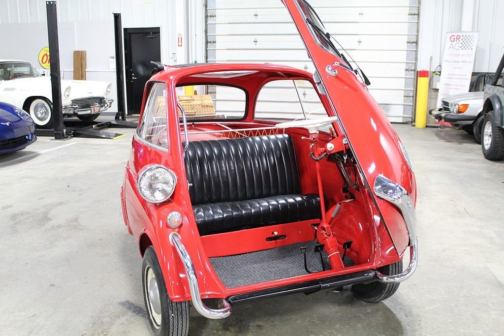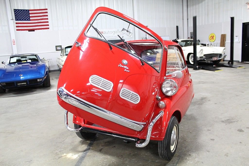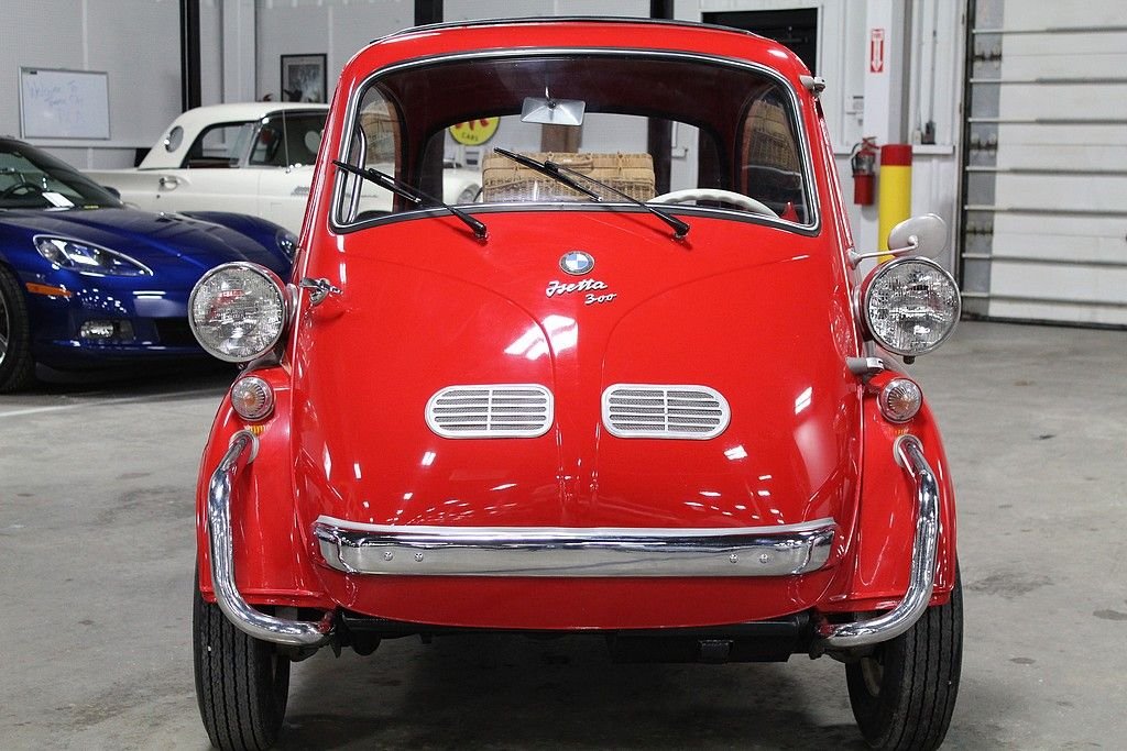 The Isetta was the world's first mass-produced micro car with sales exceeding 160,000 from 1955 through 1962. The car originated in Italy and then licensed to be built by several different companies around Europe. The most common and best engineered was made in Germany by BMW . They made the Isetta its own by redesigning the power plant around a BMW one-cylinder, four- stroke motorcycle engine. The first design was a 247 cc known as the 250 model but due to government regulations for motor vehicles, the design changed to a 298 cc engine making the model designation change to a 300. This helped the car be more nimble on the road making it the top speed 53 MPH . Other small changes happened at this time as well. Its predecessor the 250 featured a bubble window with a front vent while the 300 models featured a larger flat glass styling with a sliding window design for better ventilation. The model offered here is a rare “export model” featuring larger diameter 7” headlamps, optional front nerf bars and a front ventilation system in the front door. The car comes out of long-term ownership that has been very well taken care of. It has received a full restoration some time ago that still shows very well. This isetta has the much-desired luggage racks both on the back of the car and behind the rear passenger compartment. This 300 operates, as it should with everything in working order. It does not appear to leak or smoke and goes down the road flawlessly. As the prices continue to rise on these iconic cars, we are very pleased to present one that is ready to go for not nearly the cost as the ones sold recently.