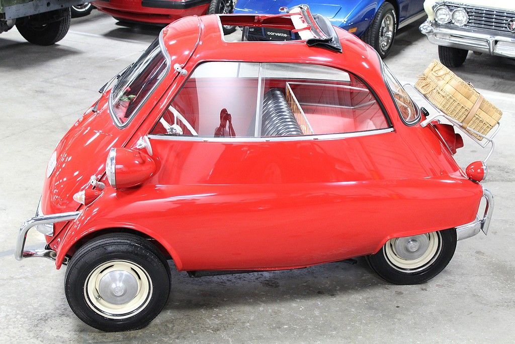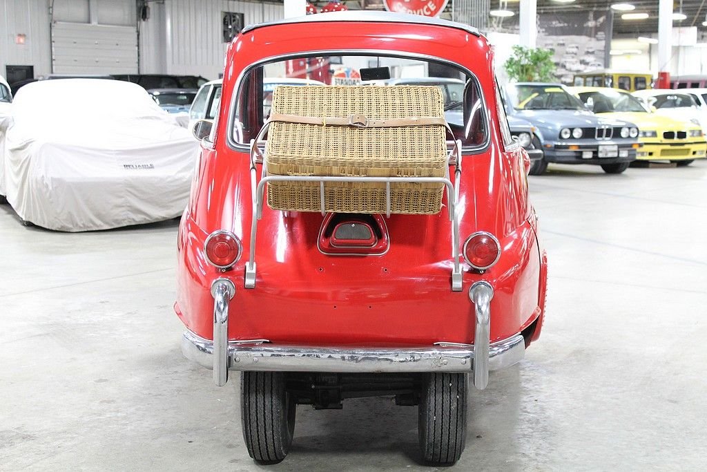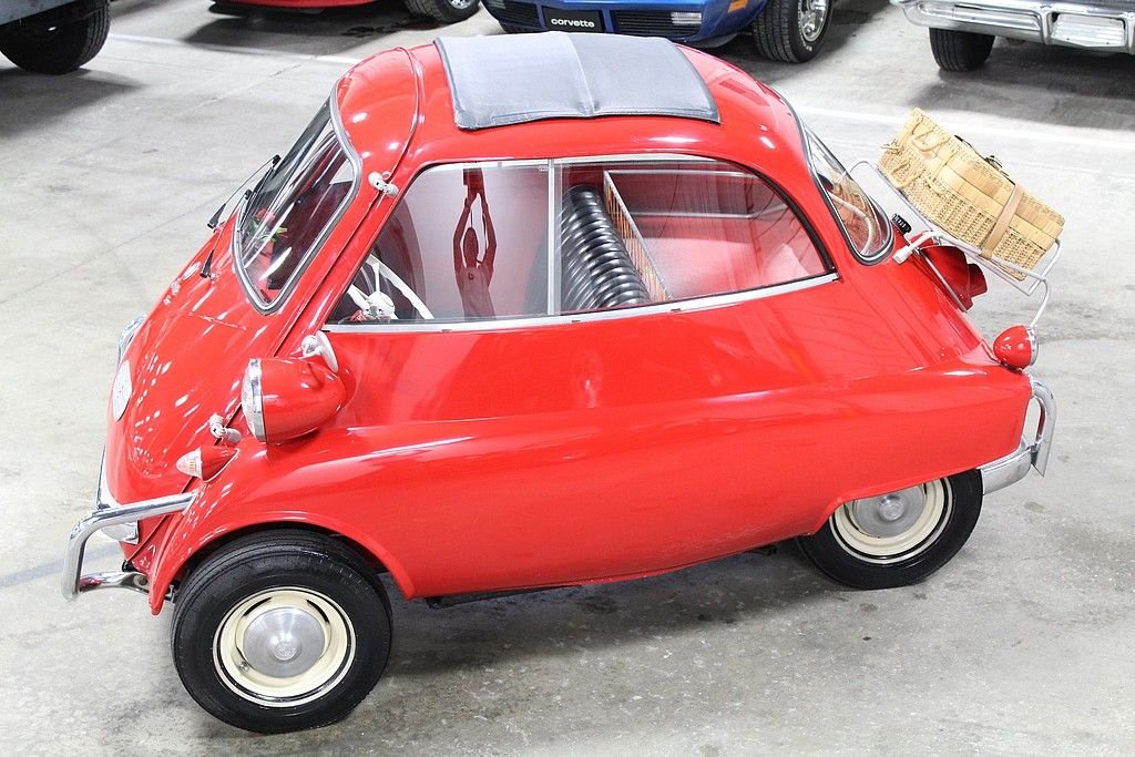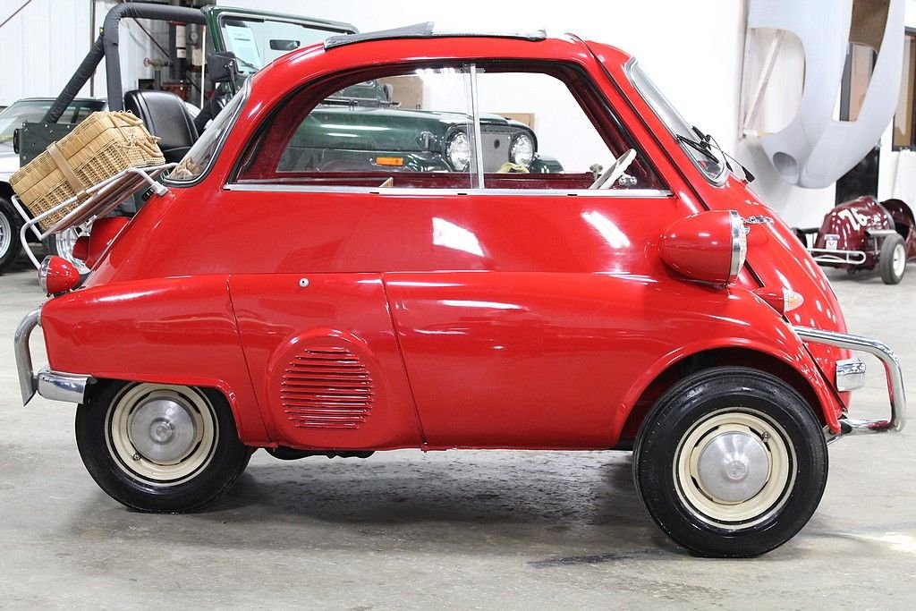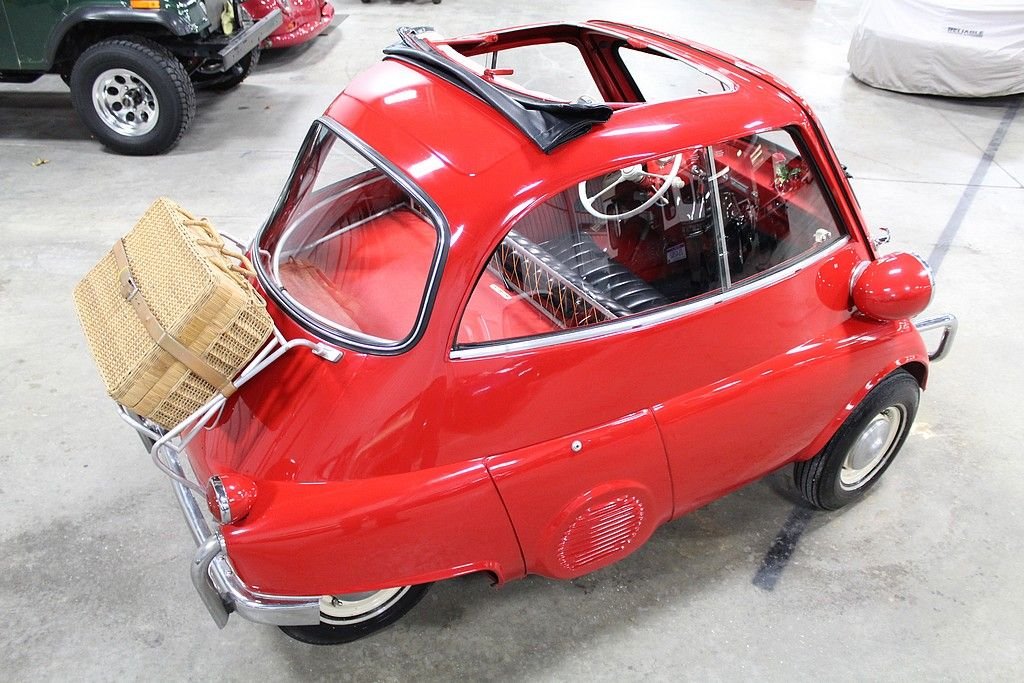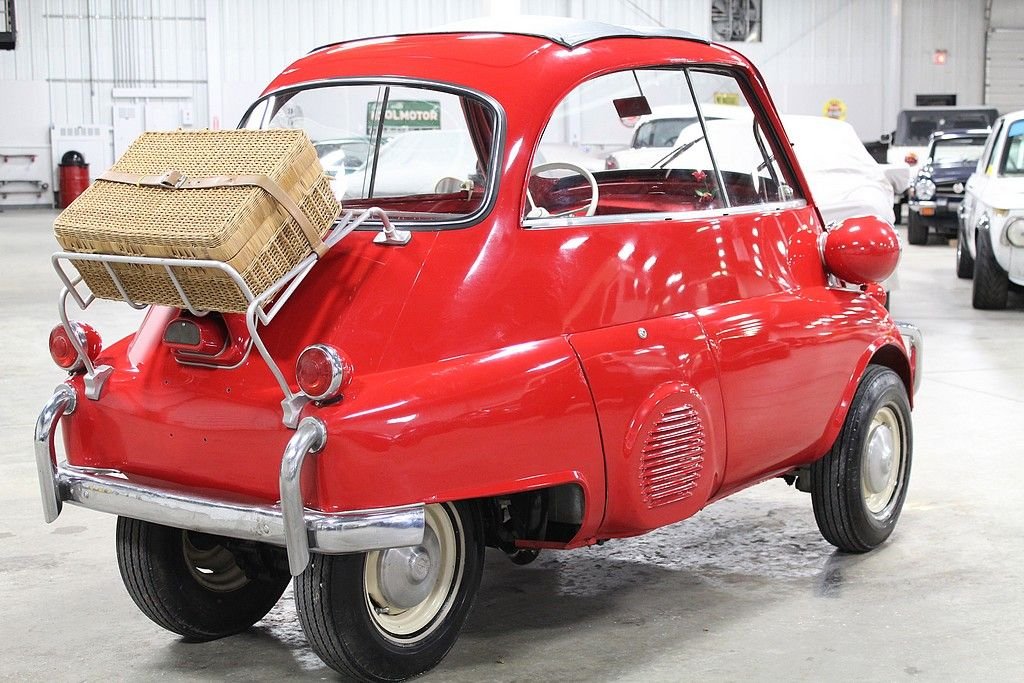 The Isetta was the world's first mass-produced micro car with sales exceeding 160,000 from 1955 through 1962. The car originated in Italy and then licensed to be built by several different companies around Europe. The most common and best engineered was made in Germany by BMW . They made the Isetta its own by redesigning the power plant around a BMW one-cylinder, four- stroke motorcycle engine. The first design was a 247 cc known as the 250 model but due to government regulations for motor vehicles, the design changed to a 298 cc engine making the model designation change to a 300. This helped the car be more nimble on the road making it the top speed 53 MPH . Other small changes happened at this time as well. Its predecessor the 250 featured a bubble window with a front vent while the 300 models featured a larger flat glass styling with a sliding window design for better ventilation. The model offered here is a rare “export model” featuring larger diameter 7” headlamps, optional front nerf bars and a front ventilation system in the front door. The car comes out of long-term ownership that has been very well taken care of. It has received a full restoration some time ago that still shows very well. This isetta has the much-desired luggage racks both on the back of the car and behind the rear passenger compartment. This 300 operates, as it should with everything in working order. It does not appear to leak or smoke and goes down the road flawlessly. As the prices continue to rise on these iconic cars, we are very pleased to present one that is ready to go for not nearly the cost as the ones sold recently.