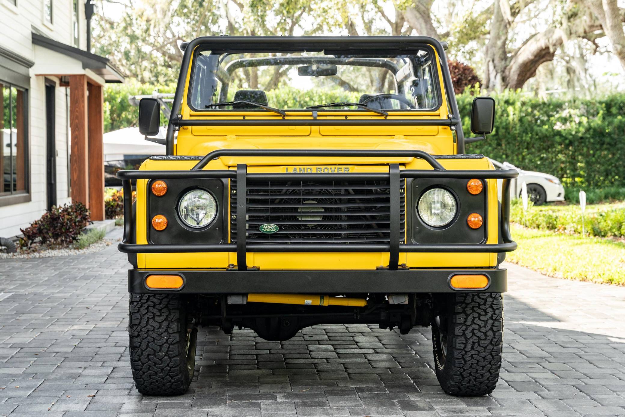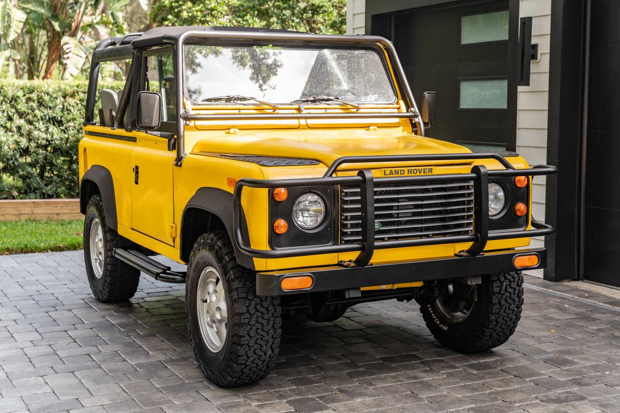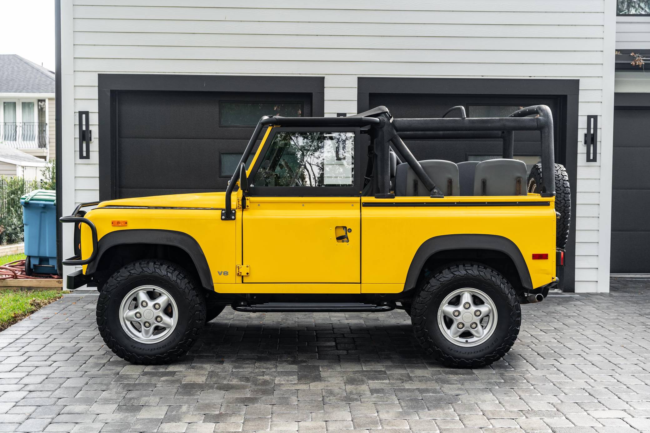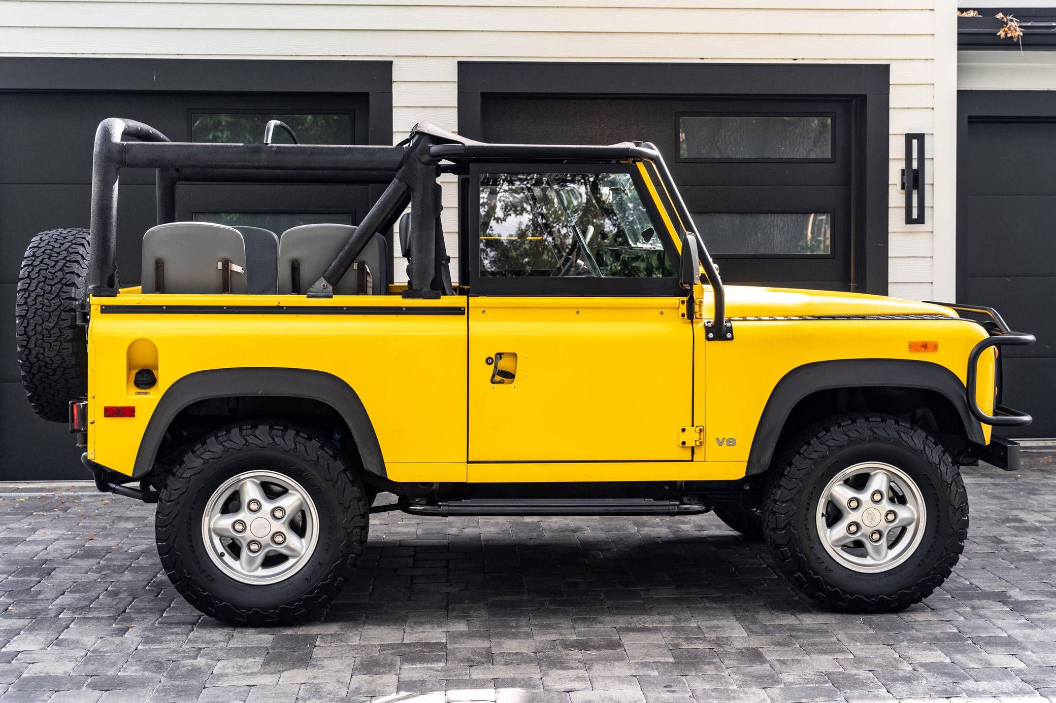 THIS. . . is a 1994 Land Rover Defender 90, finished in AA Yellow with a black soft top and a gray interior. This Defender is equipped with a 5-speed manual transmission. Factory equipment includes 16-inch wheels, a brush guard, side steps, a tubular rear bumper, and air conditioning, among others listed below. Modifications reported by the seller include Bilstein suspension, a powder-coated front bumper, exMoor trim cloth upholstery on front seats, aftermarket rear jump seats, and aftermarket front speakers. Land Rover launched the Defender in 1990 as an evolution of the 90 and 110 models. For overseas buyers, the big news was a new engine that made the off-roader more road-worthy. For drivers in America, the most important update was the introduction of a North American-Specification (NAS) model that arrived in 1993 with four doors and a model year later with two. The Defender conquered every obstacle with aplomb with one exception: new U. S. safety regulations. Sales ended after 1997, though production continued abroad until 2016. Power comes from a 3. 9-liter V8, rated at 182 horsepower and 232 lb-ft of torque. It spins the four wheels via a 5-speed manual transmission and a 2-speed transfer case.