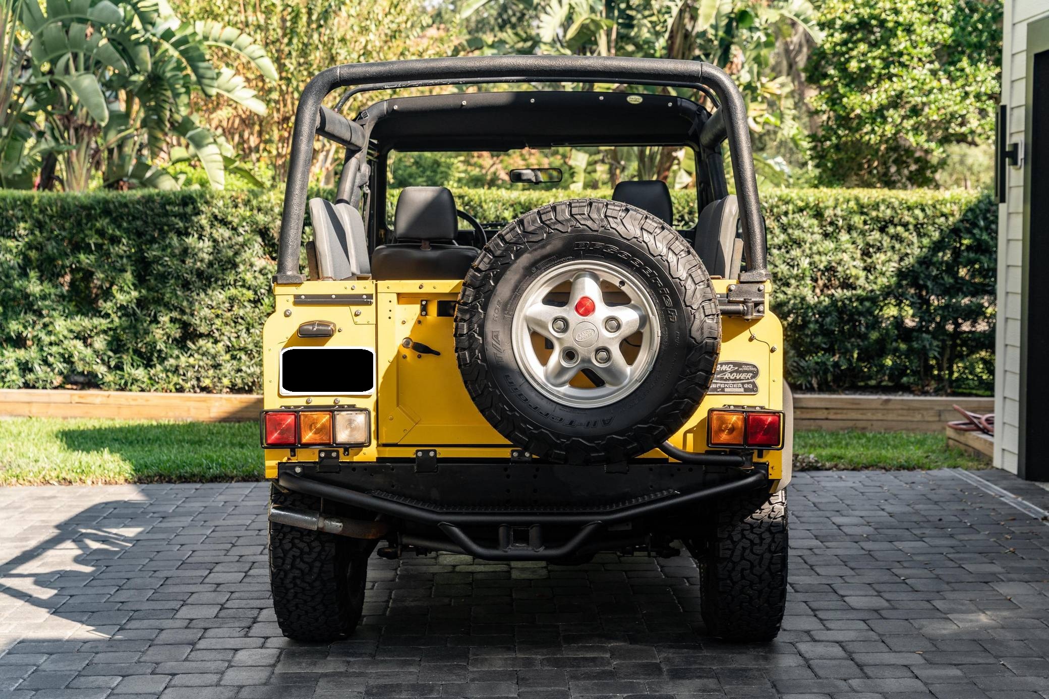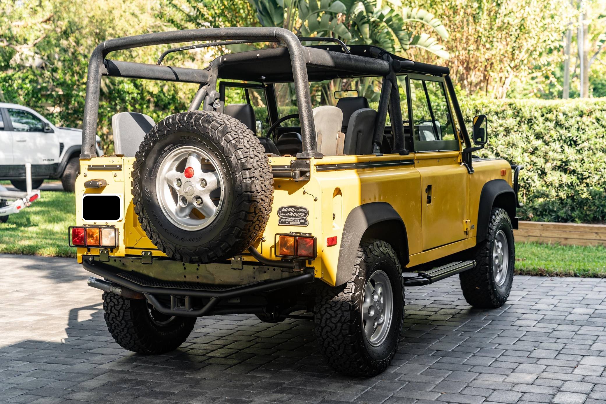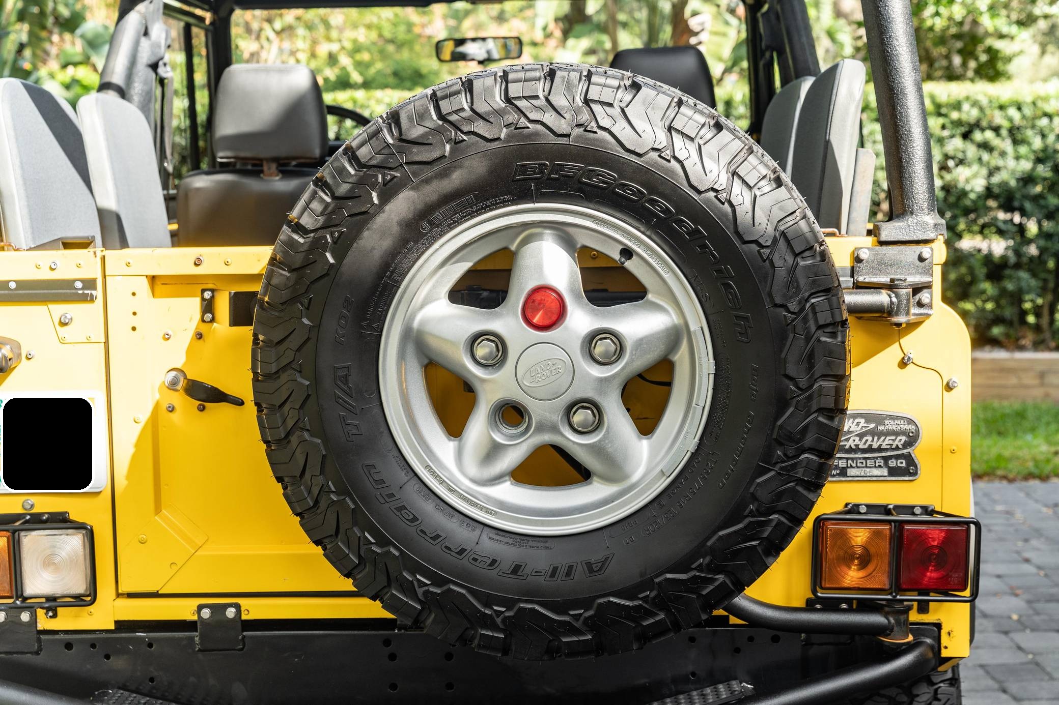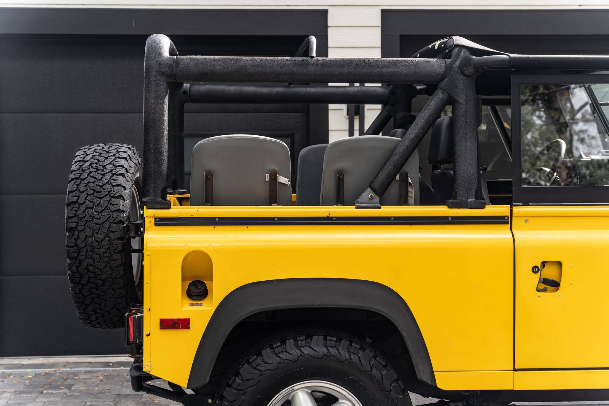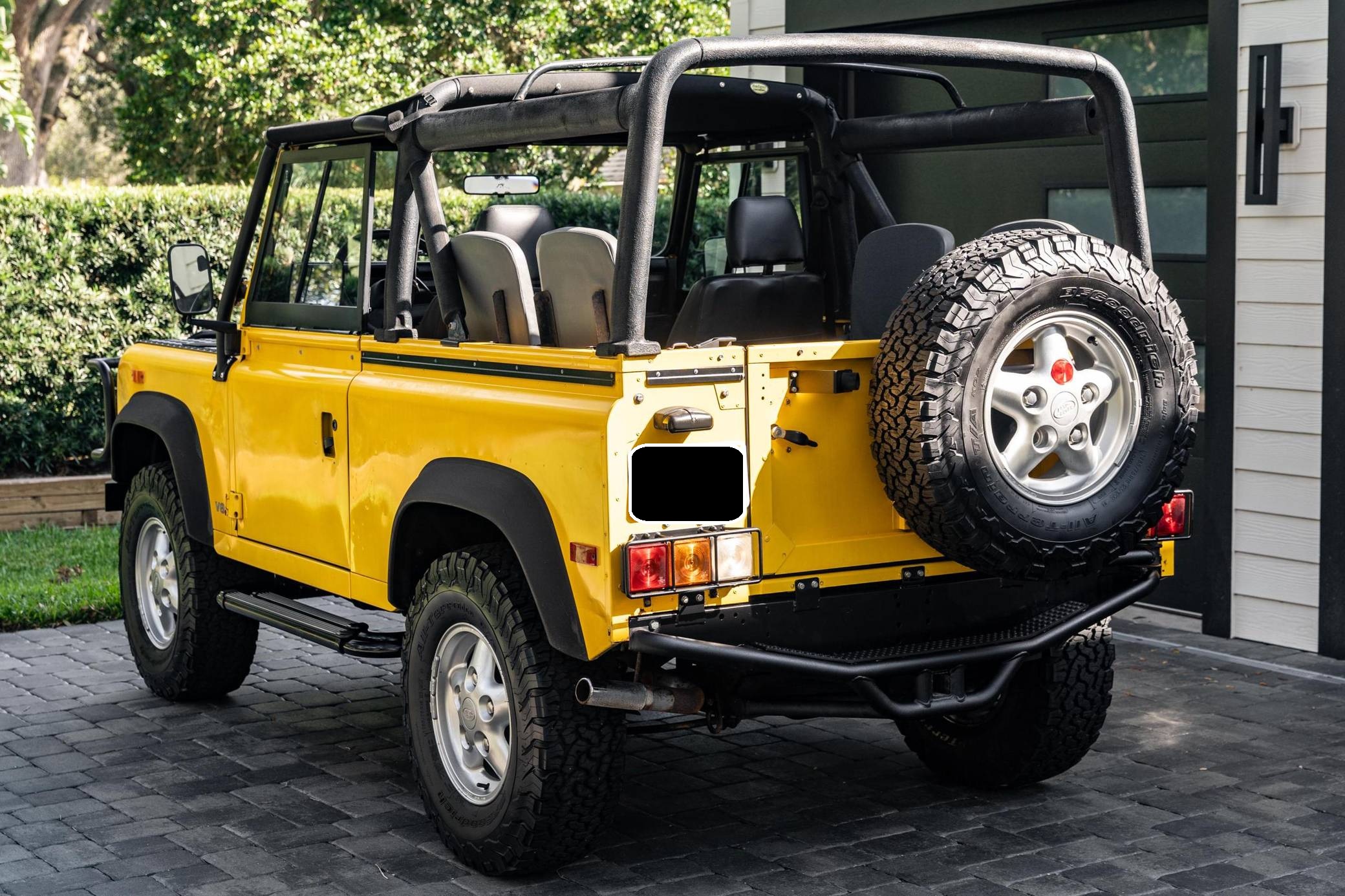 THIS. . . is a 1994 Land Rover Defender 90, finished in AA Yellow with a black soft top and a gray interior. This Defender is equipped with a 5-speed manual transmission. Factory equipment includes 16-inch wheels, a brush guard, side steps, a tubular rear bumper, and air conditioning, among others listed below. Modifications reported by the seller include Bilstein suspension, a powder-coated front bumper, exMoor trim cloth upholstery on front seats, aftermarket rear jump seats, and aftermarket front speakers. Land Rover launched the Defender in 1990 as an evolution of the 90 and 110 models. For overseas buyers, the big news was a new engine that made the off-roader more road-worthy. For drivers in America, the most important update was the introduction of a North American-Specification (NAS) model that arrived in 1993 with four doors and a model year later with two. The Defender conquered every obstacle with aplomb with one exception: new U. S. safety regulations. Sales ended after 1997, though production continued abroad until 2016. Power comes from a 3. 9-liter V8, rated at 182 horsepower and 232 lb-ft of torque. It spins the four wheels via a 5-speed manual transmission and a 2-speed transfer case.