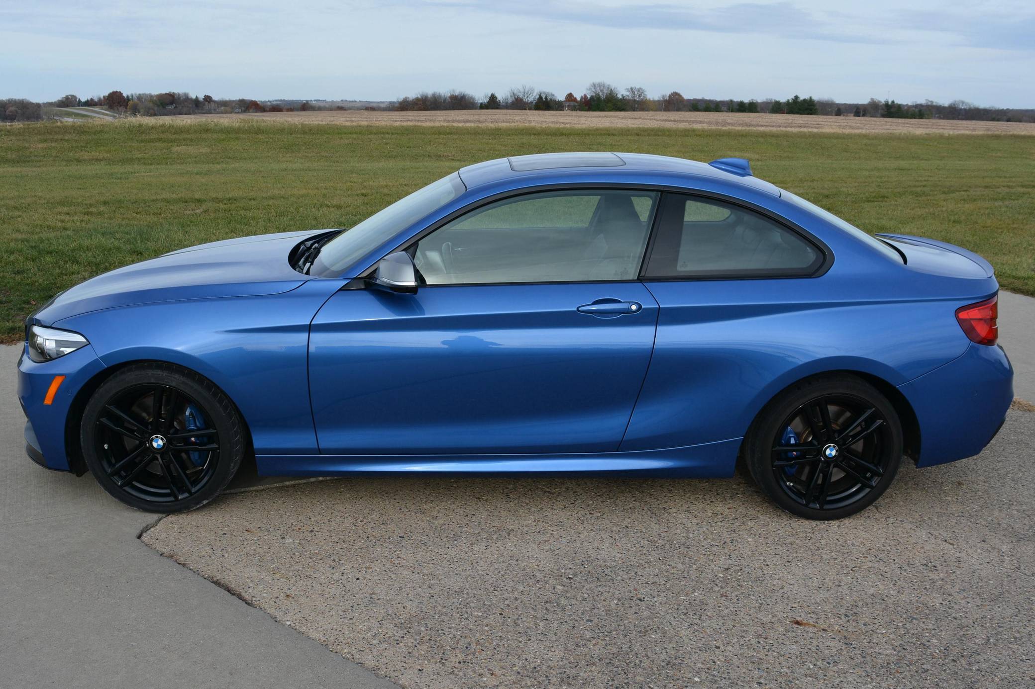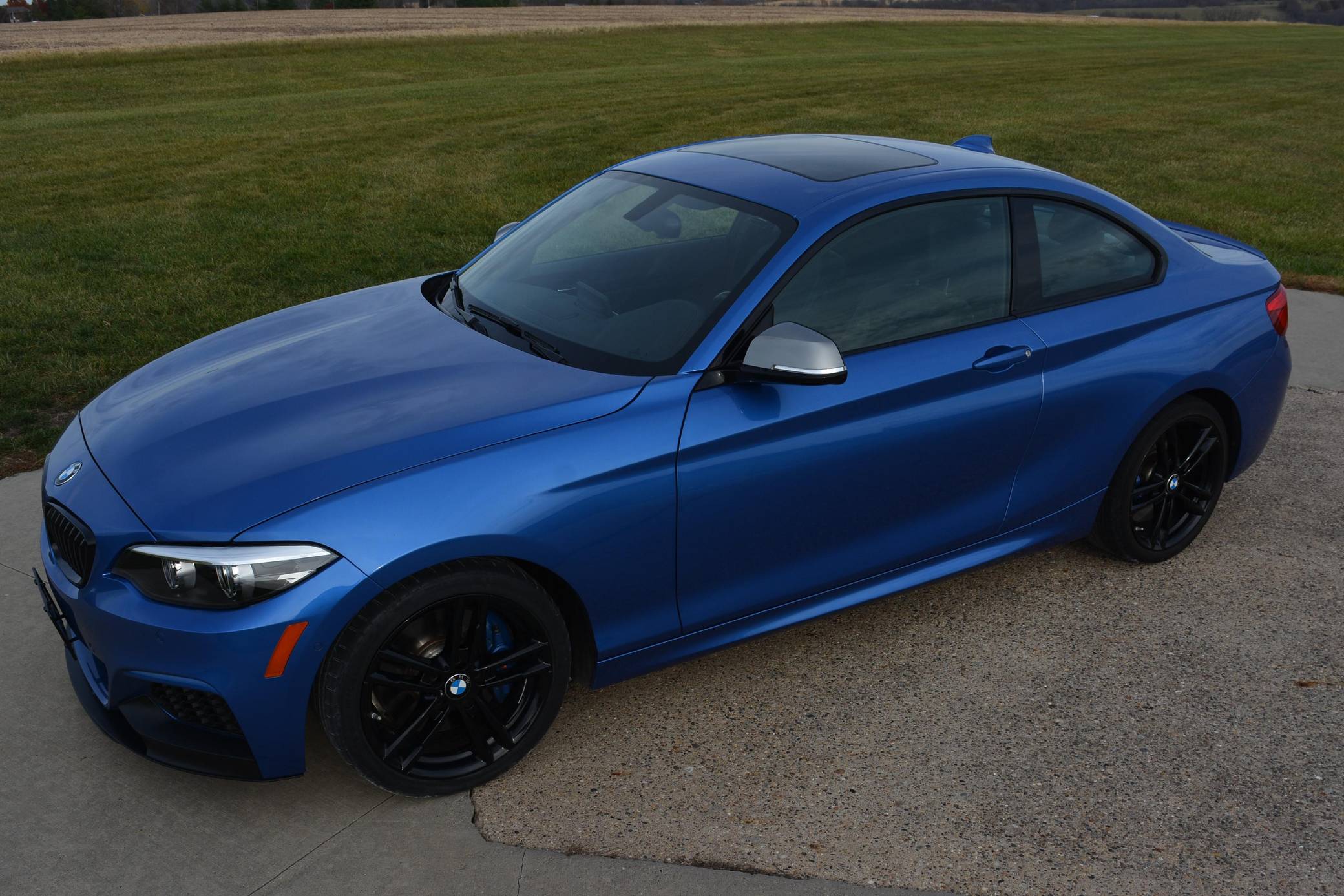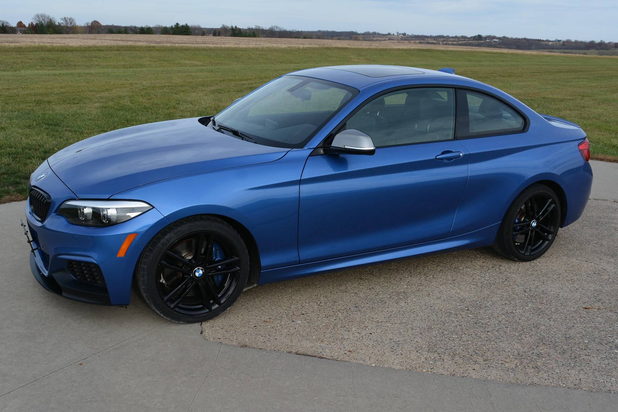 THIS. . . is a 2018 BMW M240i Coupe, finished in Estoril Blue Metallic with a black interior. This BMW is equipped with the desirable 6-speed manual transmission, and its odometer shows about 32,400 miles. Factory equipment includes the Premium Package, 18-inch "Style 719M" wheels, an M Performance exhaust system, black kidney grilles, a sunroof, Dakota Leather upholstery, aluminum hexagon interior trim, power-adjustable front seats, a Hi-Fi sound system, and Apple CarPlay compatibility. The only modification reported by the seller is an RW Carbon front splitter. BMW released the first-generation 2 Series for the 2014 model year as a replacement for the two-door variants of the 1 Series. For 2017, the 4-cylinder and 6-cylinder engines were replaced with new, more powerful units, resulting in new nomenclature of 230i for the base car and M240i for the higher-performance model. Besides the 6-cylinder engine, the M240i's special features include an adaptive M suspension system with a 10-mm lower ride height, M Sport brakes, a variable sport steering system, and an M aerodynamics package. Power comes from a "B58" 3. 0-liter turbocharged 6-cylinder engine, rated at 335 horsepower and 369 lb-ft of torque. Output is sent to the rear wheels via a 6-speed manual transmission.