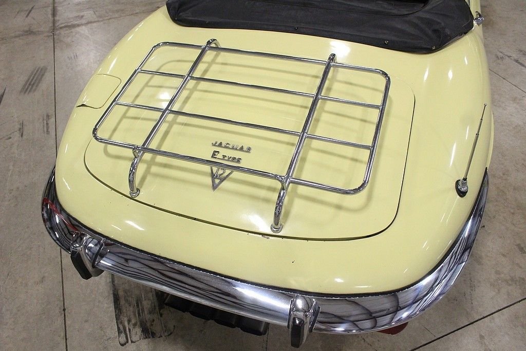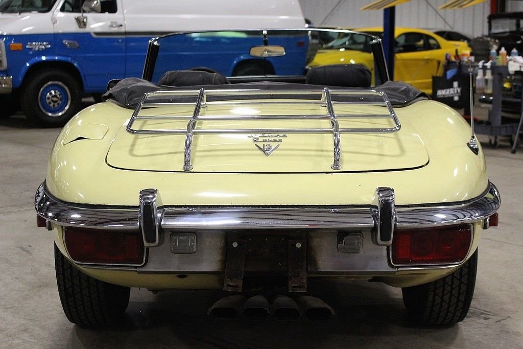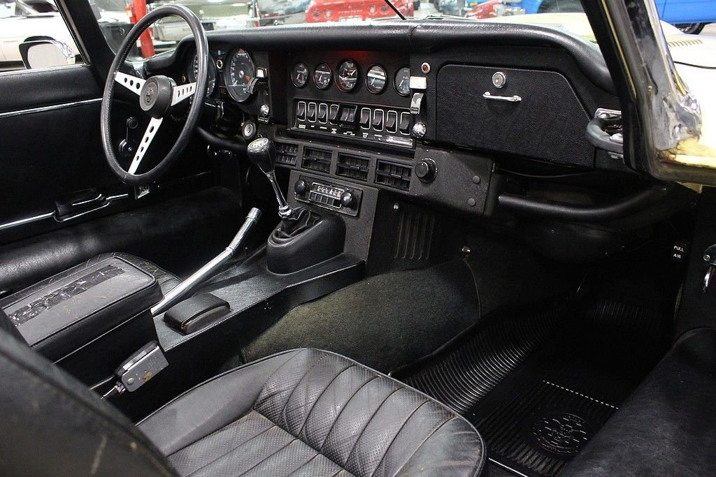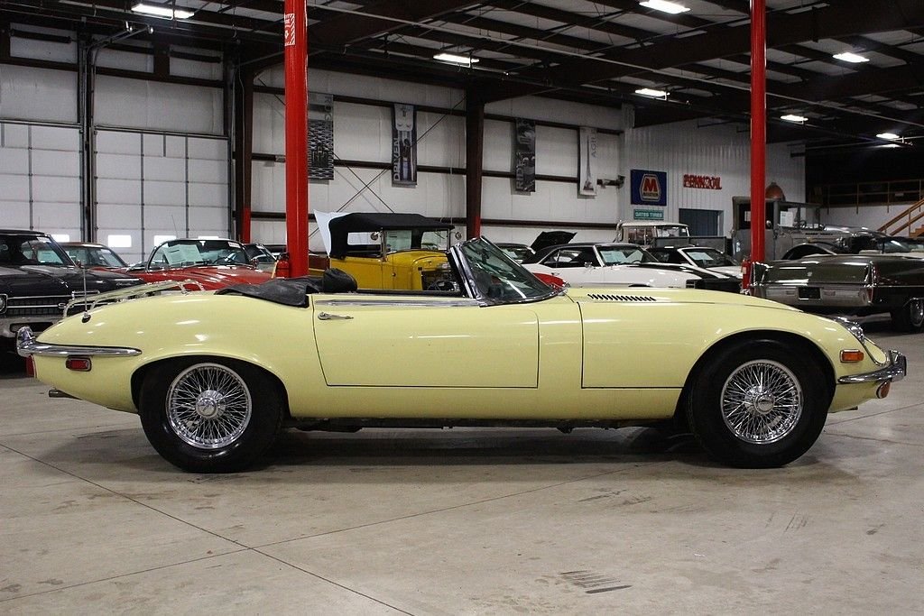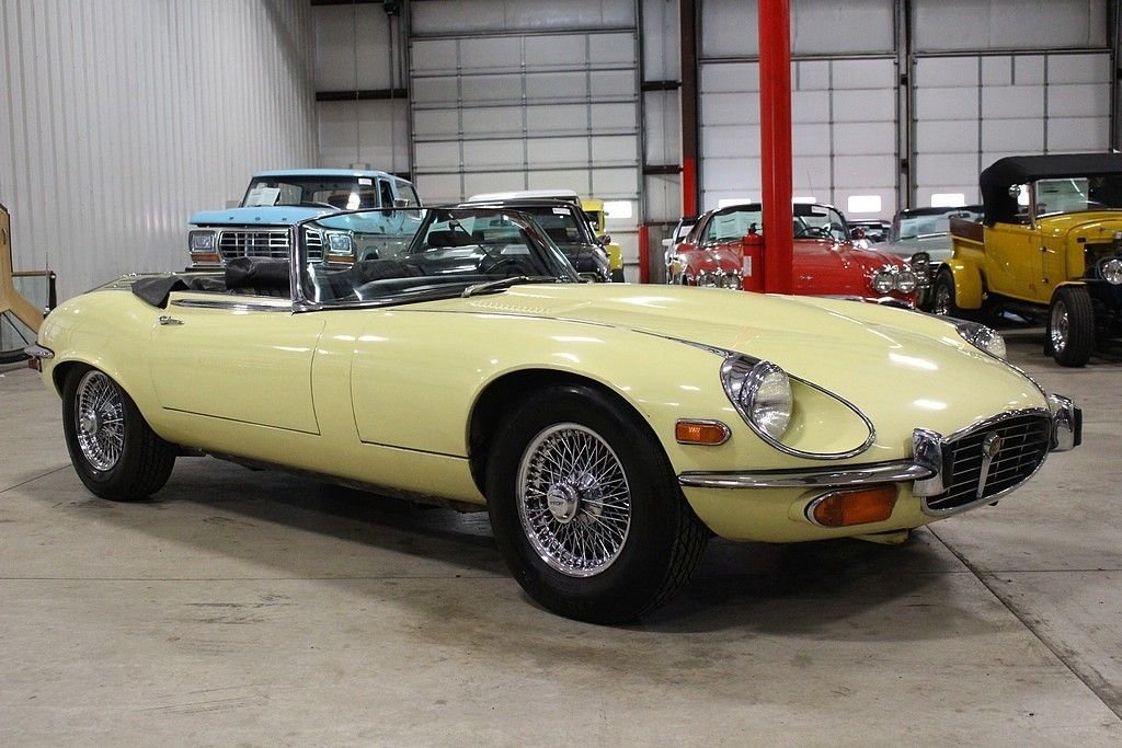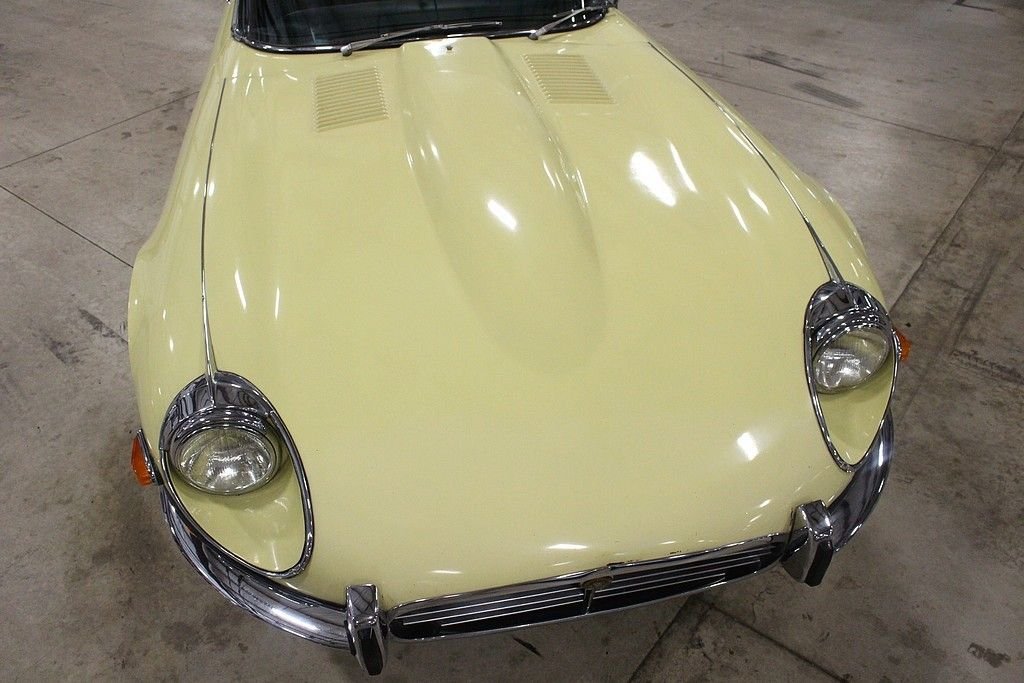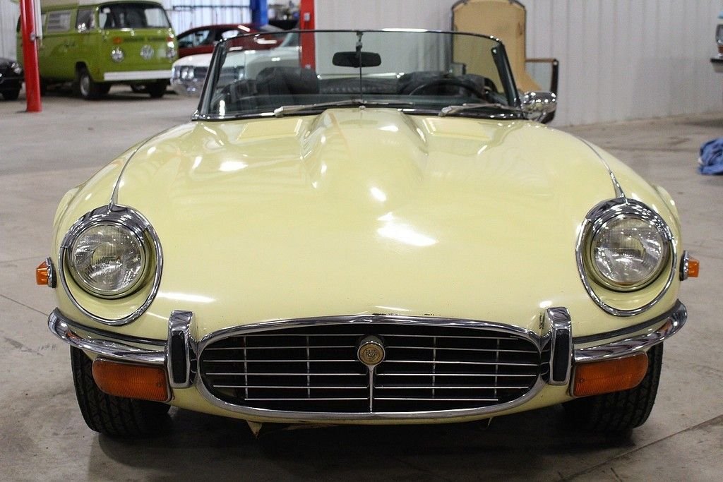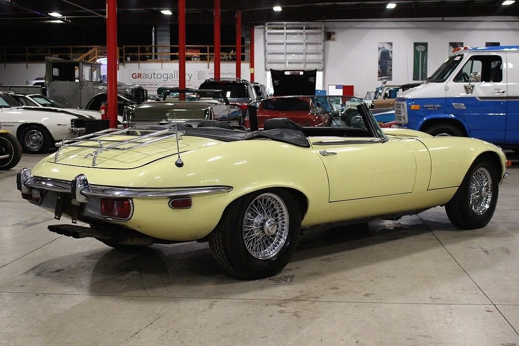 It is no secret that we love original and interesting cars and this wonderfully original, two owner, low mile 1972 Jaguar E-type roadster offers the excellence in originality and mechanical fitness. The car was sold new by Koch, inc. Sports Car Forum of Columbus Ohio in June of 1972, and has remained in the hands of the second owner since 1976 where he used it as a summer driver until our recent acquisition. This spirited car is powered by its numbers matching original 5.3 liter V12 engine, 4 speed manual transmission, driven by the rear wheels, and optioned with air conditioning. It also features independent coil spring rear suspension with torsion bar front ends, and 4 wheel disc brakes. Today at just 48586 original miles, remains all original including its original Primrose Yellow Original Paint over is original black leather interior, original wire wheels, original chassis, original convertible top, and original underside. The car has an amazing core structure as it was never driven in bad weather. Mechanically the car remains excellent as the long time second owner was a driving enthusiast. It has a great service history being only serviced by two local specialty shops here in Grand Rapids and all electrical equipment are in order. As a result of responsible ownership, routine driving habits and proper maintenance, the car has never needed to be completely taken apart resulting in a wonderful driving experience. The car fires right up every time at the turn of the key, the V12 engine sings through the RPMs, the power pulls strong in every gear, the steering remains responsive, the suspension tight and the car delivers great feedback to the driver as a true sports roadster should. The car has an amazing core structured, loads of character and the perfect amount of patina. From 1961 to 1974, the E-type dominated the sports car market with high performance and amazing style. It's featured on many lists of top cars of all time. The New York Museum of Modern Art recognized the significance of the styling of the XKE with a display of a roadster (one of just six vehicles to ever earn the distinction). These cars are red hot in the collector car world and values continue to soar. Quality original examples such as this are extremely hard to come an offer many options for the next owner as a collectible, a driver or complete example to restore to its original glory. The car comes complete with original owners hand book, passport to service book, emission control pamphlet, US safety regulations pamphlets, wiring diagram, maintenance chart, portfolio, a host of service history back to 1974, original jack, hammer and knock off tool and full size wire wheel spare.