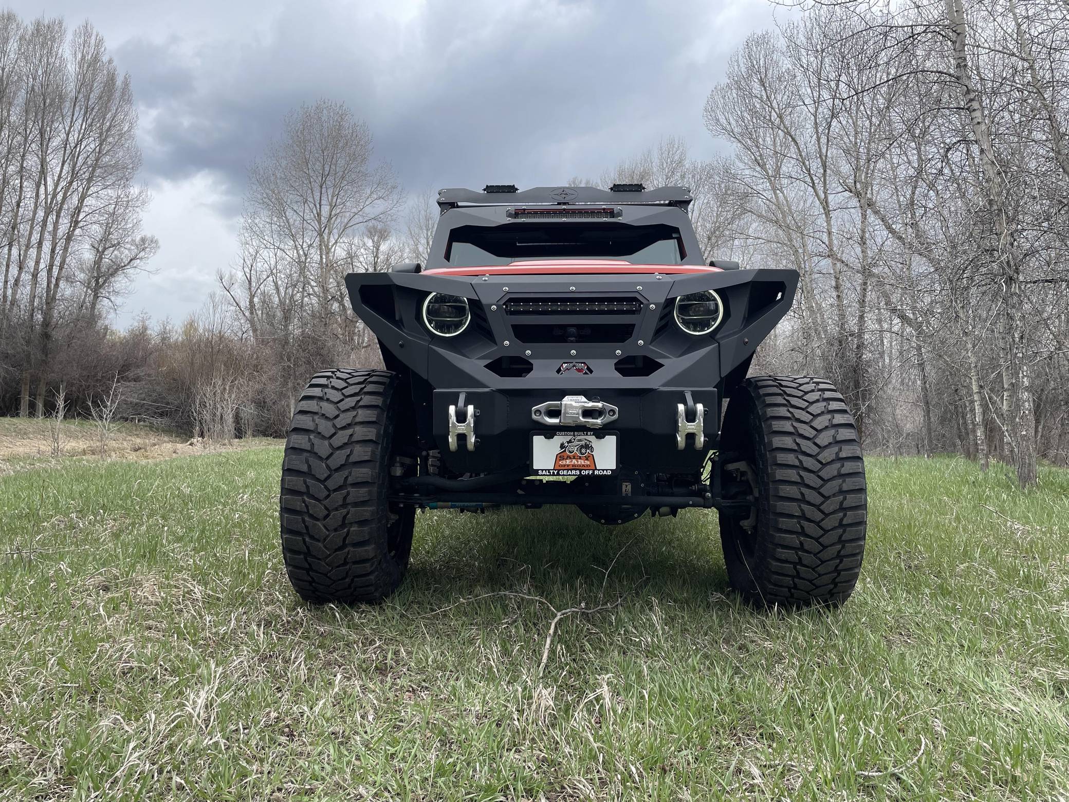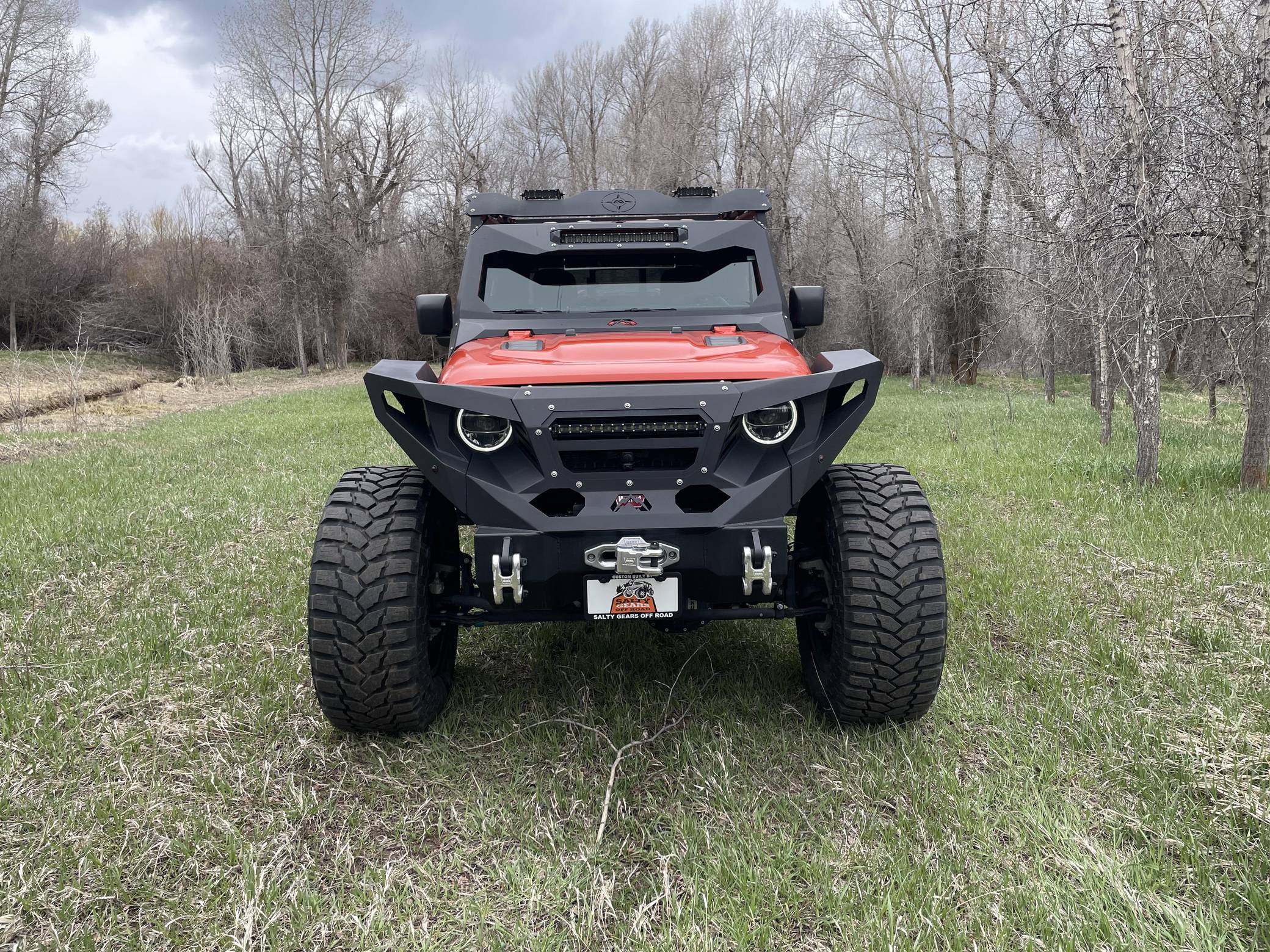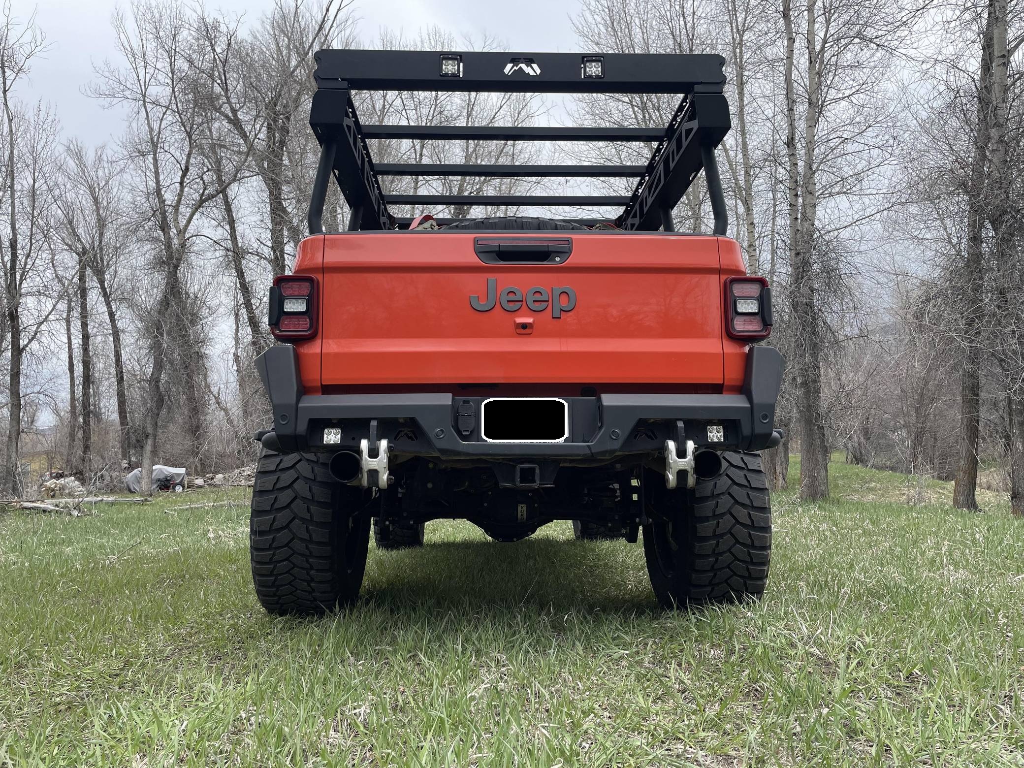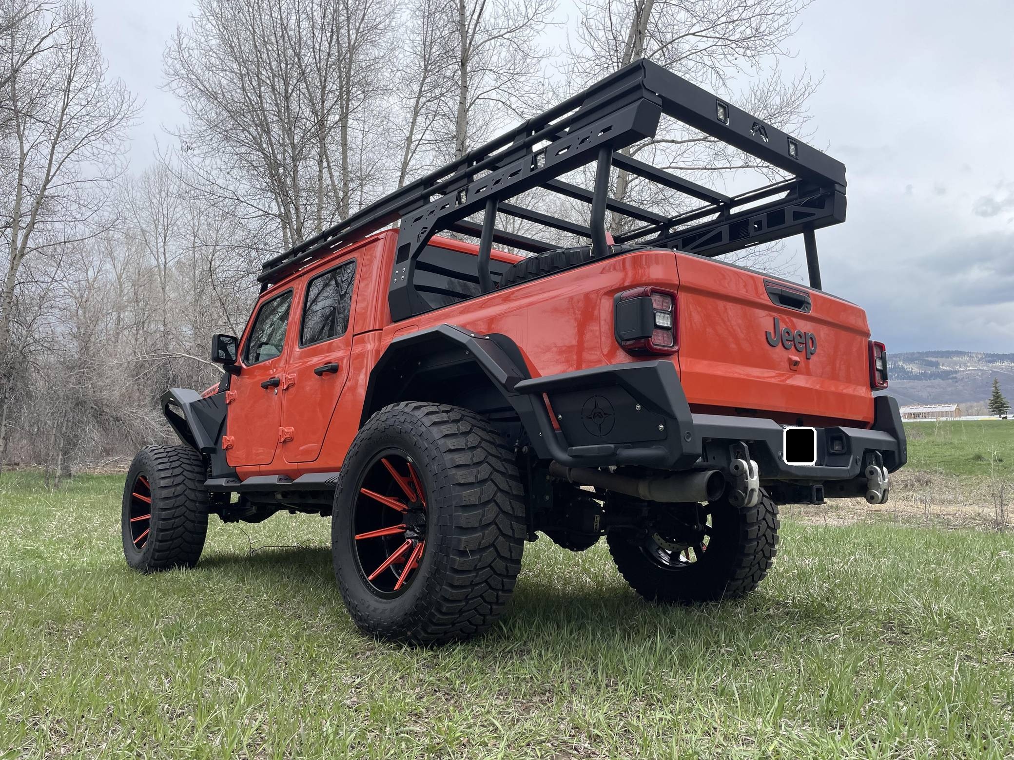THIS. . . is a 2020 Jeep Gladiator Rubicon 4x4, finished in Punk'n Metallic with a black interior. It also shows that this is a one-owner Jeep. Modifications reported by the seller include a Magnuson Products TVS1900 supercharger kit, Yukon Gear & Axle 4. 88-ratio gears, 22-inch Forgiato wheels, an EVO MGF Enforcer Pro Stage 4 Plus lift kit, a Wilwood big brake kit, a Fab Fours Grumper front bumper, and a DECKED truck bed system. More details about the aftermarket parts installed on this truck are provided below. Factory equipment includes the Cold Weather, 8. 4-inch Radio and Premium Audio, and Jeep Active Safety groups, a transmission skid plate, a spray-in bedliner, a 3-piece removable hardtop with a headliner, leather upholstery, a front-facing camera, and adaptive cruise control. Jeep returned to the pickup segment after a long hiatus when it released the Gladiator for 2020. Offered only with four doors, it’s closely related to the fourth-generation Wrangler so it offers heritage-laced styling, body-on-frame construction, and excellent off-road capacity. It’s still sold new in 2022. Power comes from a 3. 6-liter supercharged V6, rated at 285 horsepower and 260 lb-ft of torque when left stock and naturally aspirated. The supercharger increase those figures to 440 and 380, respectively, according to Magnuson Products, but a dyno sheet is not available. The engine spins the four wheels via an 8-speed automatic transmission and a 2-speed transfer case.