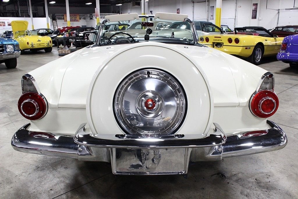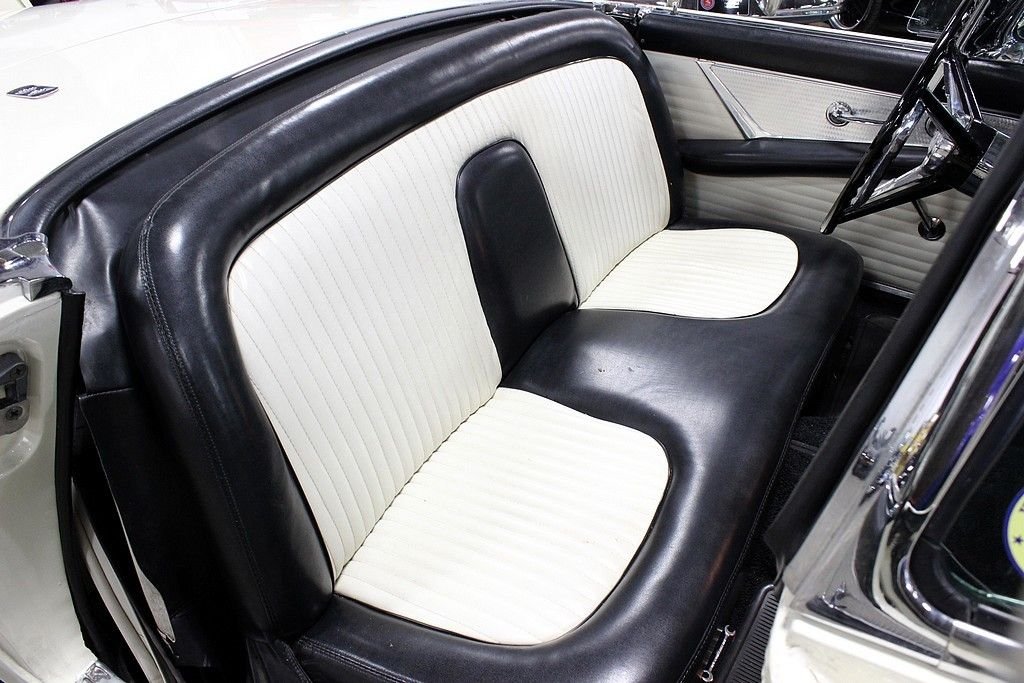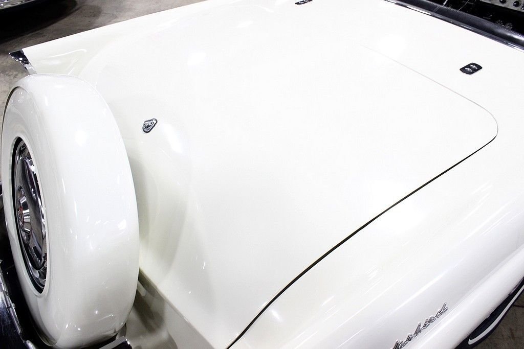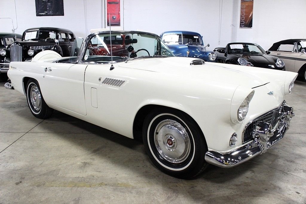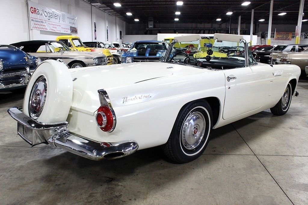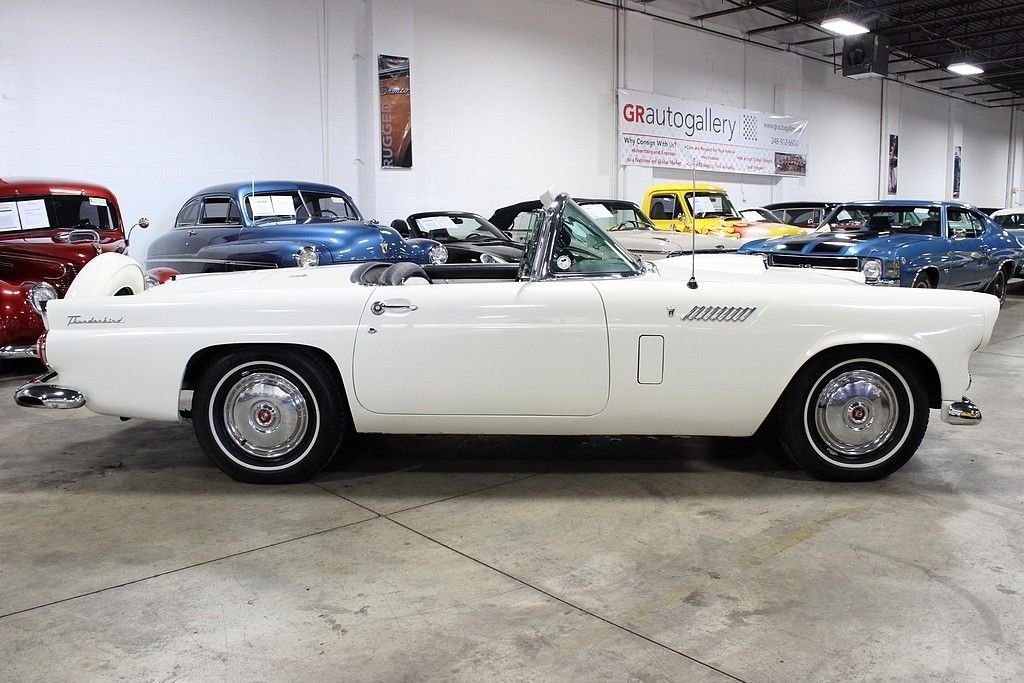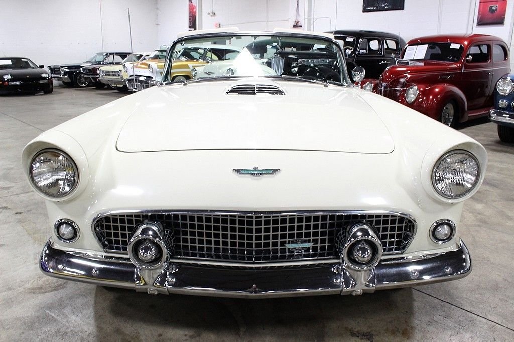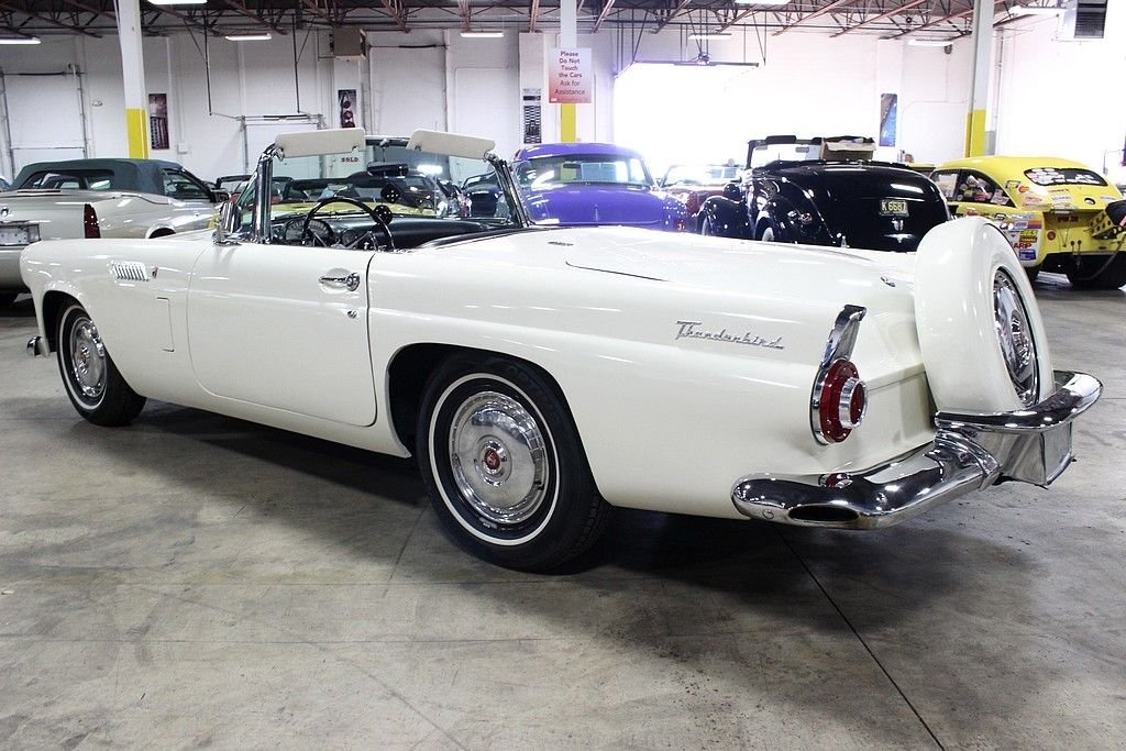 Ford was looking for something to compete with the Chevrolet Corvette which started to show quickly as a popular segment but didn't want to pursue the sports car necessary but created a segment all of its own. With the clever marketing plan in place, Ford began the production of the Ford Thunderbird in 1955 as a Personal Car segment and although it was very much a sporty two-seater convertible just like the Corvette, it paid more attention to luxury and comfort more so than the competition. This model did not inherit its second row of seats until 1958 and from there it slowly but surely grew in size, generation after generation until 1977 when the larger cars lost their popularity in the market. The Thunderbird was one of the longest lasting nametags for Ford and started strong by selling 23 models for every one Corvette sold when it first hit the market. The only changes completed between its inception model to the 1956 was moving the spare tire to a continental-style rear bumper in order to make more room within the trunk. From bottom to top, inside and out, this beautiful classic car keeps its integrity and styling as it would back when originally built and comes as a turn-key enjoyment ready to go down the open road! The exterior shows very well with all the chrome, panels and even its white convertible top all in good shape. The paint is a bit aged but certainly not hard on the eyes with a great driver quality to it and the continental package on the back which is in wonderful condition as well and fully functioning. The interior is well kept with its traditional black and white seating, the dash is as original with a clock that's even keeping the right time and with an upgraded OEM Town and Country radio installed which has been converted to FM and has aux speakers working and installed in the back of the seats, this vehicle will keep the tunes going while you enjoy the ride. Recent work performed on this vehicle includes a Concours exhaust manifold installed, a new radiator, fuel pump and also comes with extra parts for future work to be performed including a starter Bendix in the box, a new manifold from Concours in the box as well. There are many manuals, booklets, other odds and ends for parts and a few receipts provided with this sale giving this vehicle the total package!