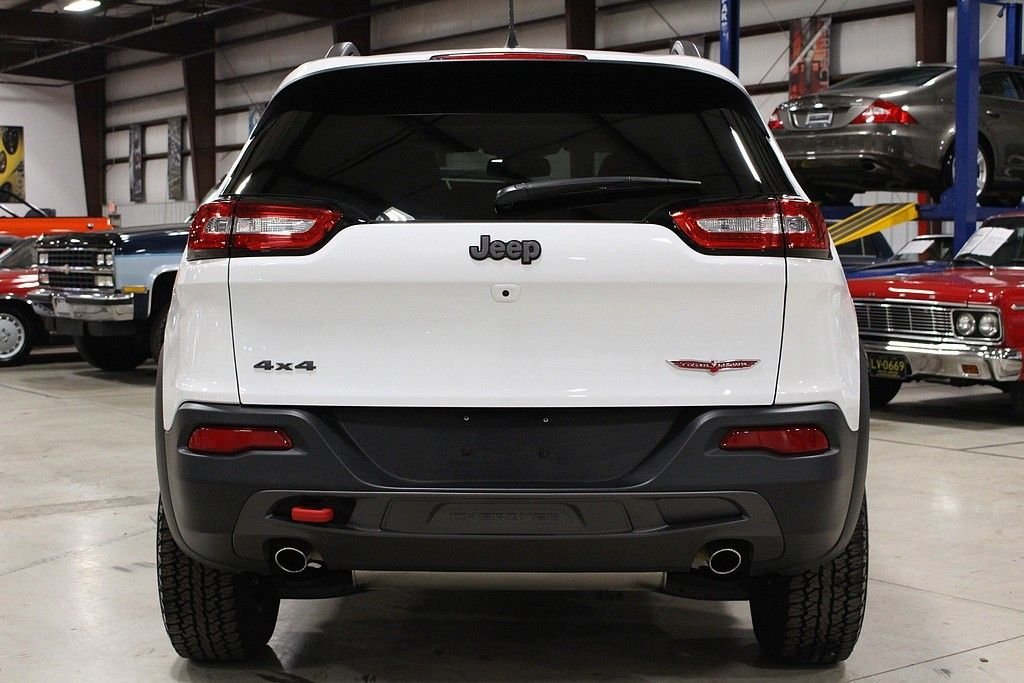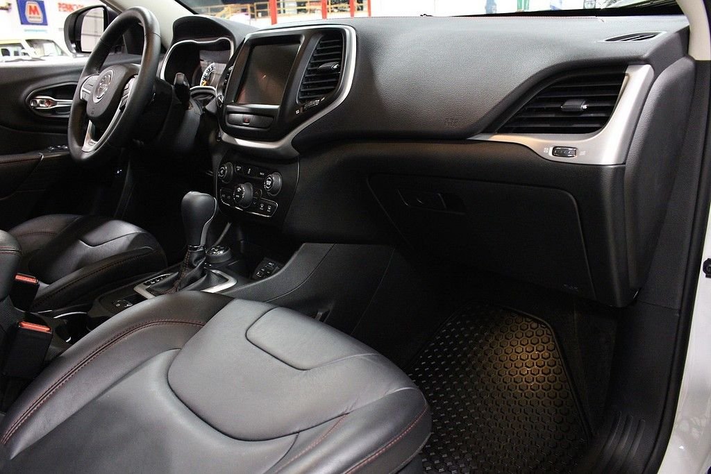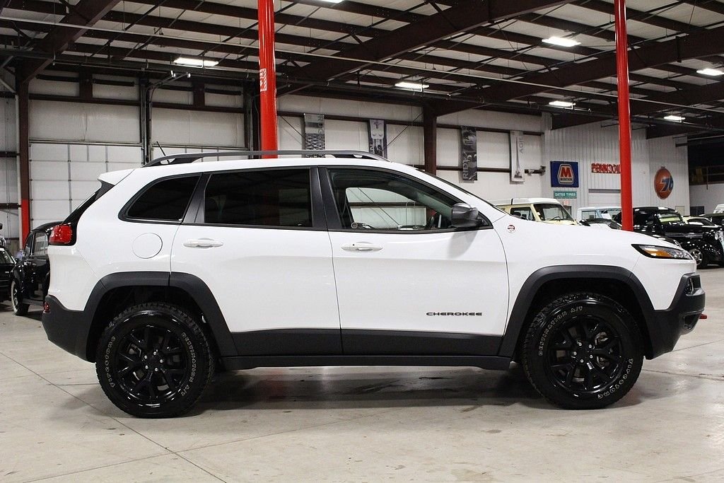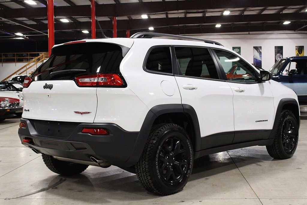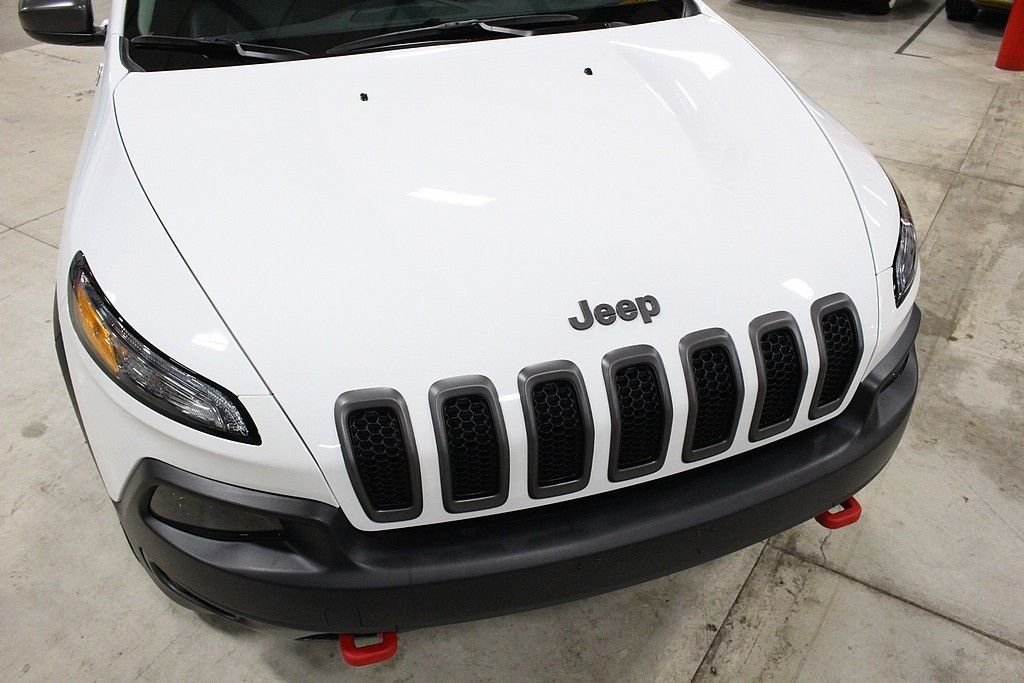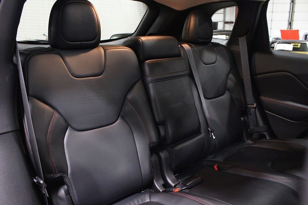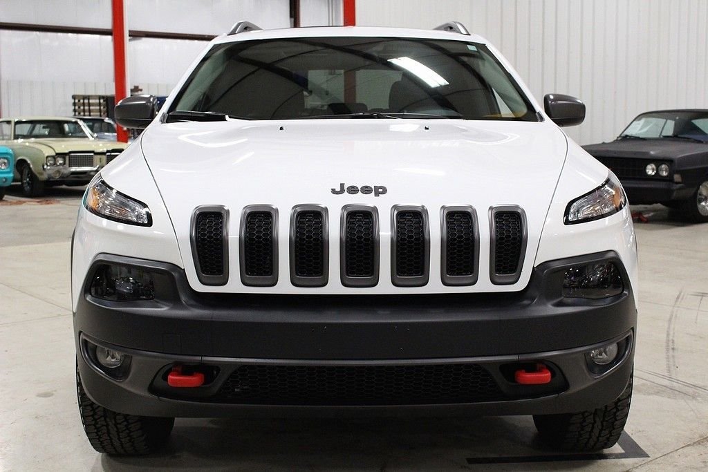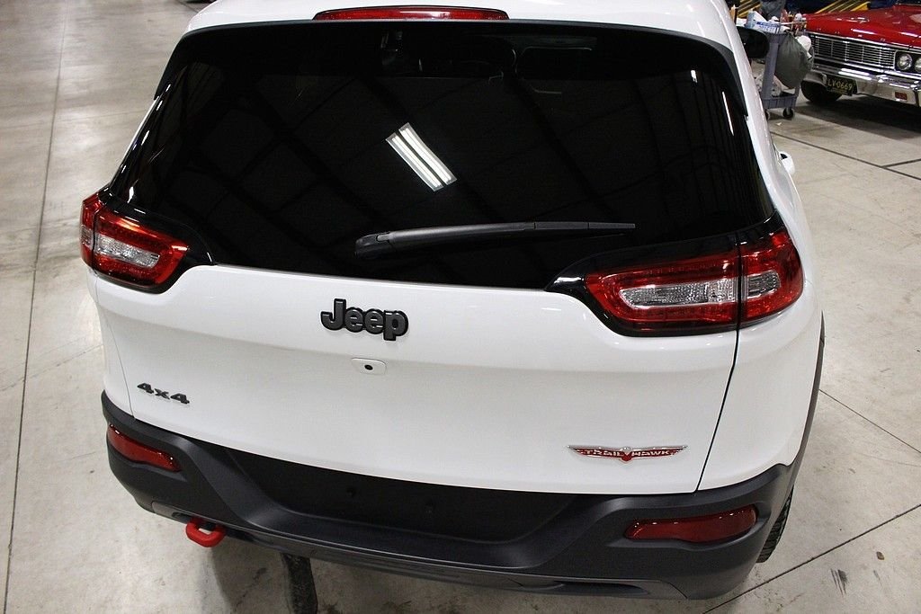 It's a tough line to toe that Jeep has to do when re-releasing the Cherokee. Jeep has to make sure the rugged go anywhere nature comes through while competing with others providing features that people want. The solution, in Jeep's point of view, was to release the new Cherokee in four strengths: Sport, Latitude, Limited, and the Trailhawk model offered here. As the off-road-focused model of the bunch, the Trailhawk lifts by one inch the Cherokee's all-independent suspension of front struts and a four-link rear, for a total of 8.7 inches of clearance. Unique front and rear fascias offer improved approach and departure angles of 30 and 32 degrees, respectively, and the three bright-red tow hooks (two front, one rear) are the real deal, with each rated for 8250 pounds. Wheel flares, skid plates, increased engine cooling, and an auxiliary transmission-oil cooler round out the Trailhawk's upgrades. Its towing capacity is 4500 pounds. Jeep designates the Trailhawk as “Trail Rated,” an achievement celebrated by plastic exterior badges. To earn them, Jeep developed an innovative drive system called “Jeep Active Drive Lock,” which is standard on the Trailhawk and incorporates a low range and a locking rear differential. It's the most advanced of the Cherokee's three four-wheel-drive systems. The alternatives are a single-speed setup called Active Drive I and a two-speed Active Drive II. The Trailhawk lives up to its name as the perfect vehicle to go on any road in any weather. This is a one-owner Trailhawk with low miles and is fully loaded with options including the cold weather package (heated seats, heated steering wheel, Wiper de-icer, power heated mirrors), Comfort/Convenience Group (rear back-up camera, power liftgate, remote start, keyless go, climate control, power seats, Universal garage door opener), leather seats, dual bright exhaust tips, dual-pane panoramic sunroof, Navigation, 9-amplified speakers, 17” aluminum wheels, aux input, and much more! This is a great vehicle for all 12-months of the year, in excellent condition, and don't forget really cool.