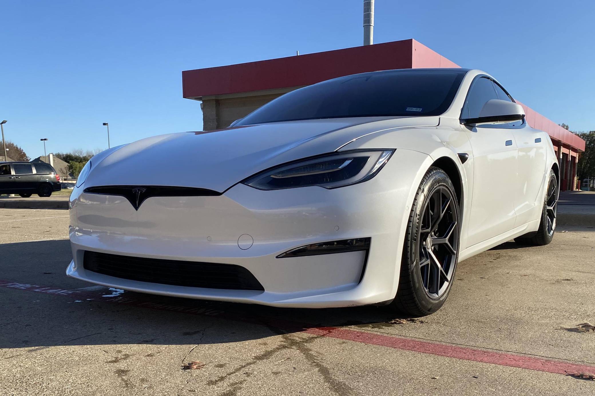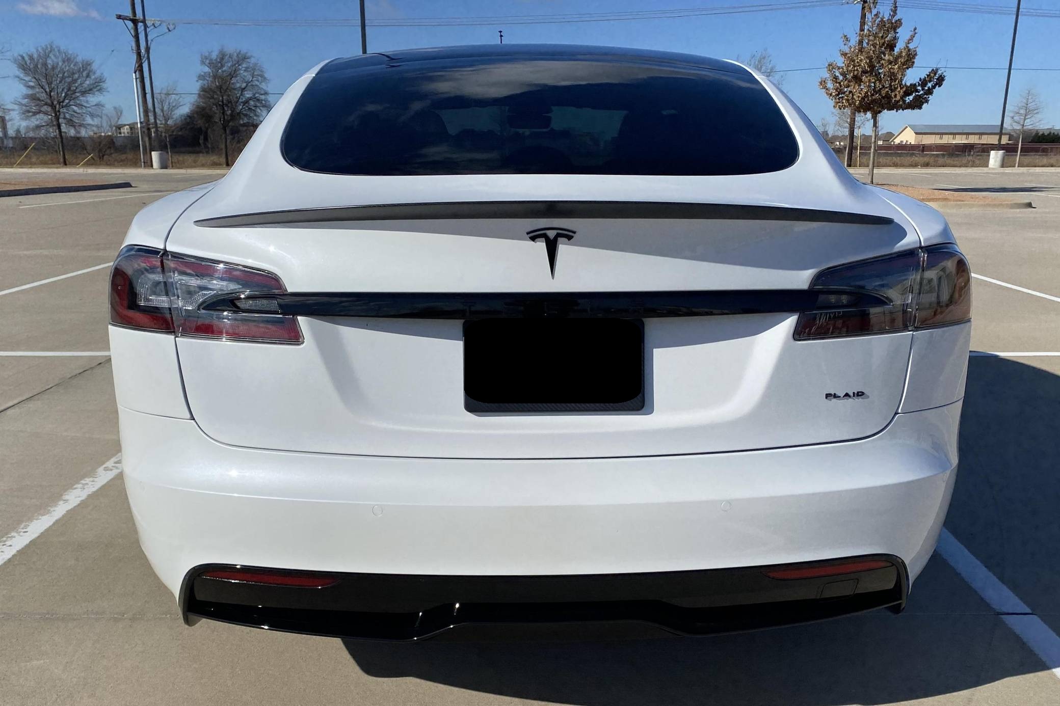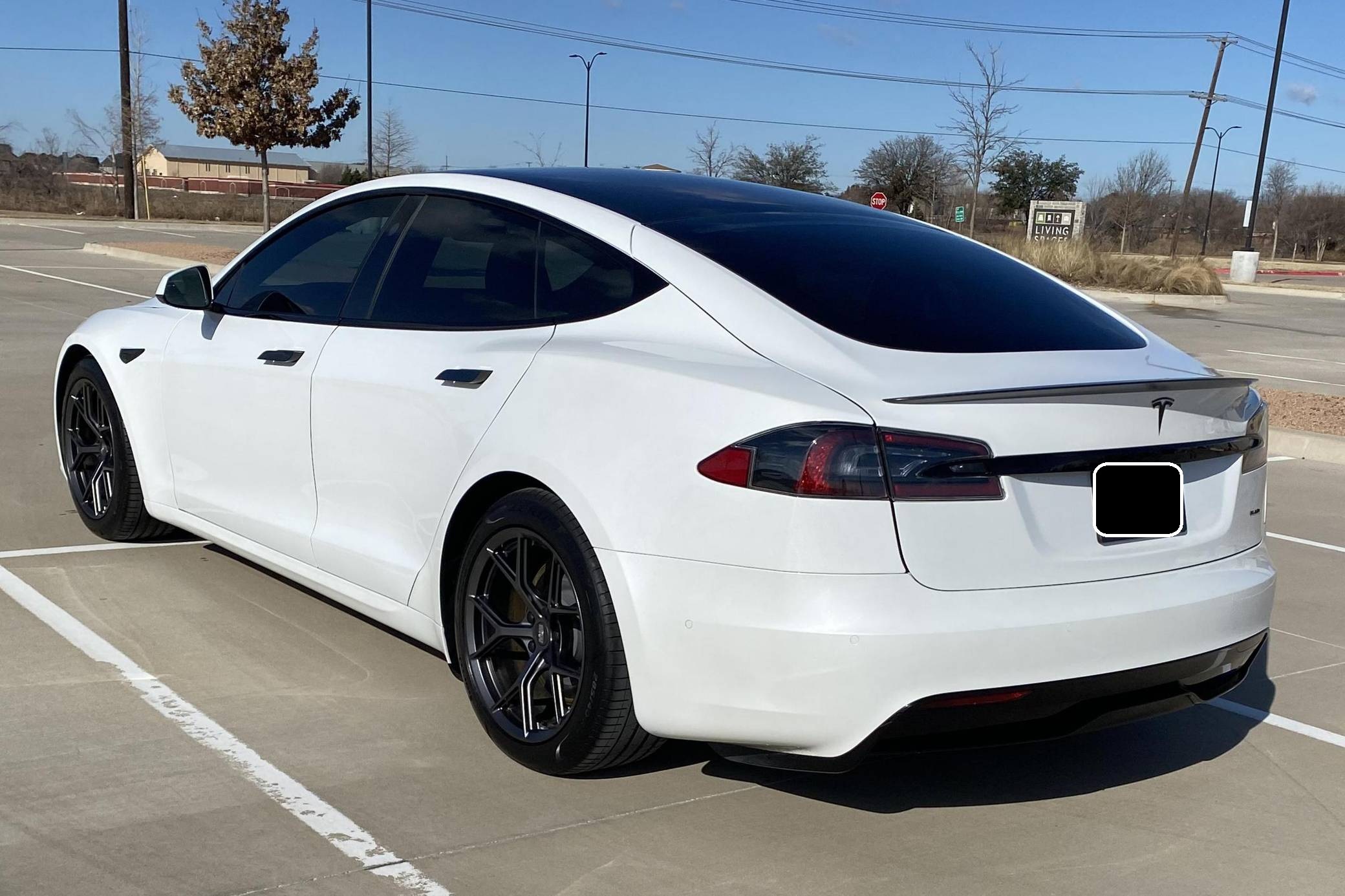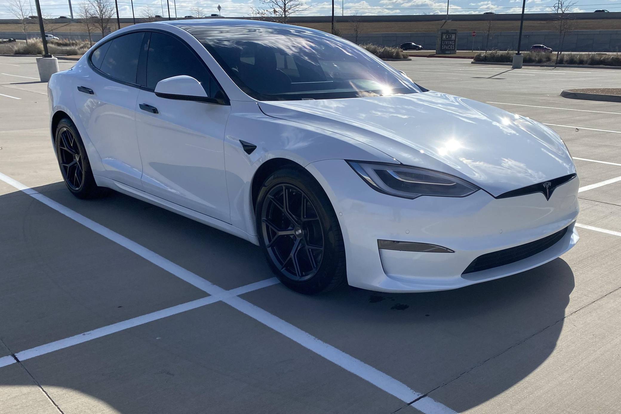 THIS. . . is a 2021 Tesla Model S Plaid, finished in Pearl White with a black interior. Factory equipment includes adaptive air suspension, a Plaid-specific body kit, LED exterior lighting, a glass roof, heated front seats, a yoke steering wheel, Full Self-Driving capability, autopilot technology, Sentry mode, premium connectivity, and a premium audio system. The only modifications reported by the seller are a set of 19-inch Martian MW05 wheels, black badges, and tinted windows. Tesla introduced the Model S, the first car it developed in-house, in 2012. Still available today, it was one of the first cars that proved EVs could be more than overgrown golf carts. Released in 2021, the Plaid version of the Model S stands proud as one of the quickest production cars on the planet thanks to an immensely powerful drivetrain. Tesla pegs the sedan's 0-to-60 mph time at slightly under 2 seconds, a figure confirmed by independent tests. Power comes from three electric motors, which draw electricity from a 100-kilowatt-hour lithium-ion battery pack that moves all four wheels with 1,020 horsepower and 1,050 lb-ft of torque, according to tests performed by Motor Trend. The EPA gave the Plaid variant a maximum driving range of 396 miles when equipped with 19-inch wheels, and 348 miles when fitted with 21-inch wheels.