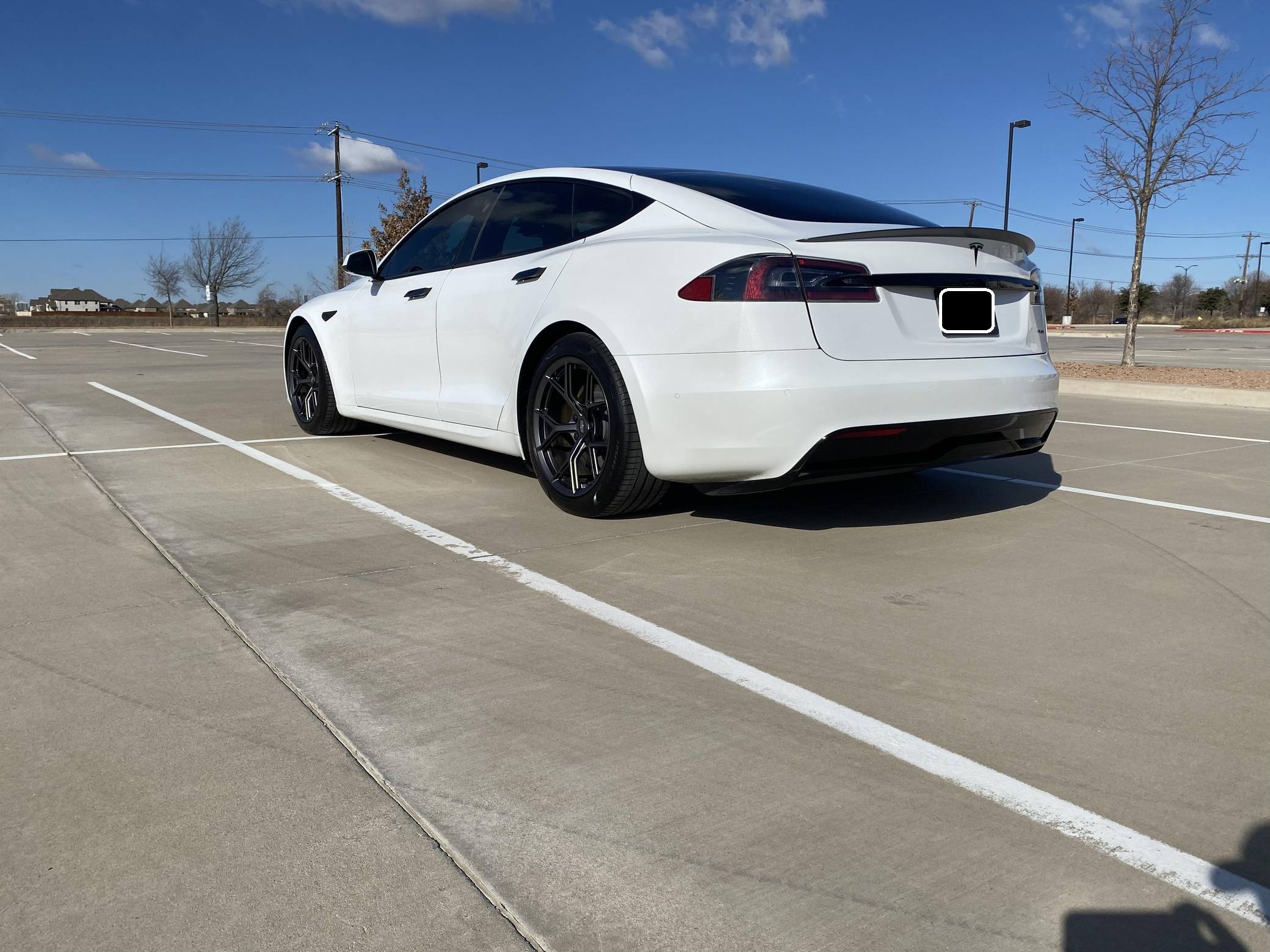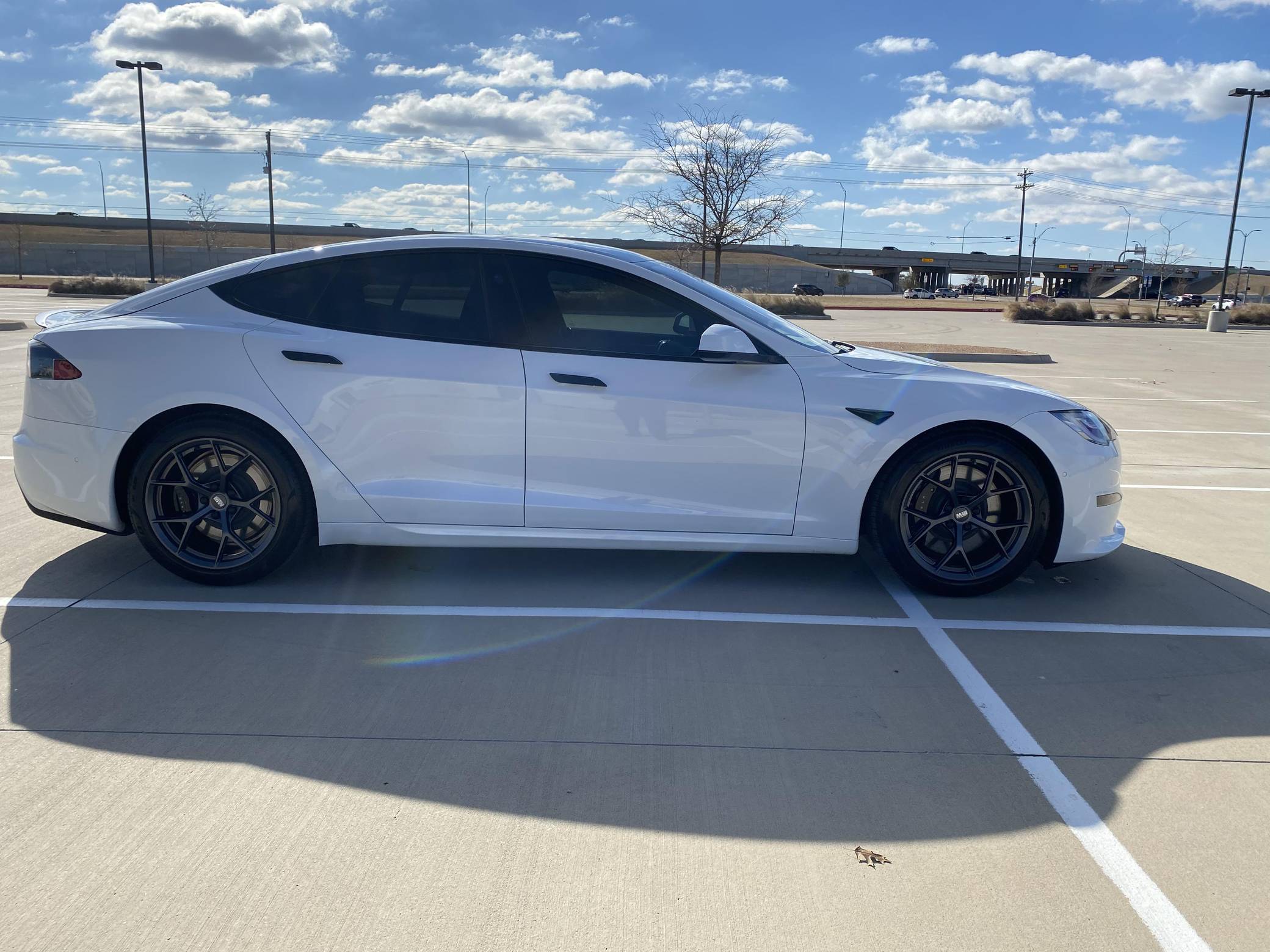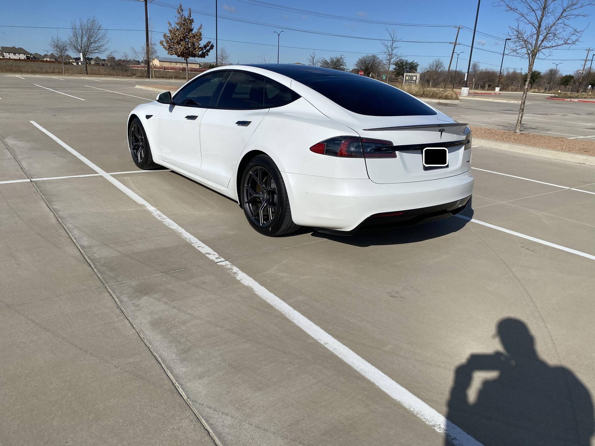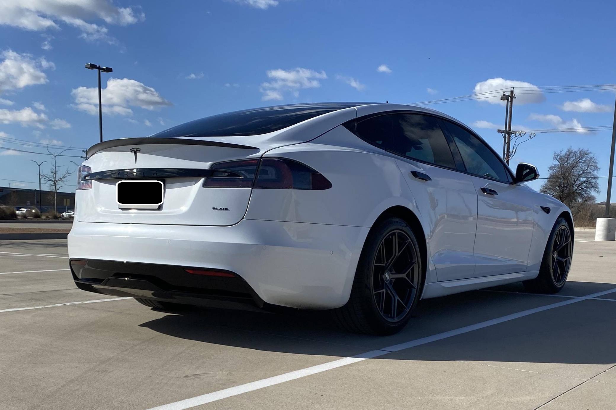 THIS. . . is a 2021 Tesla Model S Plaid, finished in Pearl White with a black interior. Factory equipment includes adaptive air suspension, a Plaid-specific body kit, LED exterior lighting, a glass roof, heated front seats, a yoke steering wheel, Full Self-Driving capability, autopilot technology, Sentry mode, premium connectivity, and a premium audio system. The only modifications reported by the seller are a set of 19-inch Martian MW05 wheels, black badges, and tinted windows. Tesla introduced the Model S, the first car it developed in-house, in 2012. Still available today, it was one of the first cars that proved EVs could be more than overgrown golf carts. Released in 2021, the Plaid version of the Model S stands proud as one of the quickest production cars on the planet thanks to an immensely powerful drivetrain. Tesla pegs the sedan's 0-to-60 mph time at slightly under 2 seconds, a figure confirmed by independent tests. Power comes from three electric motors, which draw electricity from a 100-kilowatt-hour lithium-ion battery pack that moves all four wheels with 1,020 horsepower and 1,050 lb-ft of torque, according to tests performed by Motor Trend. The EPA gave the Plaid variant a maximum driving range of 396 miles when equipped with 19-inch wheels, and 348 miles when fitted with 21-inch wheels.