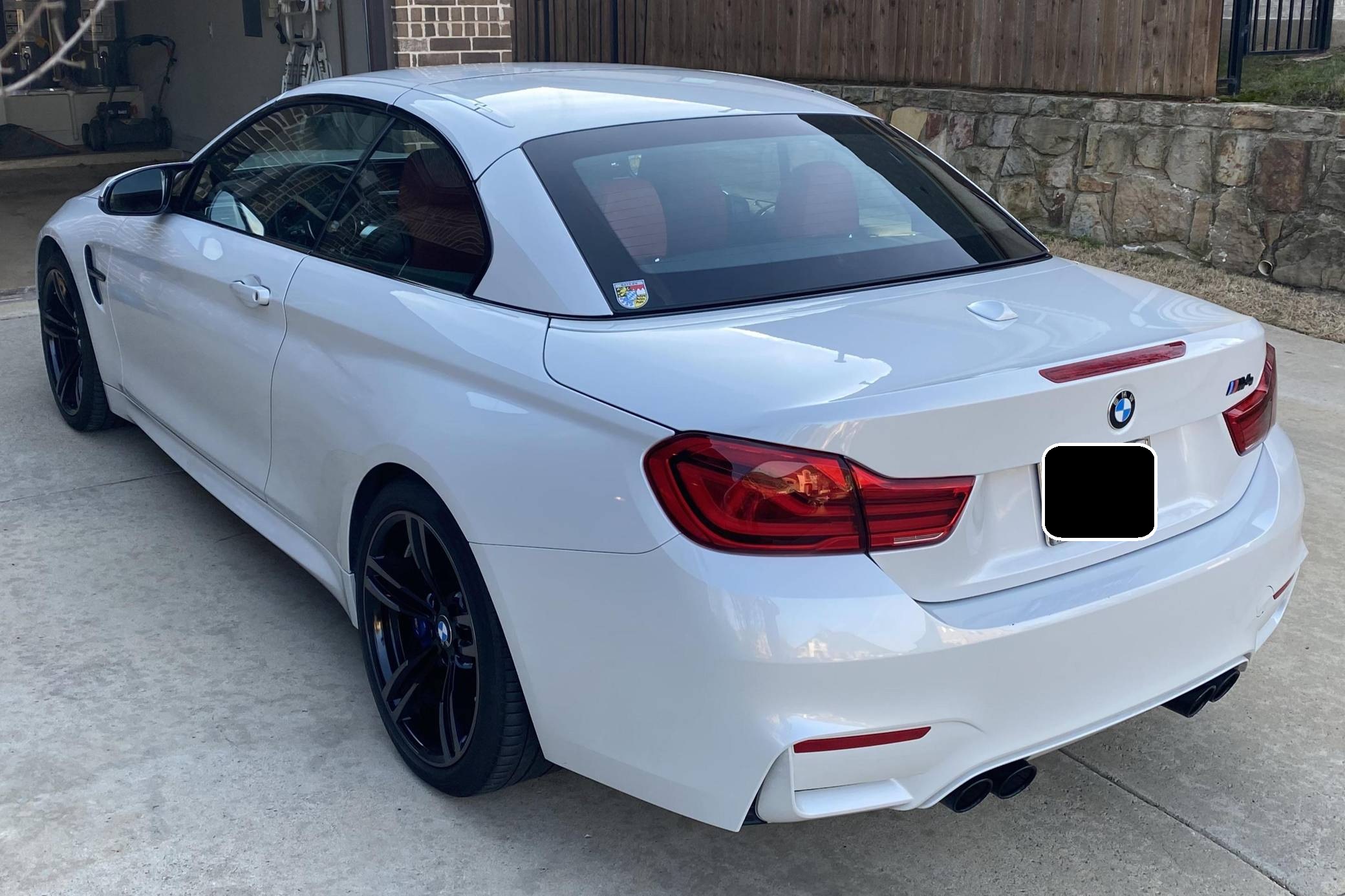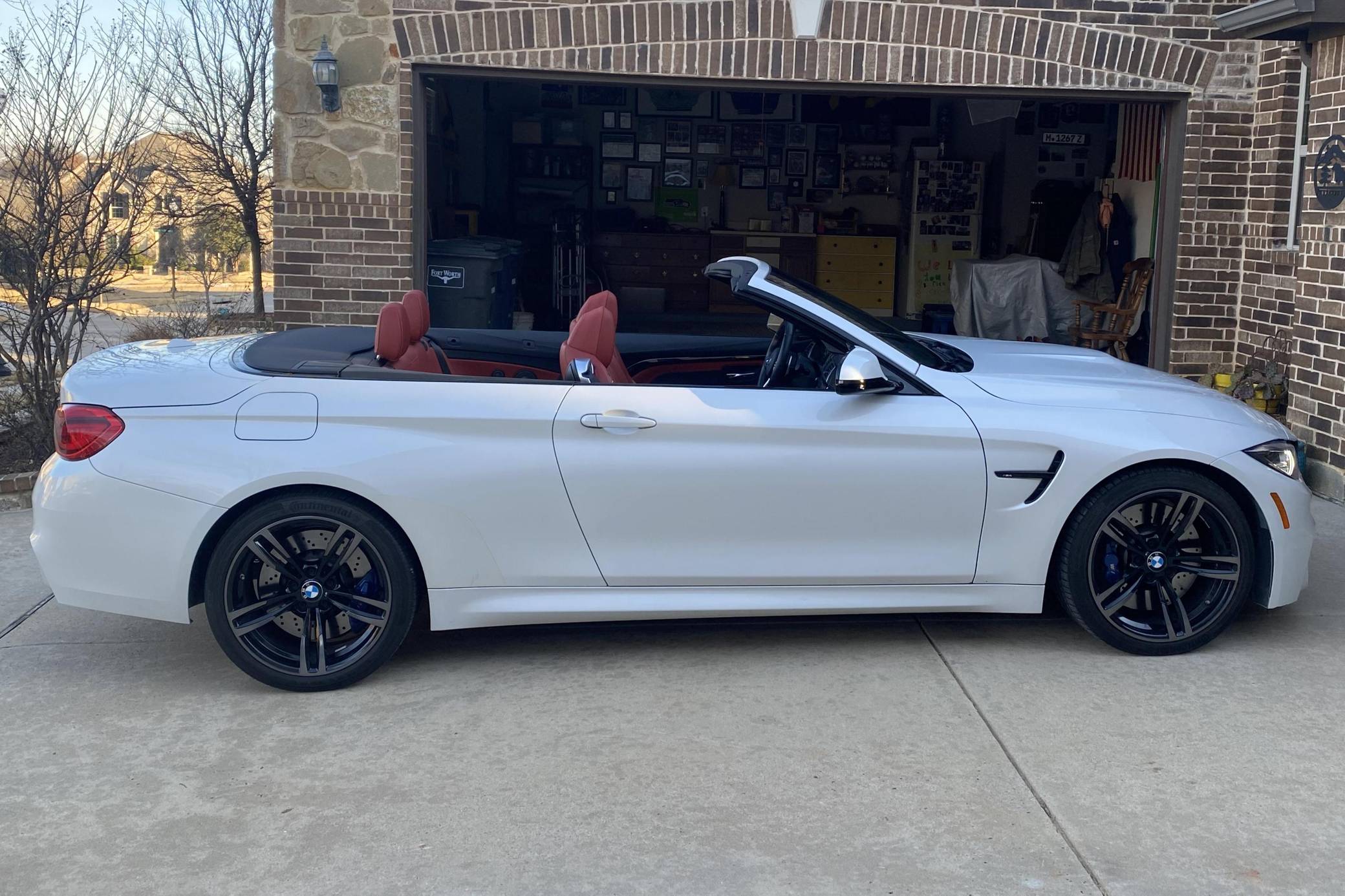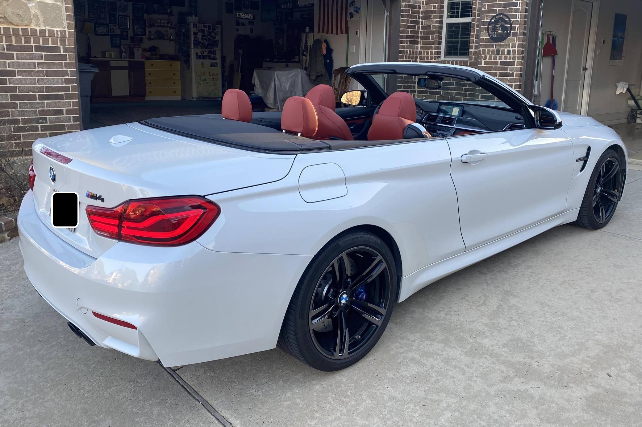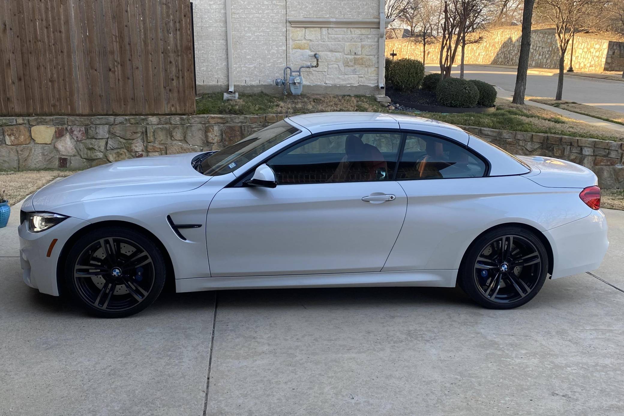 THIS. . . is a 2018 BMW M4 Convertible, finished in Mineral White Metallic with a Sakhir Orange interior. This convertible's odometer displays about 15,600 miles. It also shows that this is a one-owner car that has been Texas-owned since it was new. Factory equipment includes the Competition Package, 19-inch "Style 437M" wheels, an Adaptive M suspension system, a power-folding hardtop, carbon fiber interior trim, heated and power-adjustable front sport seats, a Harman Kardon surround sound system, a navigation system, and a head-up display. This M4's build sheet is pictured in the gallery, and the seller reports no modifications. 2015 was the first model year for the M4, which took the torch from the two-door M3. BMW surfed the downsizing wave sweeping across the industry by replacing the naturally-aspirated V8 with a twin-turbocharged straight-6, and a significant torque increase accompanied the new engine. Chopping off two cylinders and replacing metal bits with carbon fiber components allowed BMW to make the M4 up to 176 pounds lighter than the M3 it replaced. Production ended in 2020. Power comes from a 3. 0-liter twin-turbocharged straight-6, rated at 444 horsepower and 406 lb-ft of torque. Called "S55" internally, it spins the rear wheels via a 7-speed automatic transmission.