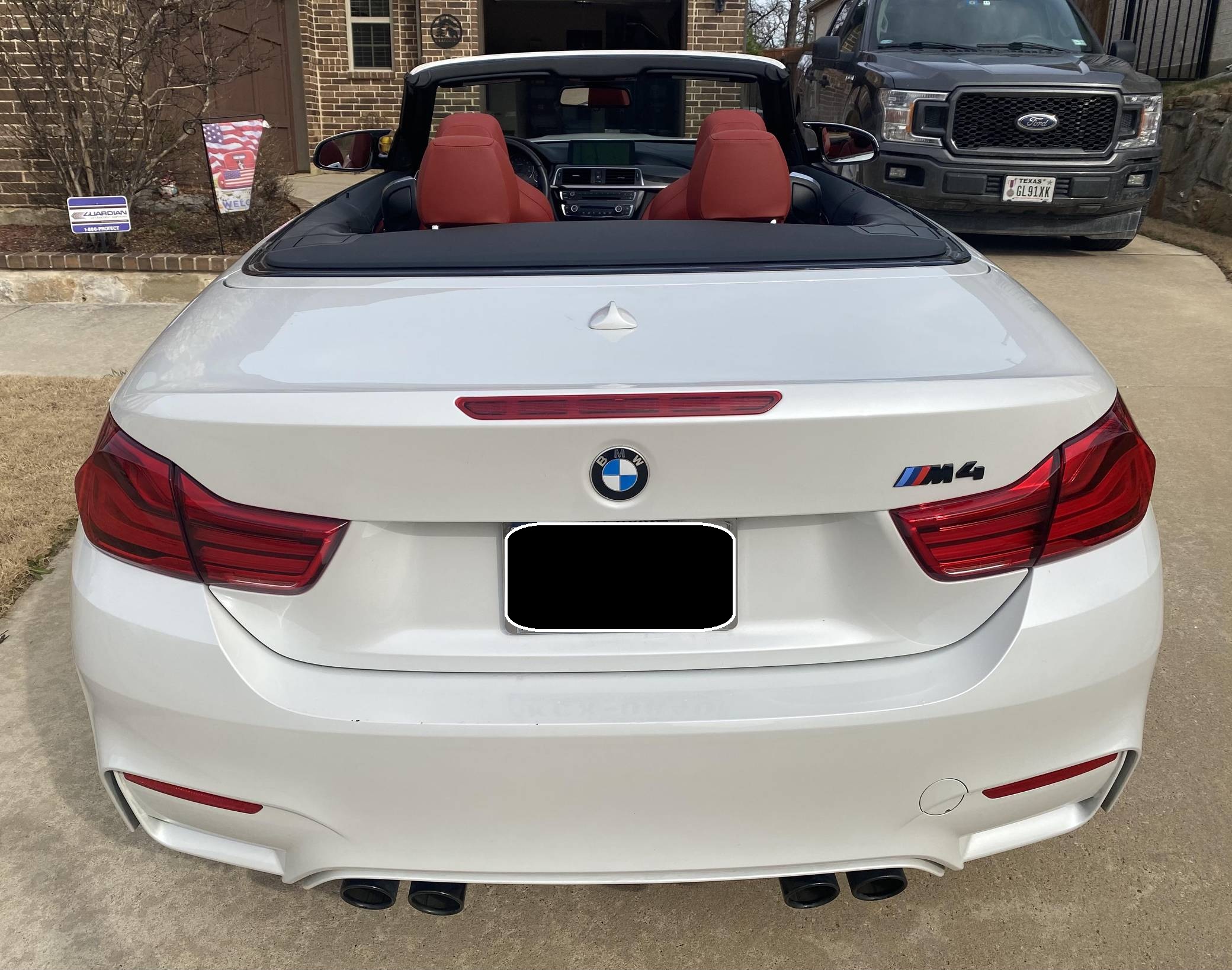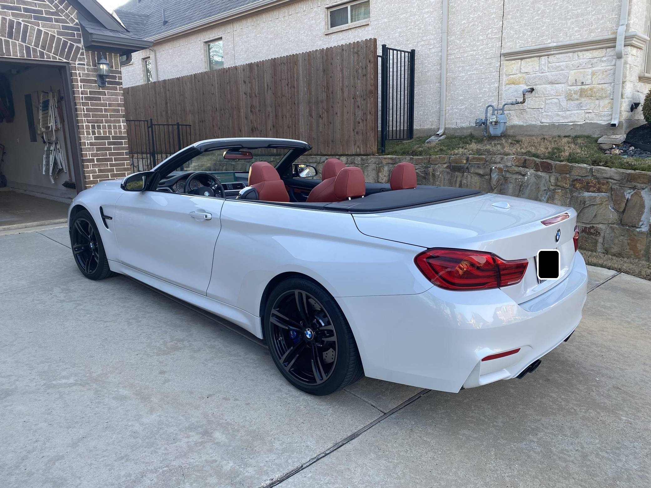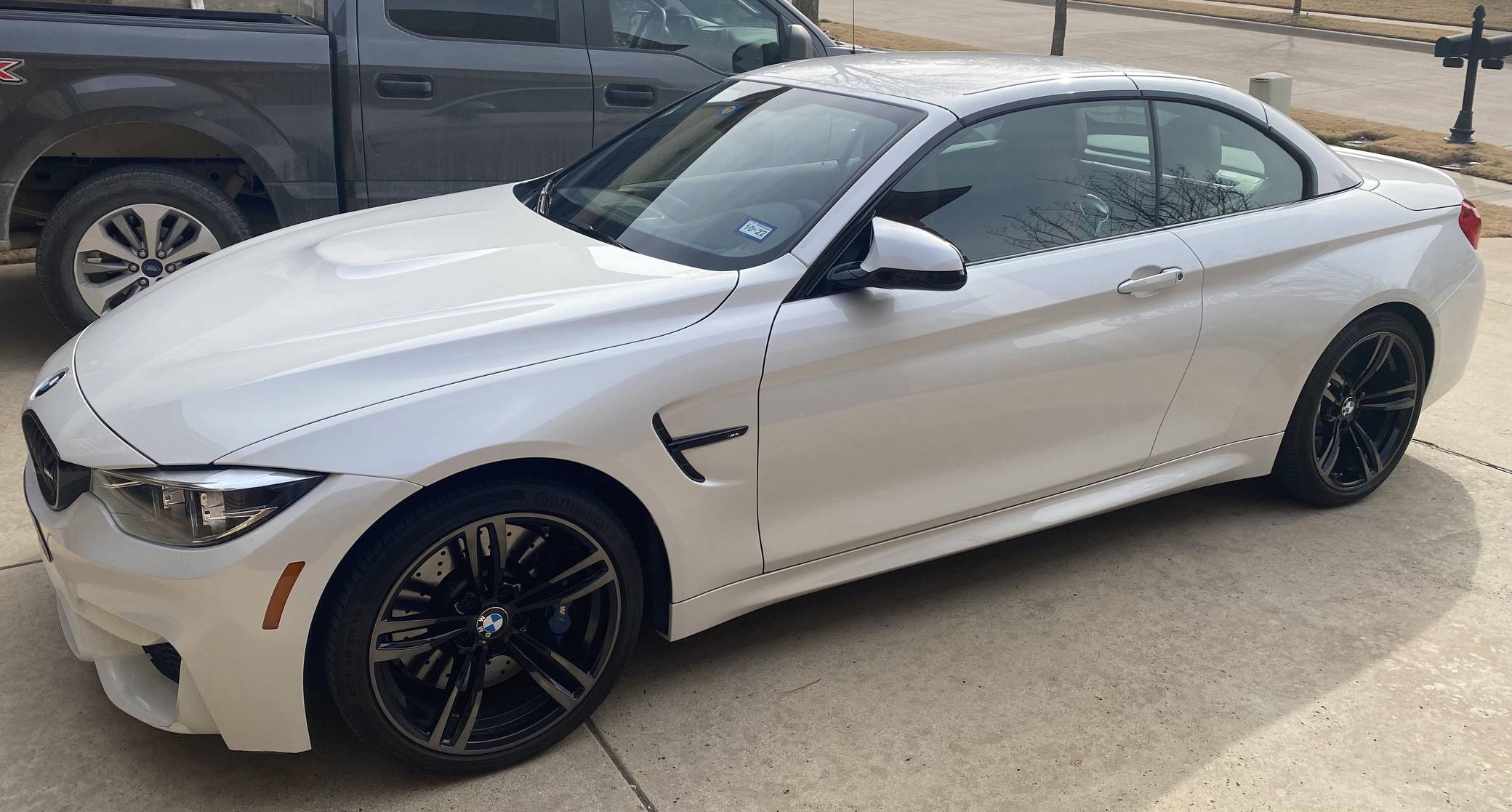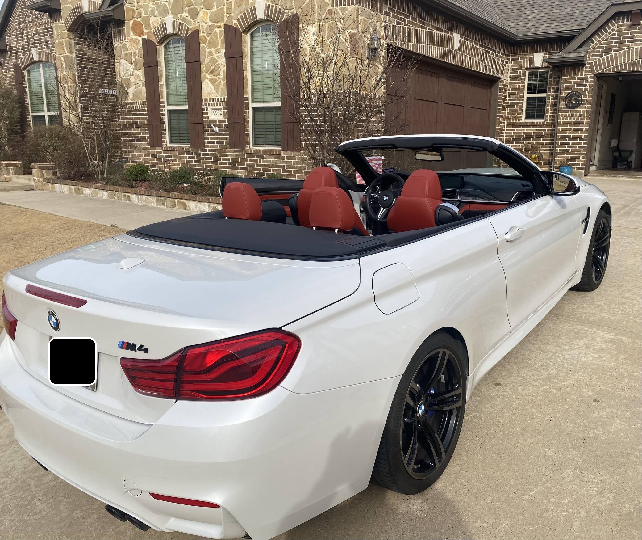 THIS. . . is a 2018 BMW M4 Convertible, finished in Mineral White Metallic with a Sakhir Orange interior. This convertible's odometer displays about 15,600 miles. It also shows that this is a one-owner car that has been Texas-owned since it was new. Factory equipment includes the Competition Package, 19-inch "Style 437M" wheels, an Adaptive M suspension system, a power-folding hardtop, carbon fiber interior trim, heated and power-adjustable front sport seats, a Harman Kardon surround sound system, a navigation system, and a head-up display. This M4's build sheet is pictured in the gallery, and the seller reports no modifications. 2015 was the first model year for the M4, which took the torch from the two-door M3. BMW surfed the downsizing wave sweeping across the industry by replacing the naturally-aspirated V8 with a twin-turbocharged straight-6, and a significant torque increase accompanied the new engine. Chopping off two cylinders and replacing metal bits with carbon fiber components allowed BMW to make the M4 up to 176 pounds lighter than the M3 it replaced. Production ended in 2020. Power comes from a 3. 0-liter twin-turbocharged straight-6, rated at 444 horsepower and 406 lb-ft of torque. Called "S55" internally, it spins the rear wheels via a 7-speed automatic transmission.