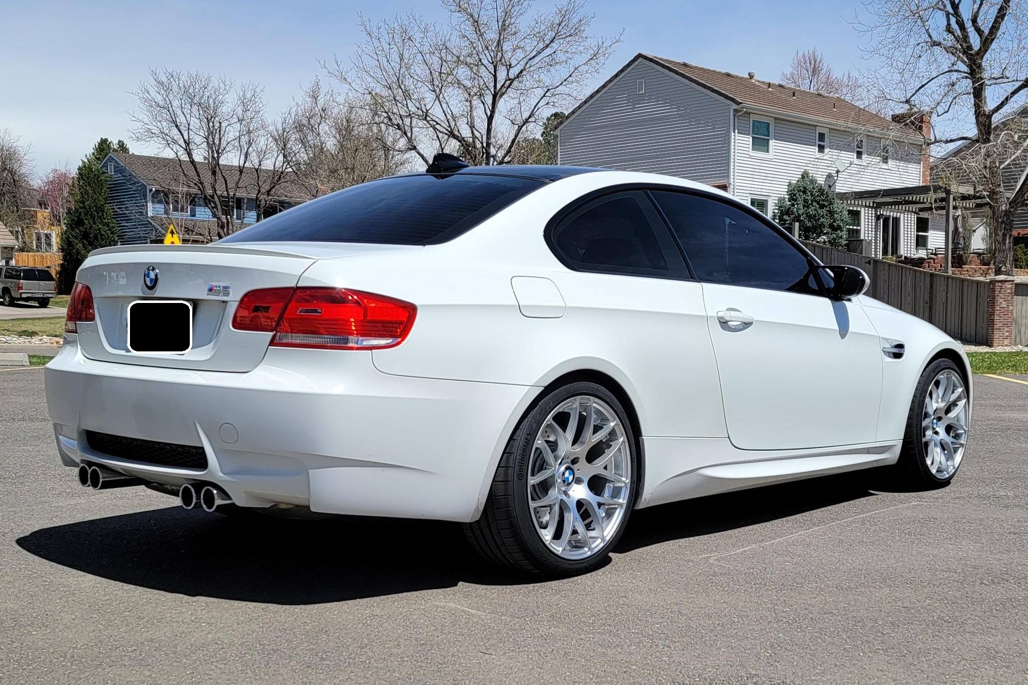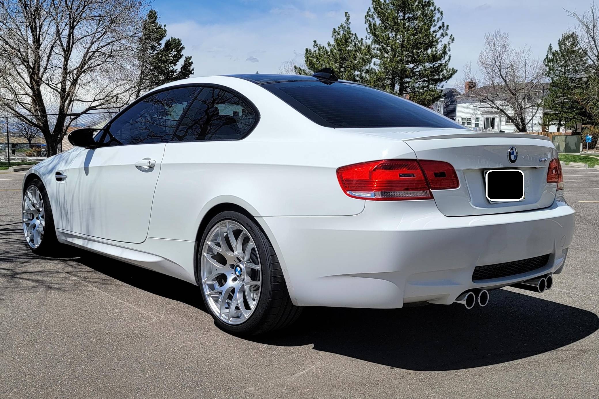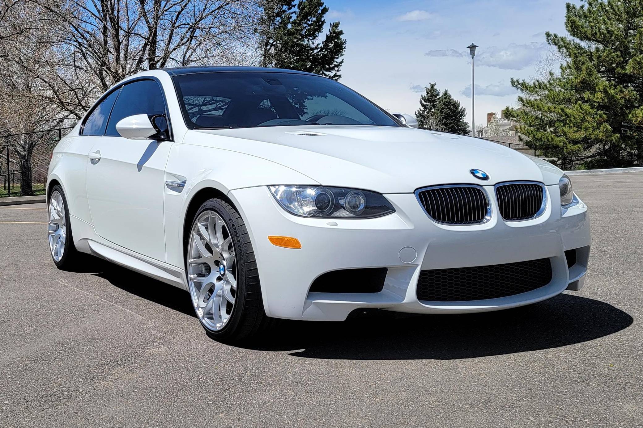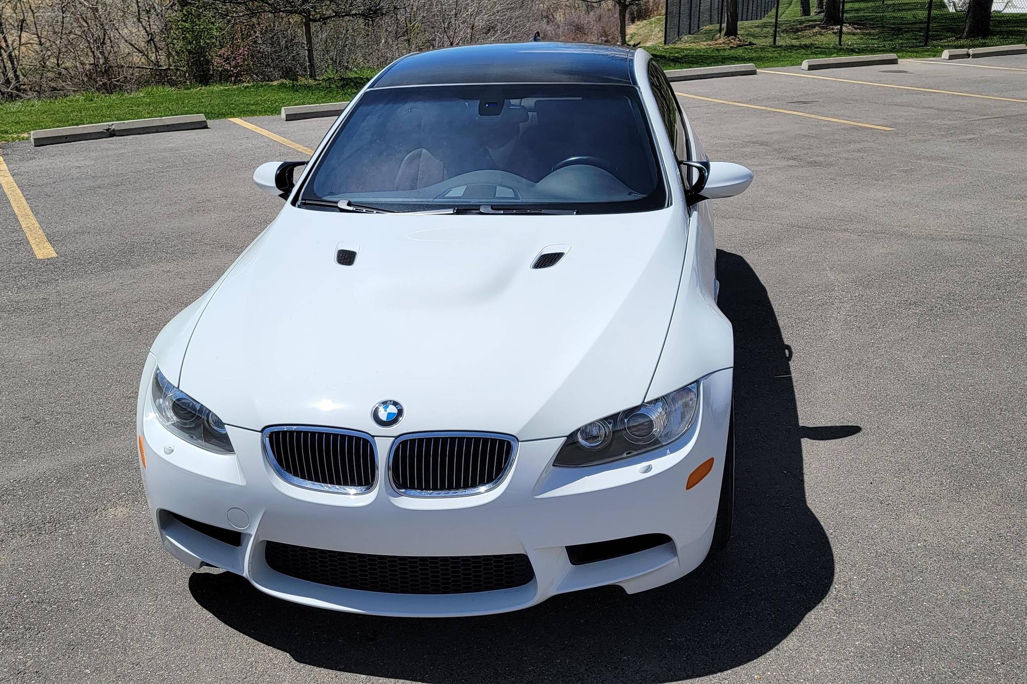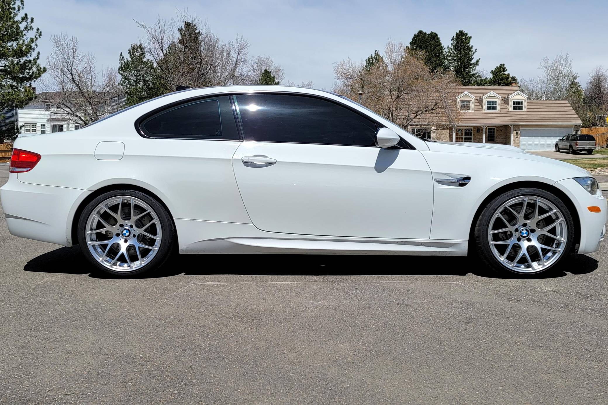 2008 BMW M3, finished in Alpine White with a Bamboo Beige interior. This coupe's odometer displays about 69,100 miles. Factory equipment includes the Cold Weather and Technology packages, an M suspension system, a carbon fiber roof panel, Novillo leather upholstery, power-adjustable front seats, and a BMW Individual high-end audio system. Modifications reported by the seller are limited to VAC Performance connecting rod bearings, ARP Bolts bearing bolts, 19-inch VMR V710 wheels, and tinted windows. An invoice pictured in the gallery shows that this M3 had its connecting rod bearings replaced in September 2021 at 68,871 miles. The engine mounts were replaced at that time as well. BMW had to balance horsepower and weight as it developed the first M3 equipped with a V8 engine. Released for 2008, and based on the E90-generation 3 Series, it won over skeptical enthusiasts by offering performance that approached supercar levels in a practical, daily-drivable package. Sedan, coupe, and convertible variants were offered. Power comes from a 4. 0-liter V8, rated at 414 horsepower and 295 lb-ft of torque. The engine spins the rear wheels via a 7-speed automatic transmission.