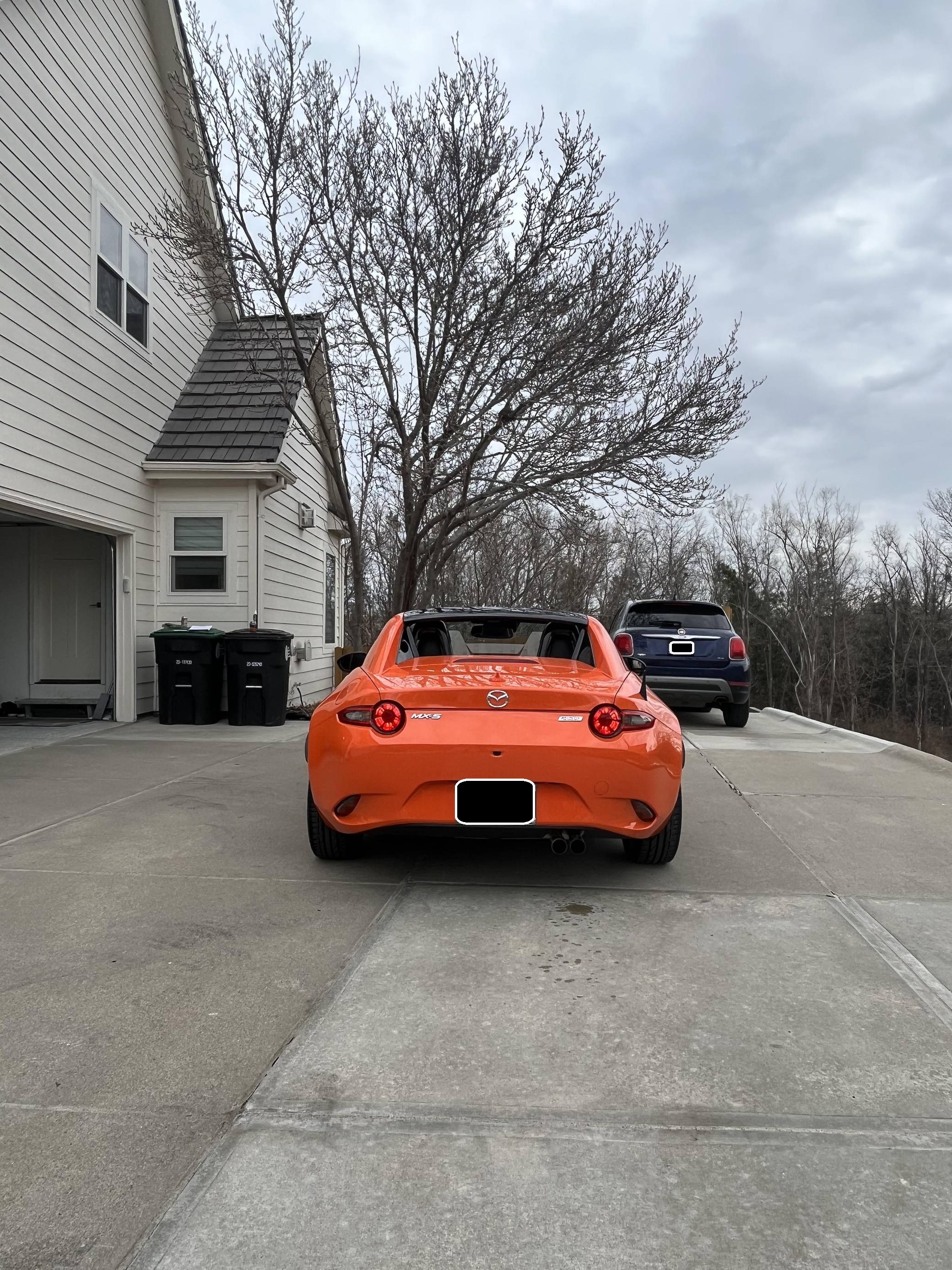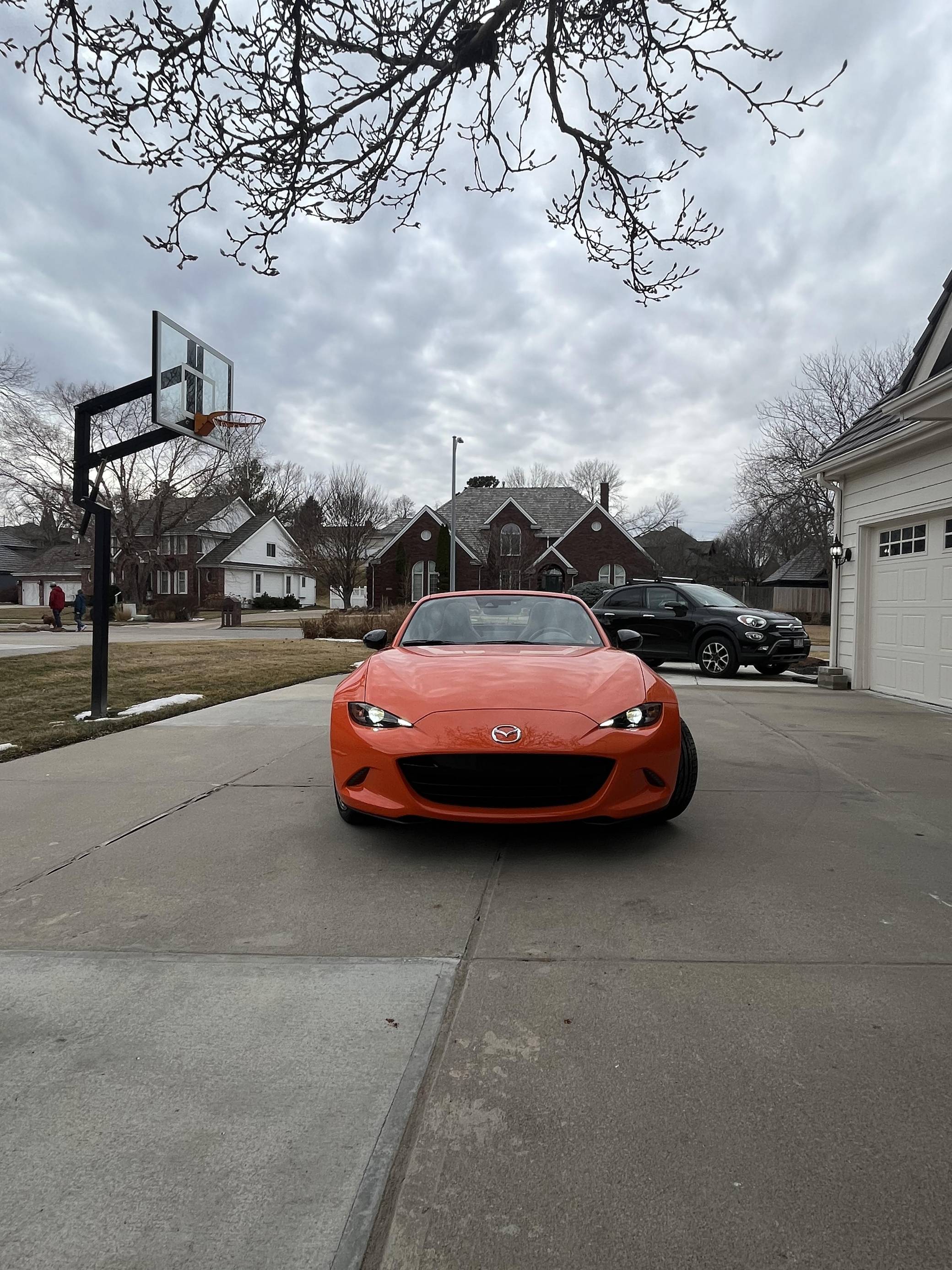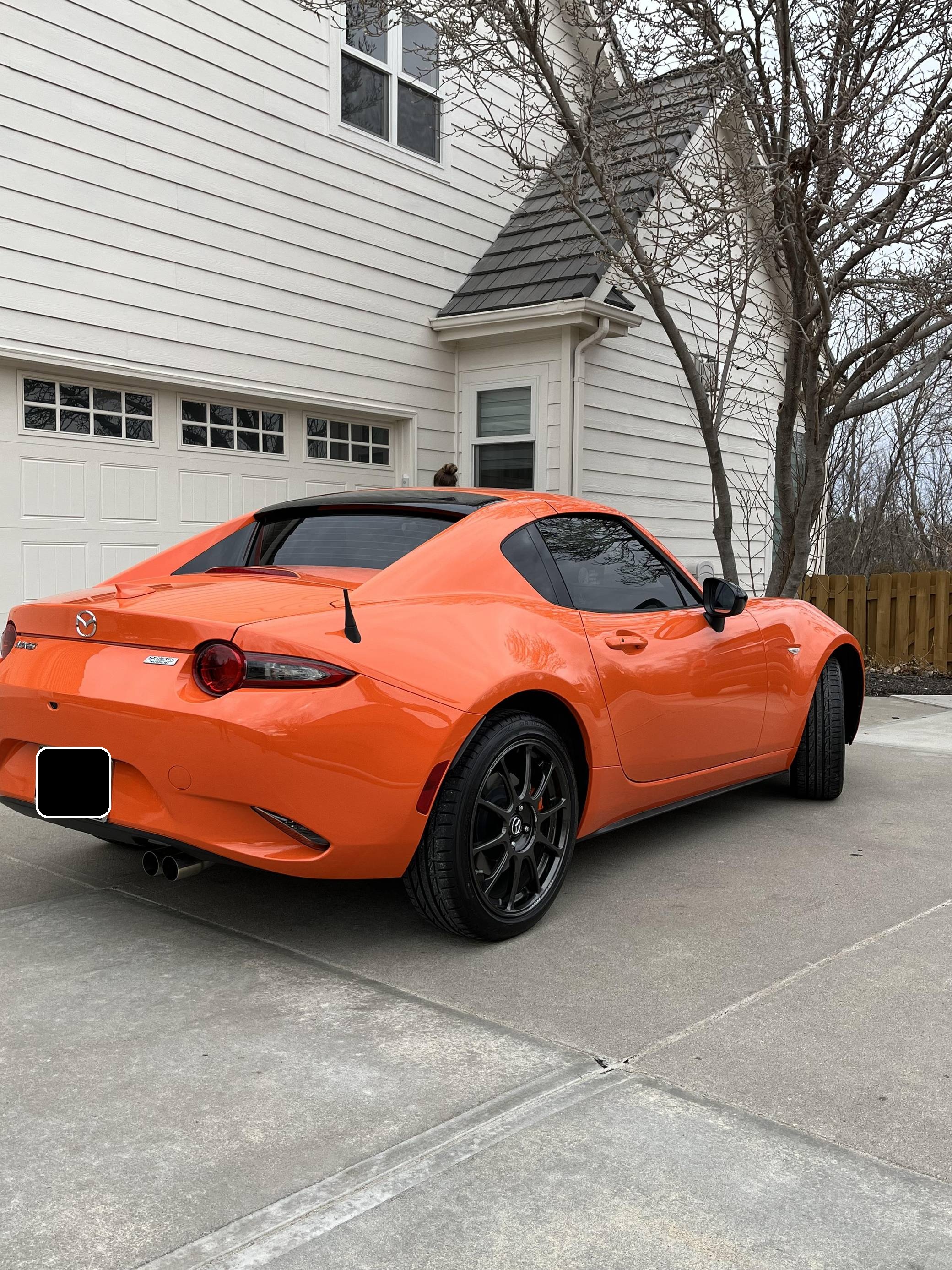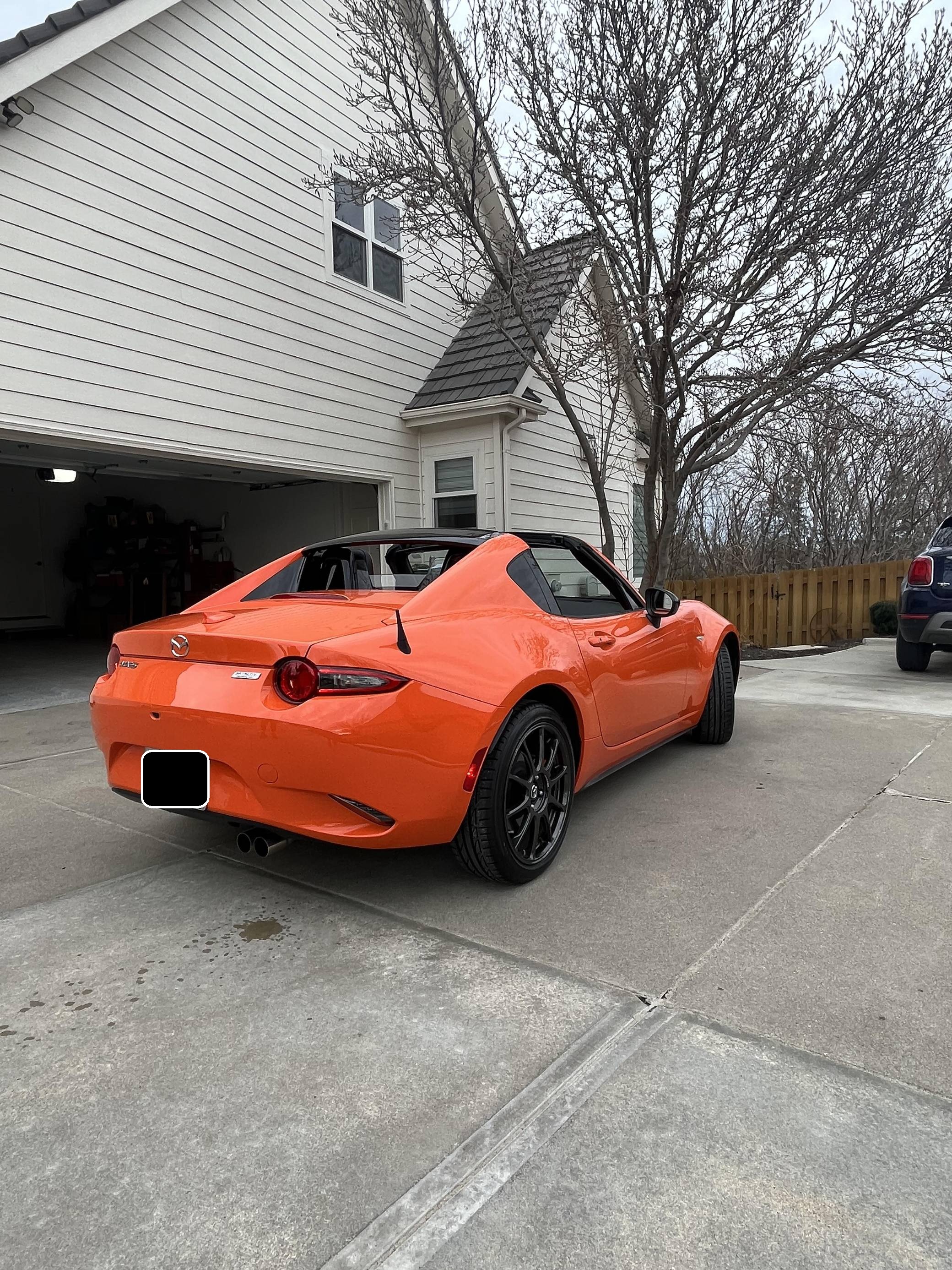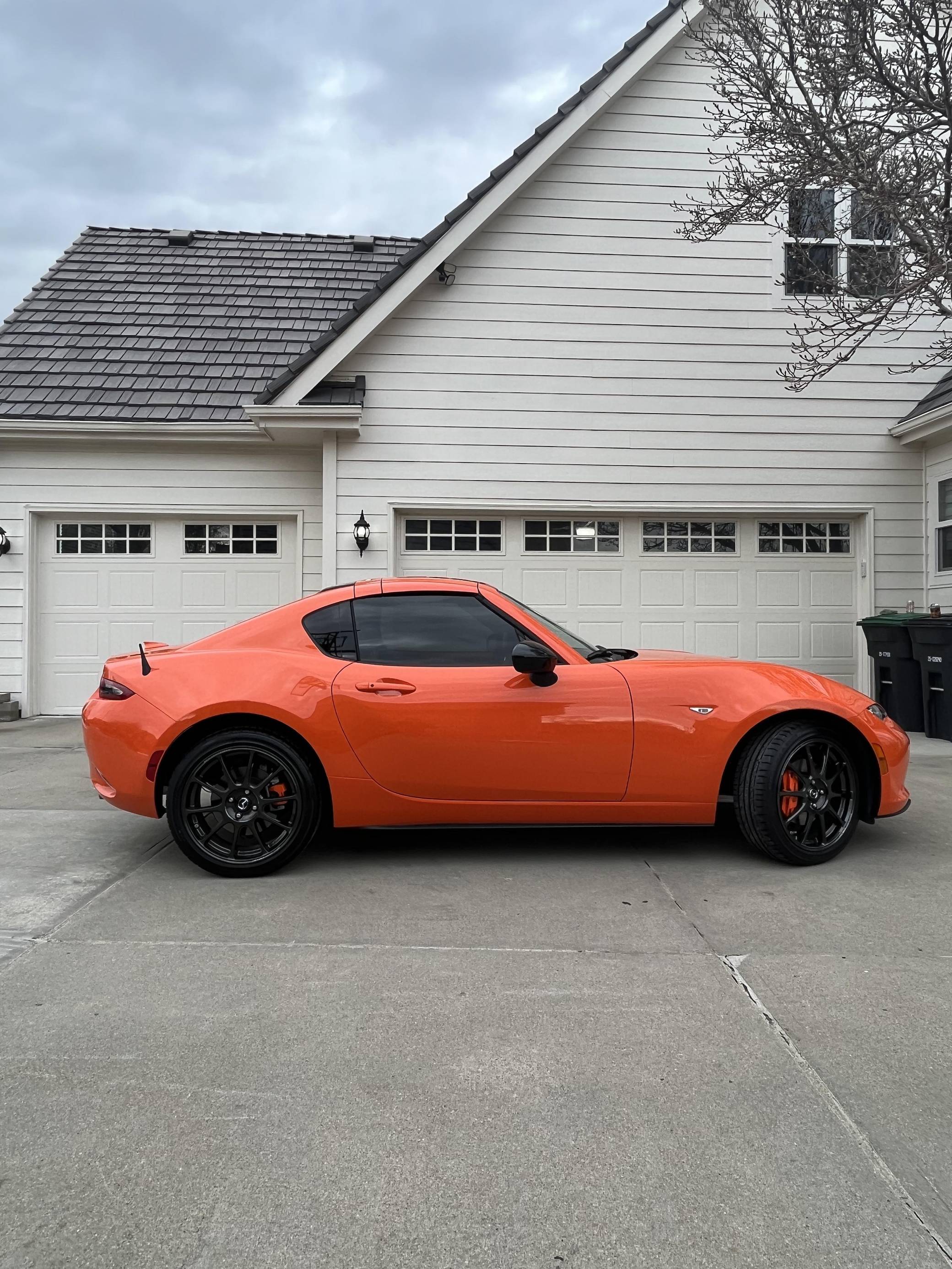 THIS… is a 2019 Mazda MX-5 RF 30th Anniversary Edition, finished in Racing Orange with a black interior. This MX-5 is fitted with the desirable 6-speed manual transmission, and the odometer currently displays approximately 6,900 miles. Modifications are limited to a stubby antenna and window tint. The "Retractable Fastback" or "RF" version of the "ND" Miata debuted in 2016 with a power-operated hardtop panel that disappears into the trunk area, as well as distinctive flying buttresses that alter the car's side profile. The "ND2" model launched for the 2019 model year and featured revisions to the engine with more power and a higher redline, a telescoping steering column, revised seat controls, a new cupholder, reverse camera, and a redesigned door handle mechanism. The 30th Anniversary Edition differentiates itself from other trim levels with a distinct Racing Orange hue, Rays forged wheels, Racing Orange-painted brake calipers, and orange accents throughout the interior, as well as a few other unique features. Only 3,000 were produced. Power comes from a 2. 0-liter inline-4, rated at 181 horsepower and 151 lb-ft of torque. Output is sent to the rear wheels via a 6-speed manual transmission.