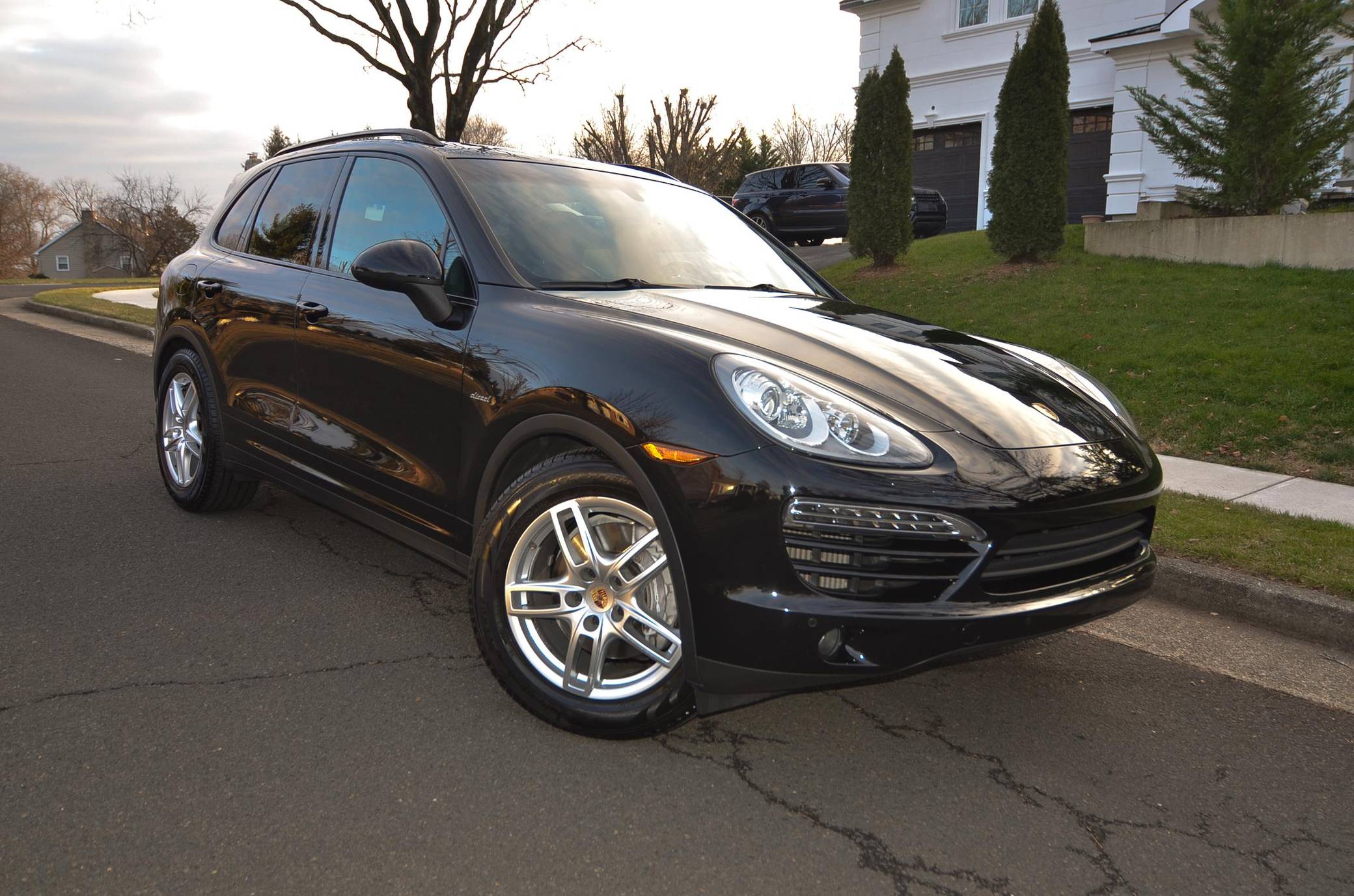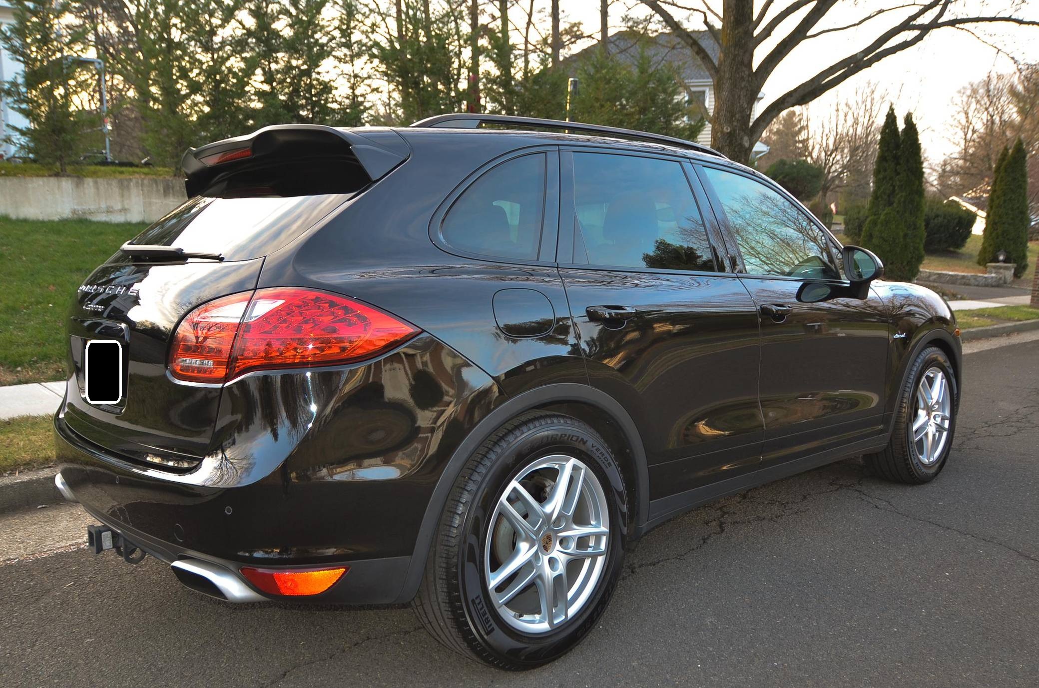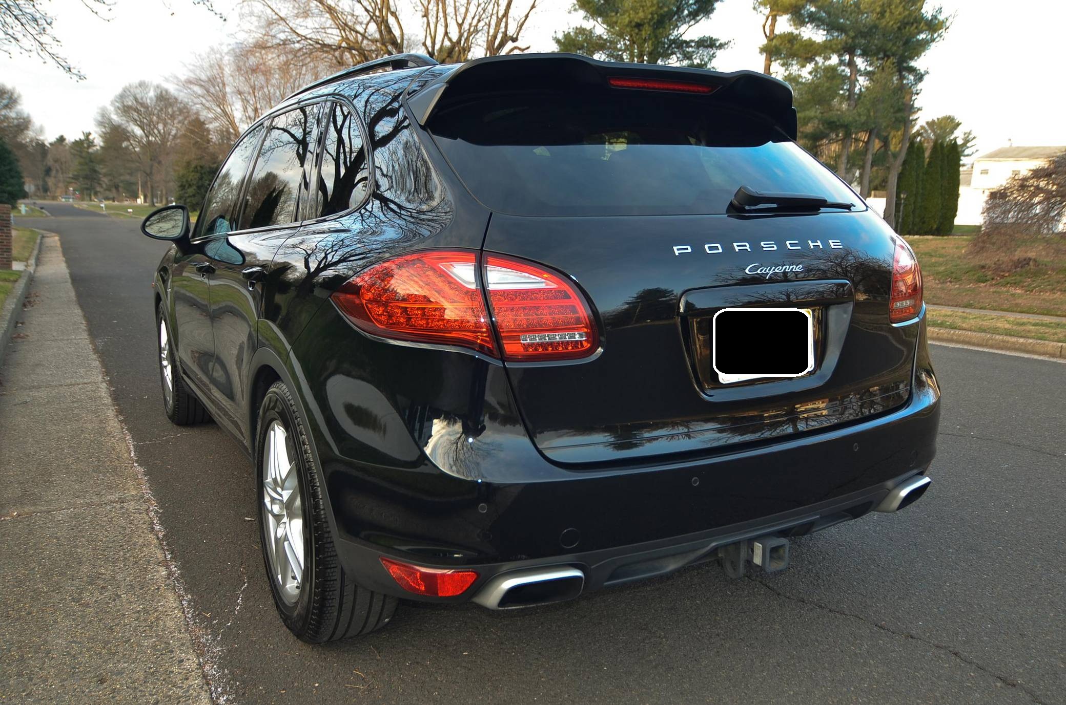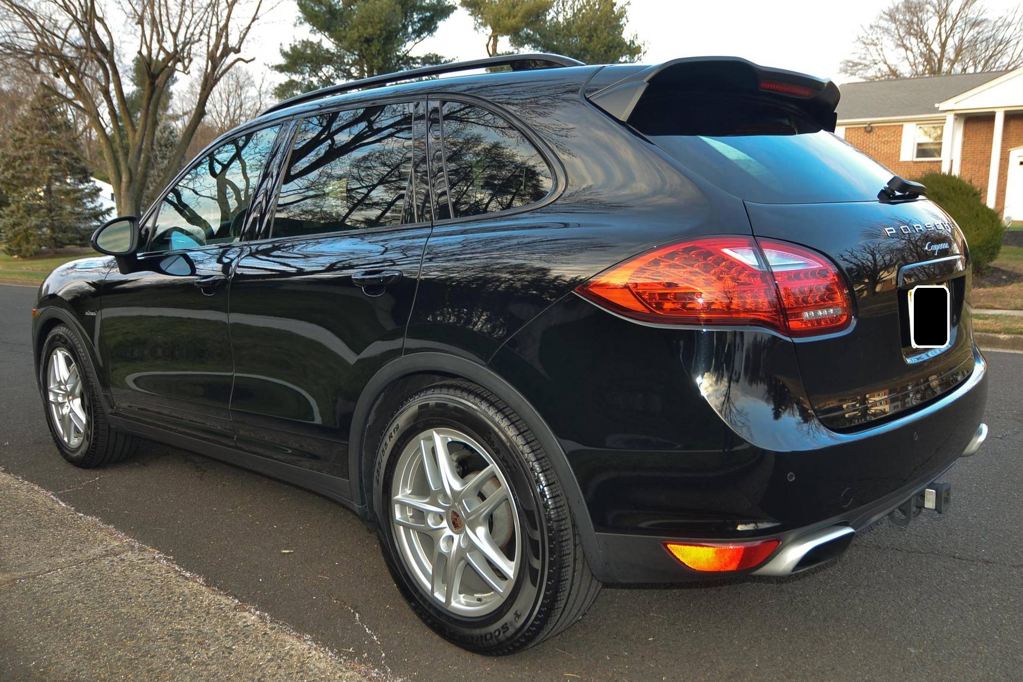 2013 Porsche Cayenne Diesel, finished in black with a black interior. This Cayenne is equipped with the rare and desirable turbodiesel V6 engine, and its odometer displays about 55,200 miles. It's equipped with the Premium Package Plus, 19-inch Cayenne Turbo wheels with colored crests, a rear spoiler, a trailer hitch, roof rails, leather upholstery, and a Bose sound system, among other features. Modifications reported by the seller include a Malone Tuning "Stage 2" tune, a Rawtek Performance Fabrication kit that removes the diesel particulate filter (DPF), the AdBlue system, and the selective catalyst reduction (SCR) system, and H&R lowering springs. More information about the aftermarket parts installed on this Cayenne is below, and the removed factory parts are pictured in the gallery and included in the sale. Released for the 2011 model year, the second-generation Cayenne (called "958" internally) was slightly bigger and significantly lighter than its predecessor. It offered a smoother ride thanks to additional technology and luxury features, it was just as capable off-road, and critics agreed it was noticeably sportier than the first-generation model. Production ended in 2017. Power comes from a 3. 0-liter turbodiesel V6, rated at 240 horsepower and 406 lb-ft of torque when left stock. The seller states that the tune increases those figures to 305 and 490, respectively, but a dyno sheet is not available. The engine spins the four wheels via an 8-speed automatic transmission and a permanent all-wheel-drive system. In 2013, Porsche pegged the Cayenne Diesel's towing capacity at 7,716 pounds.