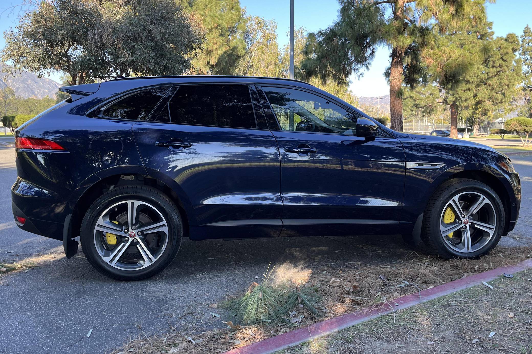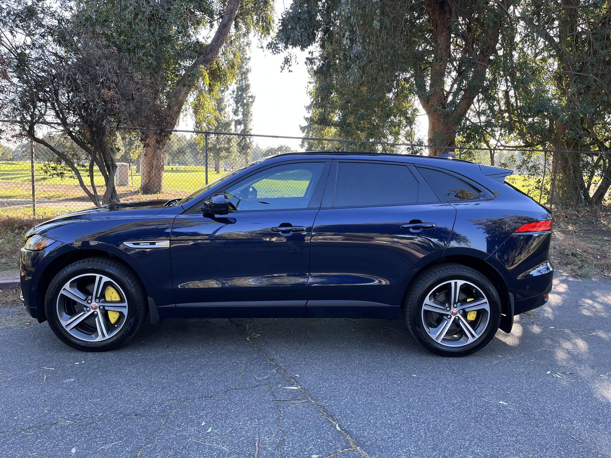 THIS. . . is a 2017 Jaguar F-Pace 20d, finished in Dark Sapphire with a Jet interior. This F-Pace is equipped with the rare turbodiesel engine. It's equipped with the Comfort and Convenience, Luxury Interior Upgrade, Technology, and Driver Assistance packages, 20-inch wheels, a trailer hitch, a panoramic sunroof, wood interior trim, heated and power-adjustable front seats, a heated steering wheel, and a head-up display, among other features. Modifications reported by the seller are limited to a CHIP Express tune, yellow covers on the brake calipers, clear paint protection film on the front end and on the door mirror caps, and tinted windows. Launched for 2017, the F-Pace offers the luxury and the performance that buyers expect from a Jaguar in an SUV package; it was the firm's first entry into the segment. Engineers relied extensively on aluminum to keep weight in check and to improve handling, which is a big part of what allows the F-Pace to avoid stepping on Land Rover's toes. Production continues in 2022, though the 20d is no longer available. Power comes from a 2. 0-liter turbodiesel 4-cylinder engine, rated at 180 horsepower and 318 lb-ft of torque when left stock. The seller states that the tune increases those figures to 239 and 424, respectively, but a dyno sheet is not available. The engine spins the four wheels via an 8-speed automatic transmission linked to a pair of shift paddles.