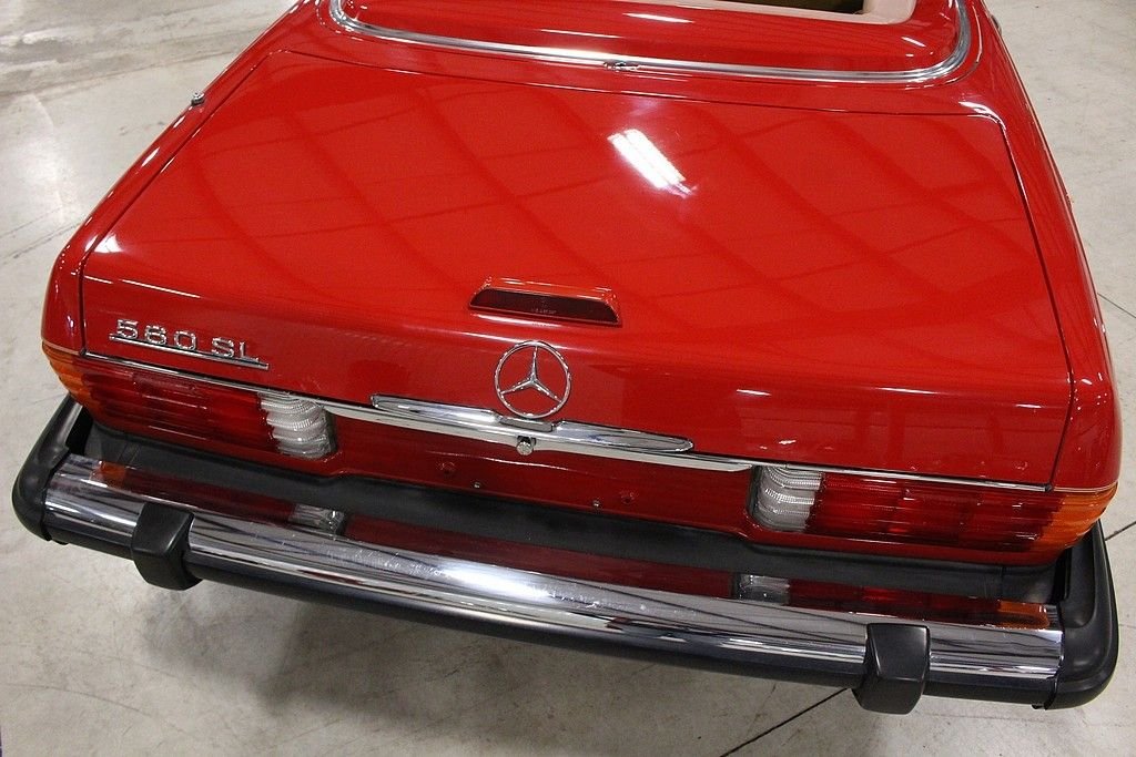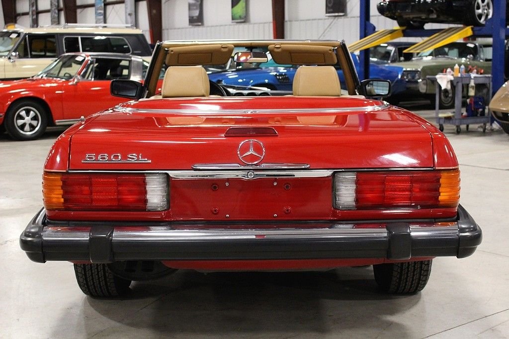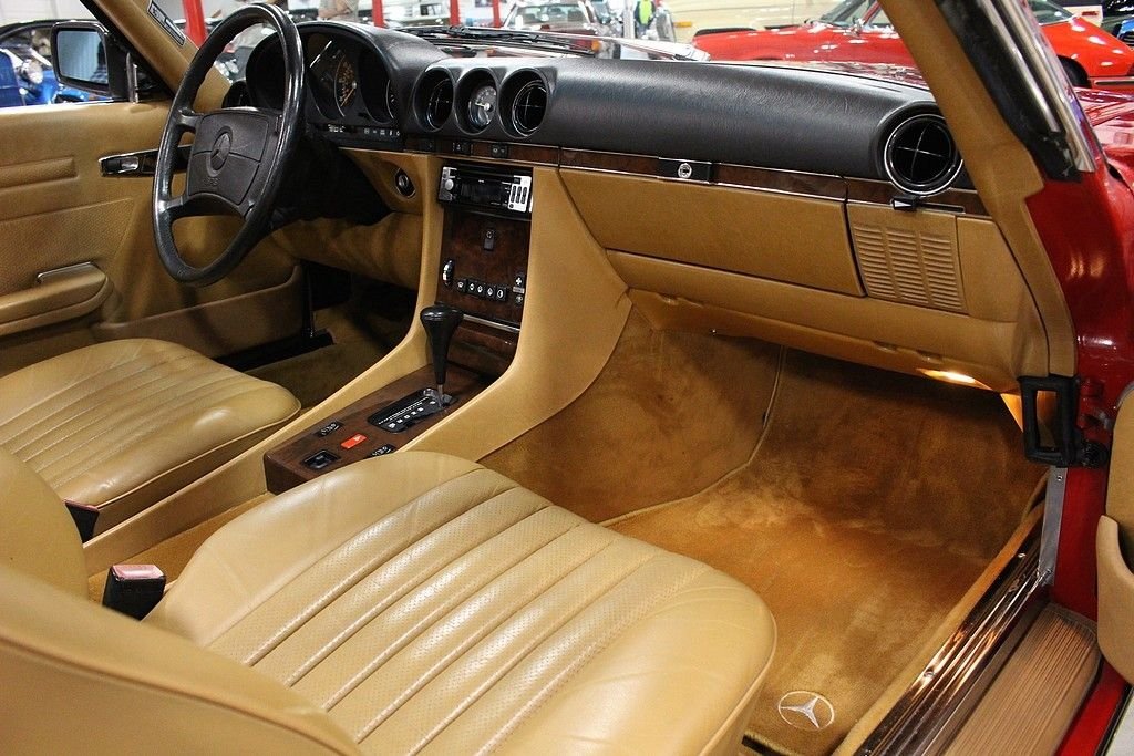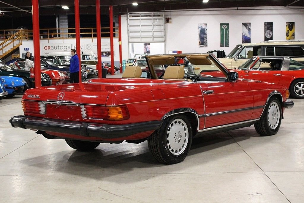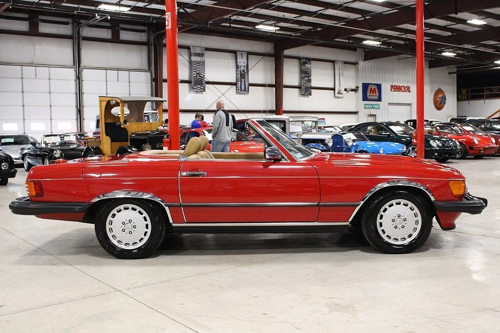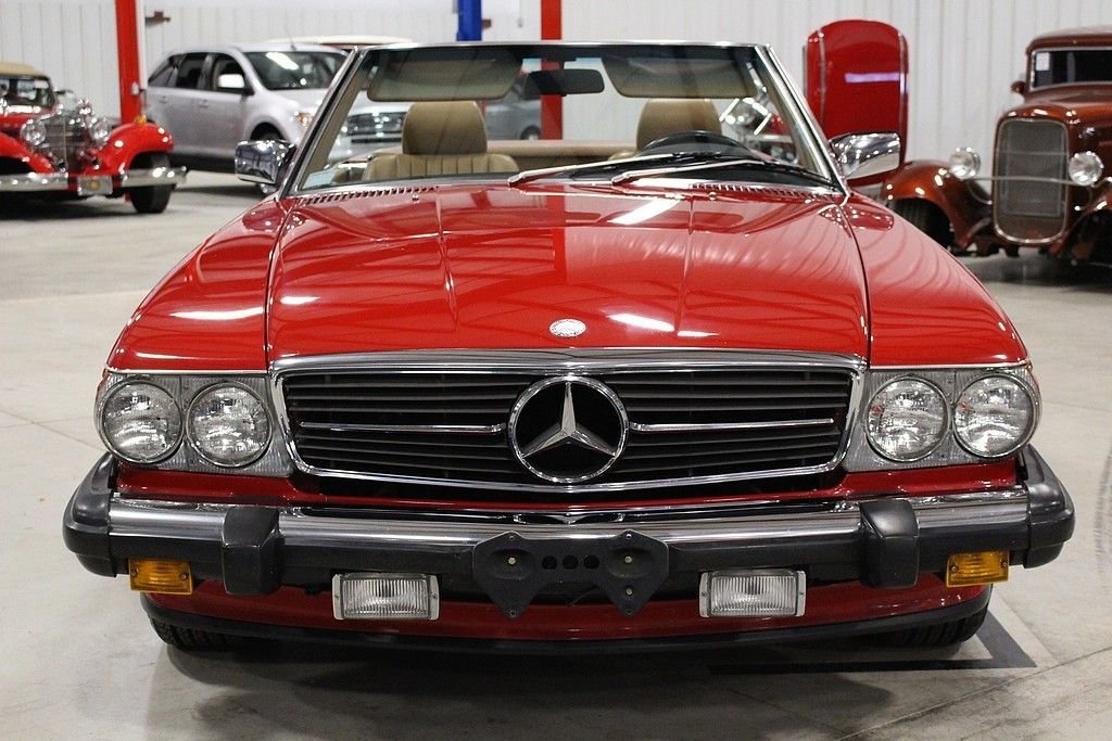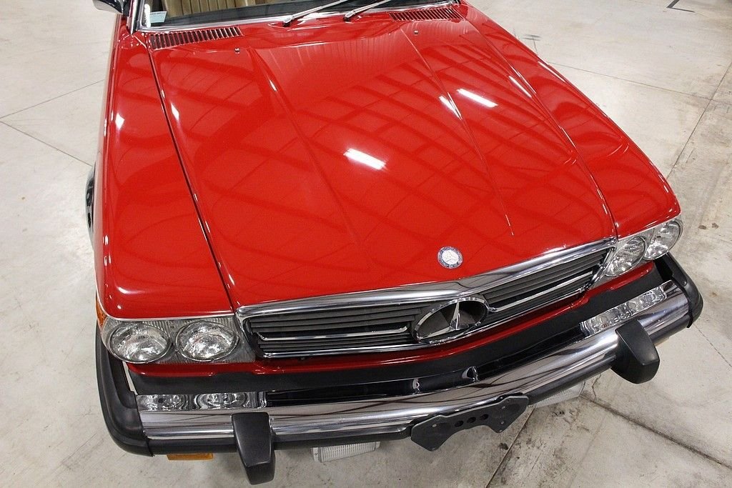 At the end of the run of the legendary R107 series, Mercedes sent their most powerful and loaded SL yet to the United States. The engine improved in speed, torque, and horsepower. The car also received a new rear suspension and a limited-slip differential to better handle the added torque and power. Mercedes also added anti-lock brakes, leather upholstery, and an alarm system. Today, many enthusiasts gravitate towards the 560SL as it retains some of the original lines of the pagoda SL's while carrying with it all of the R107's advances. This pristine 560SL is near flawless inside and outside. The stunning color combination of Signal red with Parchment leather interior and brown soft top distinguishes itself from the more common color combos. Car was delivered new by Overseas Motors Corp out of Ft Myers, Florida where it remained until 1996 when it was brought up to Michigan and remained in the second owners name. Only two owners and lots of love was given to this remarkable convertible. Vehicle has only logged 20k miles over the past 10 years and remains an exceptional example of a well-cared for low mileage vehicle. Routine service was performed by the Mercedes dealerships and stamps in the maintenance log reflect proper service. The car retains all VIN tags on body panels, all factory stock features minus an upgraded Clarion stereo, soft top in excellent shape and factory hard top that looks brand new. Seats are in great shape and all gauges function properly. Vehicle runs and drives with precision and the power is remarkable. The paint looks to be all original and free of any flaws and wheels are in excellent shape with upgraded chrome wheel well arches. This vehicle has a strong pedigree and comes with full factory owners manuals, service stamps, both convertible top tools, spare tire, jack tools, and multiple keys. With only 8251 built in 1989 and the last year of this model, it is destined to continue to rise in value and demand will stay very strong for this car for many years.