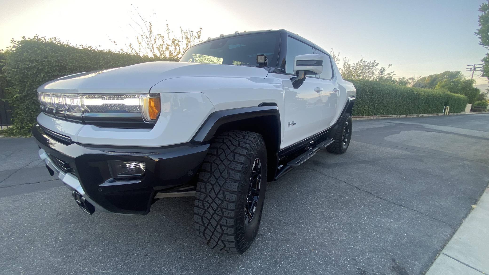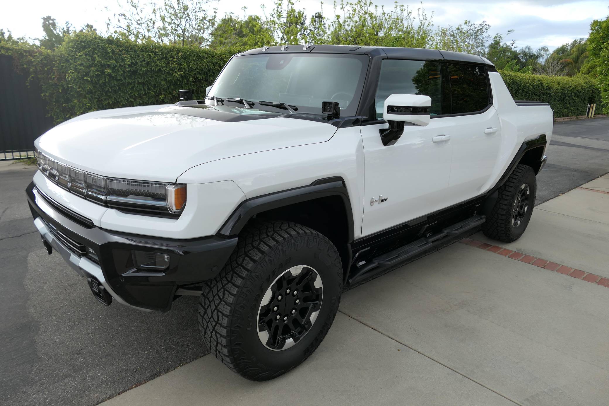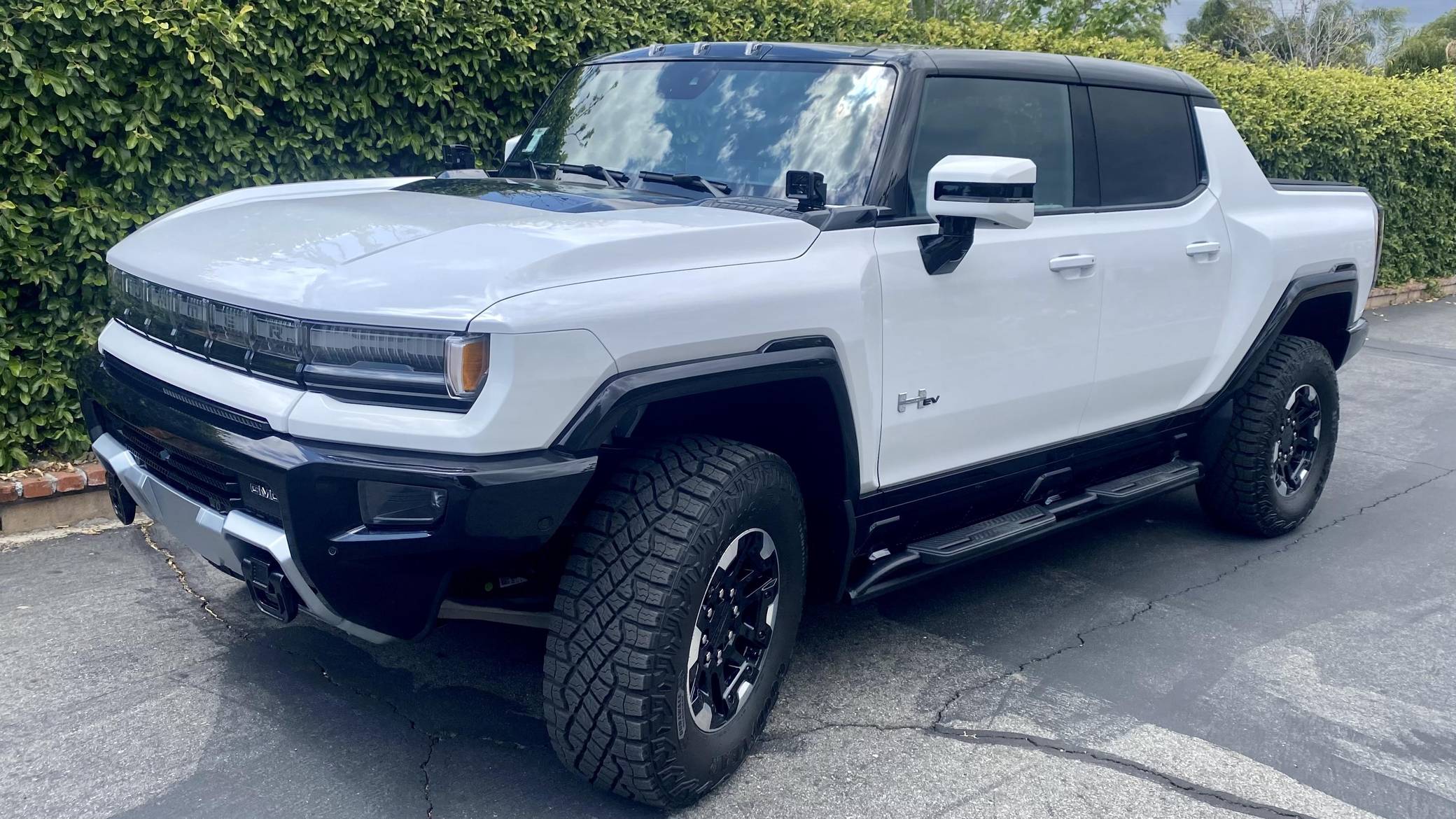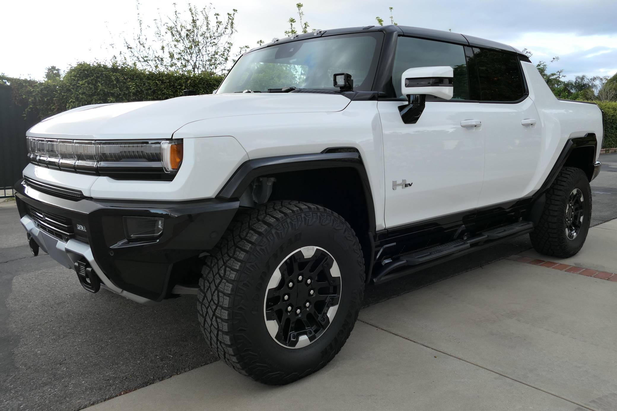 2022 GMC Hummer EV Pickup Edition 1, finished in Interstellar White with a Jet Black and Light Gray interior. Unmodified, it's equipped with the Illumination Package, 18-inch wheels, an Air Ride adaptive suspension system, a four-wheel steering system with a CrabWalk mode, a Multipro tailgate, an Infinity Roof with transparent Sky Panels, and a 14-speaker Bose surround sound system, among other features. General Motors unexpectedly resurrected the Hummer name on a massive electric truck assigned to the GMC brand. Built around the firm's Ultium technology, the Hummer EV stands out with a powerful electric drivetrain and several off-road-focused features, like a four-wheel-steering system with a CrabWalk mode capable of turning the four wheels in the same direction. Hummer EV production began in late 2021. Power comes from three electric motors, which draw electricity from a 212-kilowatt-hour lithium-ion battery pack to zap the four wheels with about 1,000 horsepower, according to GMC.