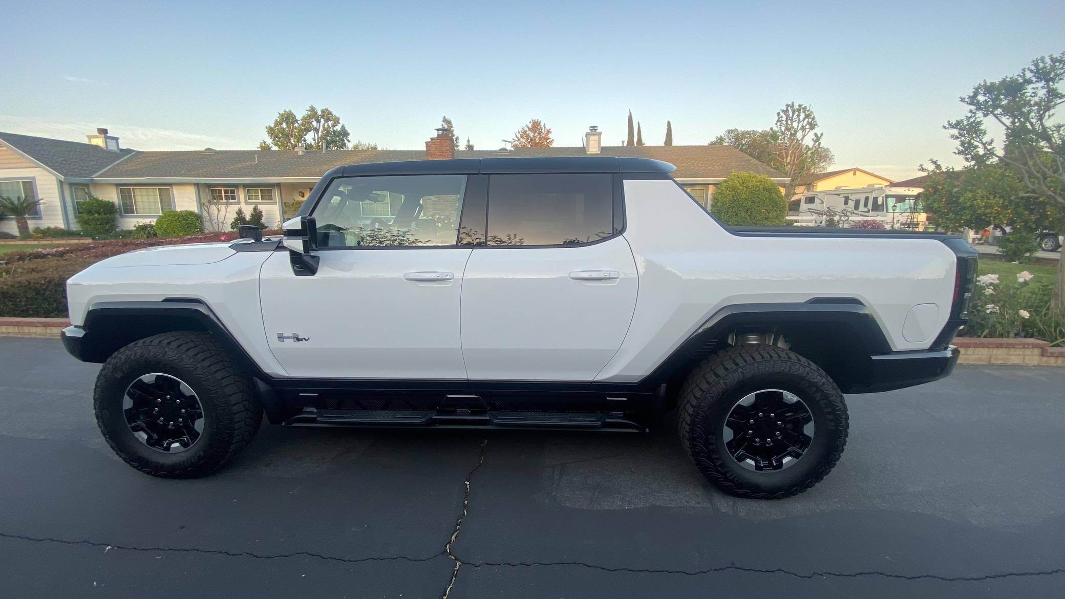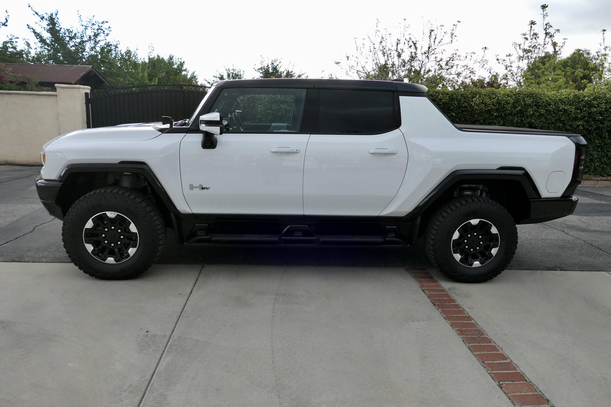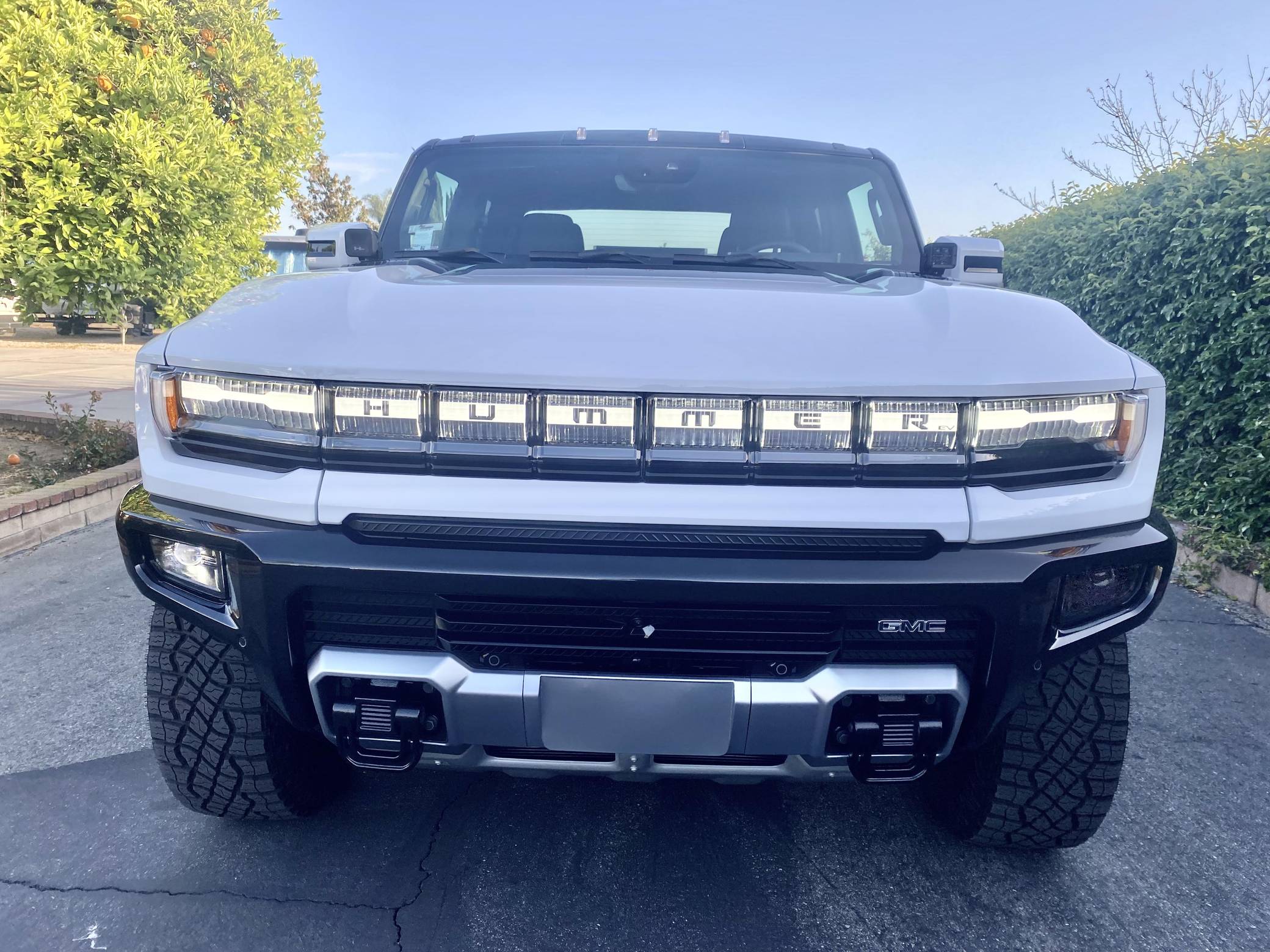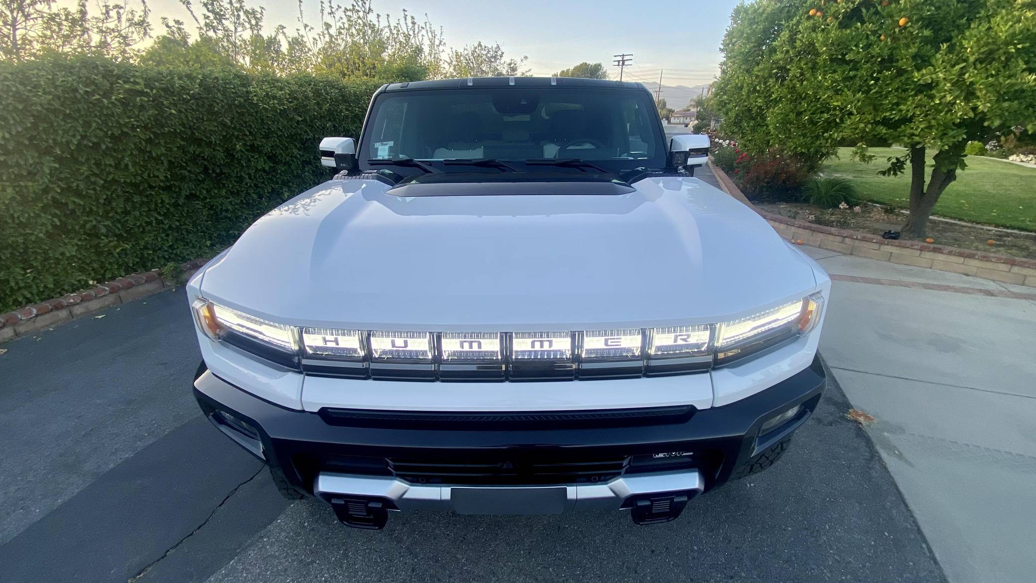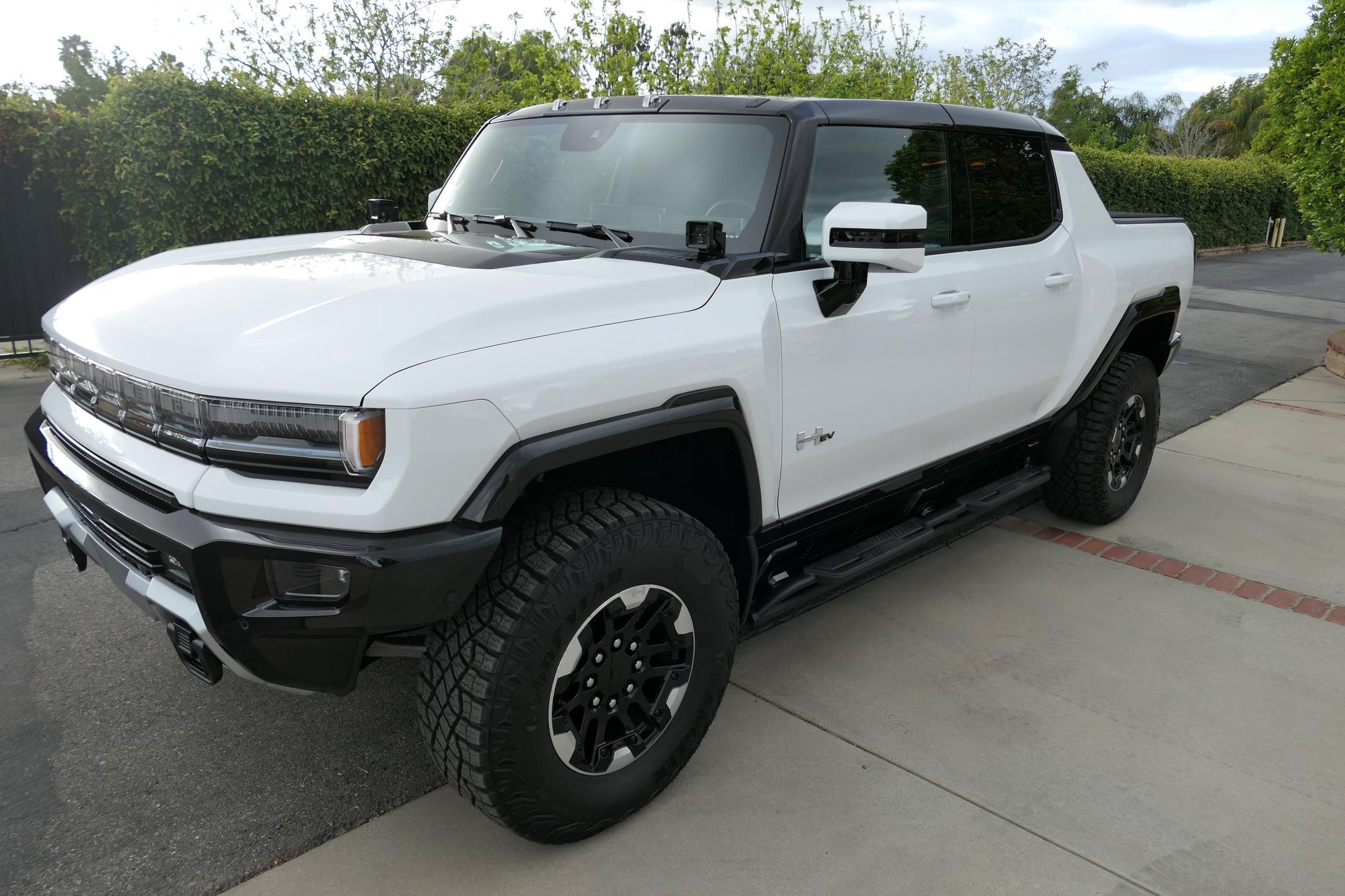 2022 GMC Hummer EV Pickup Edition 1, finished in Interstellar White with a Jet Black and Light Gray interior. Unmodified, it's equipped with the Illumination Package, 18-inch wheels, an Air Ride adaptive suspension system, a four-wheel steering system with a CrabWalk mode, a Multipro tailgate, an Infinity Roof with transparent Sky Panels, and a 14-speaker Bose surround sound system, among other features. General Motors unexpectedly resurrected the Hummer name on a massive electric truck assigned to the GMC brand. Built around the firm's Ultium technology, the Hummer EV stands out with a powerful electric drivetrain and several off-road-focused features, like a four-wheel-steering system with a CrabWalk mode capable of turning the four wheels in the same direction. Hummer EV production began in late 2021. Power comes from three electric motors, which draw electricity from a 212-kilowatt-hour lithium-ion battery pack to zap the four wheels with about 1,000 horsepower, according to GMC.