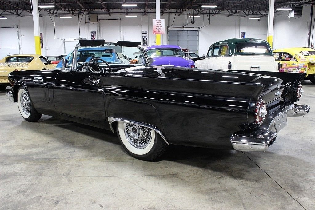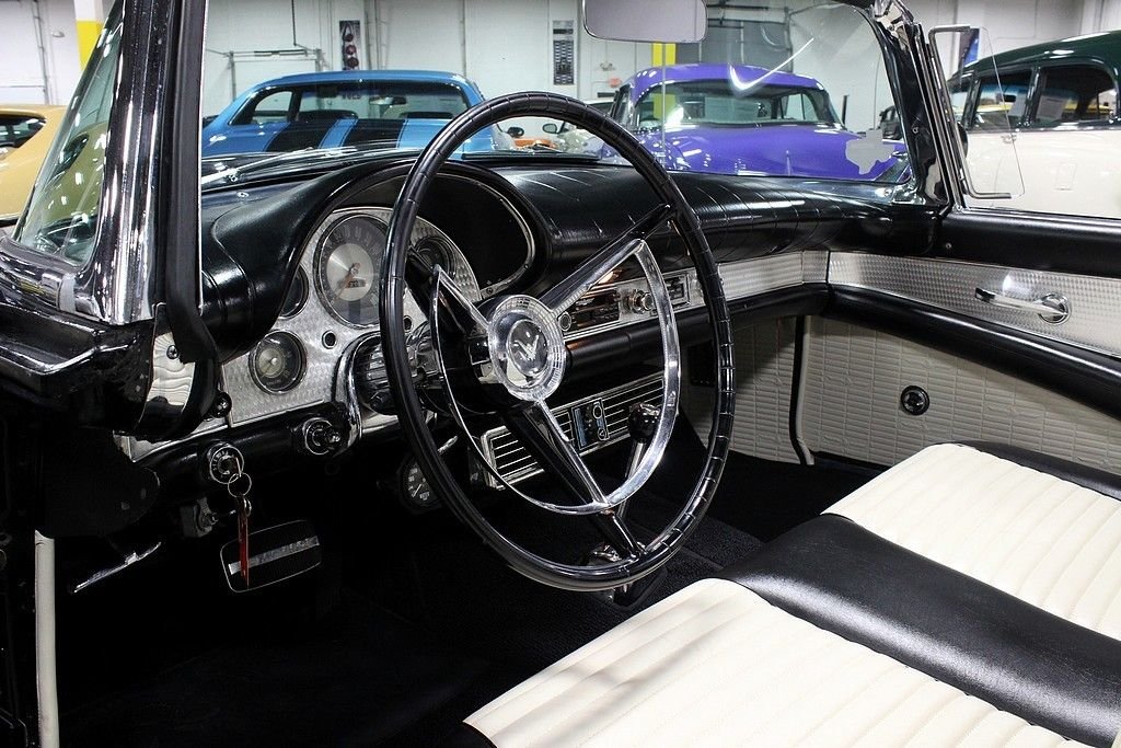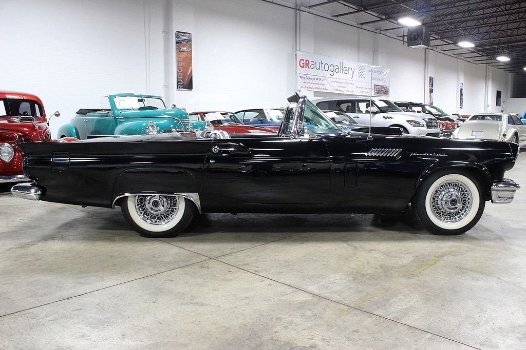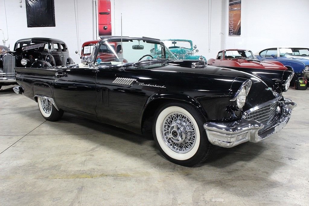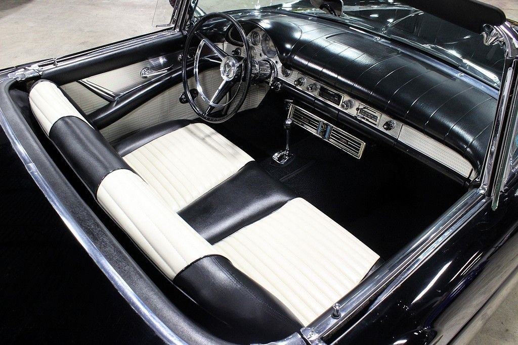 The Ford Thunderbird project was in direct response to that of the Chevrolet Corvette. In fact the number of T-Birds sold the first several years were much greater than that of the Corvette. This might have been the result of a better marketing campaign by Ford. They were the first to market the term “personal luxury car” vs “sports car”. Although not a lot of change happened from the first generation birds, the biggest was the size of the rear fender wings that went from a more rounded look in 1955 to a higher more pronounced look for 1957. The other change was a 312 ci V8, up from the 292 V8. The styling and performance of these were really a benchmark for automobiles back then and this one still holds a great deal of originality as it hosts a 312ci V8 properly mated to the Powerglide automatic transmission. Believed to originate from the warm parts of California, the owner informs us that this was even owned by Jill St. John, a famous actress back then, and owned it for its first few years of its life! Although the exterior shows very well and comes with both a soft and a hard top (stand not included), the paint was redone to an original color choice around 30 years ago. Mechanically this vehicle is running and riding very well and has seen major work done to ensure this including a transmission rebuild a few years ago. Believed to be an all steel body still and with a fully restored interior, this is a real find for those who appreciate the early T-birds. With power brakes, power steering and even the A/C from the factory, this is a very complete car that comes to you ready to enjoy as a wonderful driver or for those who prefer to find them with a little work to be completed and customized to your liking!