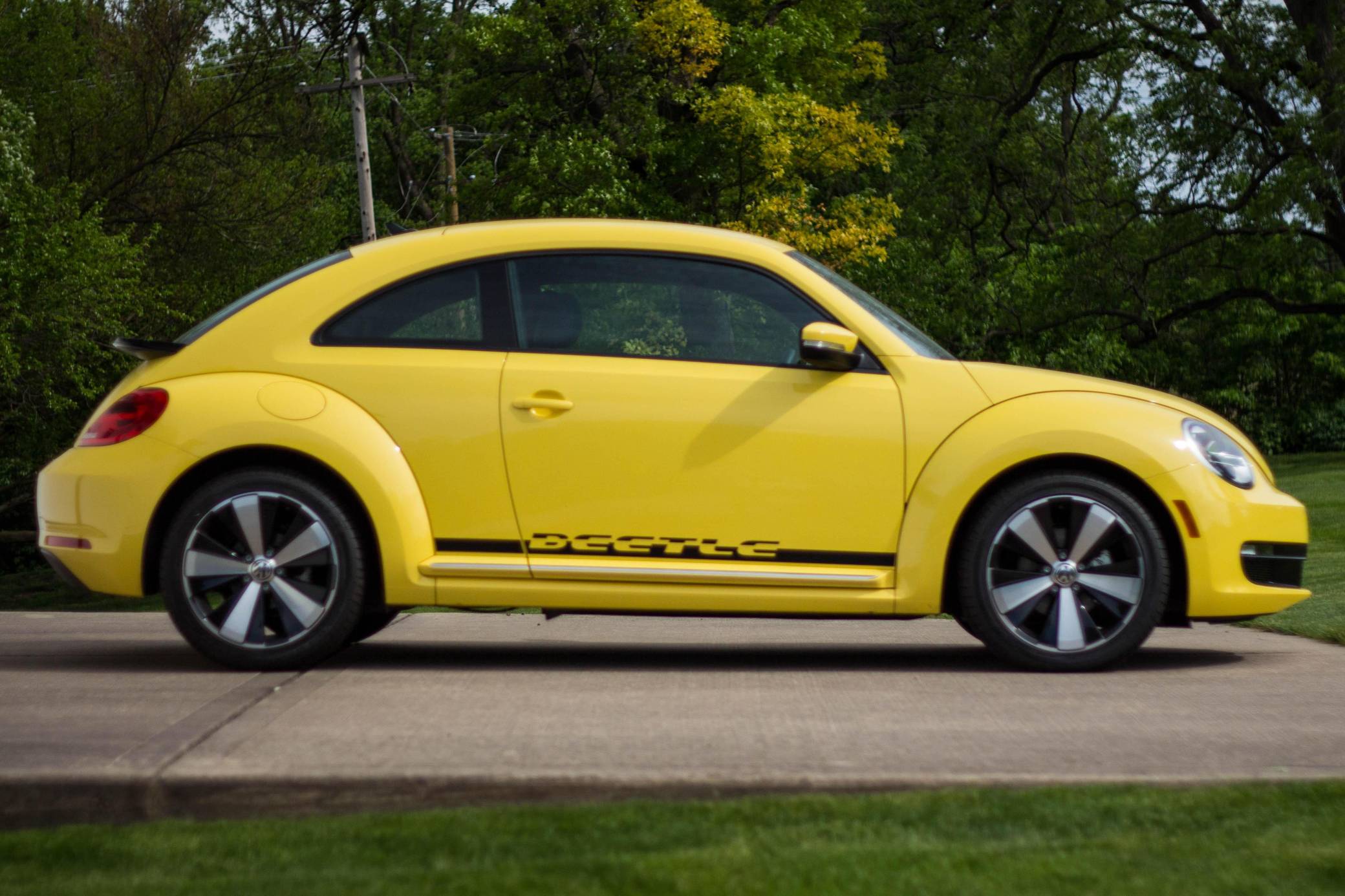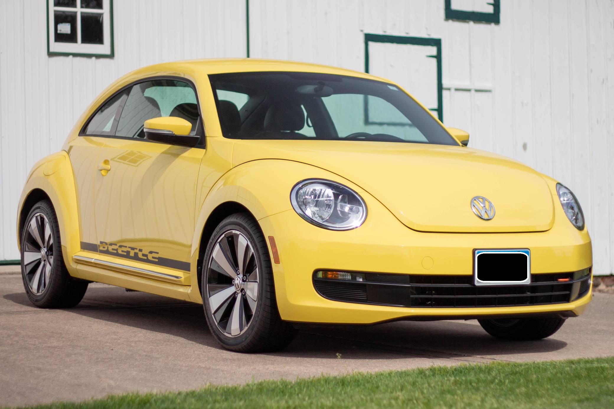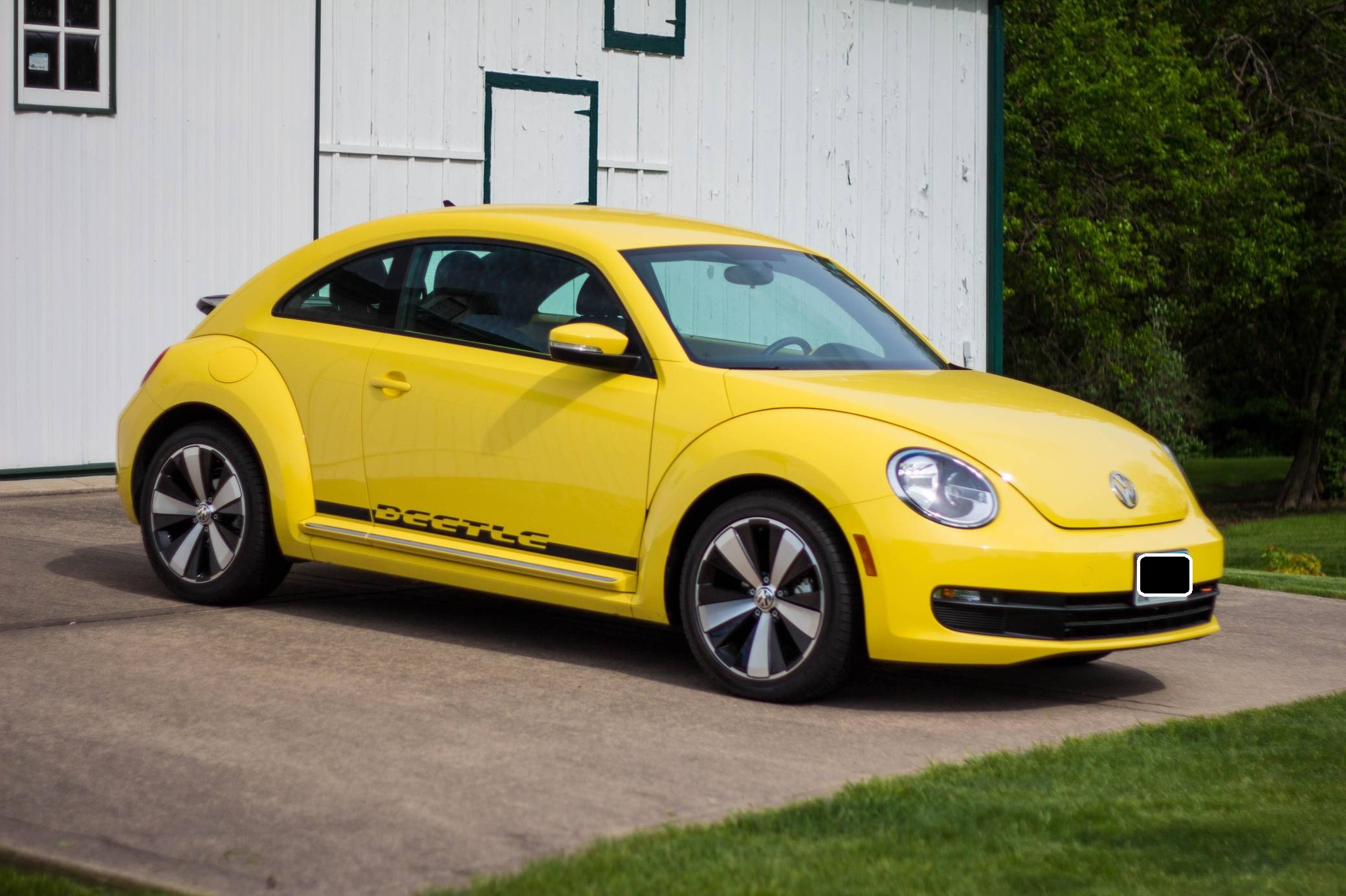 2014 Volkswagen Beetle, finished in Yellow Rush with a Titan Black interior. The odometer on this Beetle currently indicates about 2,600 miles. Modifications reported by the seller include 18-inch R-Line wheels, an R-Line rear spoiler, and a hardwired battery tender. Volkswagen's Beetle was launched on the "A5" platform for the 2012 model year as a direct replacement for the New Beetle, itself a modern re-envisioning of Volkswagen's iconic Type 1 Beetle. The A5 Beetle gained a lower and more aggressive profile while retaining the New Beetle's retro styling cues, an efficient front-wheel-drive platform shared with the Golf, and variety of gas and diesel engines. It spawned numerous special editions until production ended in 2019. Power comes from a 1. 8-liter turbocharged inline-4, rated at 170 horsepower and 184 lb-ft of torque. The engine spins the front wheels via a 6-speed automatic transmission.