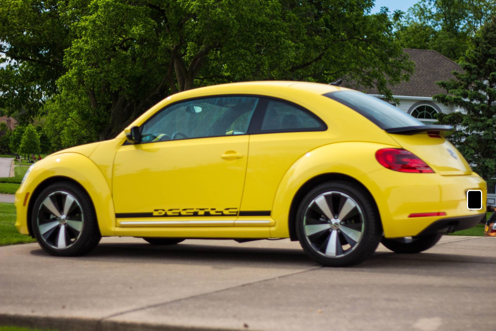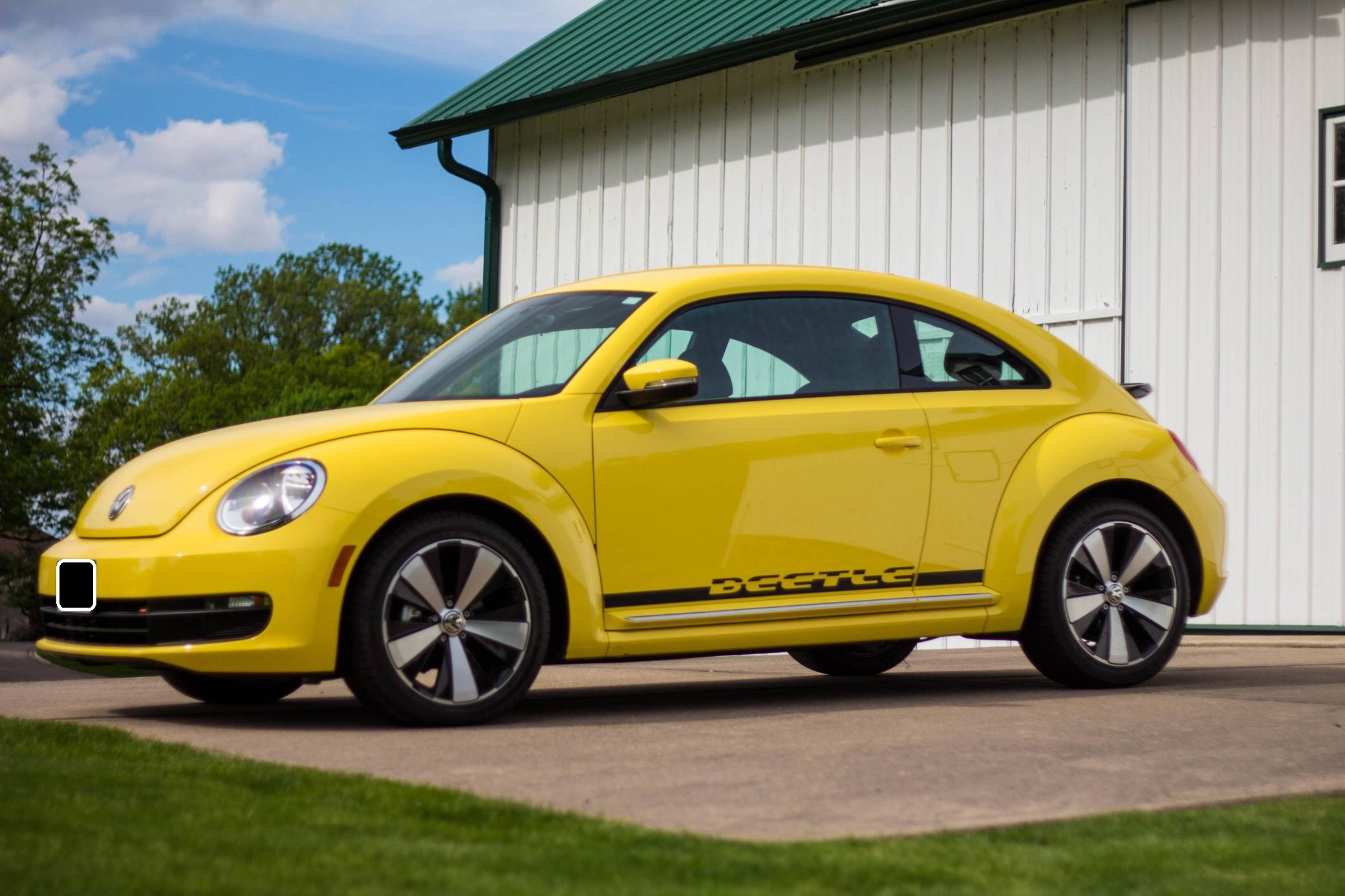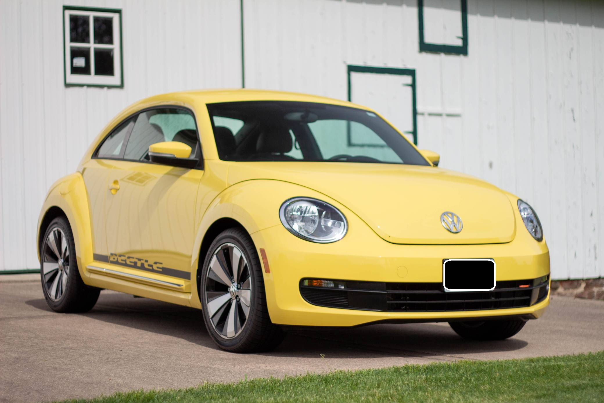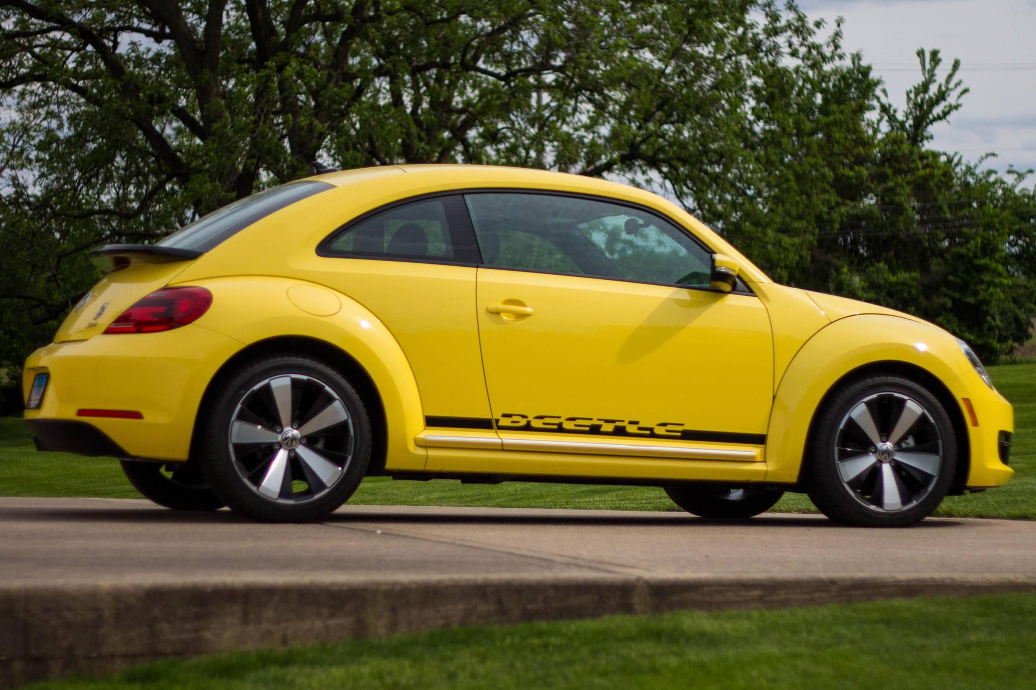2014 Volkswagen Beetle, finished in Yellow Rush with a Titan Black interior. The odometer on this Beetle currently indicates about 2,600 miles. Modifications reported by the seller include 18-inch R-Line wheels, an R-Line rear spoiler, and a hardwired battery tender. Volkswagen's Beetle was launched on the "A5" platform for the 2012 model year as a direct replacement for the New Beetle, itself a modern re-envisioning of Volkswagen's iconic Type 1 Beetle. The A5 Beetle gained a lower and more aggressive profile while retaining the New Beetle's retro styling cues, an efficient front-wheel-drive platform shared with the Golf, and variety of gas and diesel engines. It spawned numerous special editions until production ended in 2019. Power comes from a 1. 8-liter turbocharged inline-4, rated at 170 horsepower and 184 lb-ft of torque. The engine spins the front wheels via a 6-speed automatic transmission.