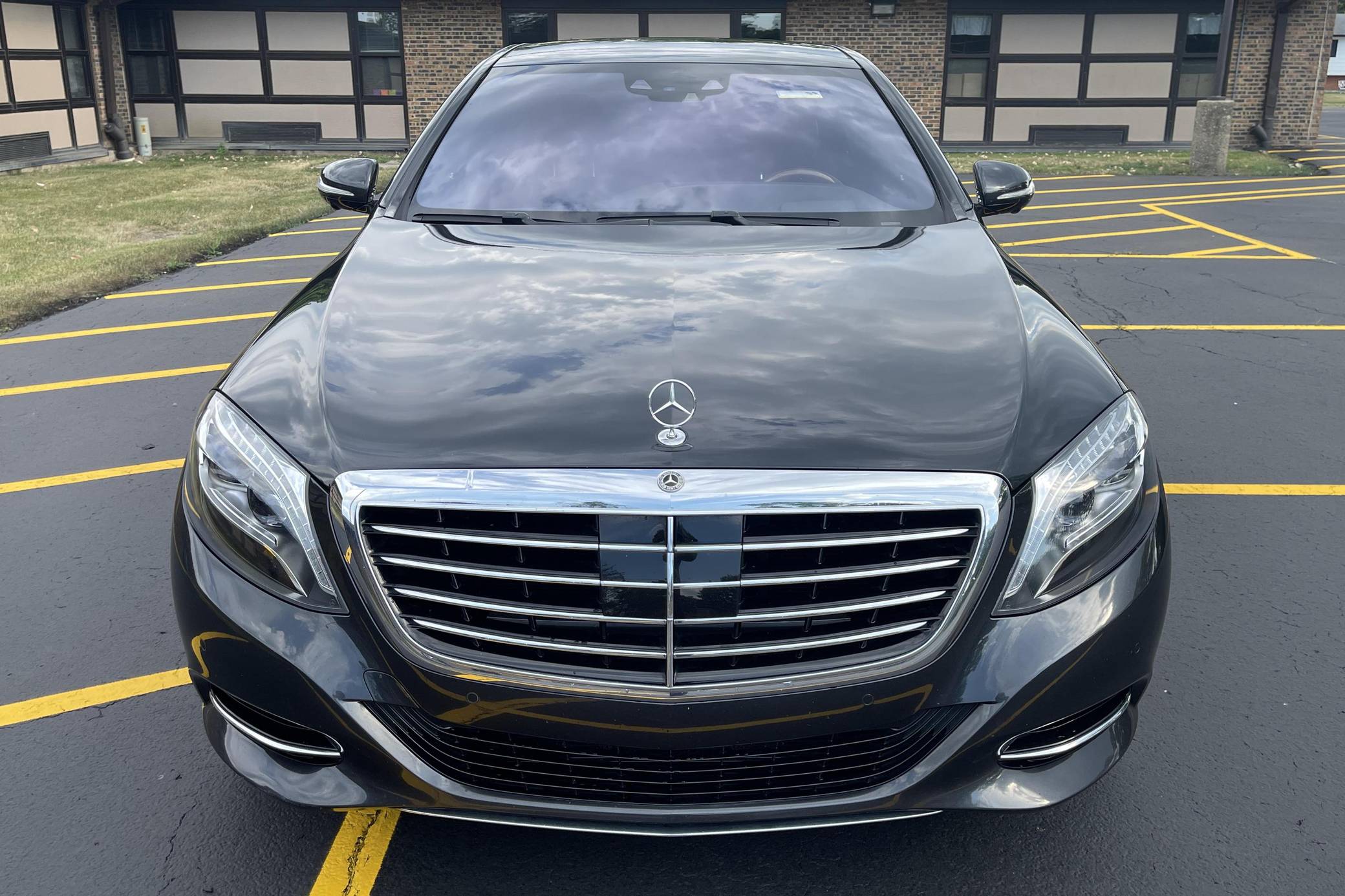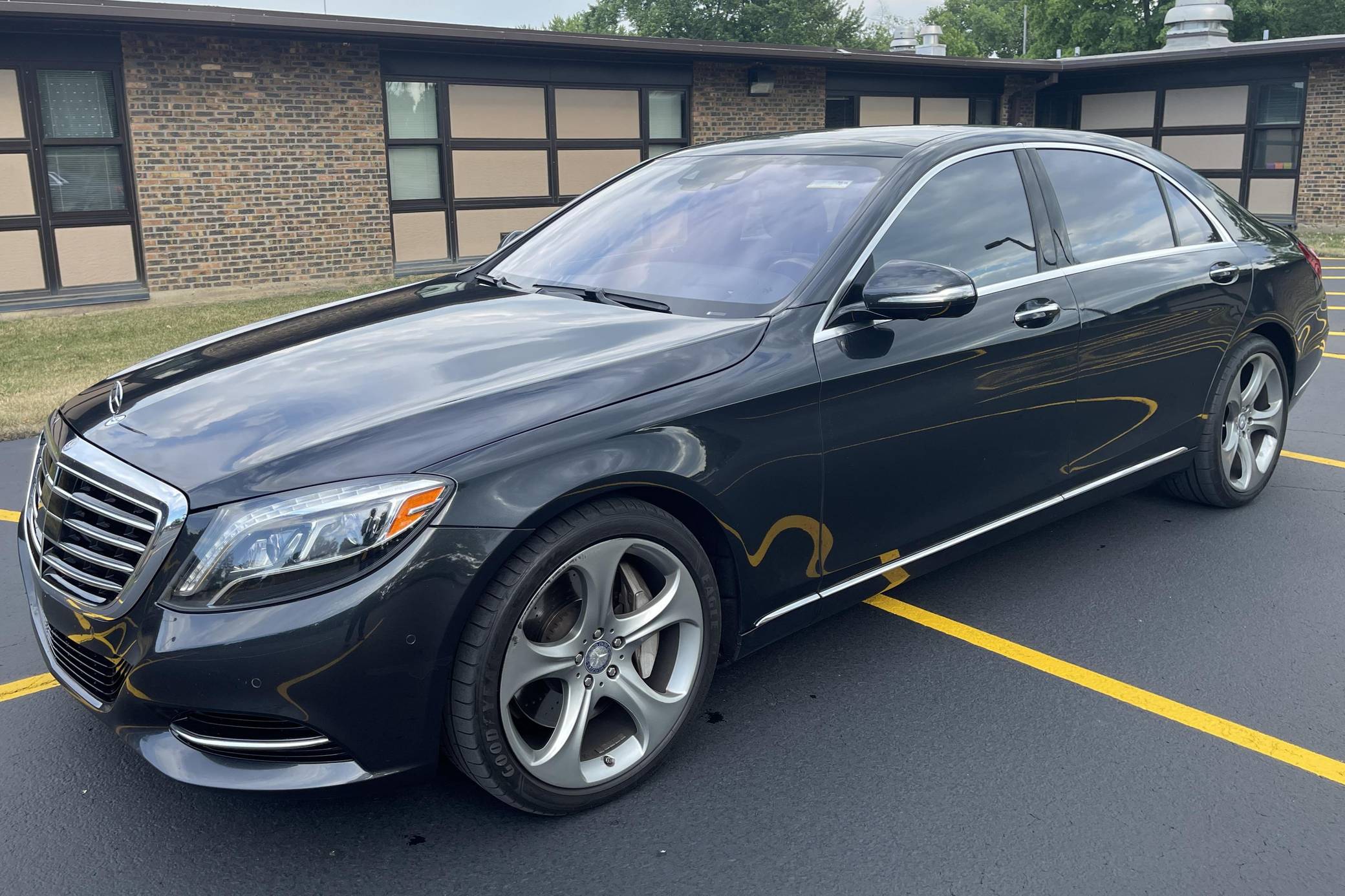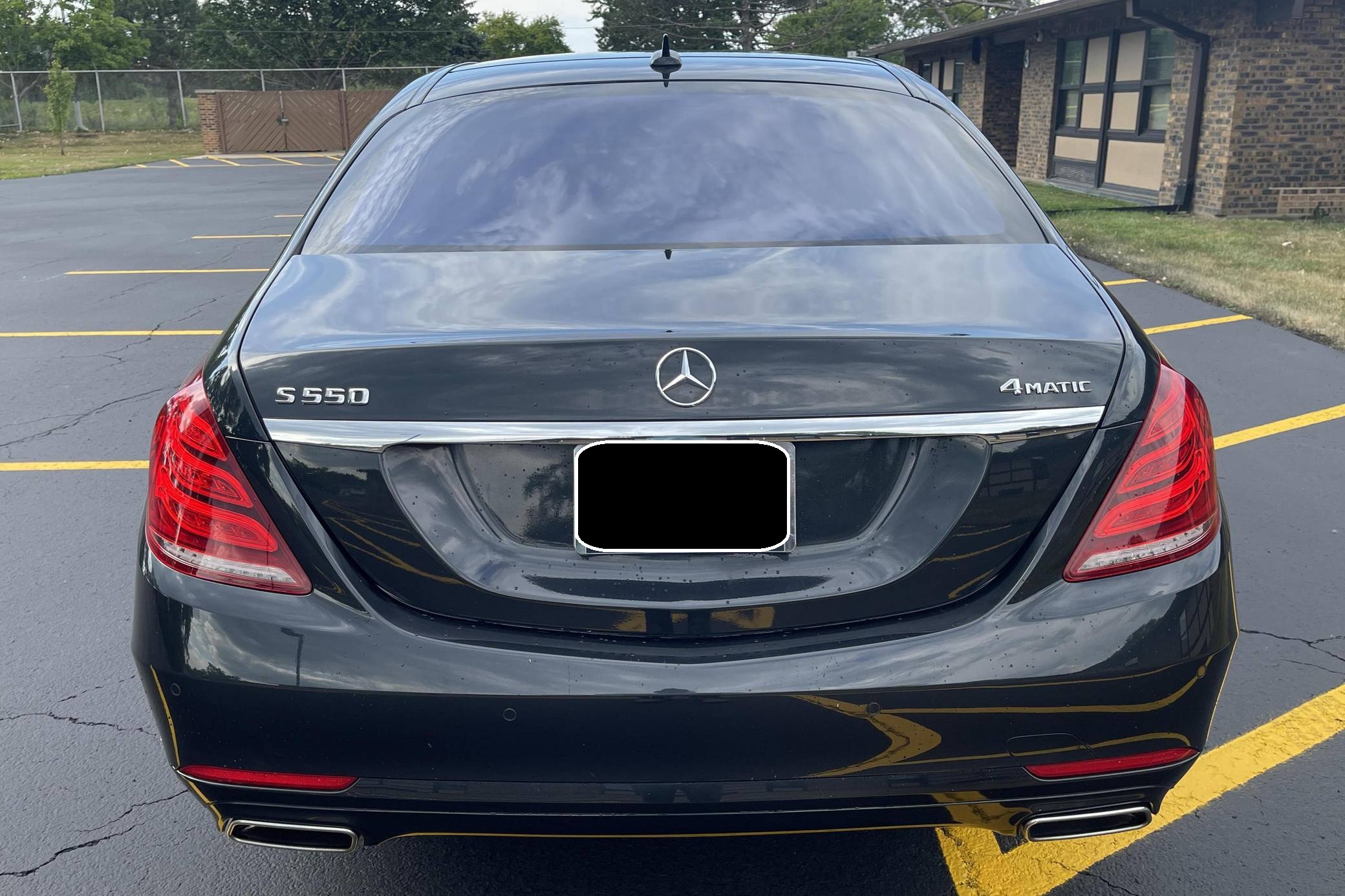 2015 Mercedes-Benz S550 4Matic, finished in Magnetite Black with a black interior. Factory equipment includes the Premium and Driver Assistance packages, 20-inch wheels, a sunroof, Exclusive Nappa leather upholstery, and a Burmester High-End 3D surround sound system. The seller reports no modifications. Mercedes-Benz introduced the W222-generation S-Class for the 2014 model year. It was bigger than its predecessor, packed with state-of-the-art tech features, and characterized by a more streamlined design. It was developed from the inside out, according to Mercedes-Benz, and it set a new segment benchmark in interior comfort. Production ended in 2020. Power comes from an "M278" turbocharged 4. 7-liter V8, rated at 449 horsepower and 516 lb-ft of torque. Output is sent to all four wheels via a 7-speed automatic transmission.