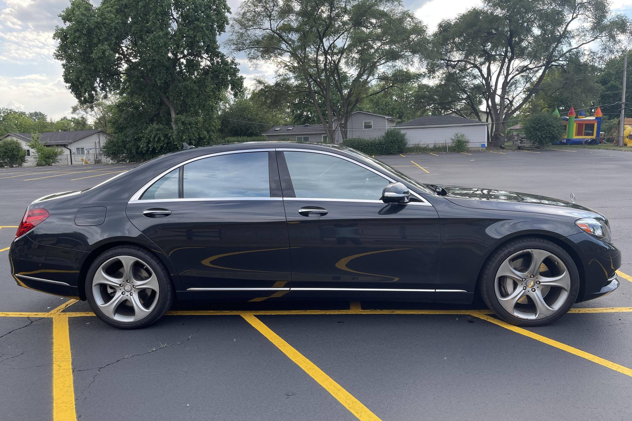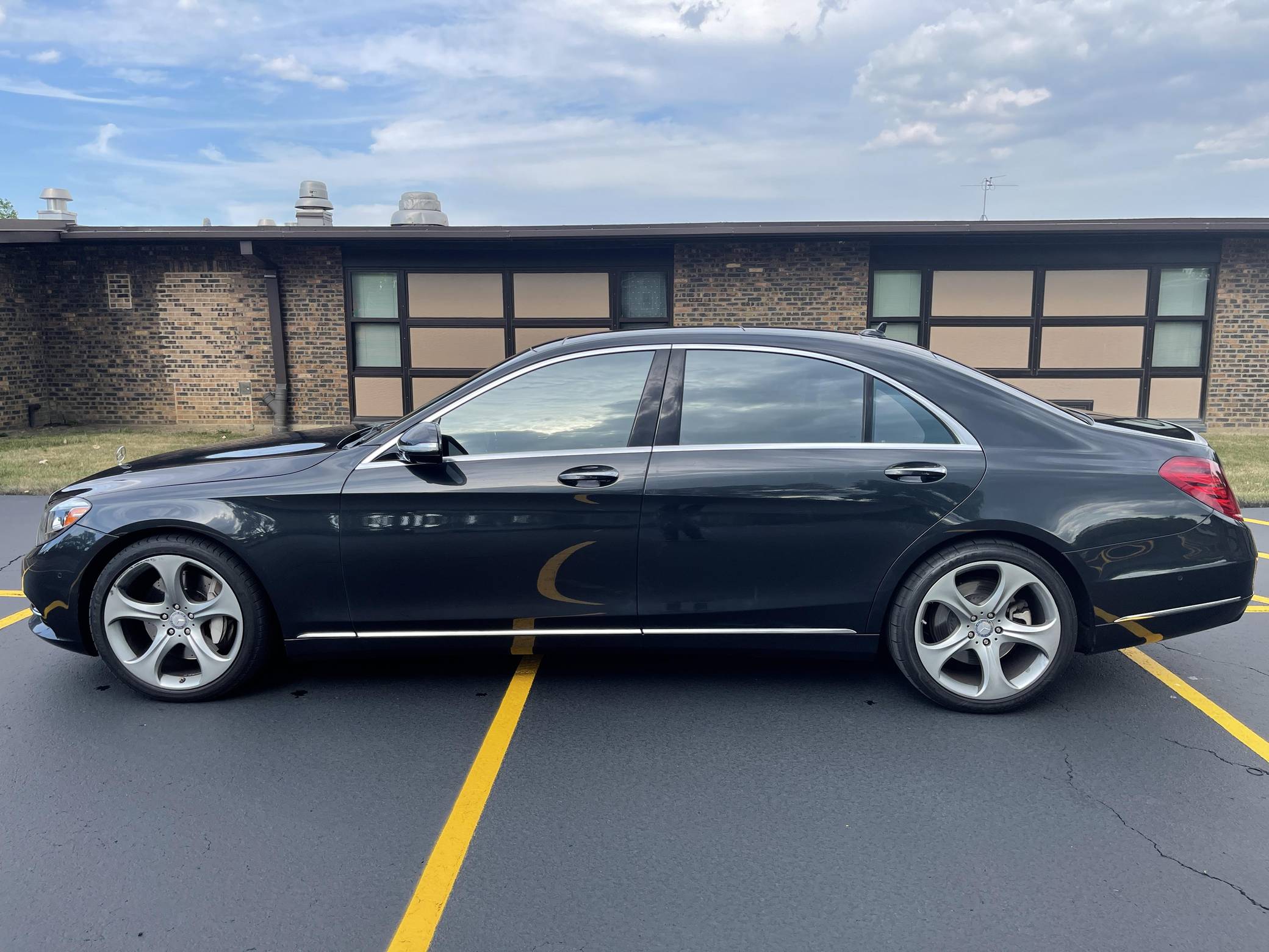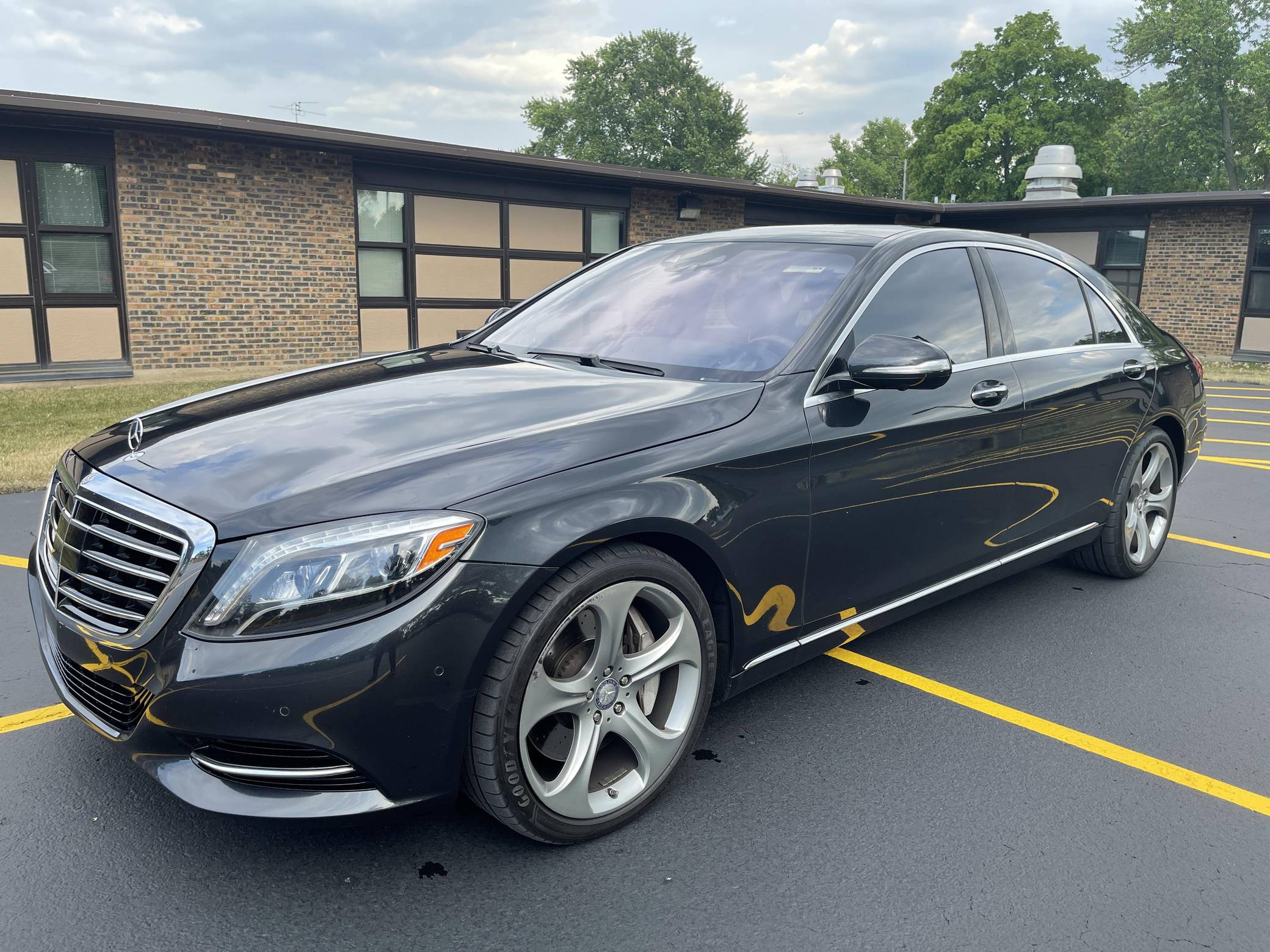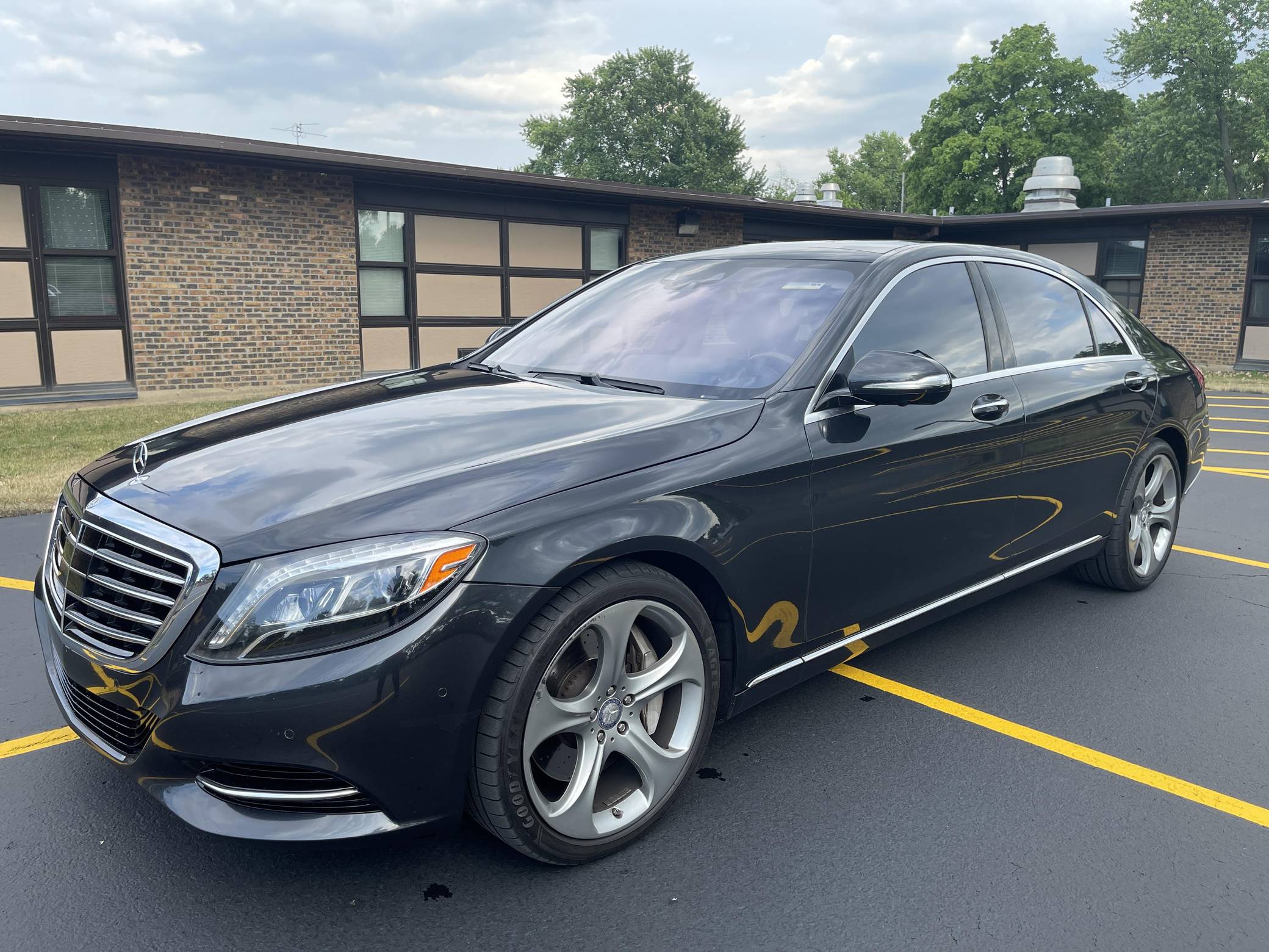 2015 Mercedes-Benz S550 4Matic, finished in Magnetite Black with a black interior. Factory equipment includes the Premium and Driver Assistance packages, 20-inch wheels, a sunroof, Exclusive Nappa leather upholstery, and a Burmester High-End 3D surround sound system. The seller reports no modifications. Mercedes-Benz introduced the W222-generation S-Class for the 2014 model year. It was bigger than its predecessor, packed with state-of-the-art tech features, and characterized by a more streamlined design. It was developed from the inside out, according to Mercedes-Benz, and it set a new segment benchmark in interior comfort. Production ended in 2020. Power comes from an "M278" turbocharged 4. 7-liter V8, rated at 449 horsepower and 516 lb-ft of torque. Output is sent to all four wheels via a 7-speed automatic transmission.