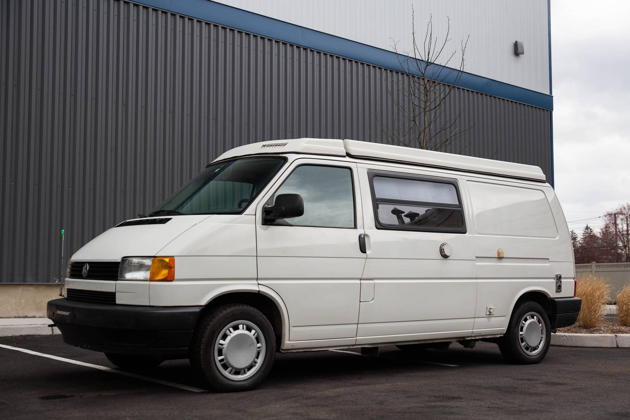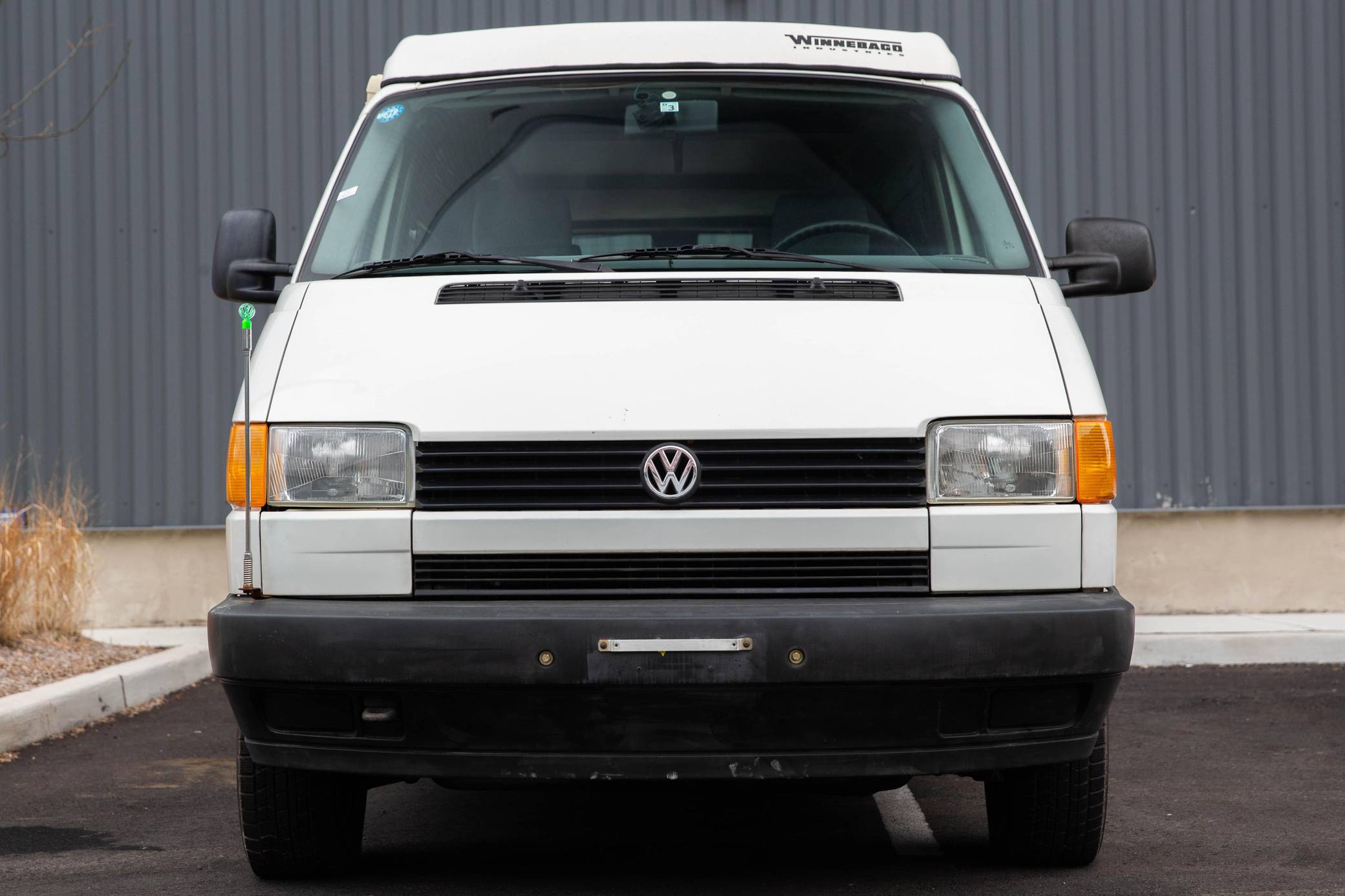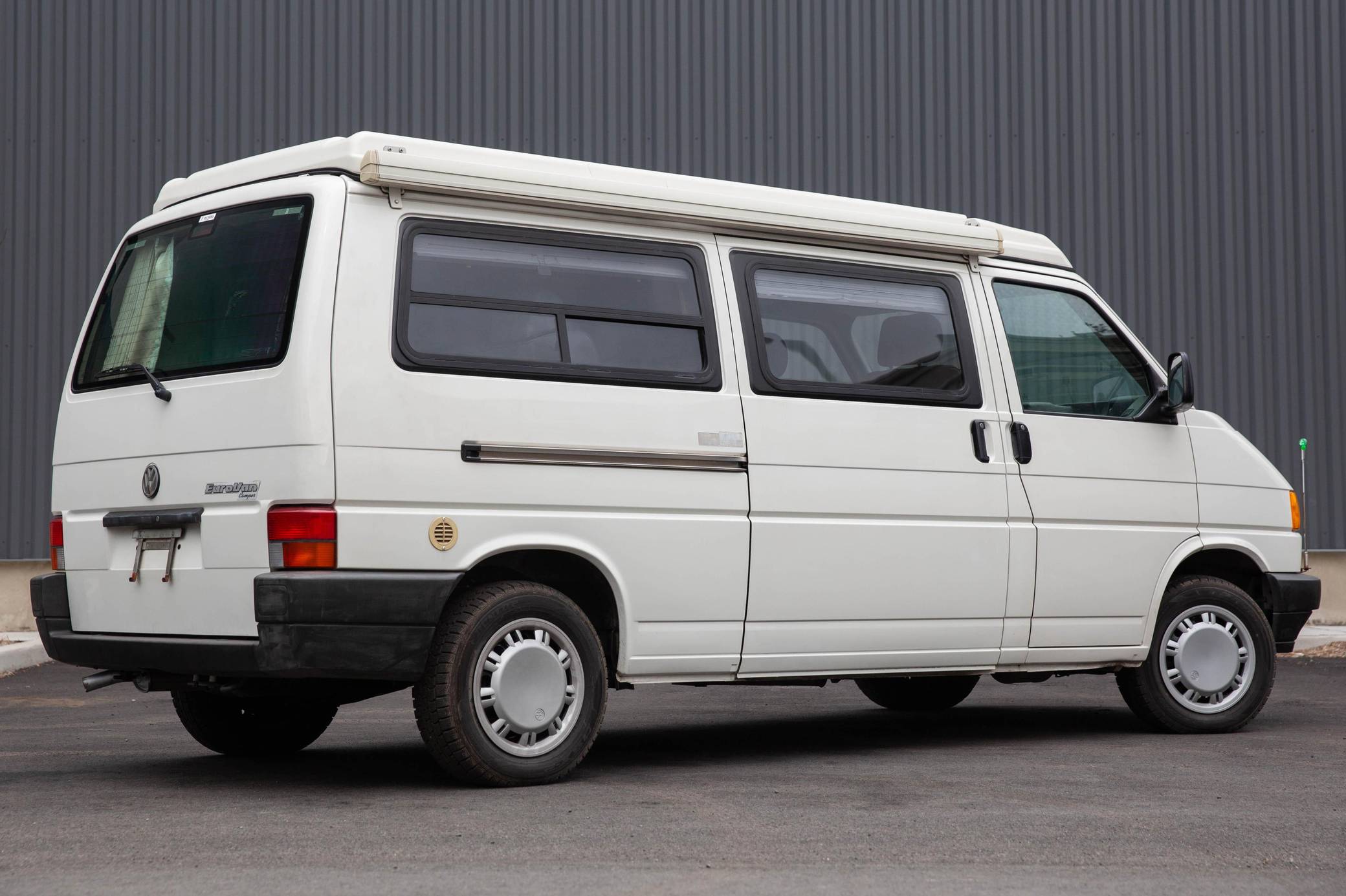 THIS. . . is a 1995 Volkswagen EuroVan Camper, finished in white with a gray interior. This is an American-spec Volkswagen that was reportedly exported to Japan during the 1990s and brought back to the United States in 2021. Its odometer displays about 54,200 miles. This long-wheelbase van was converted into a camper by Winnebago. Authorized by Volkswagen, the conversion adds a pop-up top, an awning, swiveling front seats, a fridge, a two-burner stove, a sink, marine-grade vinyl flooring, and a 12-gallon fresh water tank, among other features. Factory equipment includes 15-inch steel wheels, cloth upholstery, and air conditioning. Based on the "T4"-generation Transporter, the EuroVan is on the same branch of the Volkswagen family tree as the split- and bay-window Buses and the Vanagon. The T4 stood out as Volkswagen's first front-wheel-drive van when it launched globally in 1990, and outfitters such as Winnebago took advantage of the spacious interior to turn the EuroVan into a camper that a family could comfortably sleep in. Power comes from a 2. 5-liter 5-cylinder engine, rated at 109 horsepower and 140 lb-ft of torque. It spins the front wheels via a 4-speed automatic transmission.