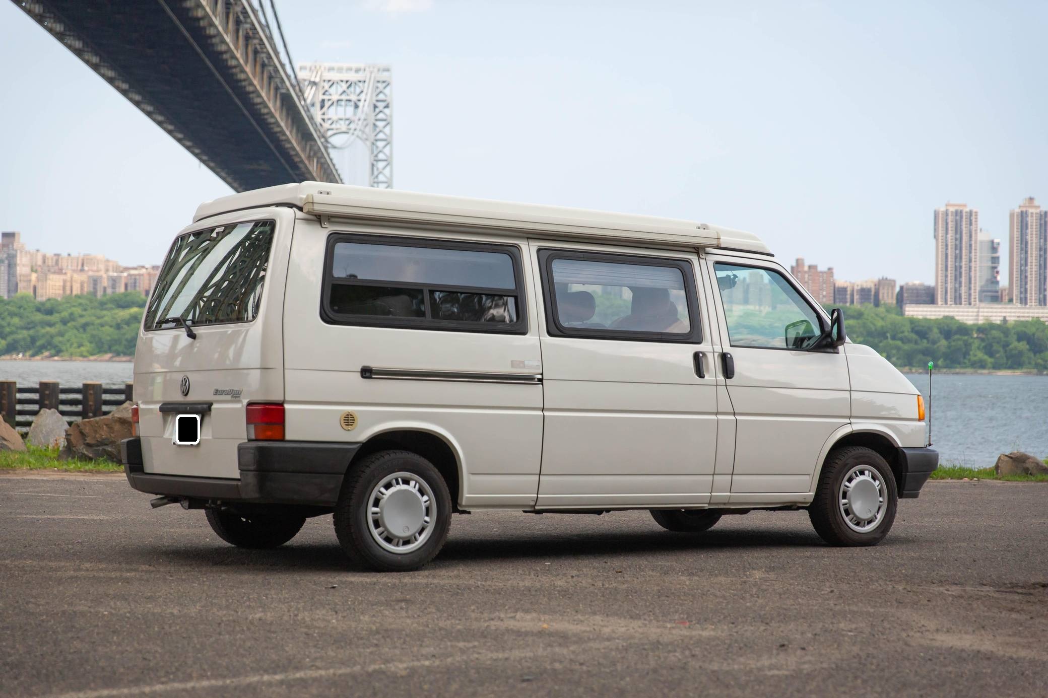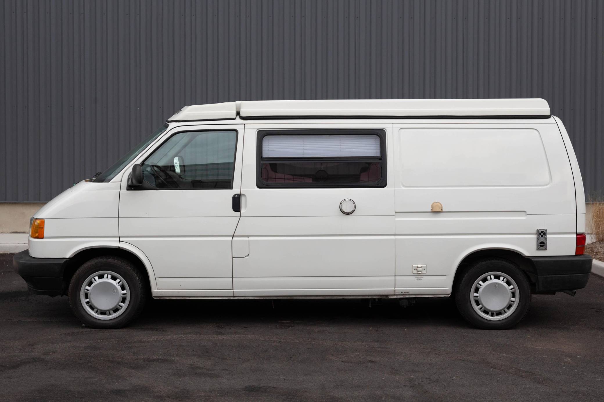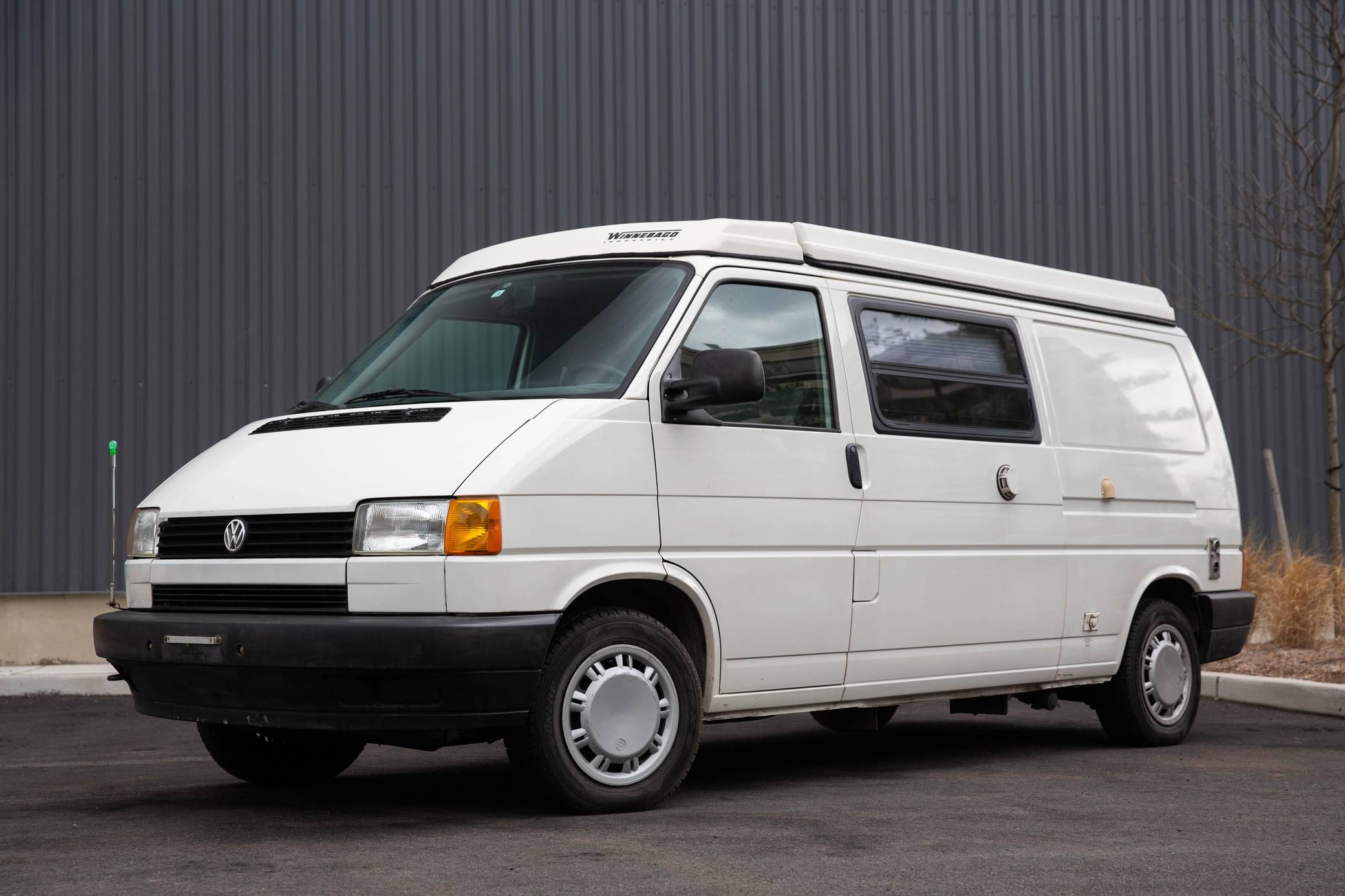 THIS. . . is a 1995 Volkswagen EuroVan Camper, finished in white with a gray interior. This is an American-spec Volkswagen that was reportedly exported to Japan during the 1990s and brought back to the United States in 2021. Its odometer displays about 54,200 miles. This long-wheelbase van was converted into a camper by Winnebago. Authorized by Volkswagen, the conversion adds a pop-up top, an awning, swiveling front seats, a fridge, a two-burner stove, a sink, marine-grade vinyl flooring, and a 12-gallon fresh water tank, among other features. Factory equipment includes 15-inch steel wheels, cloth upholstery, and air conditioning. Based on the "T4"-generation Transporter, the EuroVan is on the same branch of the Volkswagen family tree as the split- and bay-window Buses and the Vanagon. The T4 stood out as Volkswagen's first front-wheel-drive van when it launched globally in 1990, and outfitters such as Winnebago took advantage of the spacious interior to turn the EuroVan into a camper that a family could comfortably sleep in. Power comes from a 2. 5-liter 5-cylinder engine, rated at 109 horsepower and 140 lb-ft of torque. It spins the front wheels via a 4-speed automatic transmission.