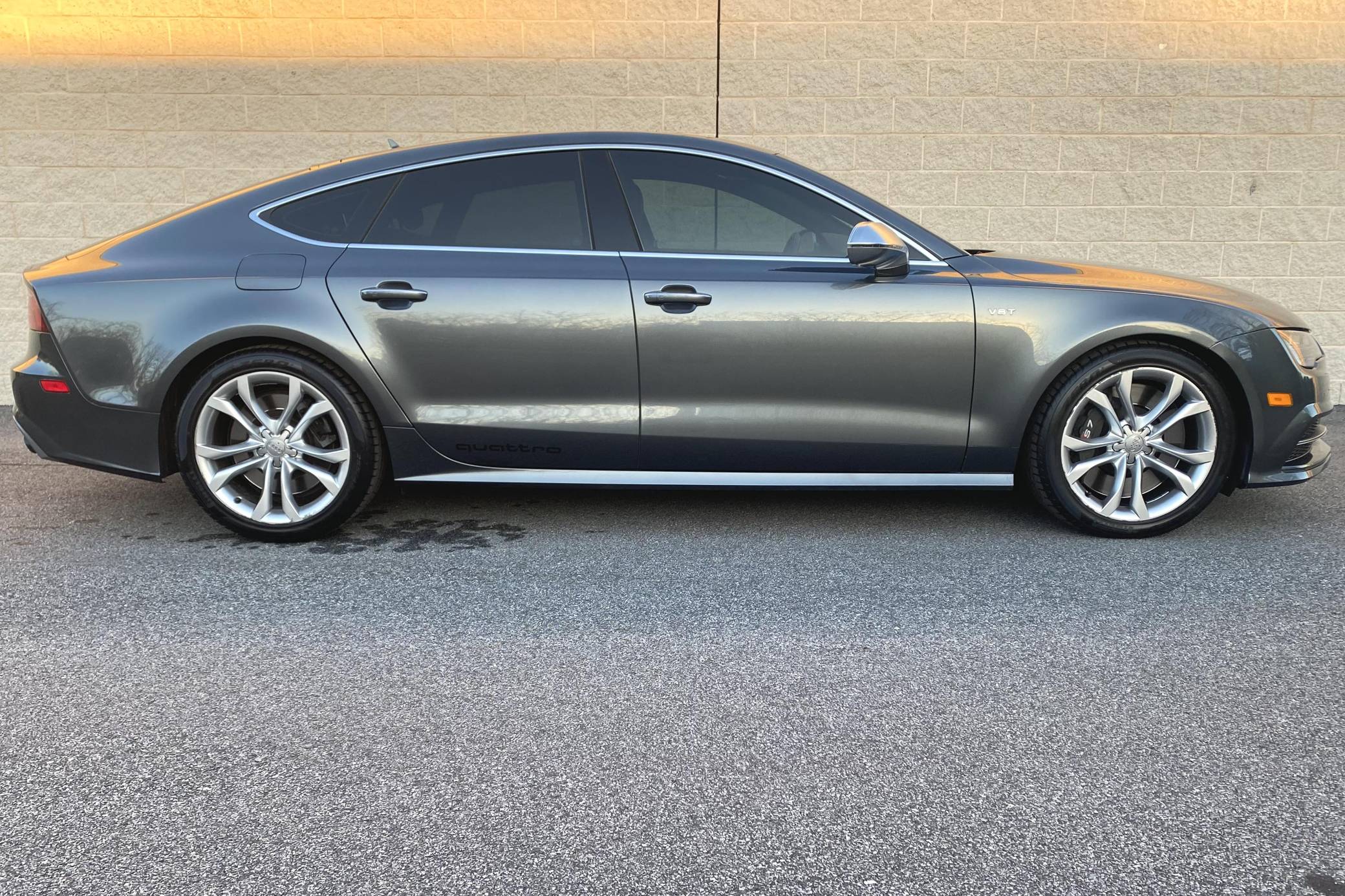 THIS… is a 2016 Audi S7, finished in Daytona Gray Pearl Effect with a black interior. Modifications reported by the seller are limited to tinted windows. Audi launched the first-generation A7 for the 2012 model year as its style icon, and it expanded the range with the V8-powered S7 for 2013. Both were related to the A6 under the sheet metal, but they stood out with a gorgeous design and surprising practicality thanks to a large hatch. An update for the 2016 model year brought revised sheet metal and a significant bump in power, making the S7 quicker and more luxurious than before. Power comes from a 4. 0-liter turbocharged V8 engine, rated at 450 horsepower and 406 lb-ft of torque. Output is sent to all four wheels via a 7-speed automatic transmission and Audi's Quattro permanent all-wheel drive system.