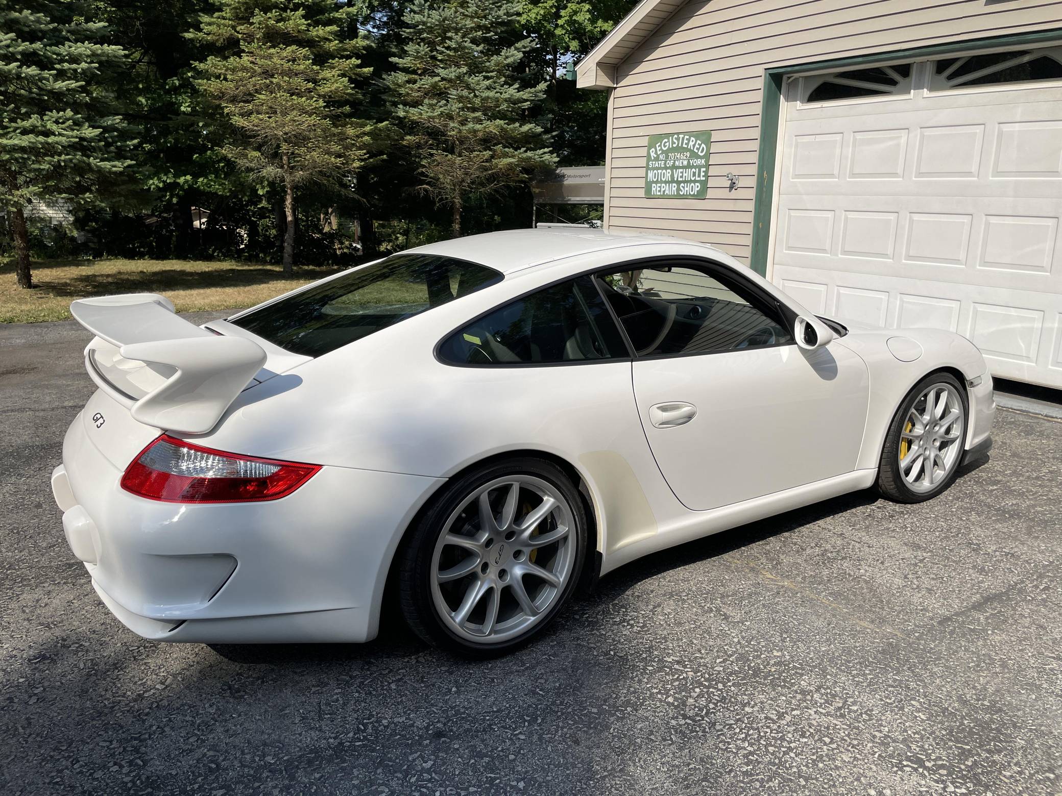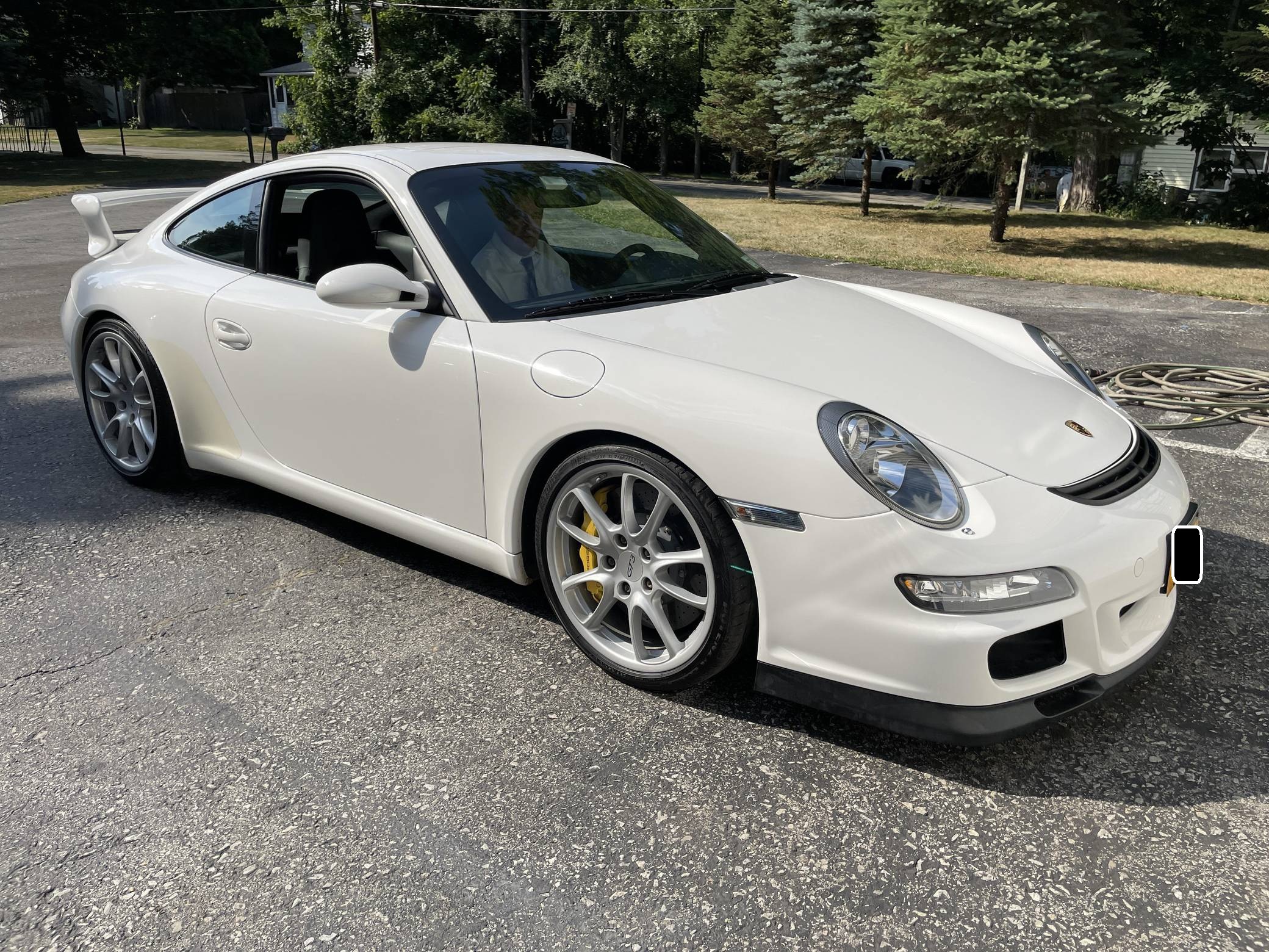 2007 Porsche 911 GT3, finished in Carrara White with a black interior. This 911 GT3 is equipped with a 6-speed manual transmission, and its odometer currently displays about 22,800 miles. The seller reports no modifications. Porsche released the track-focused 997-generation GT3 in 2006 as the most aggressive normally-aspirated version of the 911 before the introduction of the more hardcore GT3 RS. It featured a 3. 6-liter "Mezger" engine, lift-reducing aerodynamic body work, a revised version of Porsche Active Suspension Management System (PASM), and no rear seats. Armed with a close-ratio 6-speed manual transmission and a flat-6 engine that can rev up to 8,400 rpm, the 997. 1 GT3 is still considered one of the most exciting road-legal sports cars money can buy. Power comes from a Hans Mezger-designed naturally aspirated 3. 6-liter flat-6, rated at 415 horsepower and 300 lb-ft of torque. Output is sent to the rear wheels via a 6-speed manual transmission.