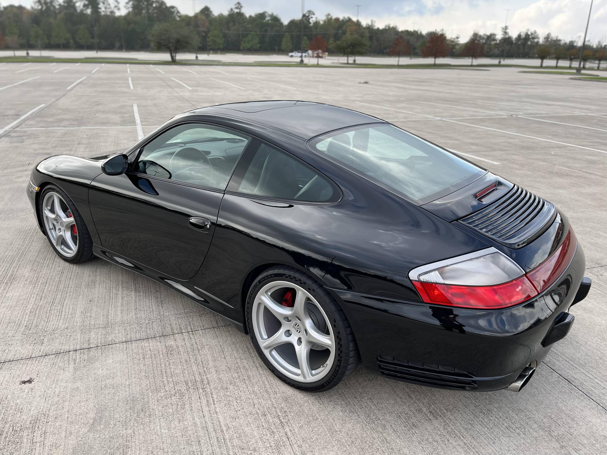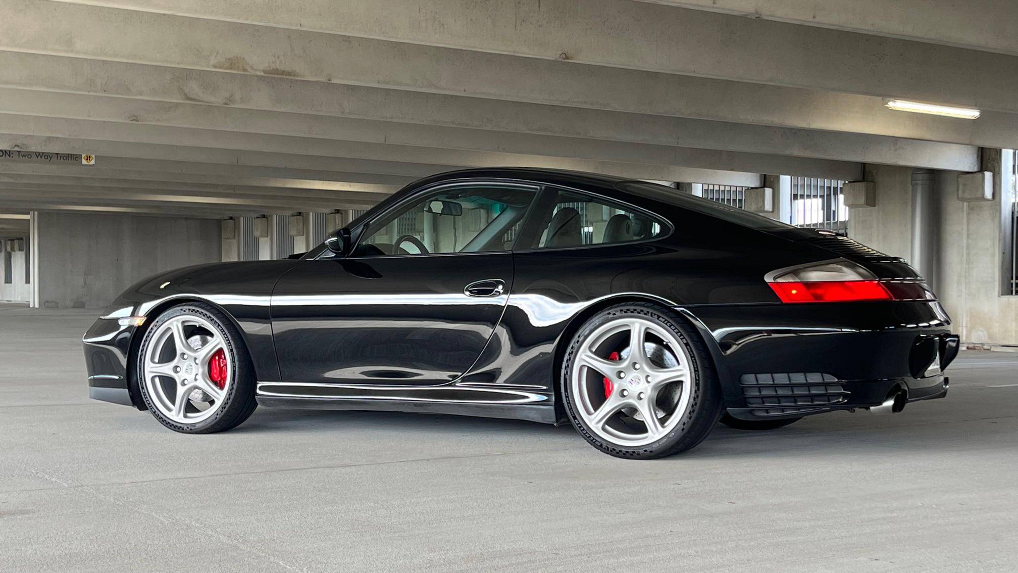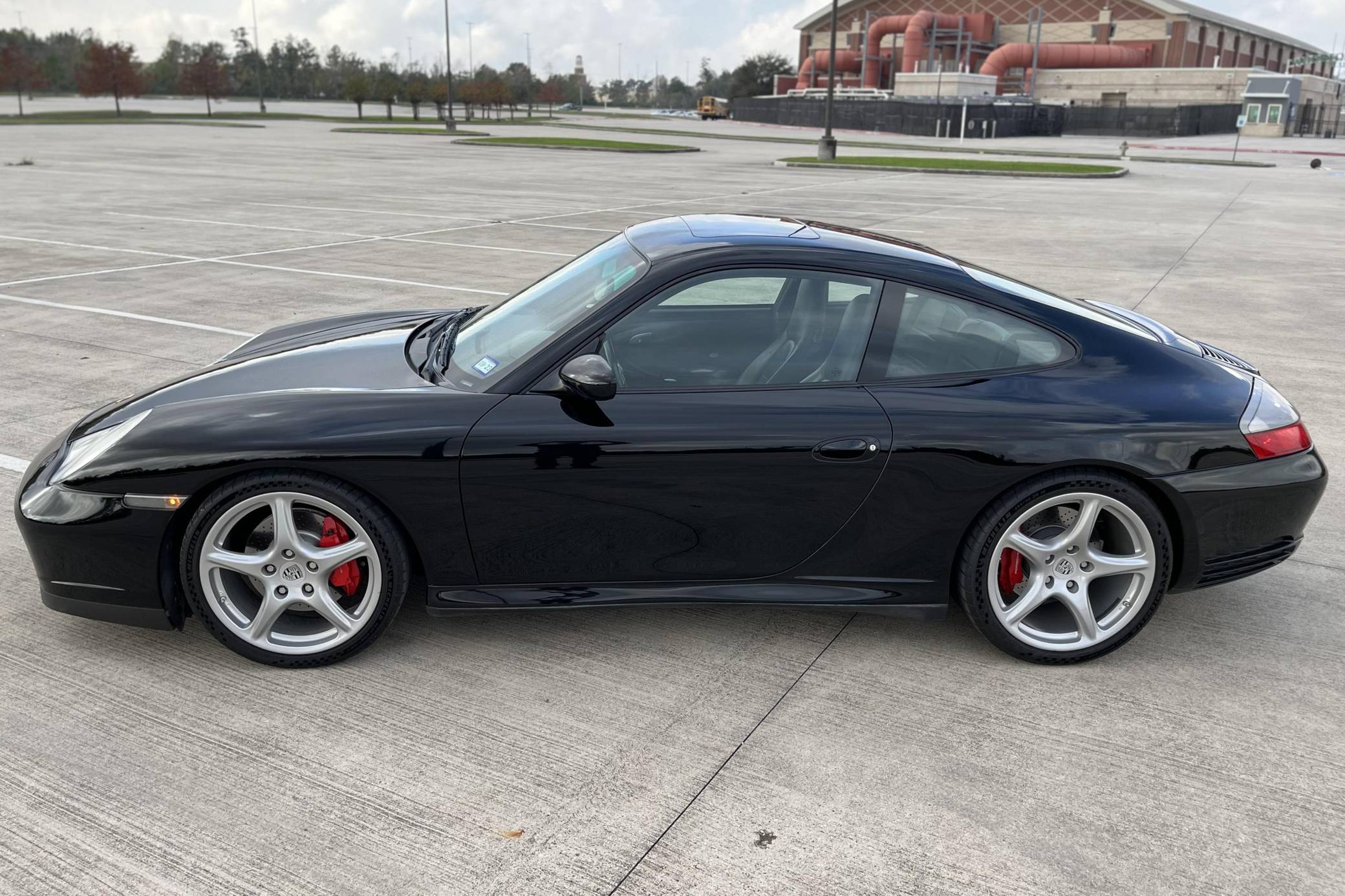 THIS… is a 2003 Porsche 911 Carrera 4S Coupe, finished in black with a black interior. This 911 features the desirable 6-speed manual transmission. A build sheet is provided in the photo gallery, and a partial list of notable equipment includes a sport exhaust system, a power sunroof, leather upholstery, power-adjustable front seats, a Bose sound system, and more as detailed below. Modifications reported by the seller include 19-inch Carrera Classic wheels, a VF Engineering supercharger, AWE Tuning high-flow catalytic converters, a Fabspeed X-pipe, and Bilstein coilovers. Service documentation included in the gallery indicates that the IMS bearing and clutch were replaced in February 2022. Porsche introduced the 996-generation 911 for the 1999 model year. It was the first water-cooled 911, and it stood out from its predecessors with a new-look front end that ditched the round lights. Released for 2002, the wide-body Carrera 4S variant of the 996 offered enthusiasts all-wheel-drive, plus suspension and brake components borrowed from the Turbo in a naturally-aspirated package. It also bore a distinctive reflector bar across its rear. Power comes from an "M96" 3. 6-liter supercharged flat-6, rated at 315 horsepower and 273 lb-ft of torque in stock form. Due to the modifications performed to this 911, it likely produces more power, but a dyno sheet was not provided to confirm. Output is sent to all four wheels via a 6-speed manual transmission.