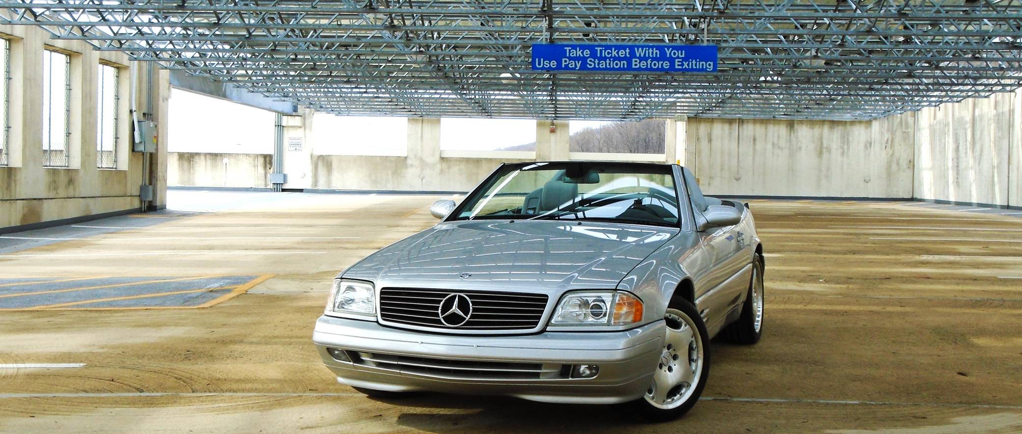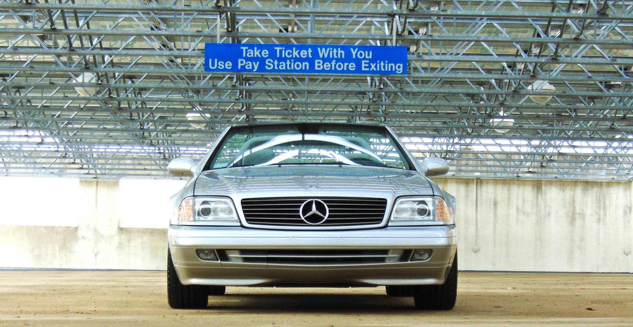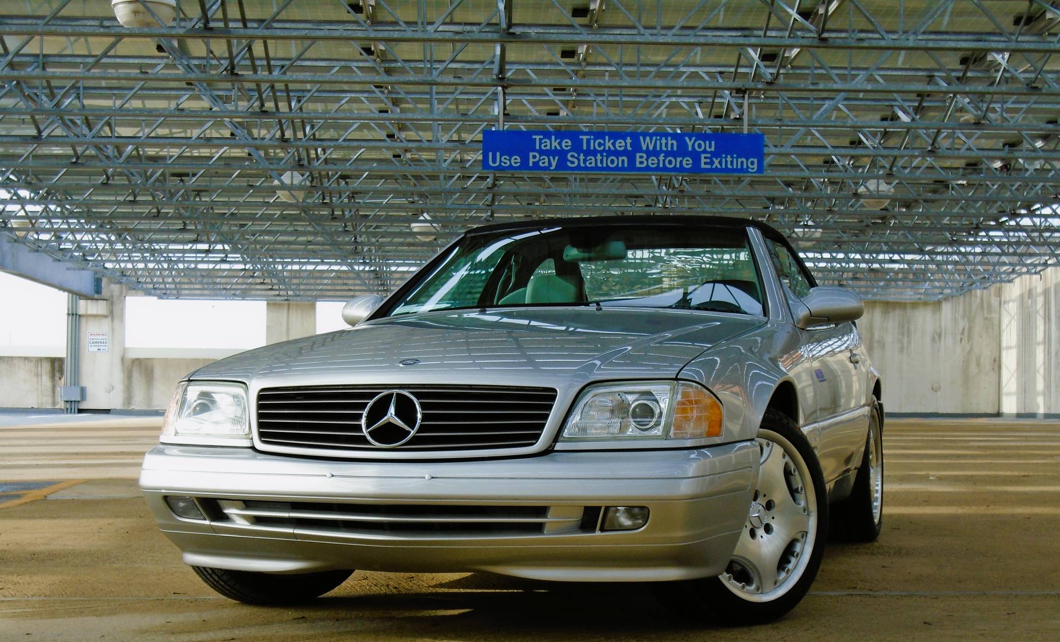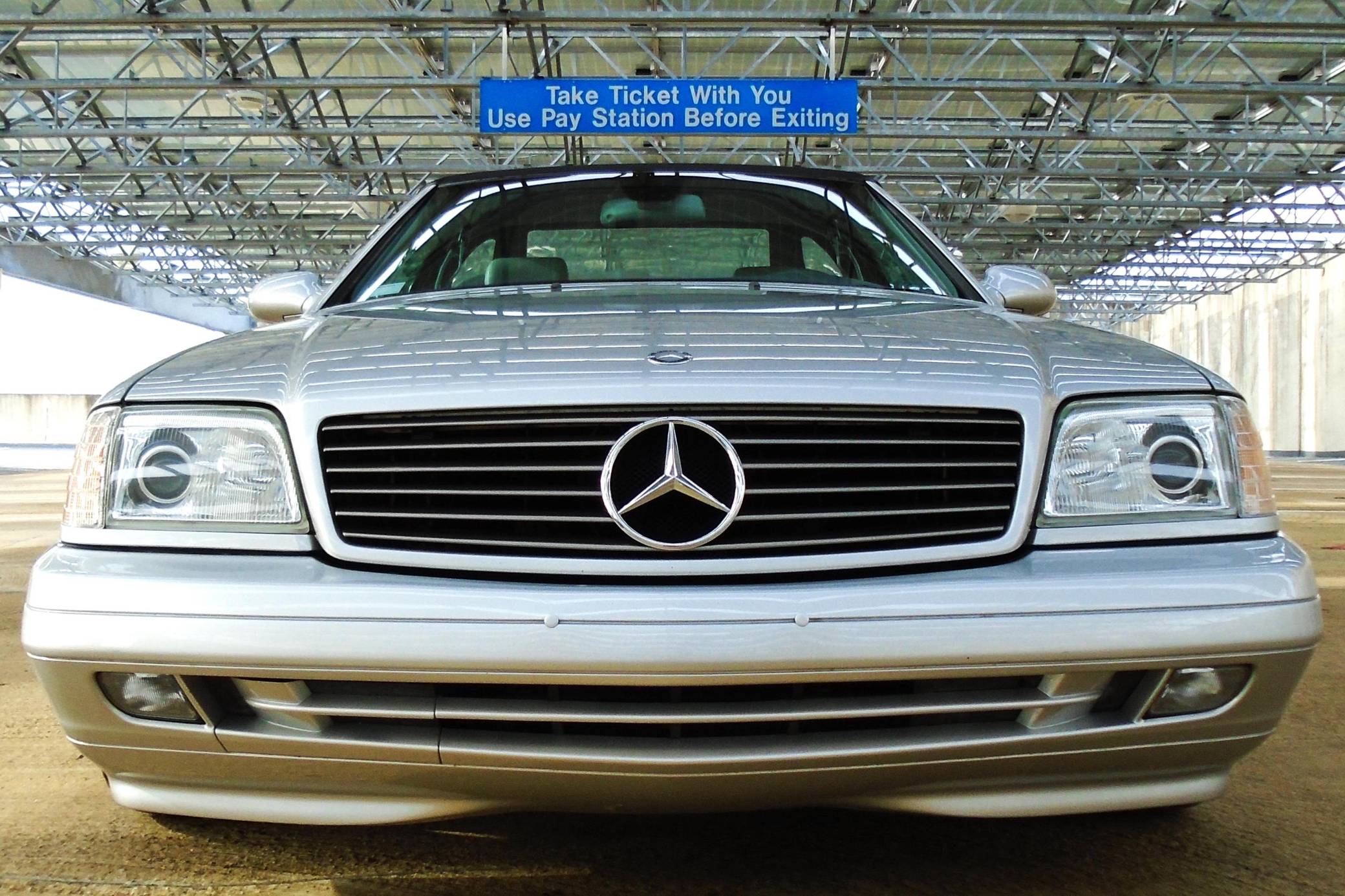 1999 Mercedes-Benz SL500, finished in Brilliant Silver Metallic with a gray interior. The odometer currently displays about 19,500 miles. According to the build sheet provided in the gallery, factory equipment includes a power-retractable soft top, Nappa leather seats, memory function for seats and mirrors, burred walnut root interior trim, a Bose premium audio system, and more. A factory color-matched hardtop is also included. Modifications are limited to a set of 18-inch Lorinser wheels. Mercedes-Benz sold the "R129"-generation SL from 1990 to 2002, and several visual cues (like the shape of the vents behind the front wheels and the rear lights) identify this SL500 as one of the later models built. It's quicker than its predecessor, the long-lived "R107" model, yet it's far simpler than the "R230" model introduced in 2003. Power comes from an "M113" 5. 0-liter V8, rated at 302 horsepower and 339 lb-ft of torque. Output is sent to the rear wheels via a 5-speed automatic transmission.