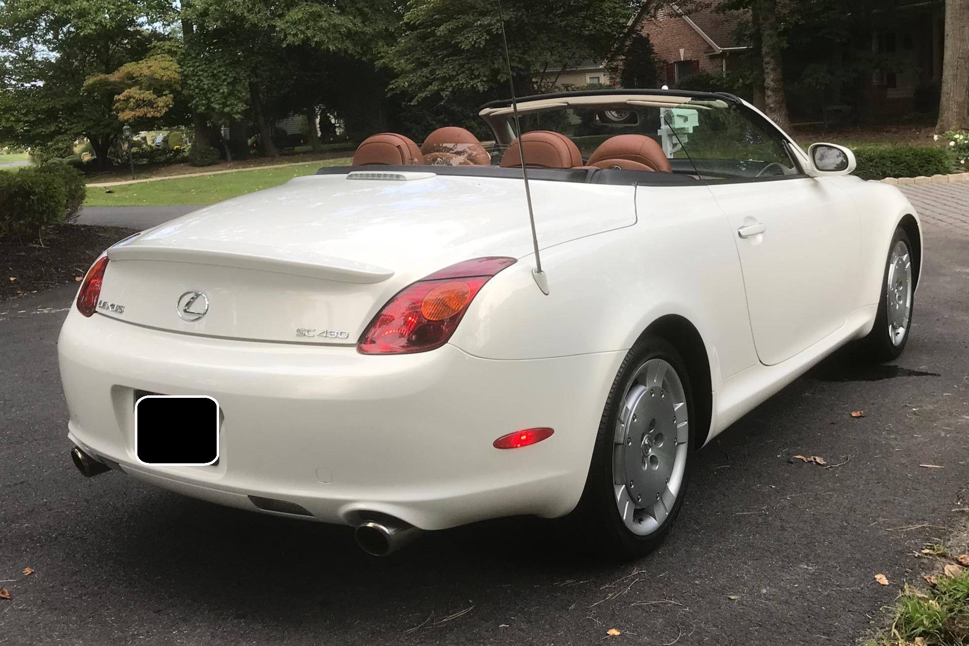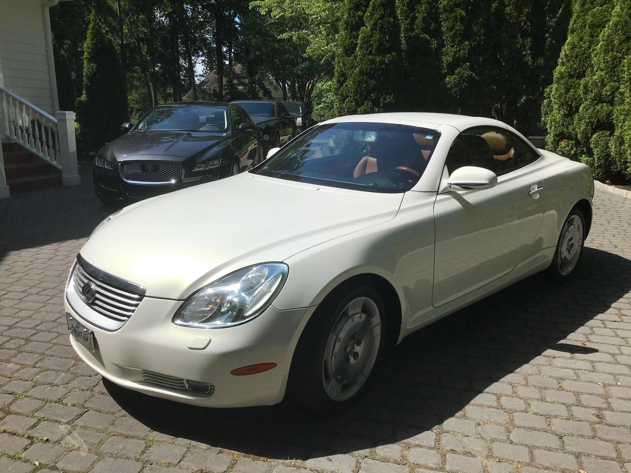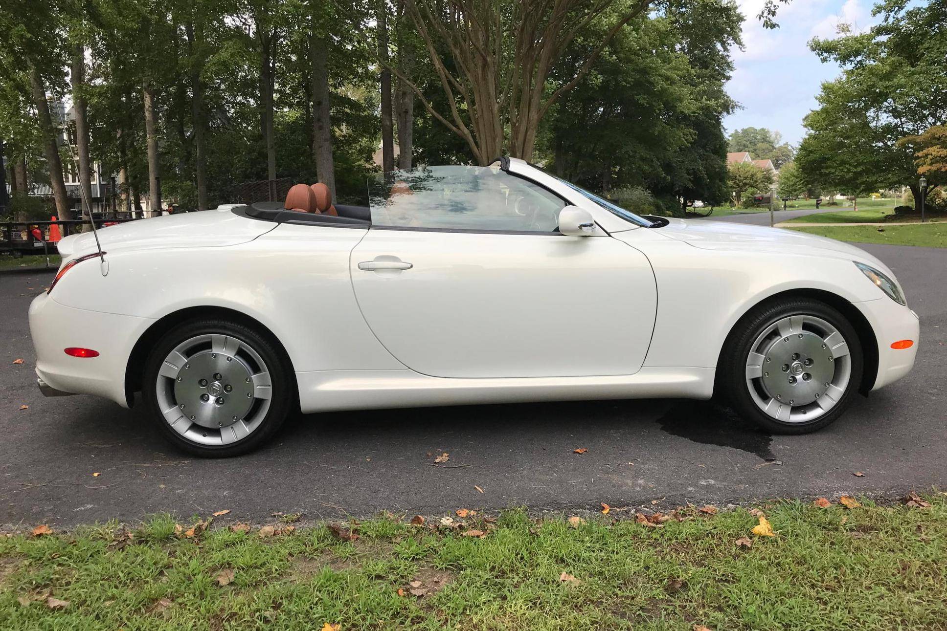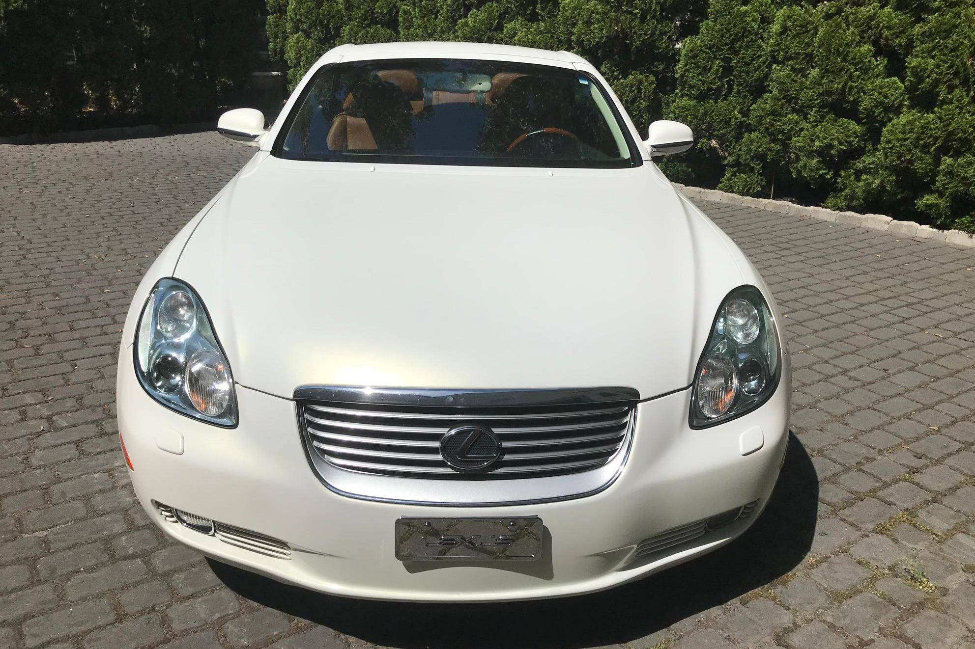 THIS. . . is a 2002 Lexus SC 430, finished in White Gold Crystal with a body-colored hardtop and a Saddle interior. This convertible's odometer displays about 31,800 miles. Factory equipment includes 18-inch wheels, HID headlights, a rear spoiler, a power-operated hardtop, wood interior trim, heated and power-adjustable front seats, a wind deflector, a 9-speaker Mark Levinson sound system, and a navigation system. The only modification reported by the seller is a SiriusXM satellite radio tuner that replaces the ashtray on the center stack. Lexus released the second-generation SC, its first series-produced convertible, for the 2001 model year. Much shorter than its predecessor, the model gained a more rounded exterior design and came with a power-folding aluminum hardtop that let users switch between a coupe and a convertible at the push of a button. Production ended in 2010, and Lexus hasn't used the SC nameplate since. Power comes from a 4. 3-liter V8, rated at 300 horsepower and 325 lb-ft of torque. It spins the rear wheels via a 5-speed automatic transmission.