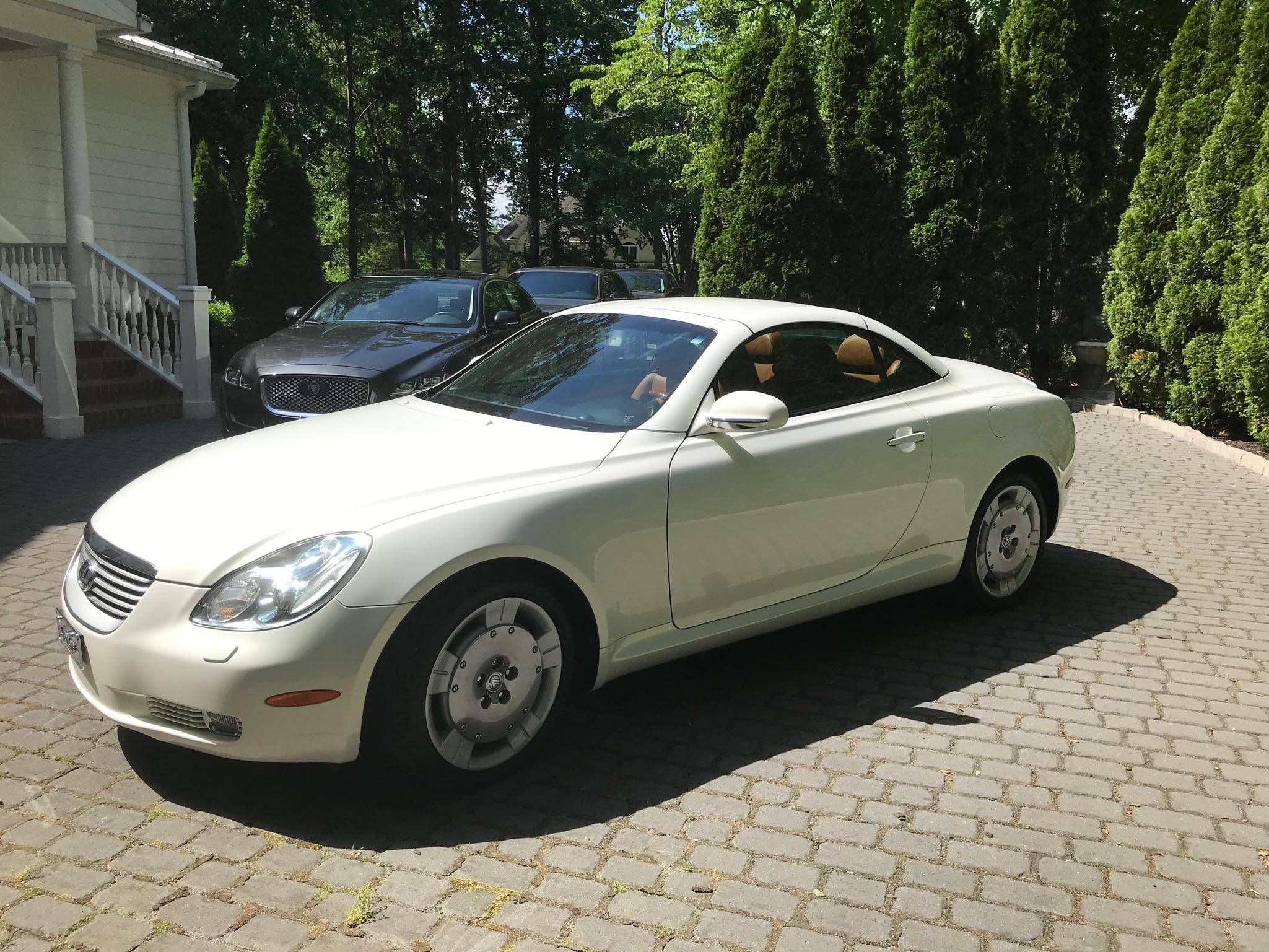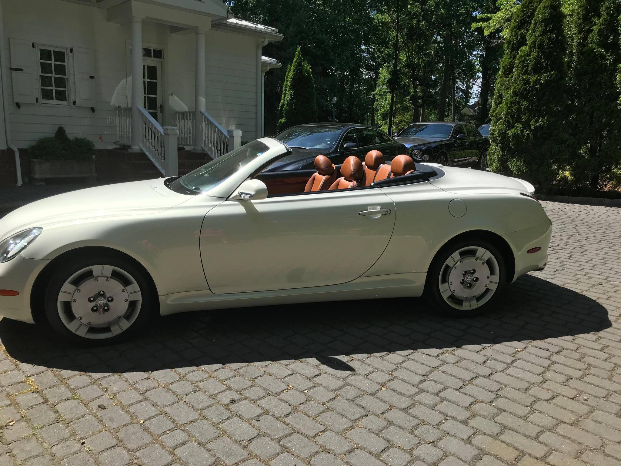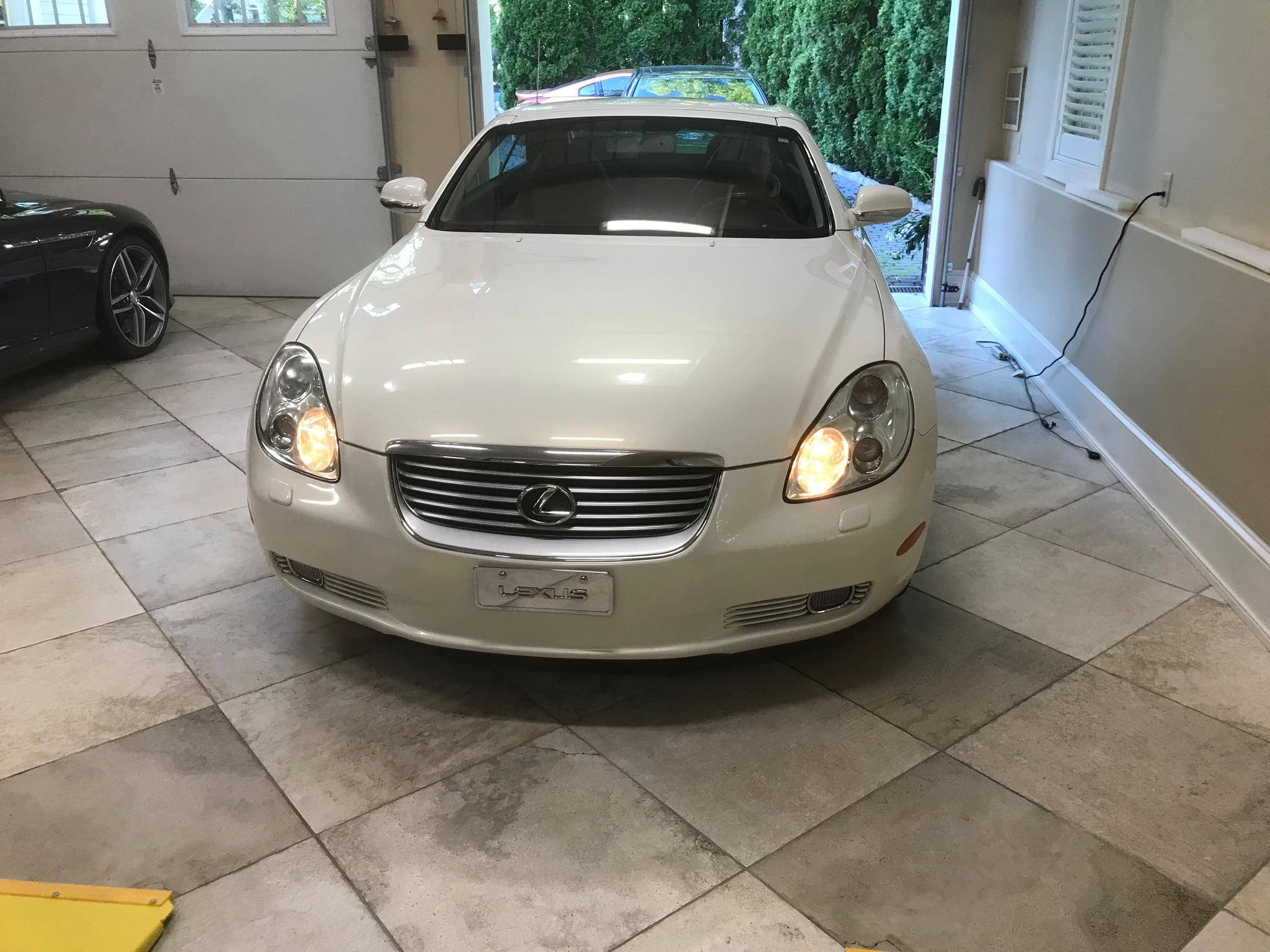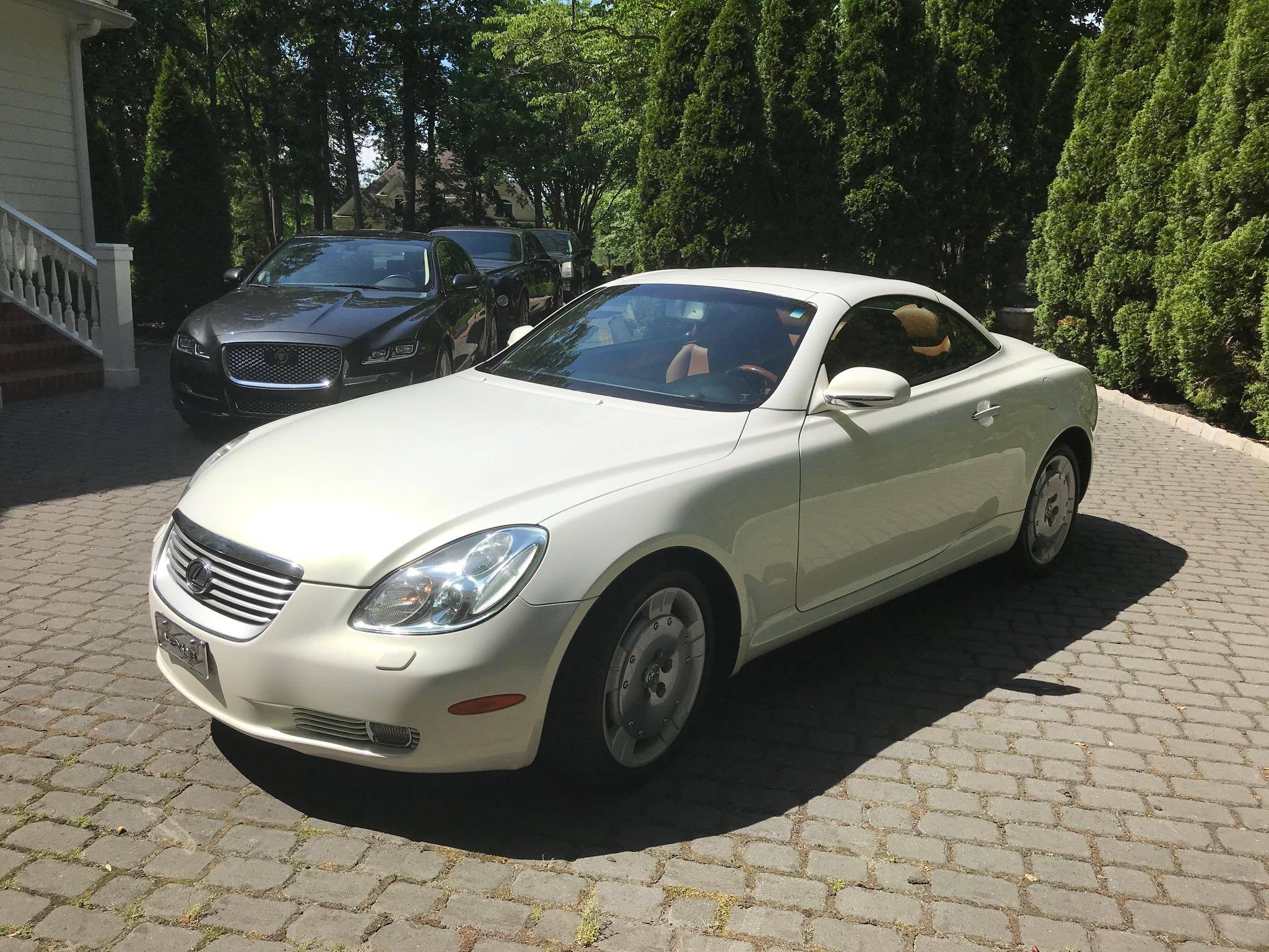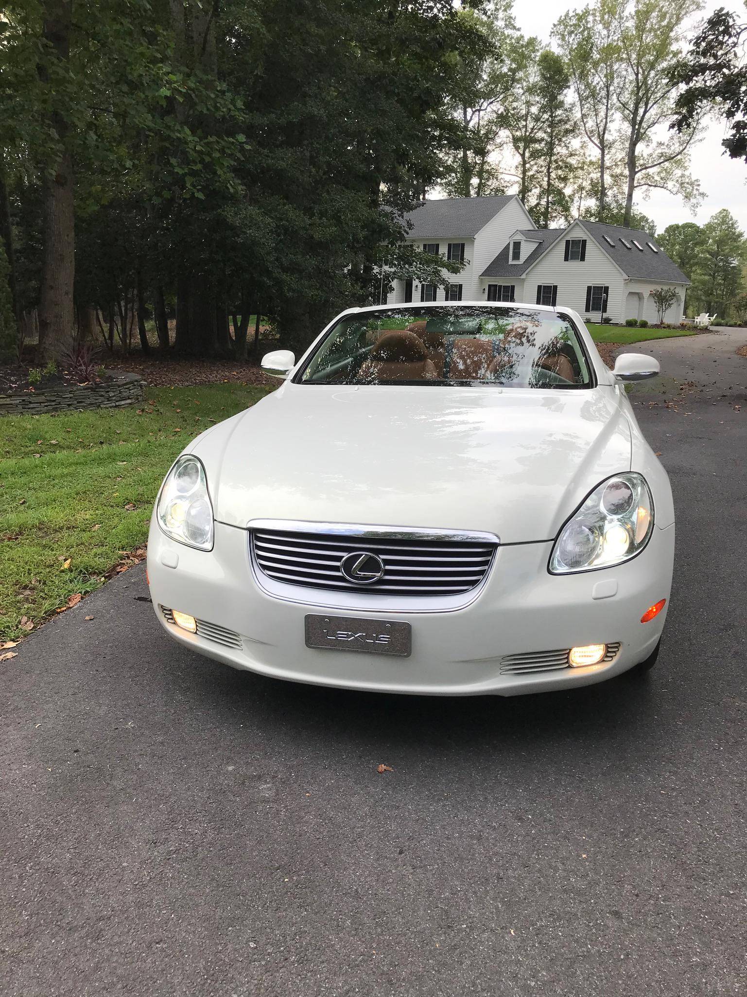 THIS. . . is a 2002 Lexus SC 430, finished in White Gold Crystal with a body-colored hardtop and a Saddle interior. This convertible's odometer displays about 31,800 miles. Factory equipment includes 18-inch wheels, HID headlights, a rear spoiler, a power-operated hardtop, wood interior trim, heated and power-adjustable front seats, a wind deflector, a 9-speaker Mark Levinson sound system, and a navigation system. The only modification reported by the seller is a SiriusXM satellite radio tuner that replaces the ashtray on the center stack. Lexus released the second-generation SC, its first series-produced convertible, for the 2001 model year. Much shorter than its predecessor, the model gained a more rounded exterior design and came with a power-folding aluminum hardtop that let users switch between a coupe and a convertible at the push of a button. Production ended in 2010, and Lexus hasn't used the SC nameplate since. Power comes from a 4. 3-liter V8, rated at 300 horsepower and 325 lb-ft of torque. It spins the rear wheels via a 5-speed automatic transmission.