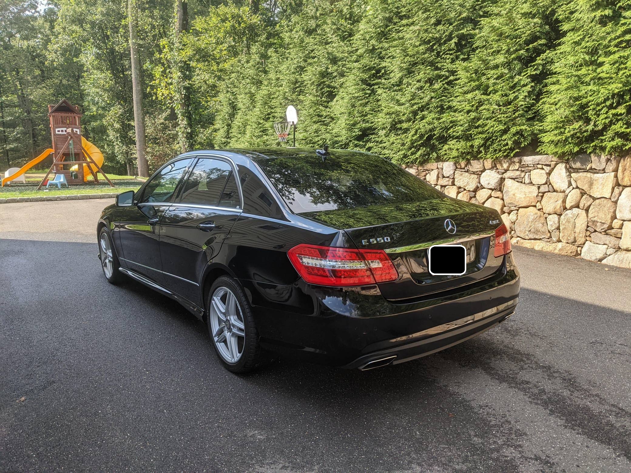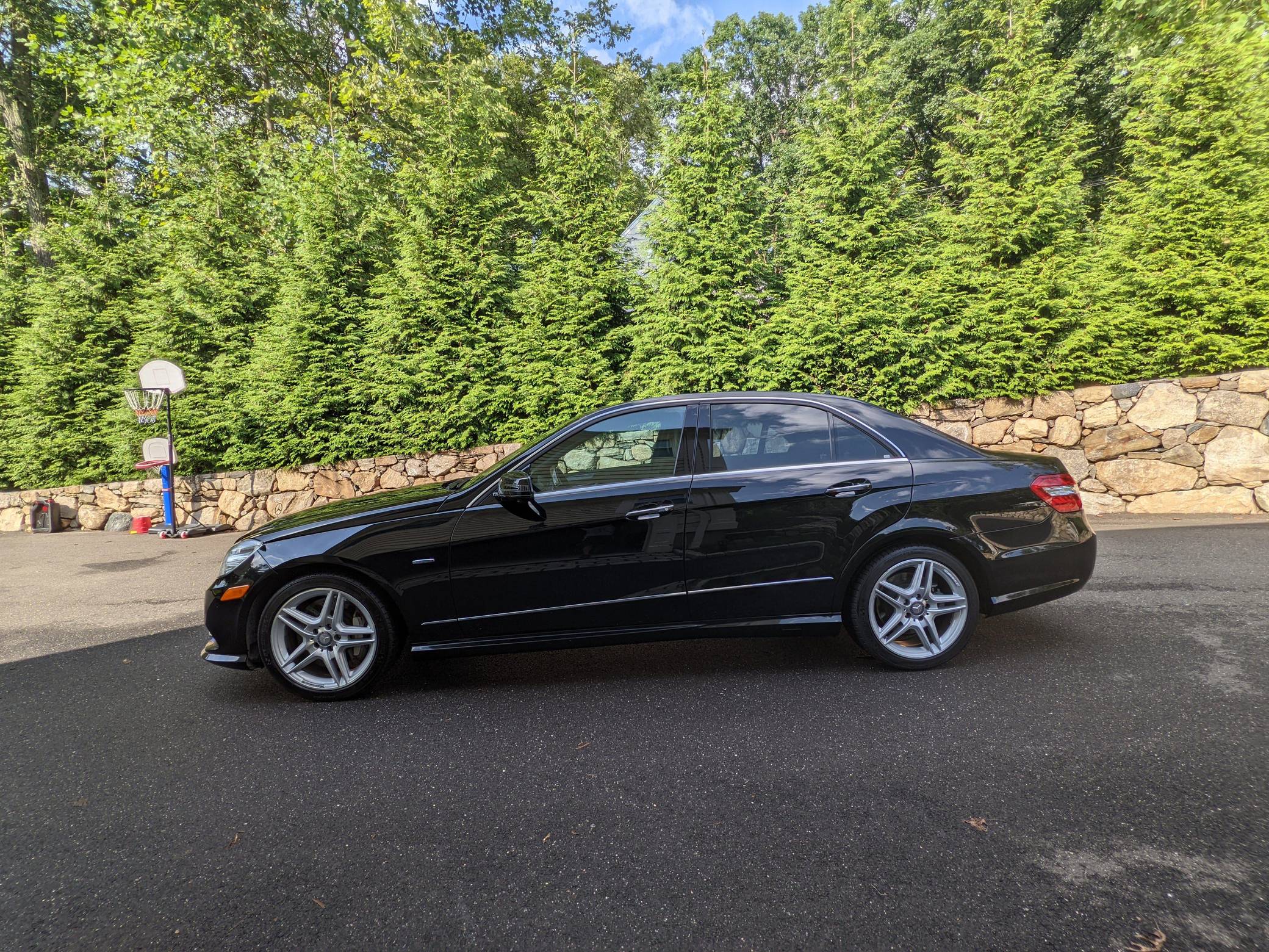 THIS… is a 2012 Mercedes-Benz E550 4Matic, finished in black with a black interior. The seller reports no modifications. Mercedes-Benz introduced the W212-generation E-Class for 2010. The model stood out from its predecessor with a more angular exterior design and a more luxurious cabin, and it continued to put a much bigger emphasis on comfort than its closest German rivals. The V8-powered E550 version was positioned at the top of the non-AMG-tuned range, above the V6-powered E350, and it was available with either rear- or all-wheel-drive. W212 production ended in 2016. Power comes from a twin-turbo 4. 6-liter V8, rated at 402 horsepower and 443 lb-ft of torque. Output is sent to all four wheels via a 7-speed automatic transmission and Mercedes-Benz's 4Matic all-wheel-drive system.