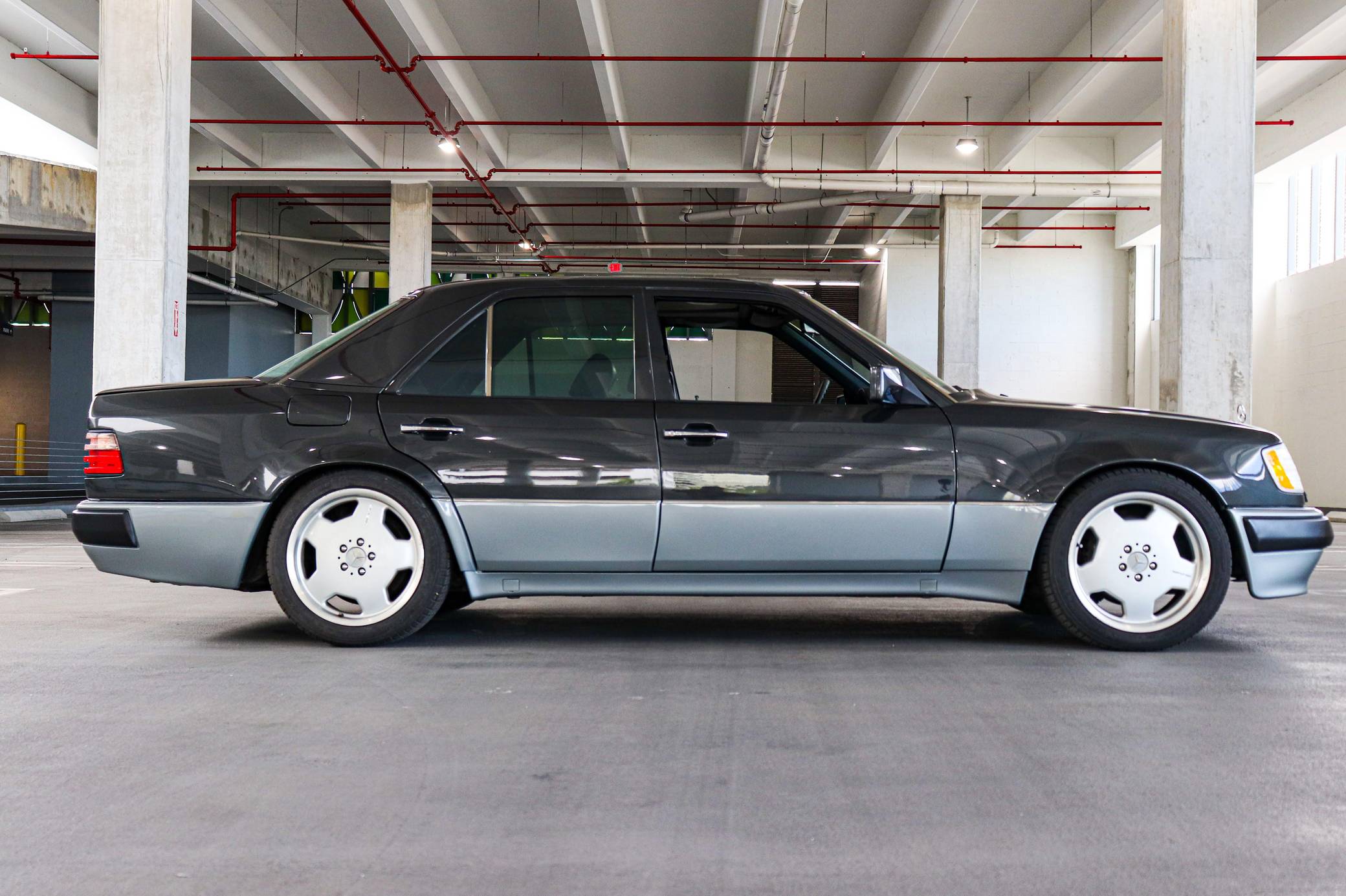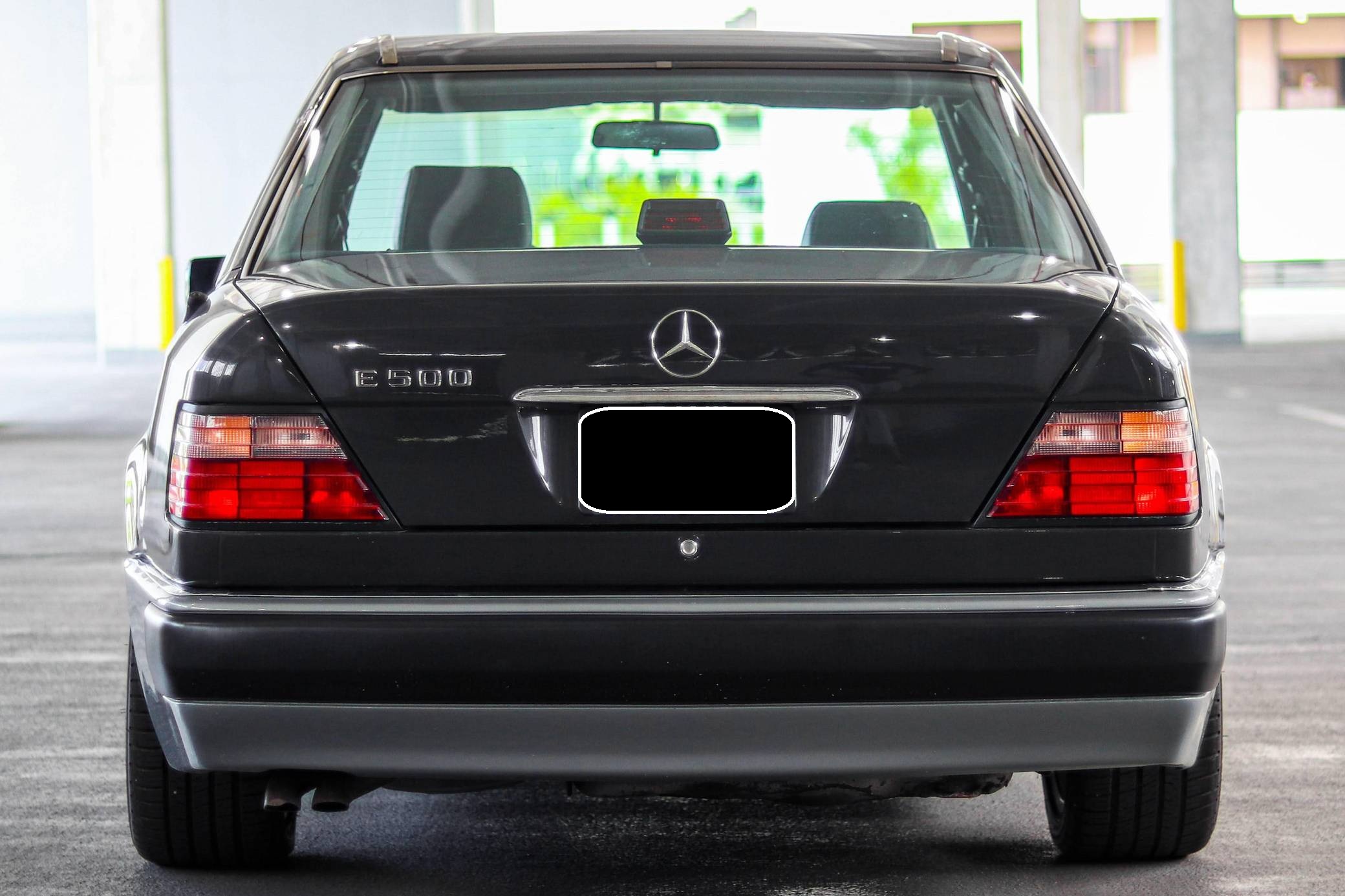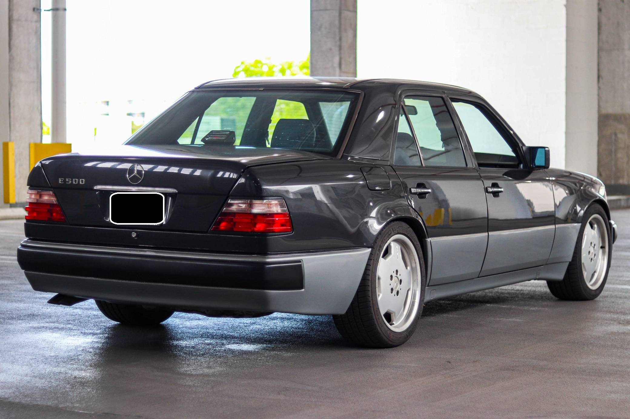 THIS. . . is a 1994 Mercedes-Benz E500, finished in Black Pearl Metallic with an anthracite interior. Factory equipment includes headlight wipers, fog lights, a sunroof, wood interior trim, leather upholstery, heated and power-adjustable front seats, a rear sunshade, a cassette player, and a 10-speaker sound system. This E500's build sheet is pictured in the gallery, and the only modifications reported by the seller are a Performance Chip Tuning chip and a set of 16-inch wheels. Mercedes-Benz released the 500E for 1992 as a high-performance evolution of the W124. Developed jointly with (and partially built by) Porsche, the sedan received a V8 engine, several suspension upgrades, and a specific body kit characterized by flared fenders. 1994 brought a facelift and the E500 designation; it was also the car's last model year. 10,479 units of the 500E and E500 were sold globally, according to Mercedes-Benz. For context, over 2. 5 million units of the W124 were built from 1985 to 1996. Power comes from a 5. 0-liter V8, rated at 315 horsepower and 347 lb-ft of torque when left stock. The chip might increase those figures but a dyno sheet is not available. Called M119 internally, the engine spins the rear wheels via a 4-speed automatic transmission.