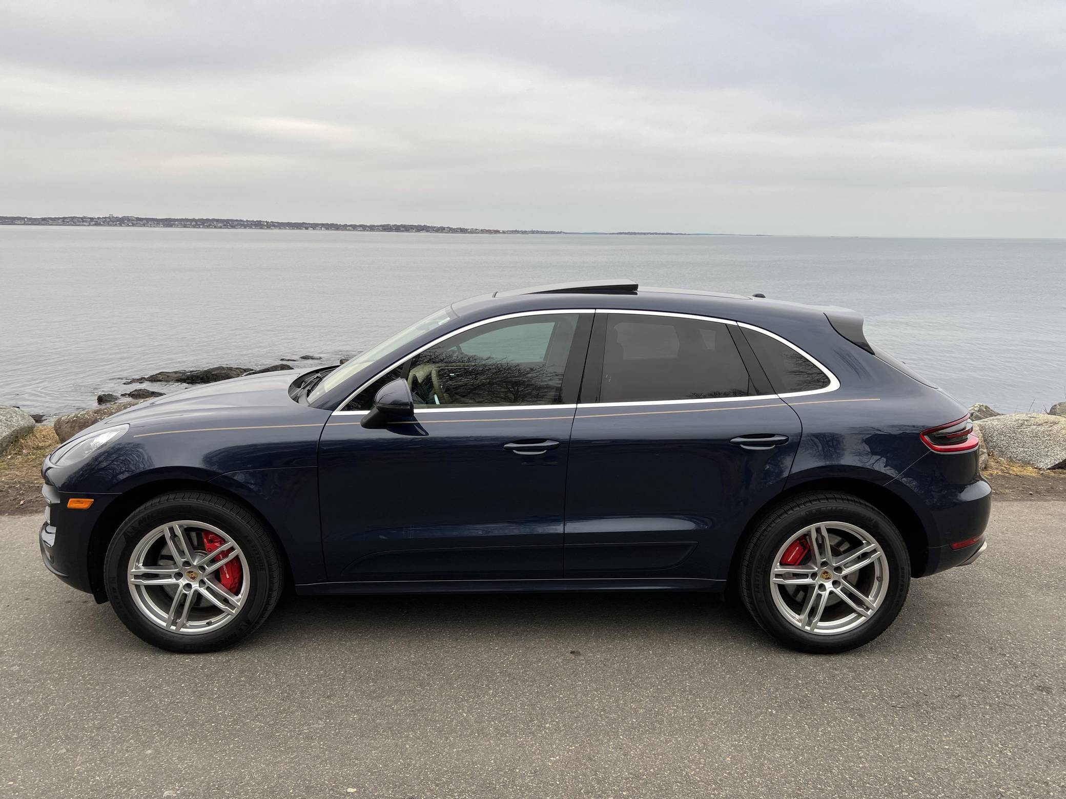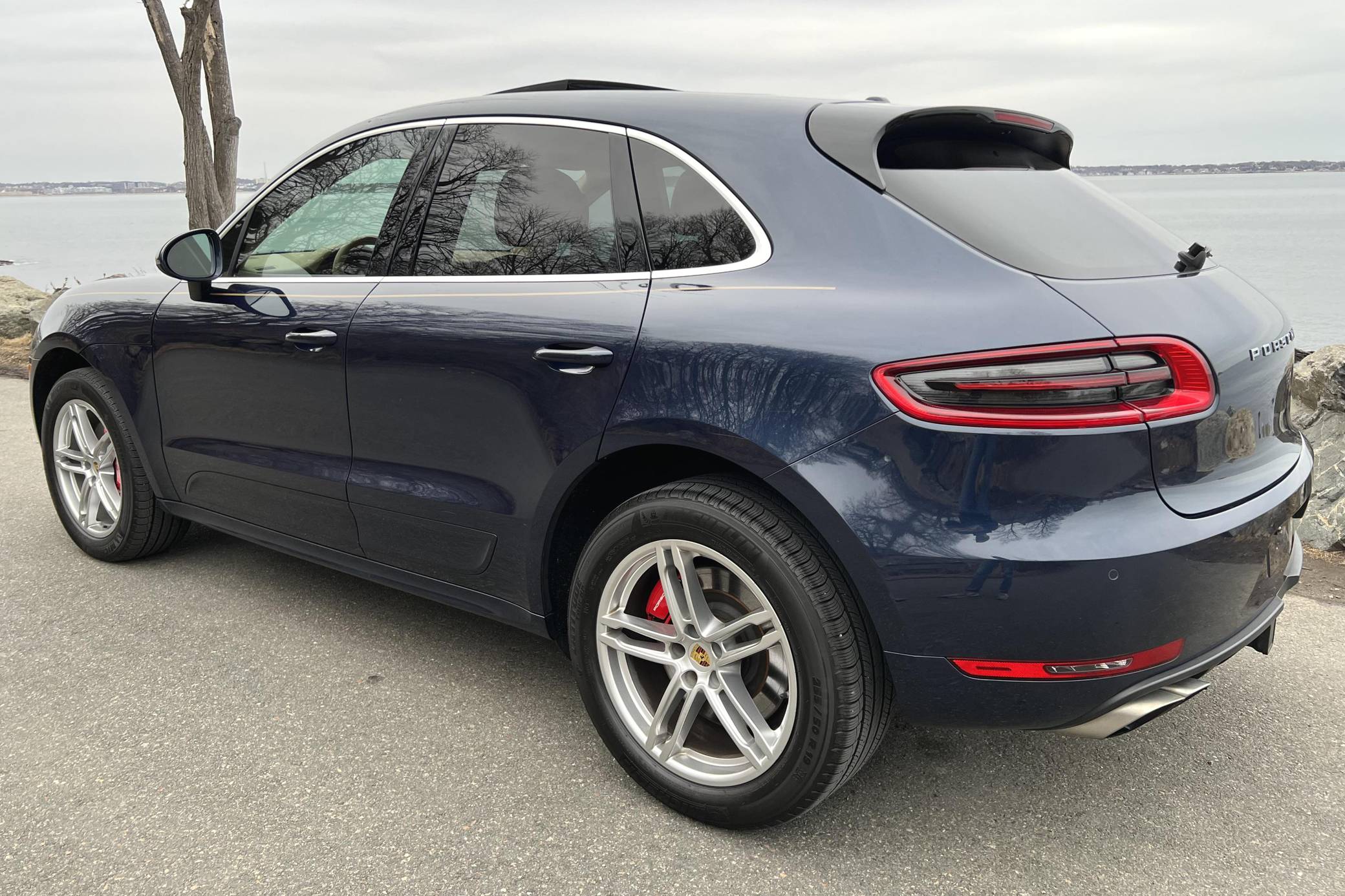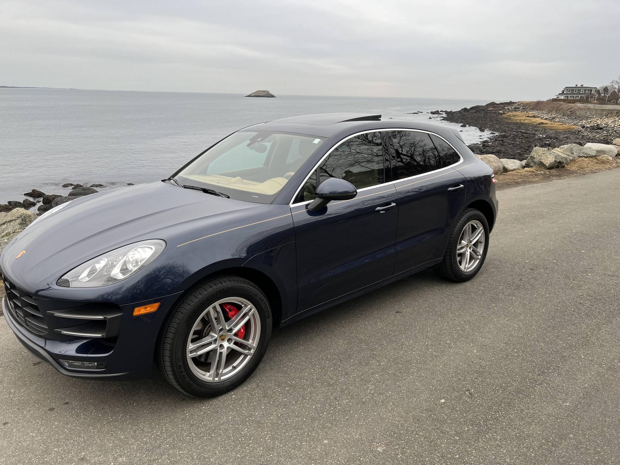 2015 Porsche Macan Turbo, finished in Dark Blue Metallic with a Luxor Beige interior. A build sheet is provided in the photo gallery, and a partial list of notable equipment includes the Premium Package Plus, the Sport Chrono, Comfort Lighting, and Carbon Fiber Interior packages, 19-inch Macan Turbo wheels, leather upholstery, power-adjustable, heated, and ventilated front seats, a navigation system, a Bose surround sound system, and more as detailed below. Modifications reported by the seller are limited to side pinstripes, tinted windows, and an Escort Passport 9500ci radar detector. Encouraged by the Cayenne's success and eager to tap into one of the biggest segments of the market, Porsche introduced the Macan as its entry-level SUV for 2015. Some of the model's underpinnings came from Audi, but Porsche dialed in a level of performance and handling that's unusual to find in a compact SUV. The Turbo model was positioned at the top of the line-up through the 2021 model year. Power comes from a turbocharged 3. 6-liter V6, rated at 400 horsepower and 406 lb-ft of torque. It spins the four wheels via a 7-speed dual-clutch automatic transmission.
